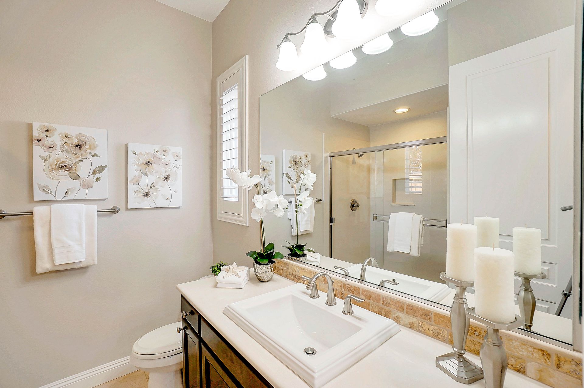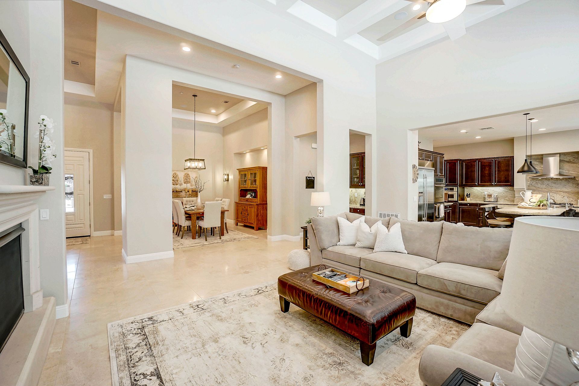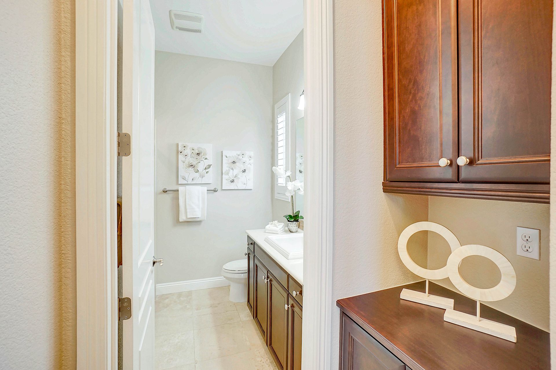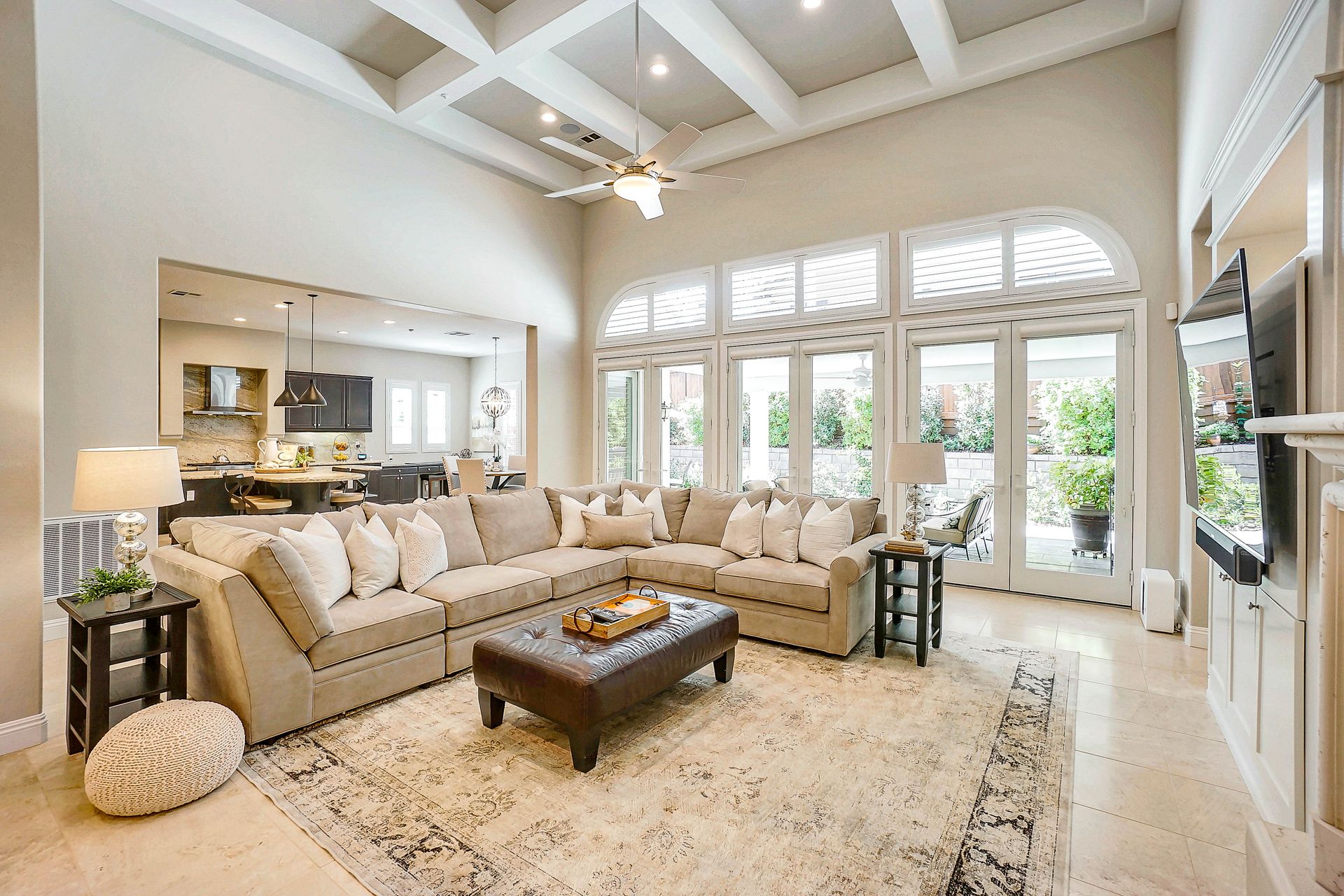 You won't want to miss this meticulously maintained home. This stunning 'Tropez' model features many upgrades and amenities. The gourmet kitchen has granite countertops, a breakfast bar, stainless steel appliances, a Jenn-Air refrigerator/freezer, a six-burner gas stove and more. There is a butler pantry and a wine refrigerator too! Work from home in the office with a built-in custom bookcase/desk. Recently painted interior, updated carpet and plantation shutters throughout. The romantic, spacious primary bedroom leads to the oversized bathroom with double entry walk-in closets. The second bedroom is a junior master suite. The great room has a built-in entertainment center and allows natural lighting throughout with the expansive windows opening to the colorfully landscaped backyard. The backyard has an extended stamped patio and a newer insulated patio cover. Trilogy at the Vineyards is a 55+ Resort Community with a gym, spa, indoor/outdoor pools, library, tennis courts and more! The garage has custom storage cabinets, workbench and overhead storage racks. Prepaid solar lease!