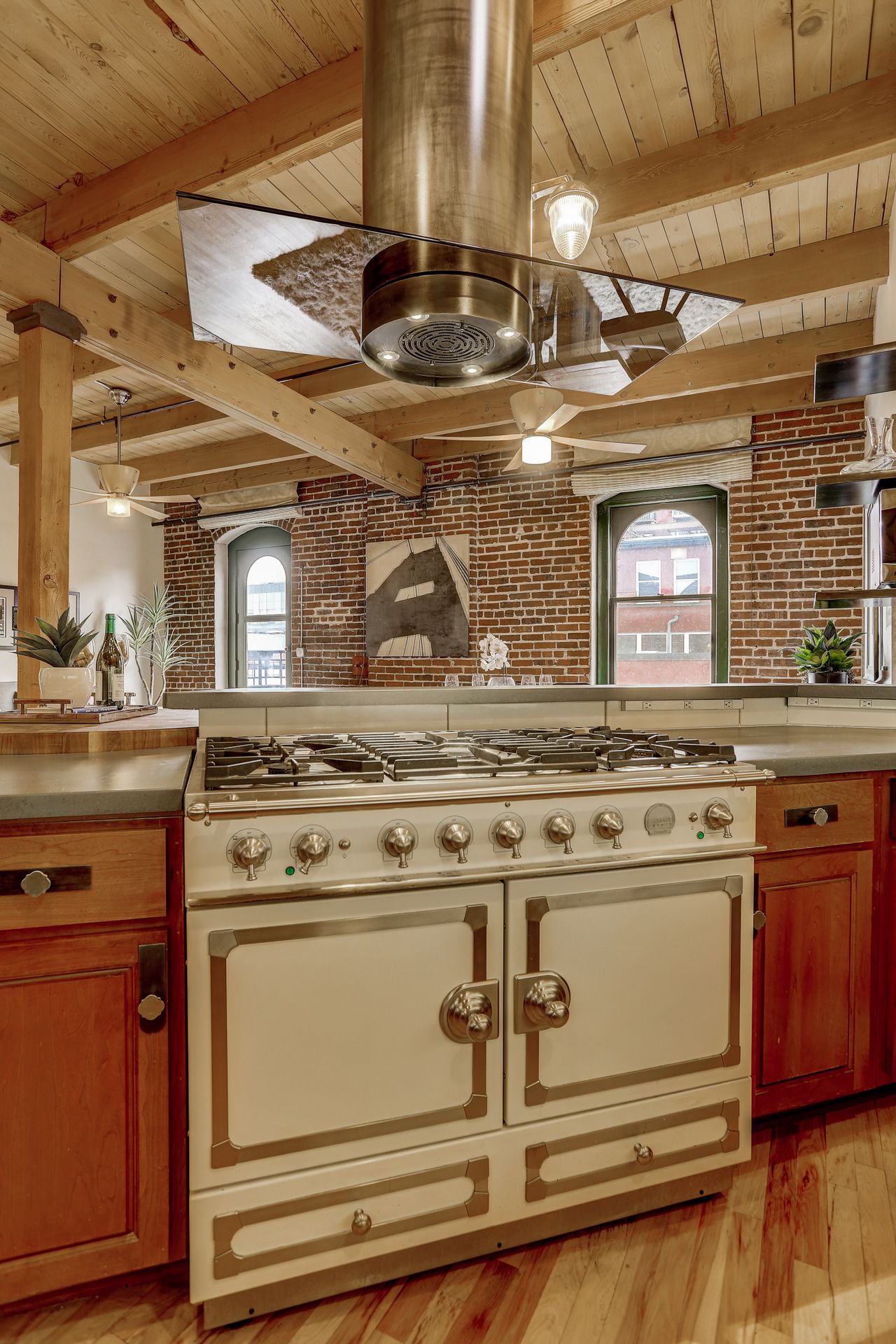 The rustic charm of this building along with modern updates is the best of both worlds in this unique two story loft. Exposed brick, hickory hardwood floors, soaring 14 foot exposed plank ceilings, wood beams, chef’s kitchen with a La Cornue range and Sub-Zero Fridge, and luxurious spa-like master bath...no detail has been overlooked.