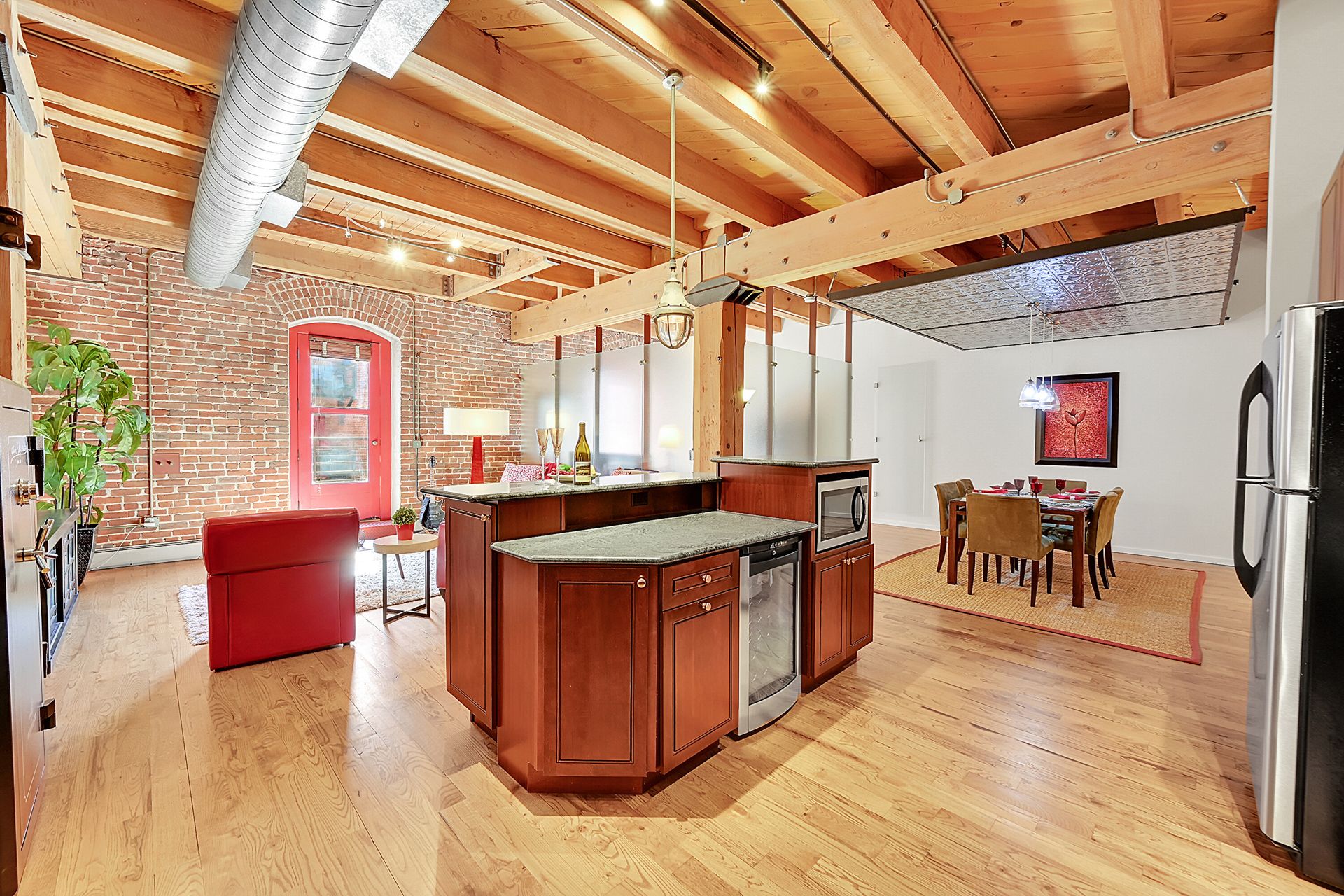 Discover urban sophistication in this 1-bedroom, 1-bathroom loft-style condo at the historic Wynkoop Mercantile Lofts. With only 15 residences in the building, this is a rare opportunity to own one of the single-level units in this coveted location. Located near Union Station, Coors Field and world-class dining, this loft seamlessly blends modern comfort with industrial charm. Enjoy exposed brick accent walls, beautiful hardwood floors and soaring wood beam ceilings that exude character. The private balcony offers a perfect retreat for morning coffee or evening relaxation, while the shared rooftop deck provides space for larger gatherings and beautiful city views. Whether you’re seeking the quintessential downtown lifestyle or a convenient pied-à-terre, this space is your ideal Denver haven.