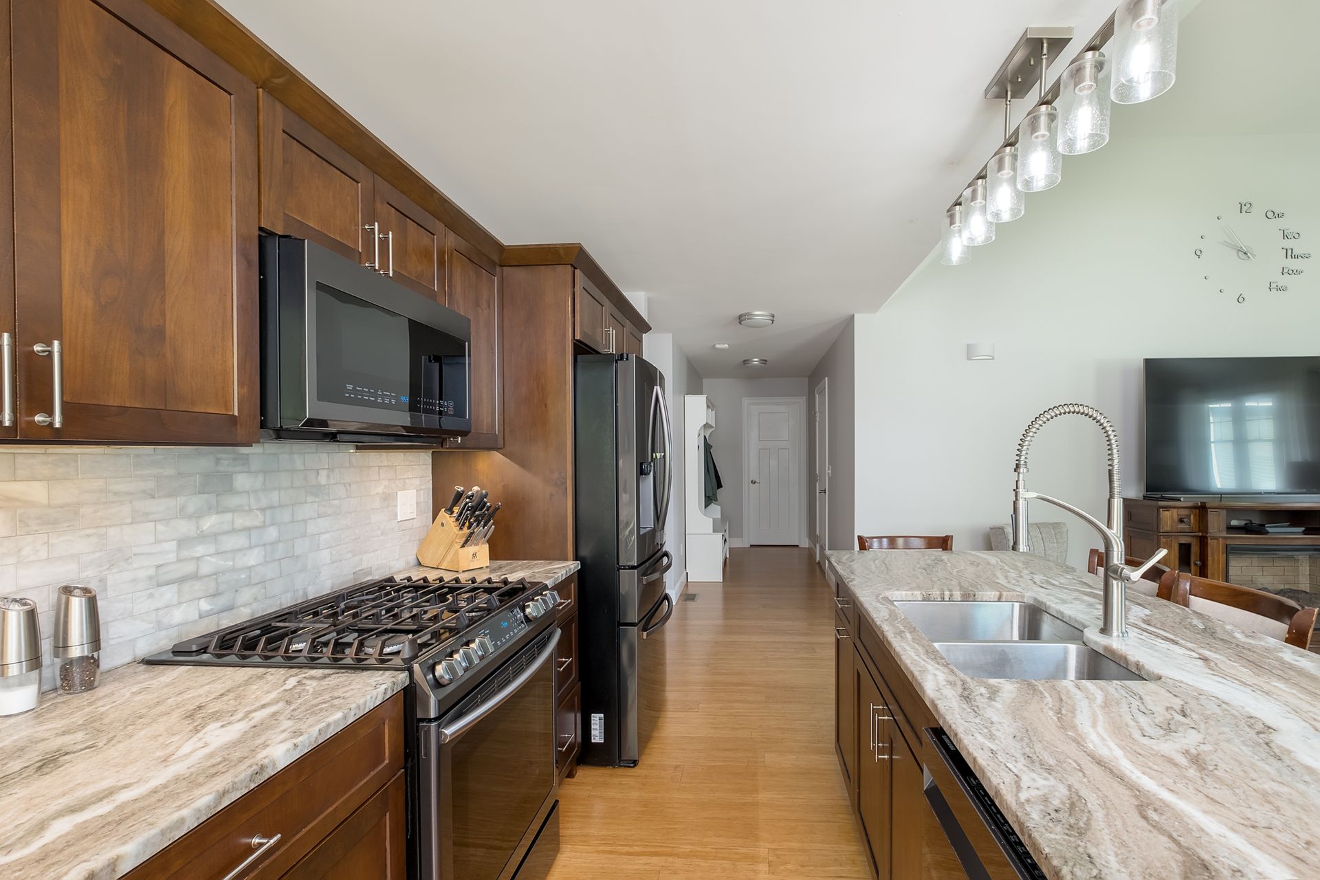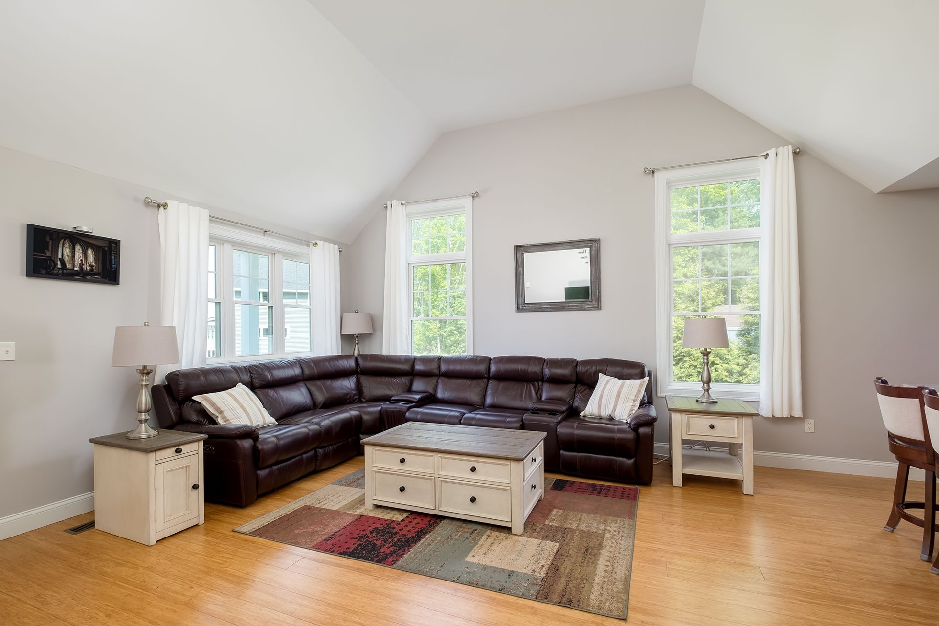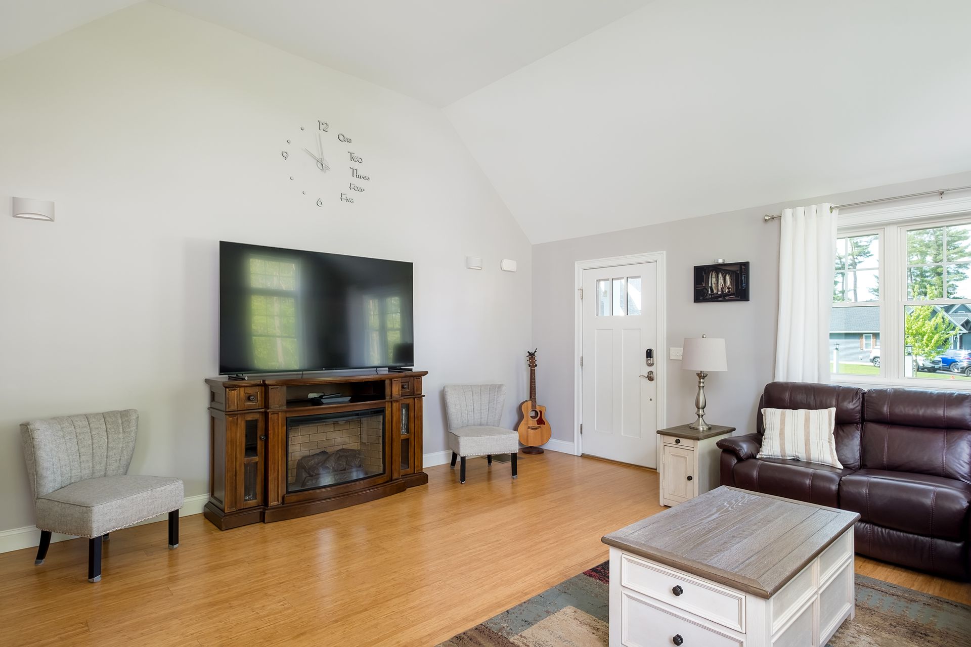 First-floor living in this exquisite Ranch-style home in desirable South Dover Point, NH. Nestled at the end of a tranquil cul-de-sac in Beaumont Village, it overlooks picturesque farmland and offers convenient access to major commuting roads connecting Portland, Boston, and Nashua. The home features two bedrooms and two full baths, providing ample space for comfortable living. As you step inside, bamboo floors lead to a spacious living area with expansive windows and a beautifully appointed high shed ceiling. The well-designed kitchen boasts stainless steel appliances, elegant granite countertops, warm wood cabinets, and a tiled backsplash. Primary bedroom includes an ensuite bathroom with double vanity, and custom-tiled walk-in shower with a heated floor. The partially finished full-size basement includes an entertainment-ready bar, workshop, and ample storage. An attached two-car garage adds convenience. Outside, an expansive lawn features a generous stone patio for outdoor gatherings. Enjoy breathtaking sunsets from the front covered cottage porch. This eco-friendly home is equipped with new solar panels, an on-demand hot water heater, thermal doors and windows and central air conditioning. Don’t miss this opportunity to make it yours!