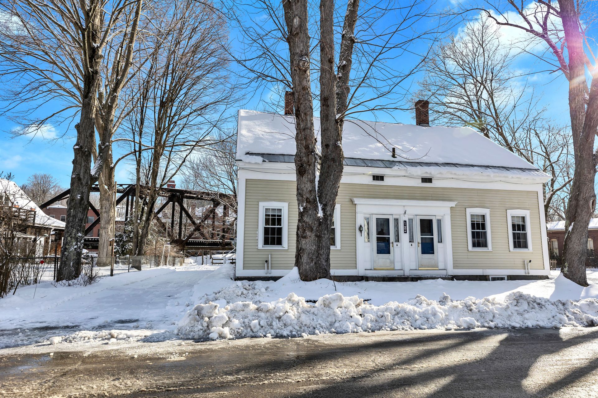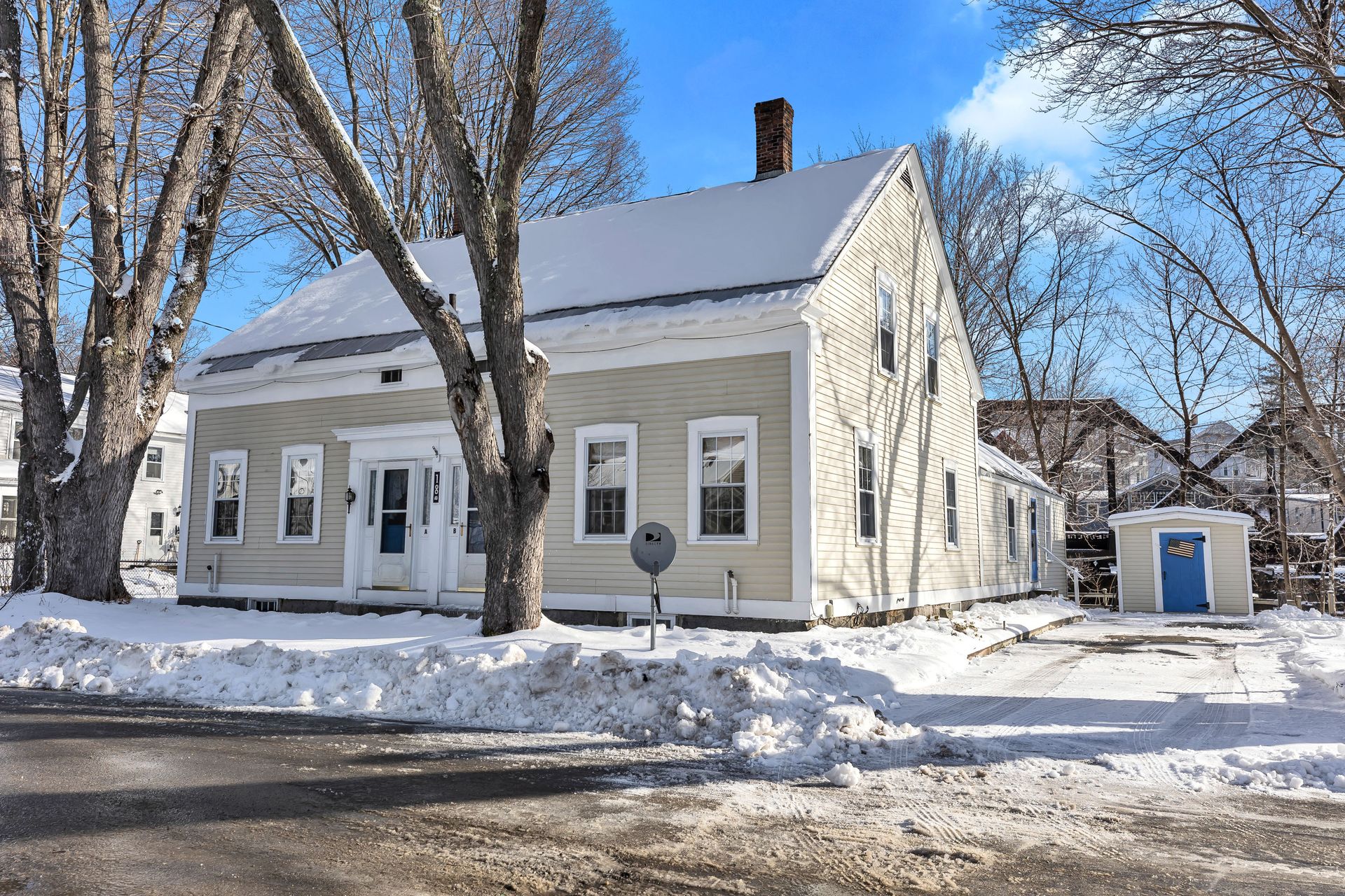 Clean as a whistle and move in ready in town two family with very pleasant riverfront views! Each unit has two bathrooms and two to three bedrooms (third bedroom does not have a closet). Heat and electric are separate and there is ample off street parking on each side. Both furnaces and water heaters are recent. Roof and windows replaced in the last decade or so as well. The first floors feature practically mirror images with a sizable kitchen, dining room, living room and bath with laundry on the first floor and then another full bath and then two to three bedrooms upstairs. There is also basement storage for each unit as well. Besides the ample storage space attached at the back of each unit, there are also multiple sizable sheds offering plenty of space for the toys (motorcycles, ATV's, mowers, etc.) Sellers only considering offers allowing the current long term family member tenant to rent back their unit (unit B) for one year post closing for reasonable rental amount and will take care of their utilities, all yard maintenance, plowing, etc. ensuring immediate income and worry free living!