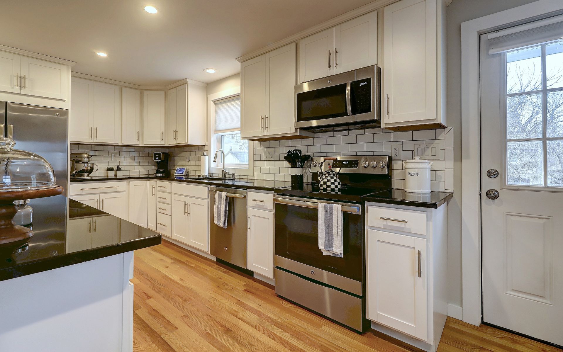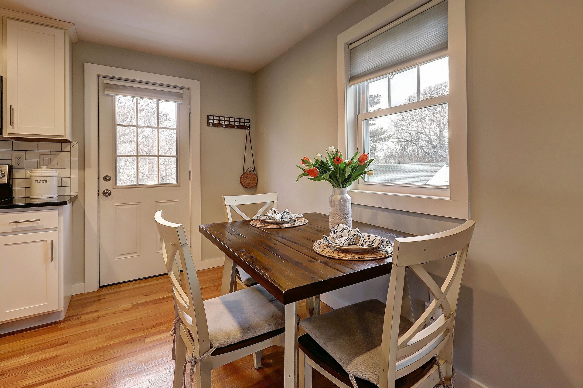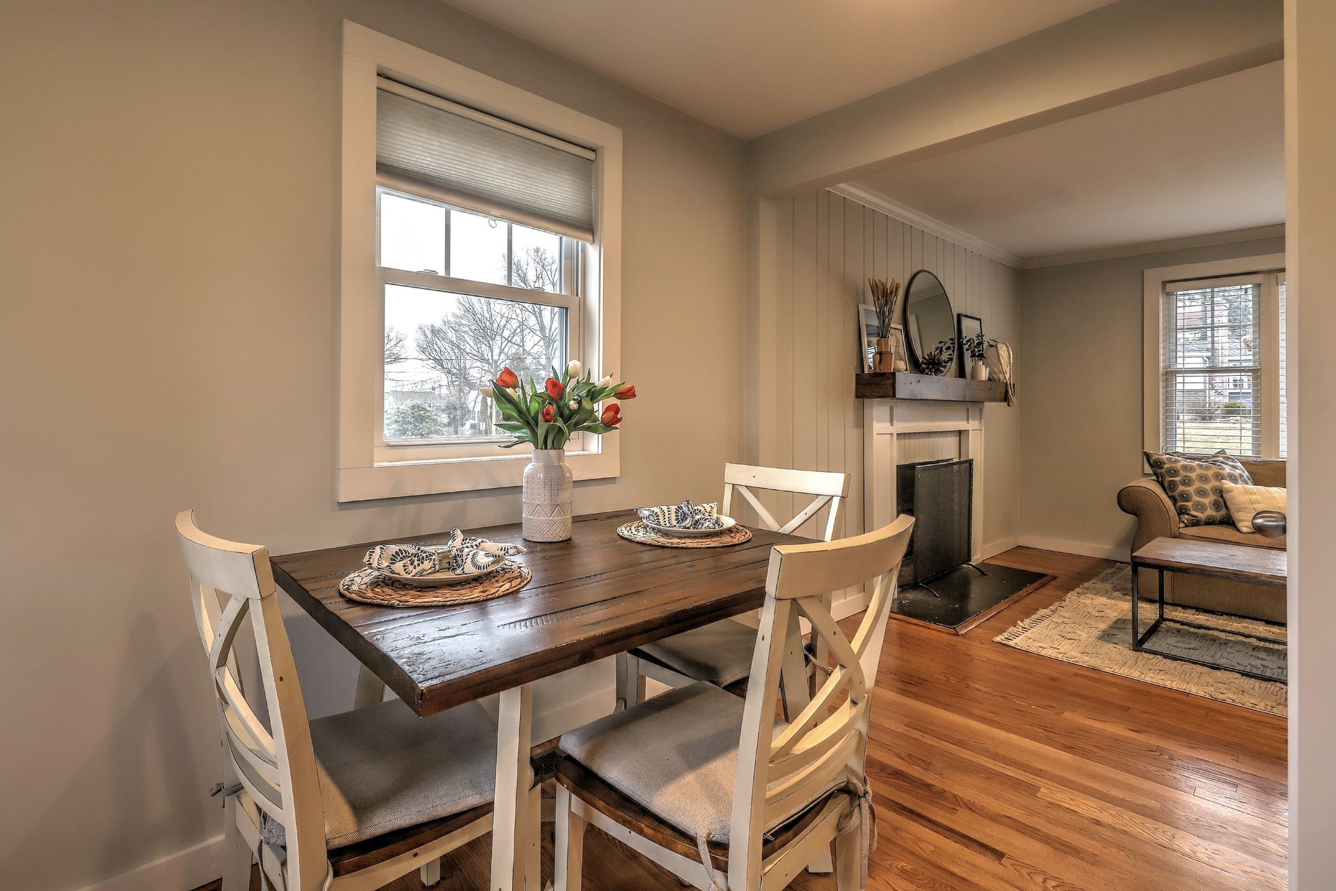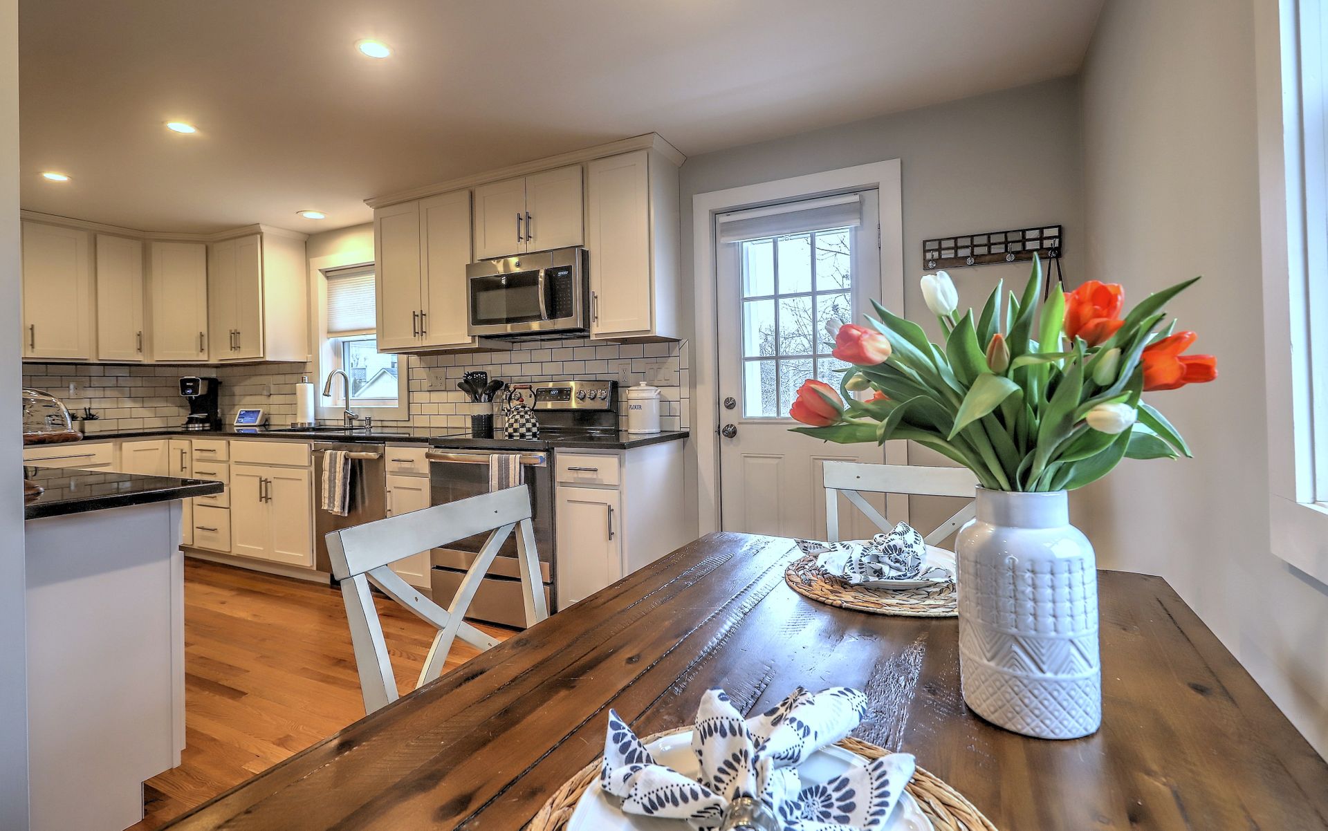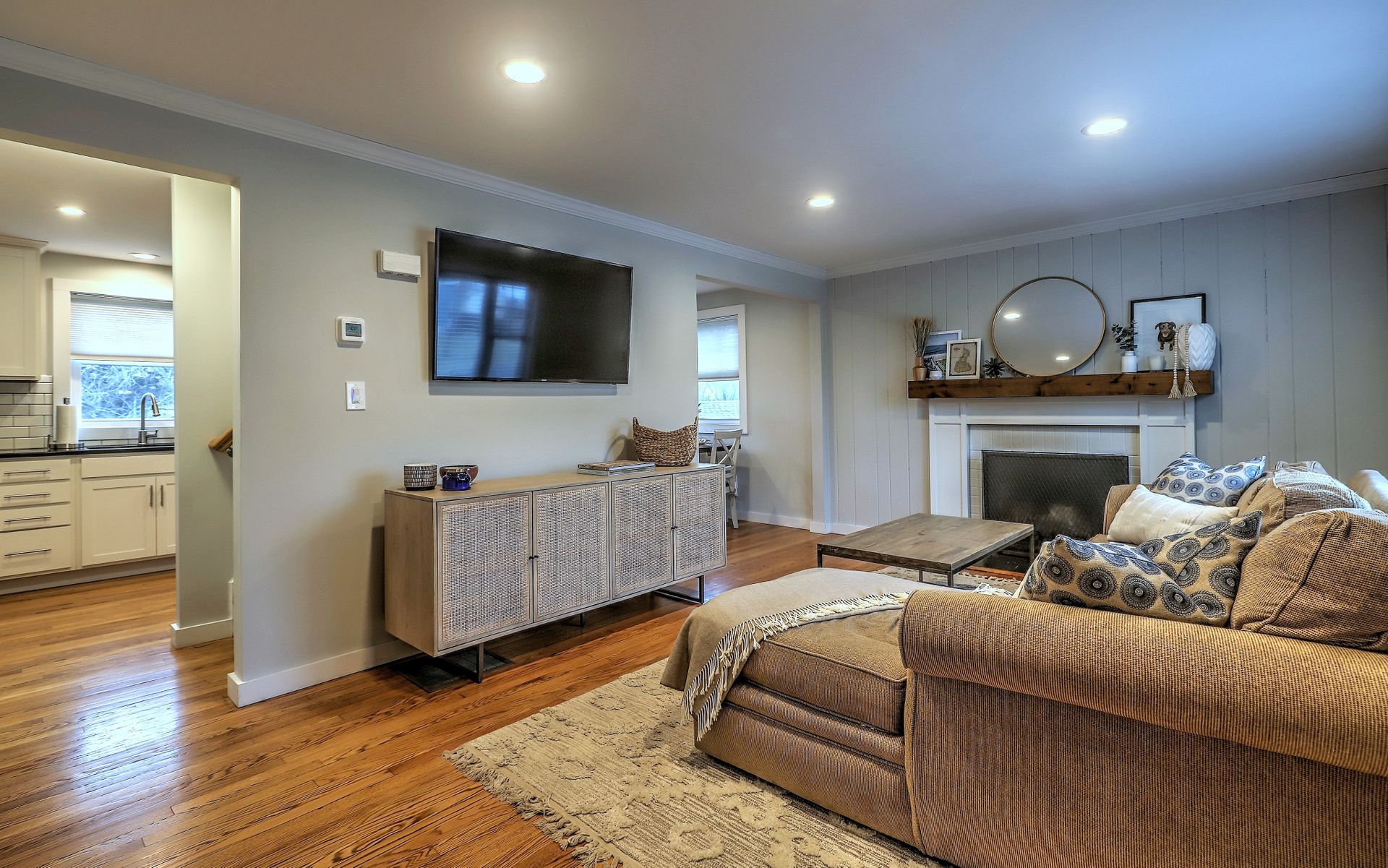 Entering into the living room, you'll love the wood burning fireplace and the easy flow of the floor plan. The remodeled kitchen is fully applianced and open to a nice eat-in area with access to the back yard for ease of grilling and hosting backyard parties!