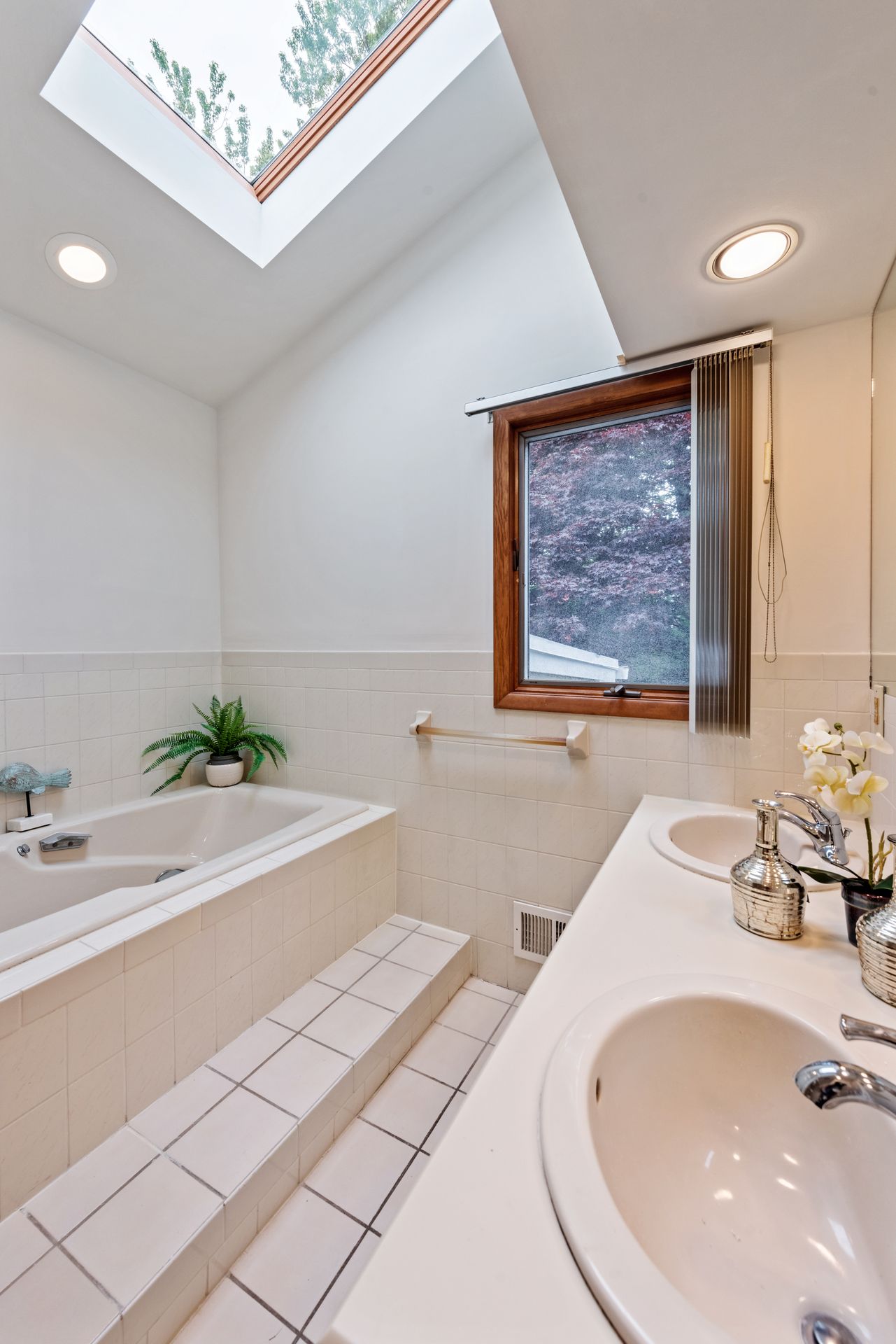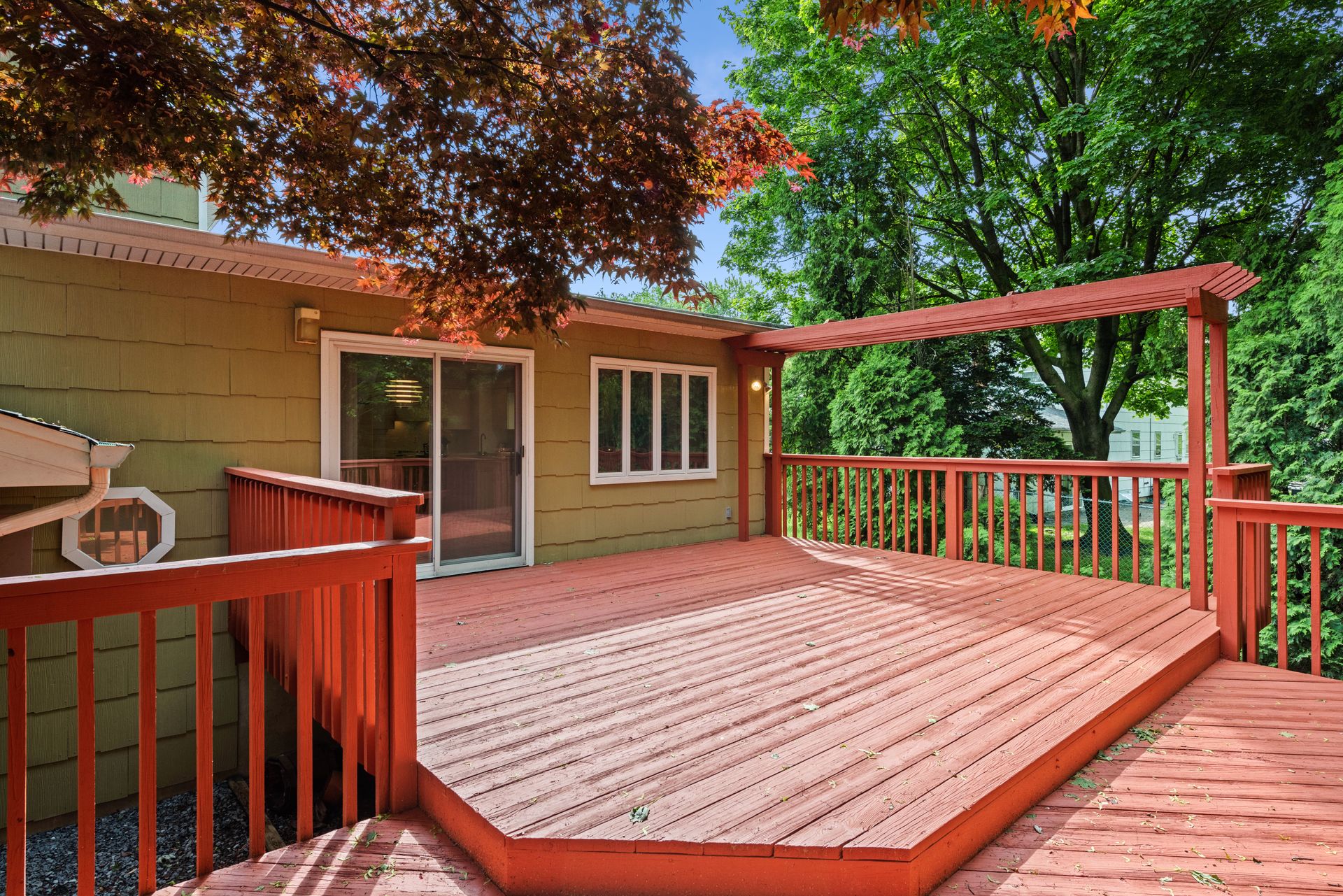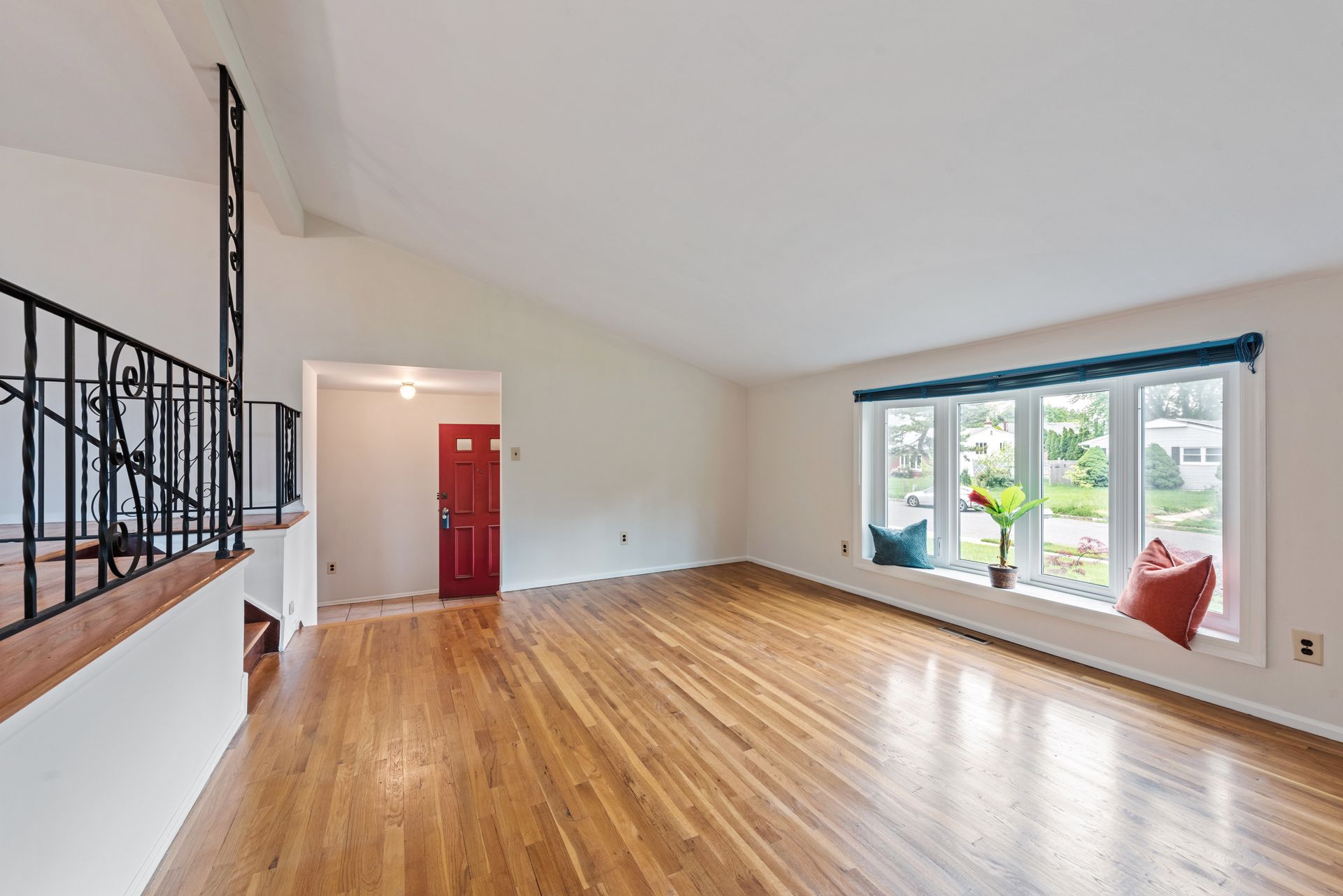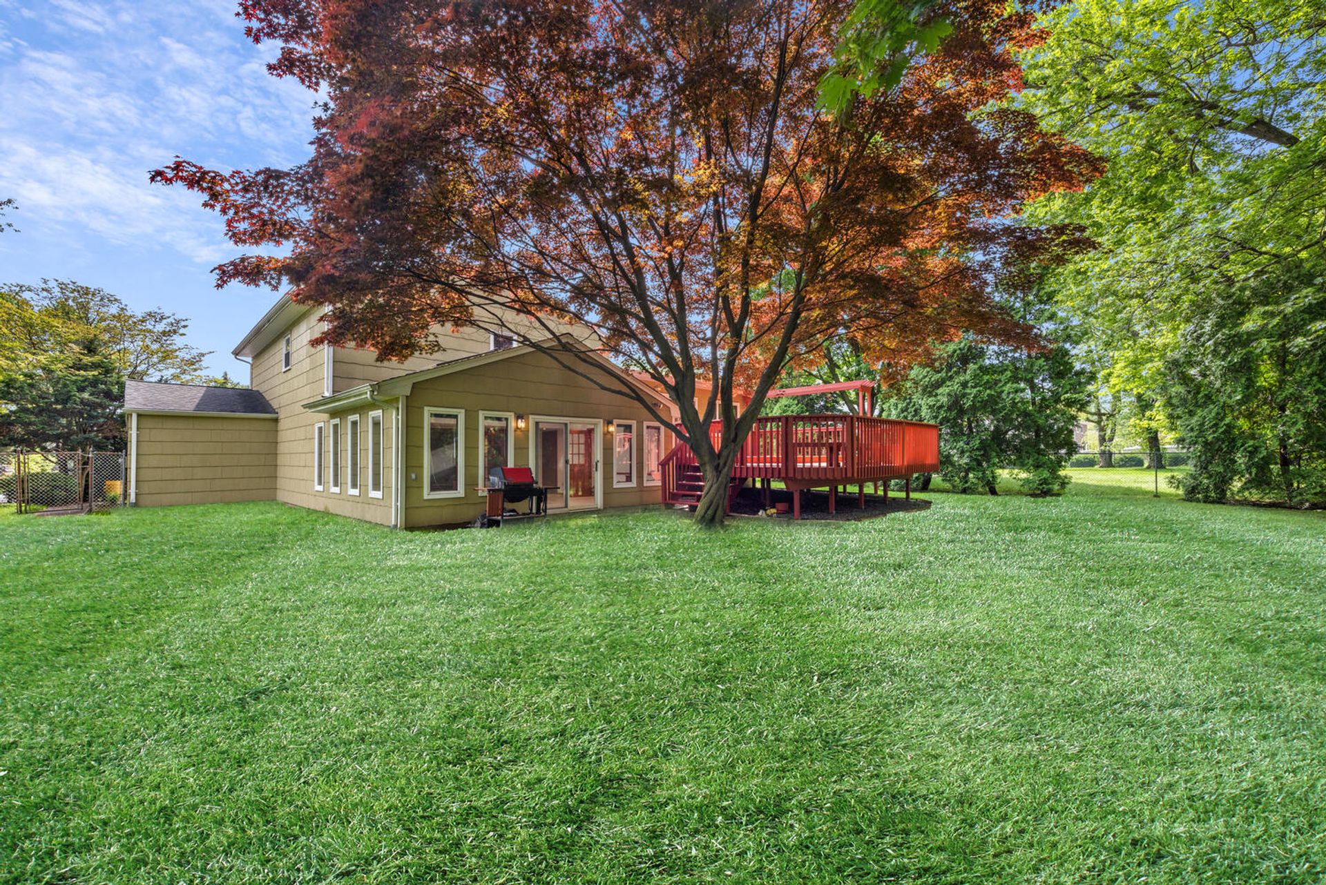 Set back on a third acre in Appletree, this lovely, enlarged, four bedroom, two and a half bath, brick-accented split features an impressive 500-square-foot, two-story great room addition with skylights and Andersen casement windows. Some appealing extras include an expanded, bright kitchen with a center island, breakfast bar, prep sink, gas cooktop, wall oven, walls of cabinets and expansive counters great for the chef! Main level bedroom and bath, double-sized basement with addition. The owner's suite was extended with a large bathroom including a jacuzzi, separate shower and skylight, a sitting room and a considerable solid wood cedar closet. Two-car garage, large driveway, refinished hardwood floors, all replaced windows, large wood deck with built-in seating and new landscaping.