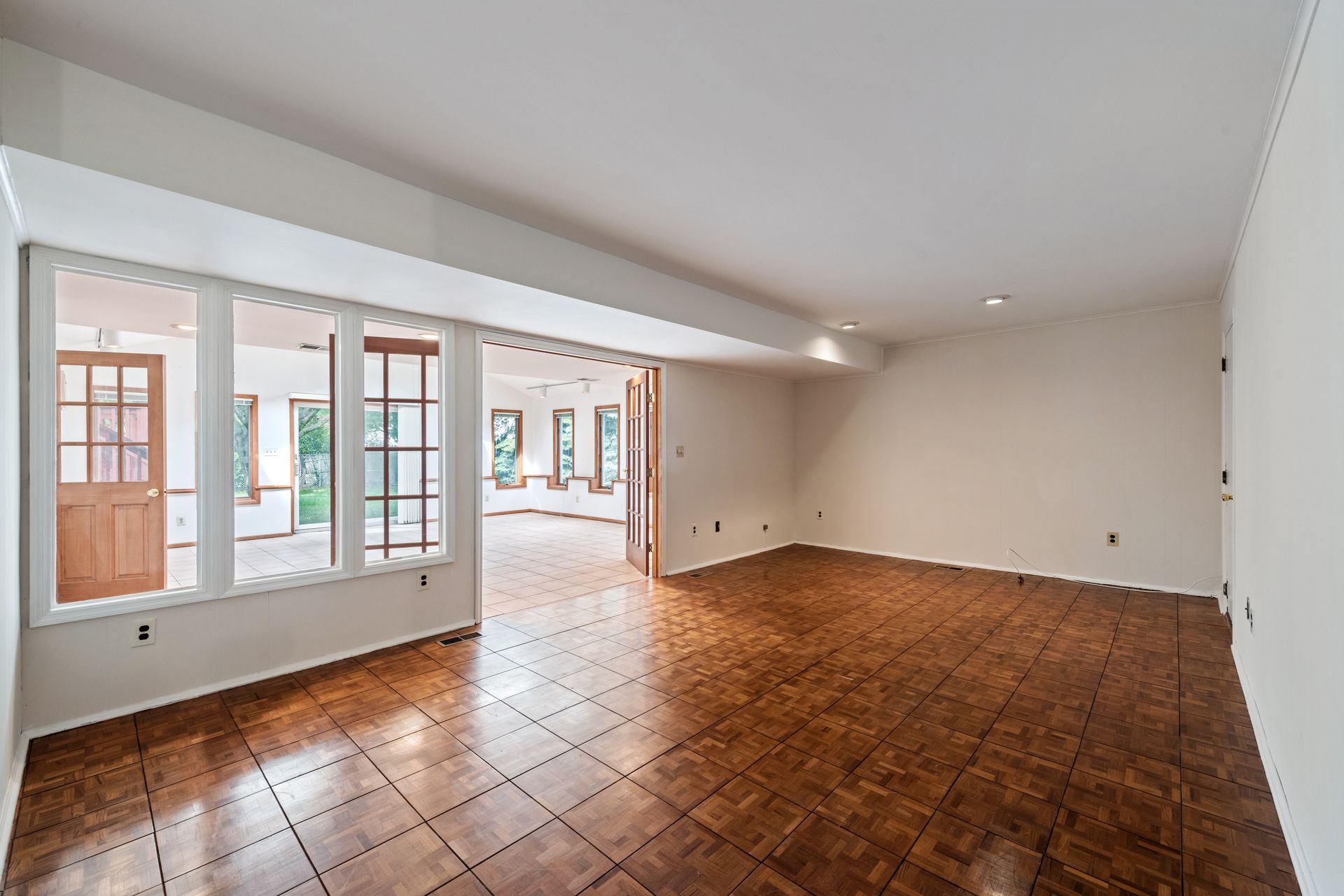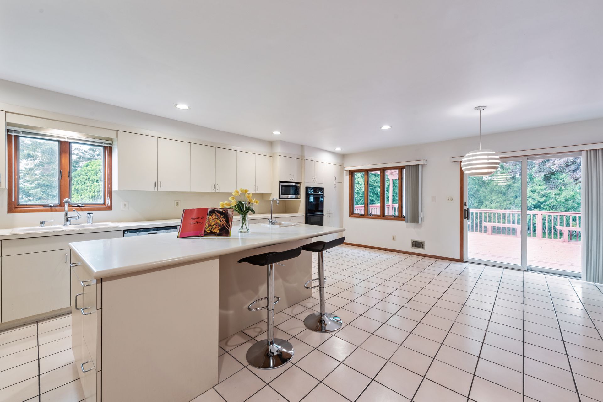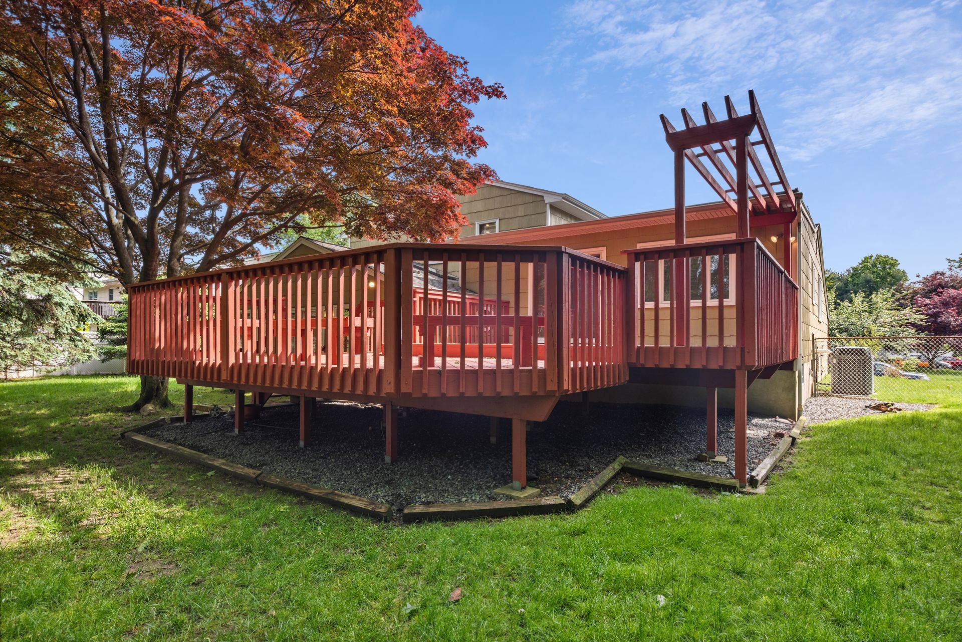 Set back on a third acre in Appletree, this lovely, enlarged, four bedroom, two and a half bath, brick-accented split features an impressive 500-square-foot, two-story great room addition with skylights and Andersen casement windows. Some appealing extras include an expanded, bright kitchen with a center island, breakfast bar, prep sink, gas cooktop, wall oven, walls of cabinets and expansive counters great for the chef! Main level bedroom and bath, double-sized basement with addition. The owner's suite was extended with a large bathroom including a jacuzzi, separate shower and skylight, a sitting room and a considerable solid wood cedar closet. Two-car garage, large driveway, refinished hardwood floors, all replaced windows, large wood deck with built-in seating and new landscaping.