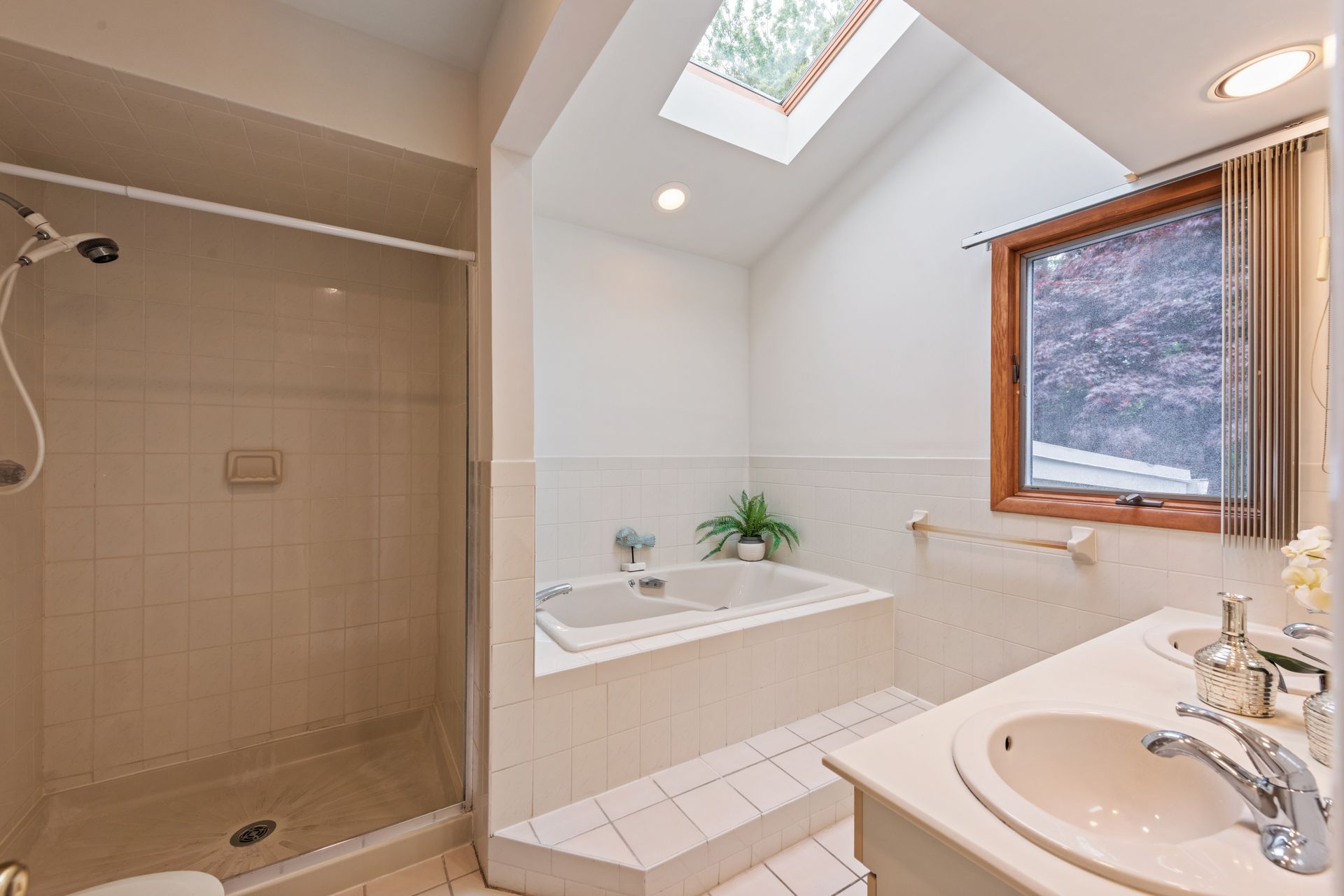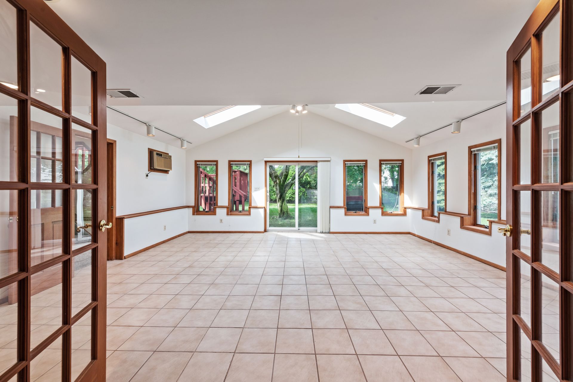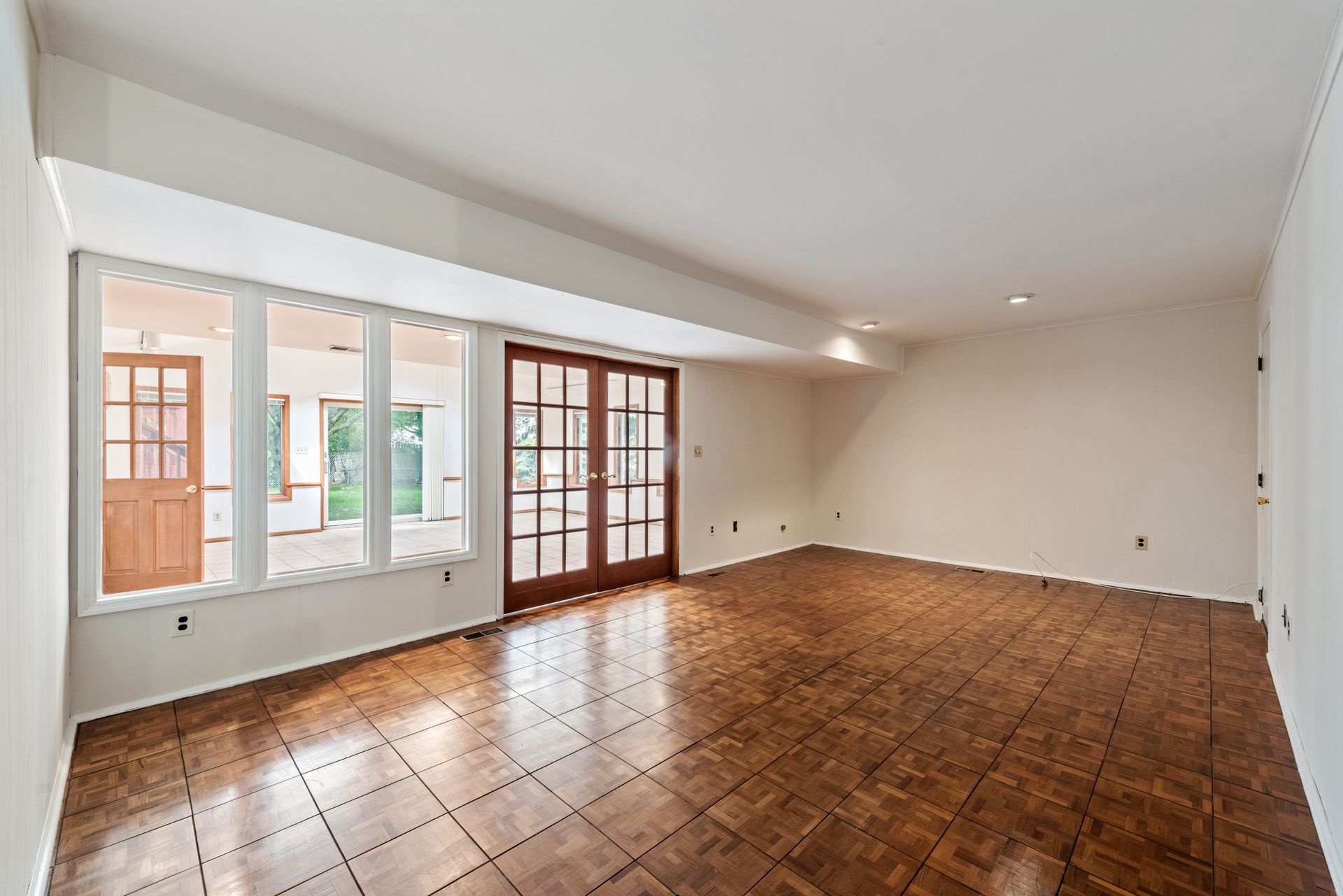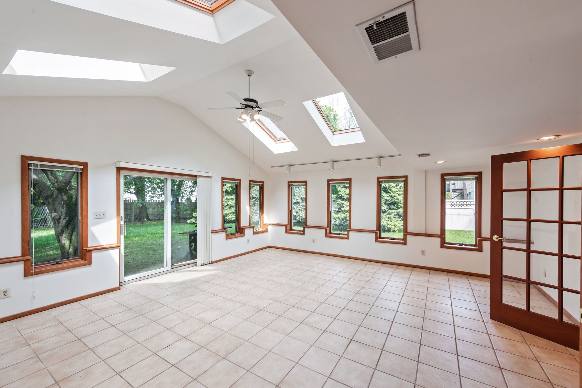 Set back on a third acre in Appletree, this lovely, enlarged, four bedroom, two and a half bath, brick-accented split features an impressive 500-square-foot, two-story great room addition with skylights and Andersen casement windows. Some appealing extras include an expanded, bright kitchen with a center island, breakfast bar, prep sink, gas cooktop, wall oven, walls of cabinets and expansive counters great for the chef! Main level bedroom and bath, double-sized basement with addition. The owner's suite was extended with a large bathroom including a jacuzzi, separate shower and skylight, a sitting room and a considerable solid wood cedar closet. Two-car garage, large driveway, refinished hardwood floors, all replaced windows, large wood deck with built-in seating and new landscaping.