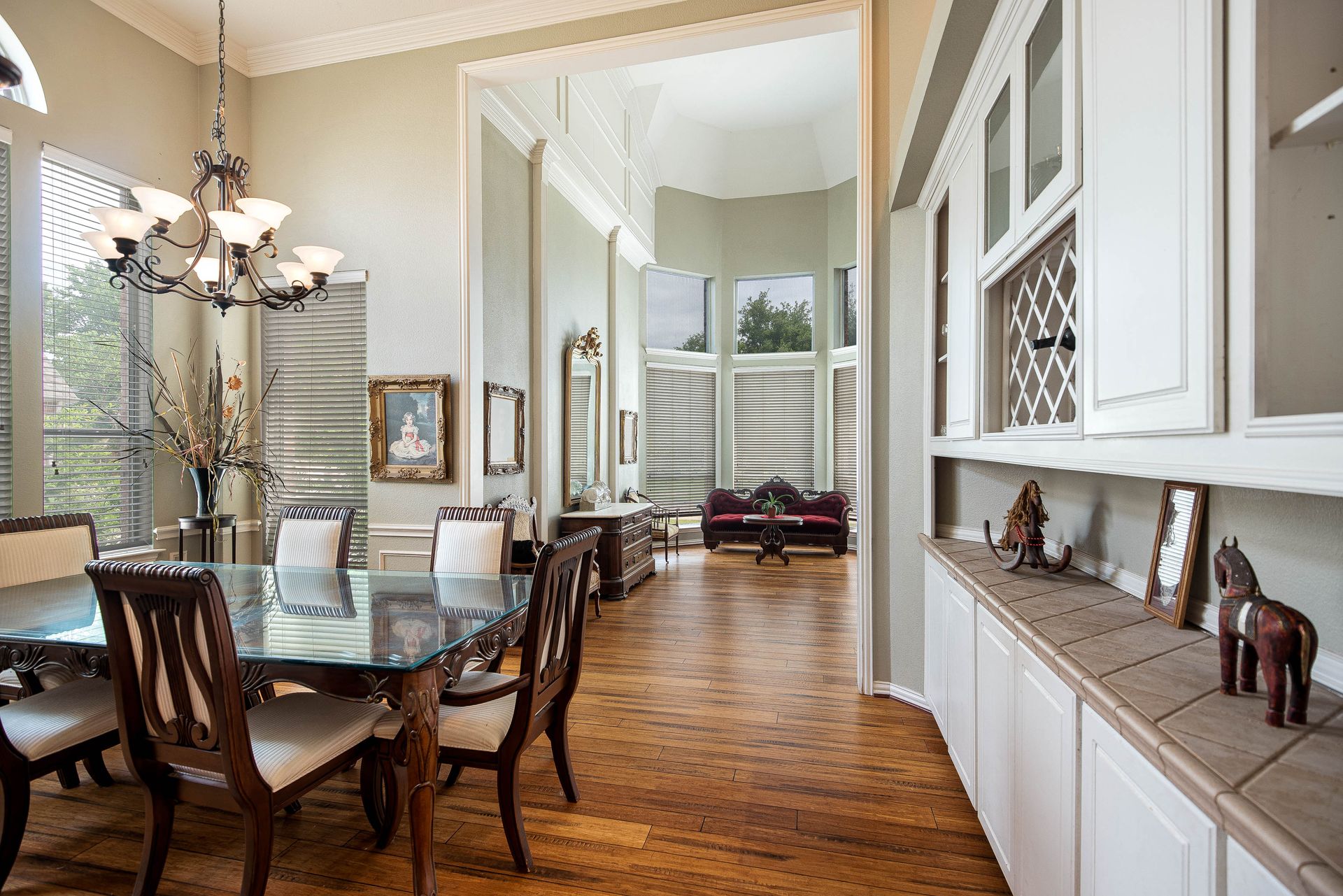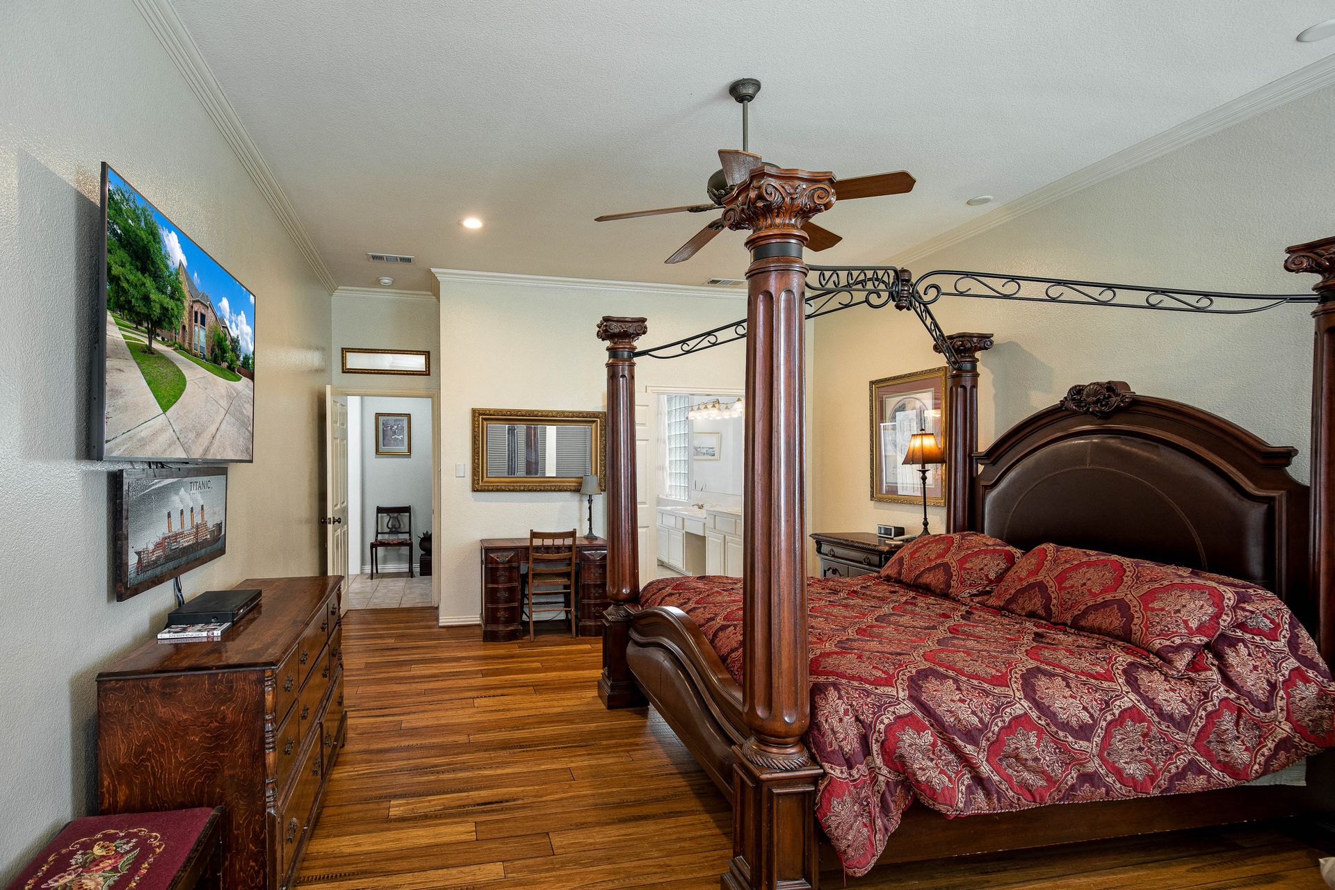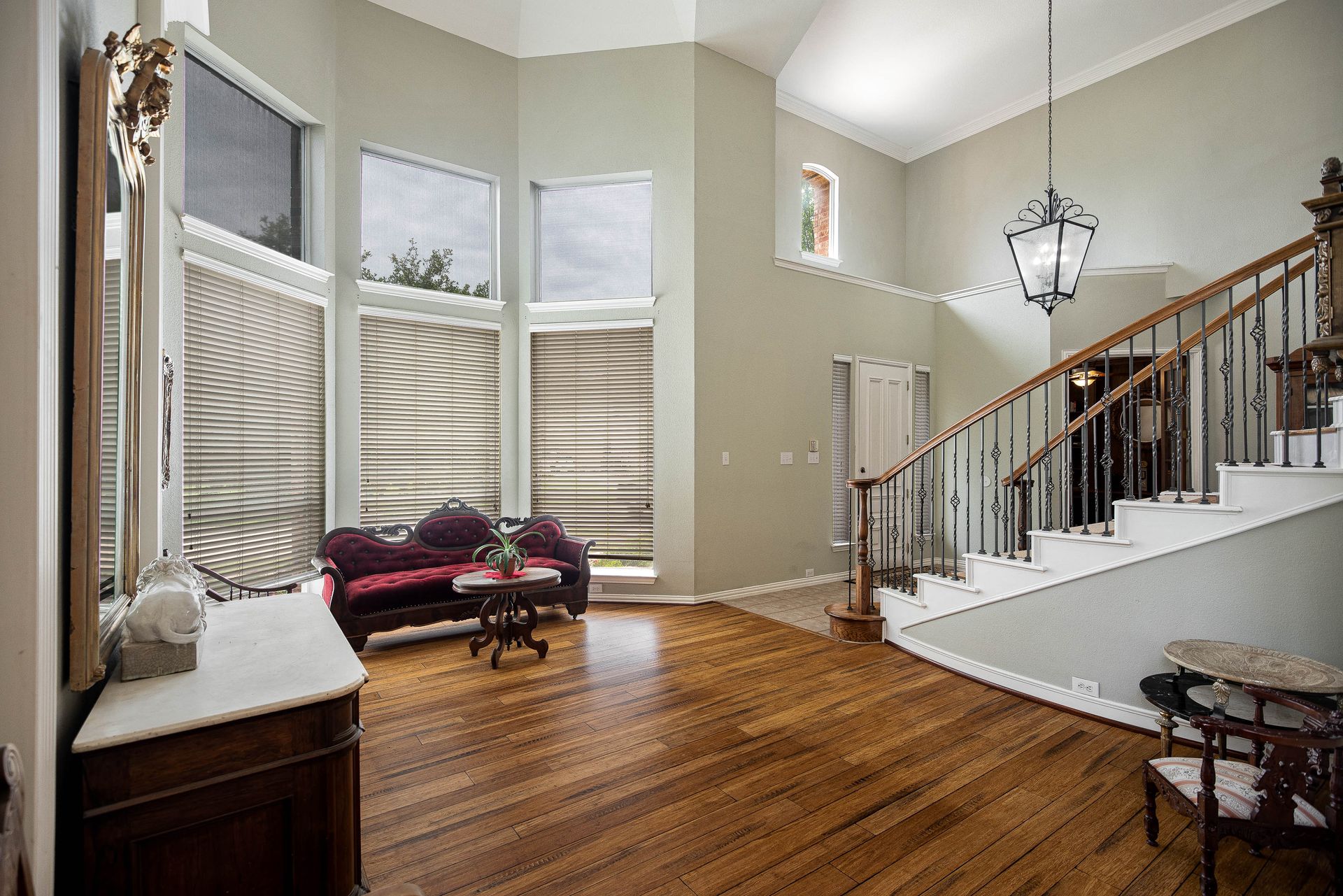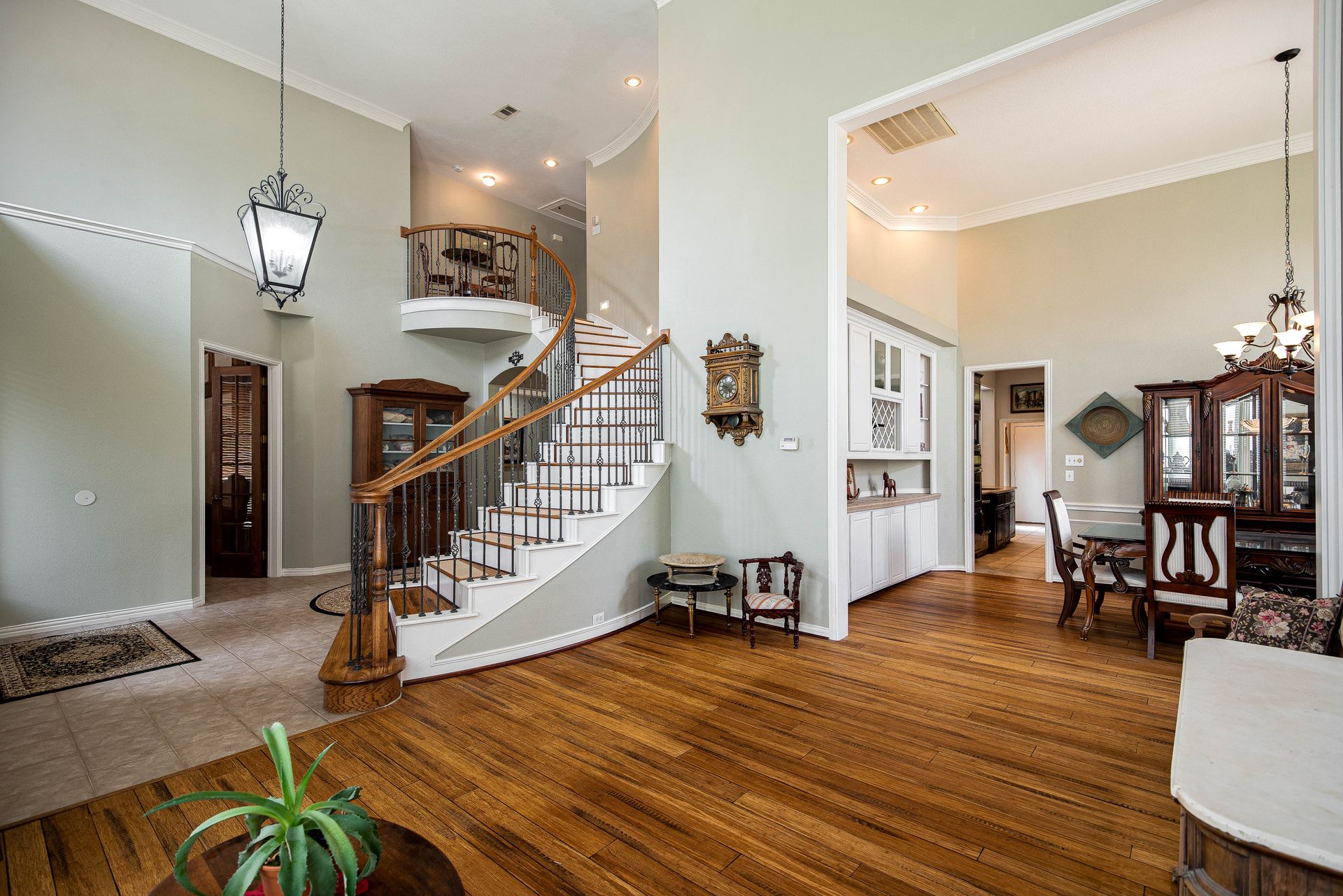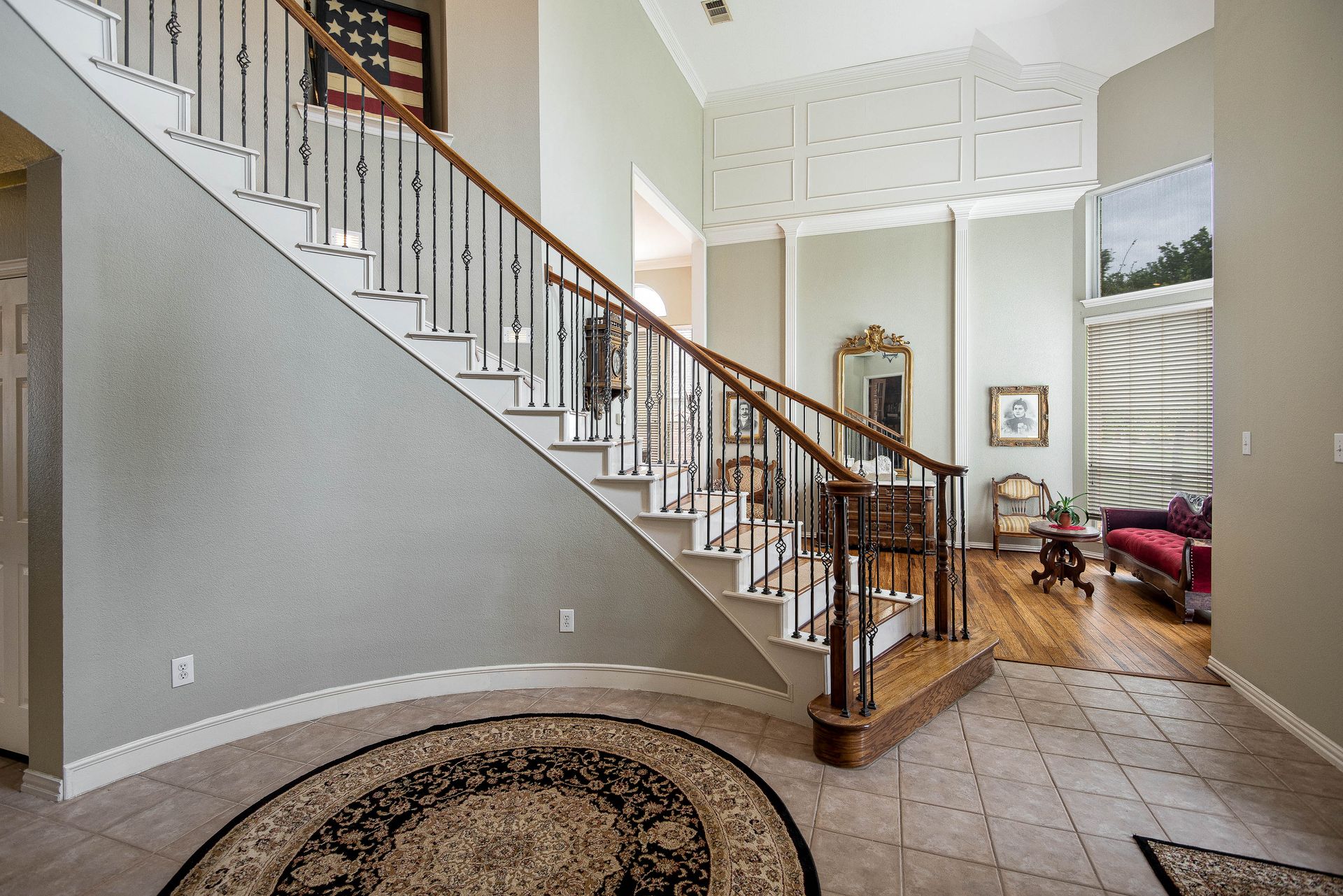 WELCOME HOME to resort living in Trophy Club! This beautiful custom Drees home is located in a gated neighborhood within the master planned golf club community and is conveniently located in the DFW metroplex! Grand entry showcases a circular staircase and soaring ceilings that open into a light and bright living room with gorgeous bamboo wood flooring. Executive office featuring French doors, custom wood moldings, and built in bookcase desk. Entertain in the formal living & dining areas with more custom built-ins. Eat-in kitchen is beautifully designed with an island and ample cabinets for storage! The cozy family room features a gas fireplace. Primary retreat has a sitting area and ensuite perfect for relaxing at the end of the day. 3 oversized bedrooms up. Two share a Jack and Jill bath and third has an additional full bath for guests. Large game room and media room provide for multiple entertaining areas. Complete with oversized 3 car garage and boat storage off oversized driveway.