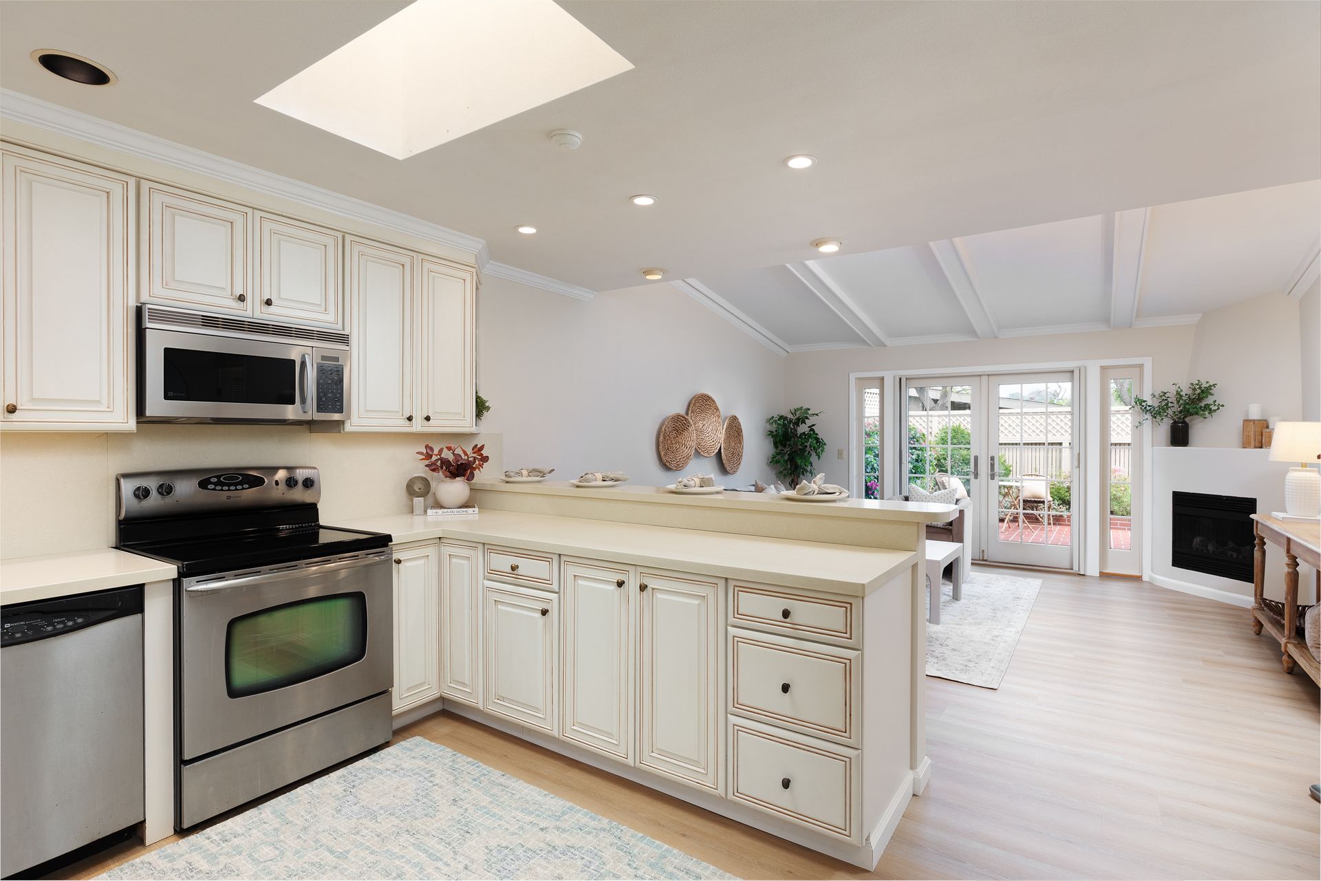 Welcome to 180 Hacienda in Carmel, where this two-bedroom, two-bath, approximately 910 square foot single-level condo offers comfort and luxury. Inside, freshly painted walls and newly installed luxury vinyl plank flooring create a sophisticated ambiance. The timeless kitchen shines with stainless steel appliances, ideal for chefs. Updated baths add elegance, and two walk-in closets provide ample storage for all of your clothes. Cozy up to the fireplace in the living room on cold nights. Outside, the large patio is ideal for soaking up the sun and the unit is close to both guest and covered parking for convenience. This condo boasts a private front yard that backs up to a tranquil walking trail, offering a unique outdoor escape. Nestled in a vibrant senior living community enjoy a clubhouse, recreation facility, RV/Boat storage and more! Embrace senior living in this Carmel oasis where luxury and natural beauty blend harmoniously. This won't last long so be sure to contact your Realtor for a showing today!