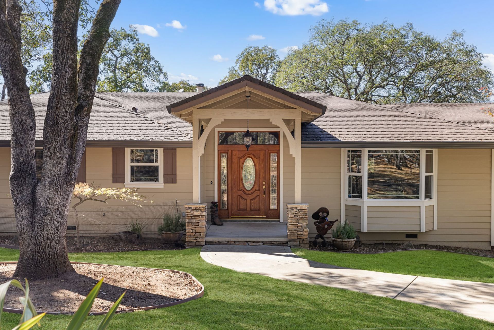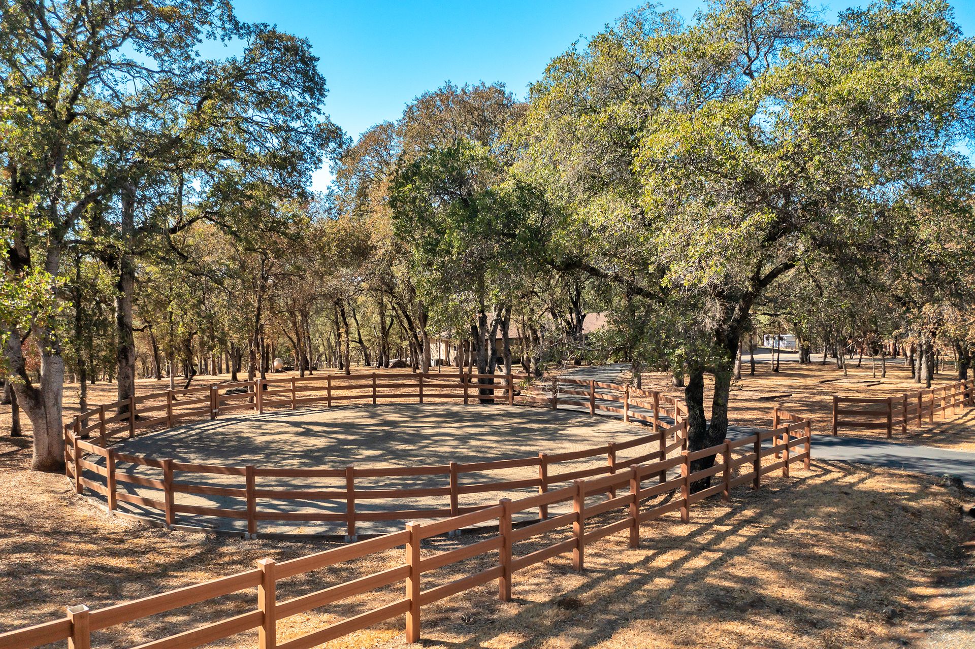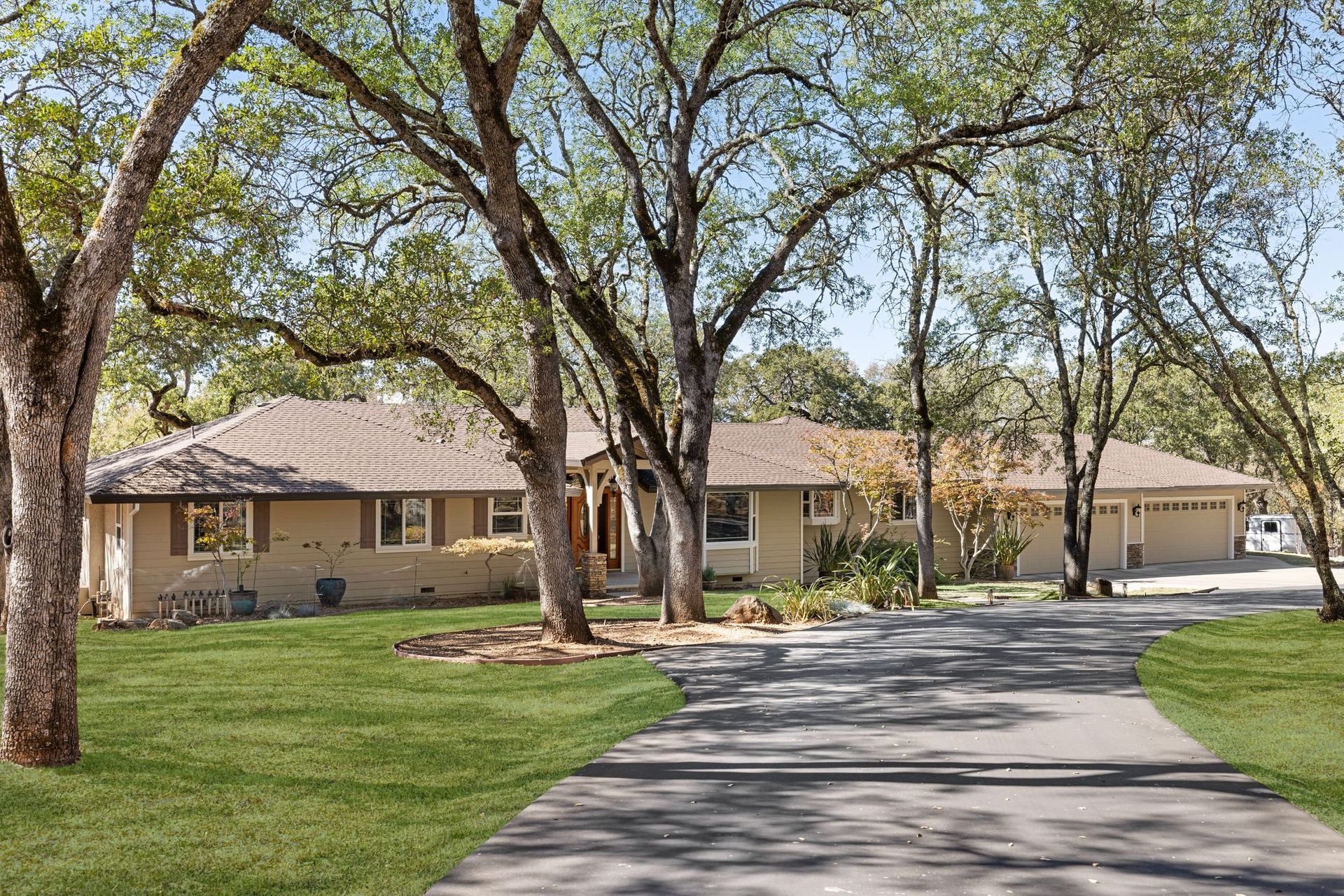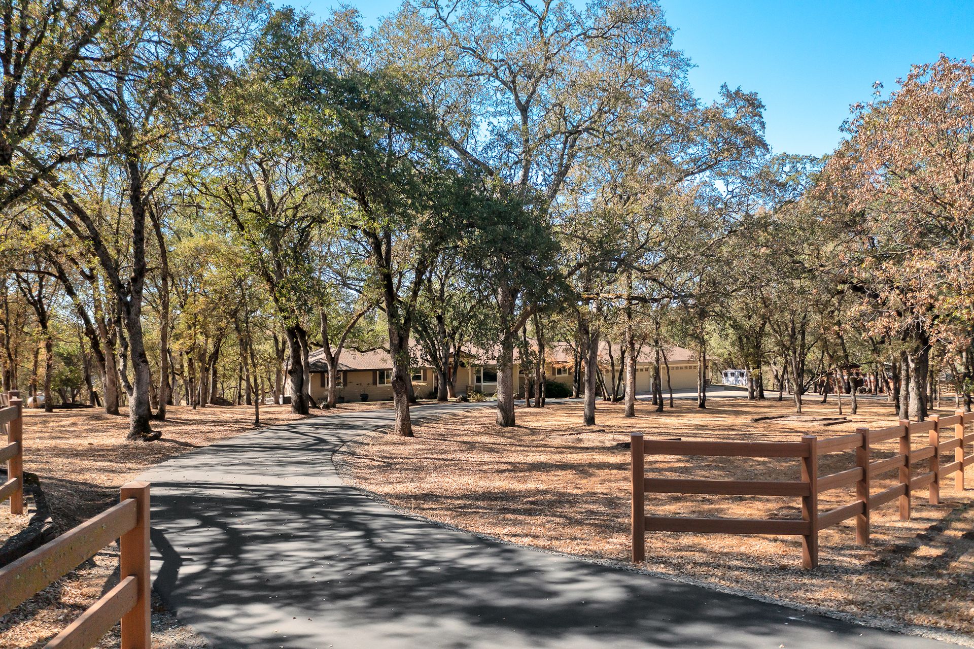 Nestled in highly sought after, Green Springs Ranch, this beautifully updated single-story 4-bedroom, 3-bathroom home offers a perfect blend of luxury and functionality on a flat, fully usable 5-acre parcel. Inside, the home features modern updates with elegant alder wood cabinetry throughout, luxury Thermador appliances, and a water softener system. Outdoors, enjoy the low-maintenance, expansive Trex decking, perfect for relaxing and entertaining. The property includes a massive 1,400 sq. ft. 4 car garage and a paved semi-circular driveway. Equestrian enthusiasts will love the 2-stall barn, complete with tack room, hay storage, and wash rack. The barn is outfitted with electricity, fans, water and can easily be converted to a shop. The pastures are cross-fenced and there is an oversized round pen. This gorgeous property offers plenty of room for adding a pool, gardens, or additional recreational features to make the most of this usable acreage. This serene and private retreat, zoned for Oak Ridge High School, combines luxurious living with practical amenities in an ideal location! A must-see for those seeking the perfect blend of rural charm and modern comforts!