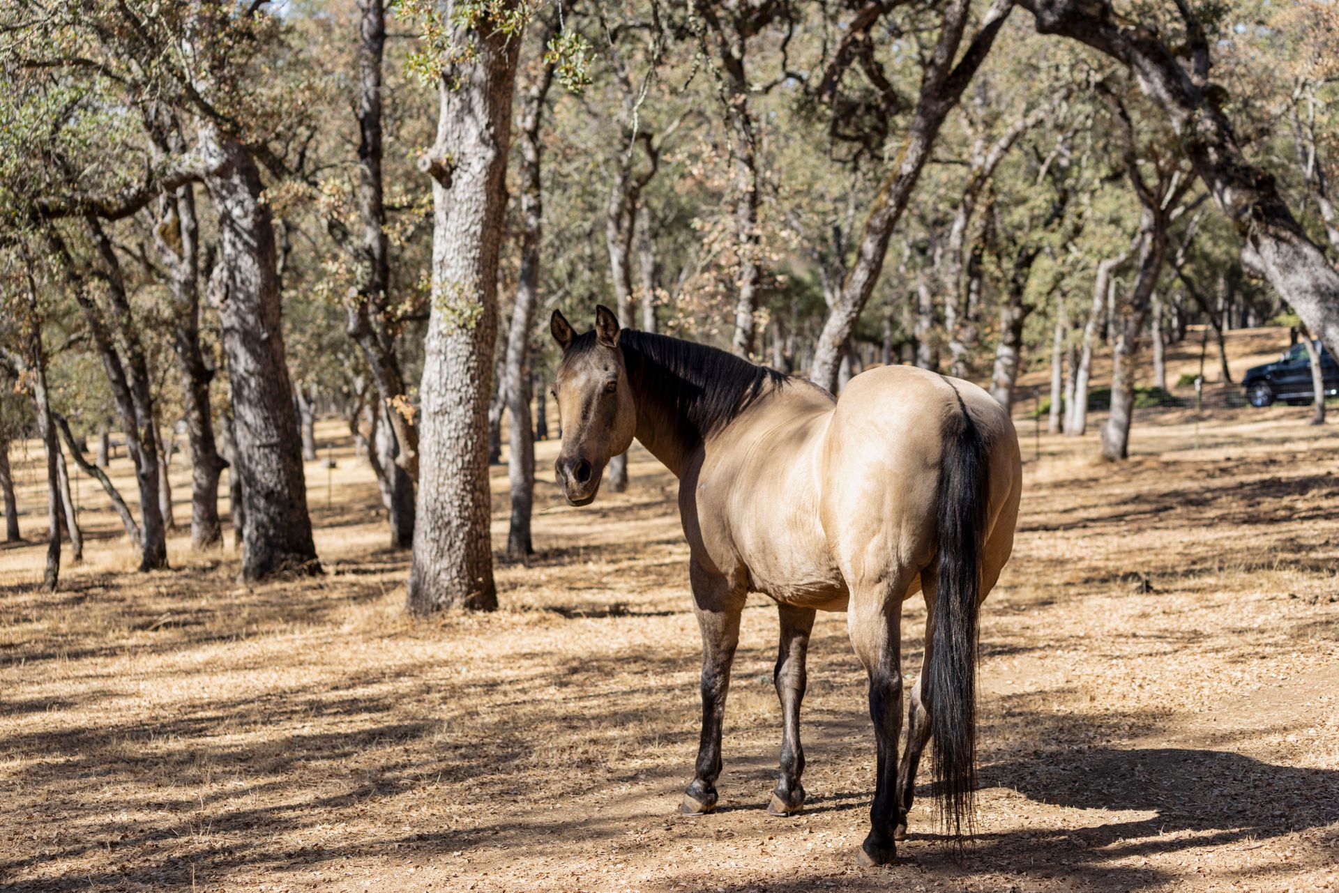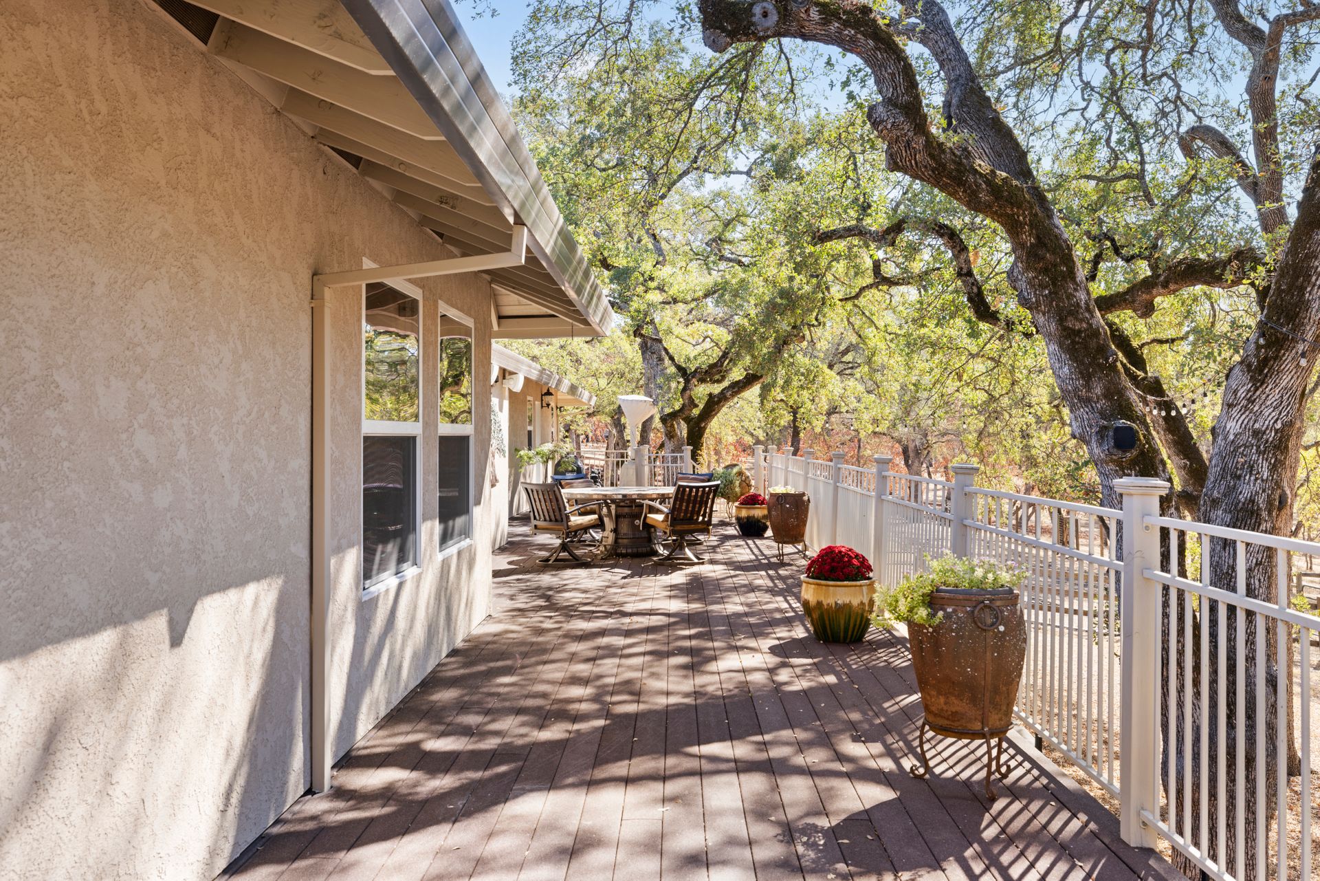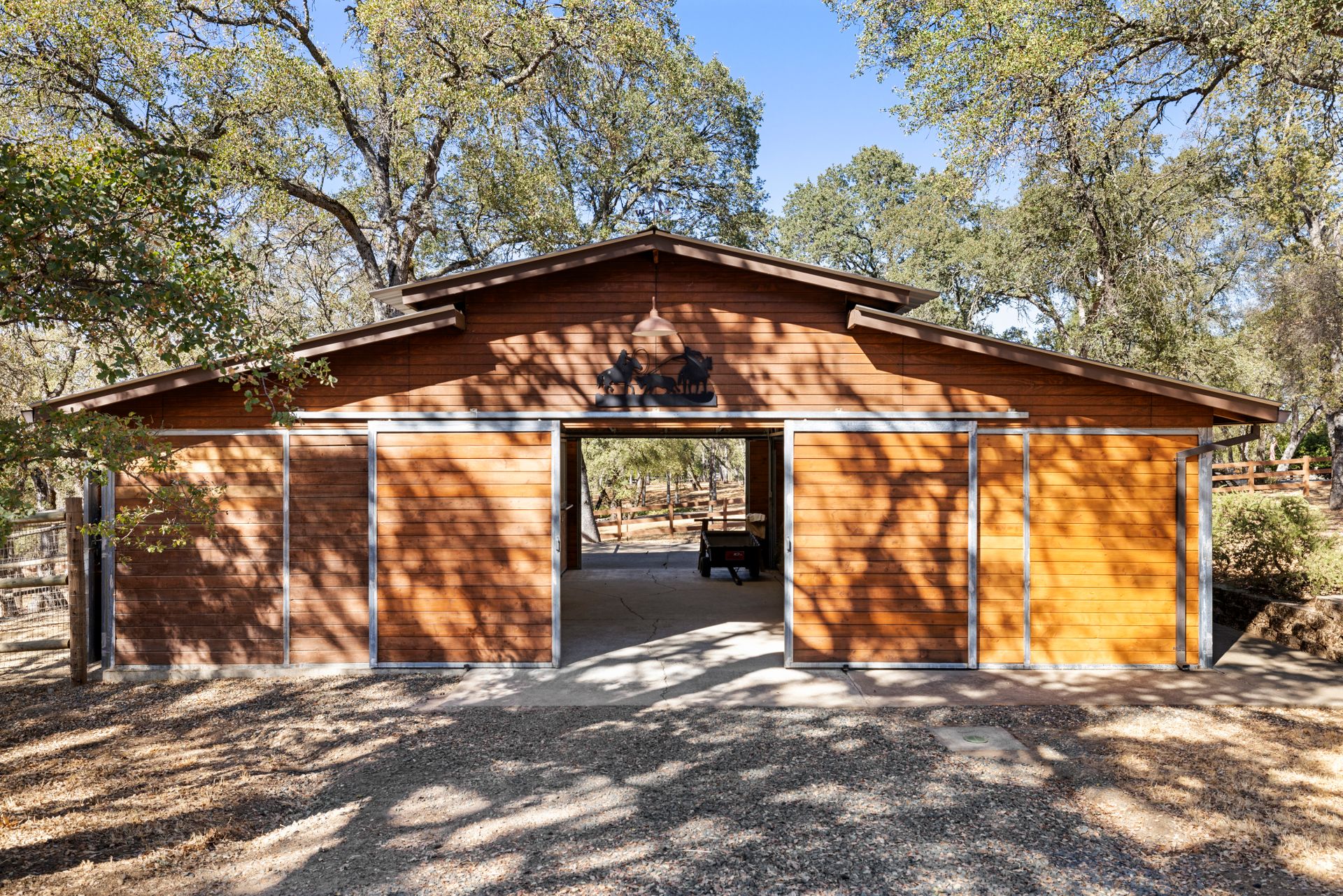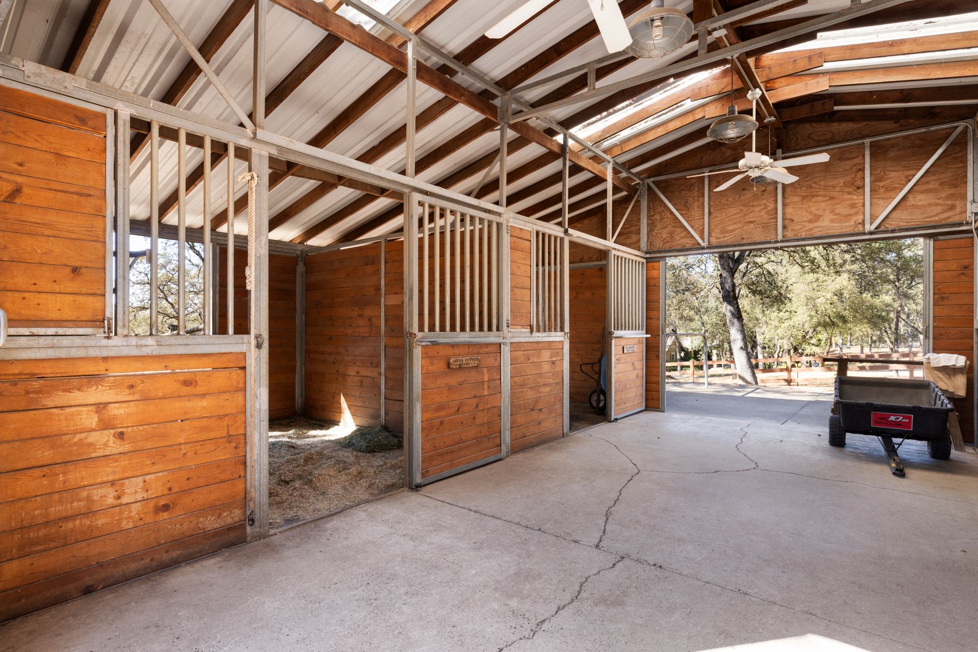 Nestled in highly sought after, Green Springs Ranch, this beautifully updated single-story 4-bedroom, 3-bathroom home offers a perfect blend of luxury and functionality on a flat, fully usable 5-acre parcel. Inside, the home features modern updates with elegant alder wood cabinetry throughout, luxury Thermador appliances, and a water softener system. Outdoors, enjoy the low-maintenance, expansive Trex decking, perfect for relaxing and entertaining. The property includes a massive 1,400 sq. ft. 4 car garage and a paved semi-circular driveway. Equestrian enthusiasts will love the 2-stall barn, complete with tack room, hay storage, and wash rack. The barn is outfitted with electricity, fans, water and can easily be converted to a shop. The pastures are cross-fenced and there is an oversized round pen. This gorgeous property offers plenty of room for adding a pool, gardens, or additional recreational features to make the most of this usable acreage. This serene and private retreat, zoned for Oak Ridge High School, combines luxurious living with practical amenities in an ideal location! A must-see for those seeking the perfect blend of rural charm and modern comforts!