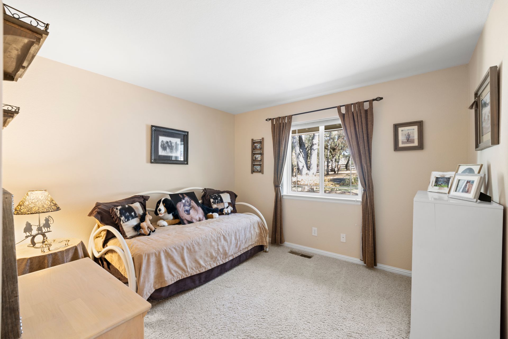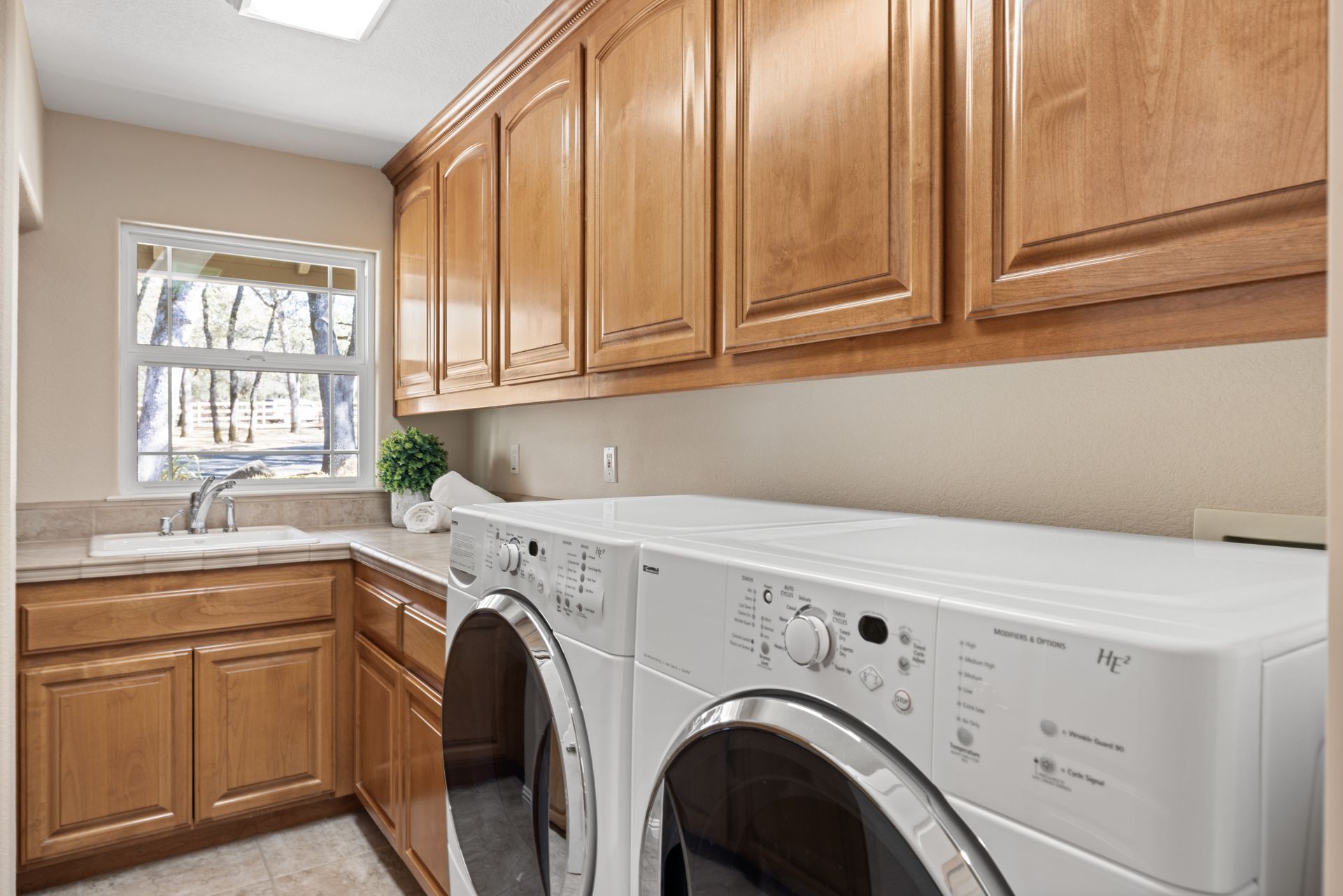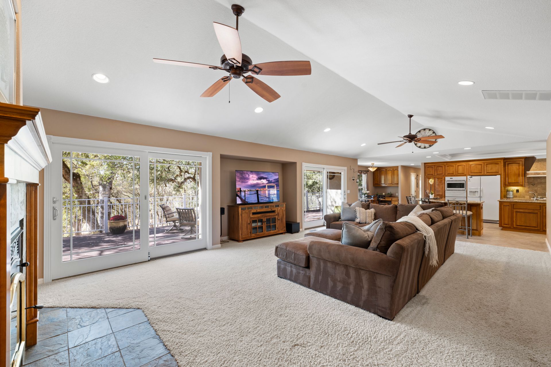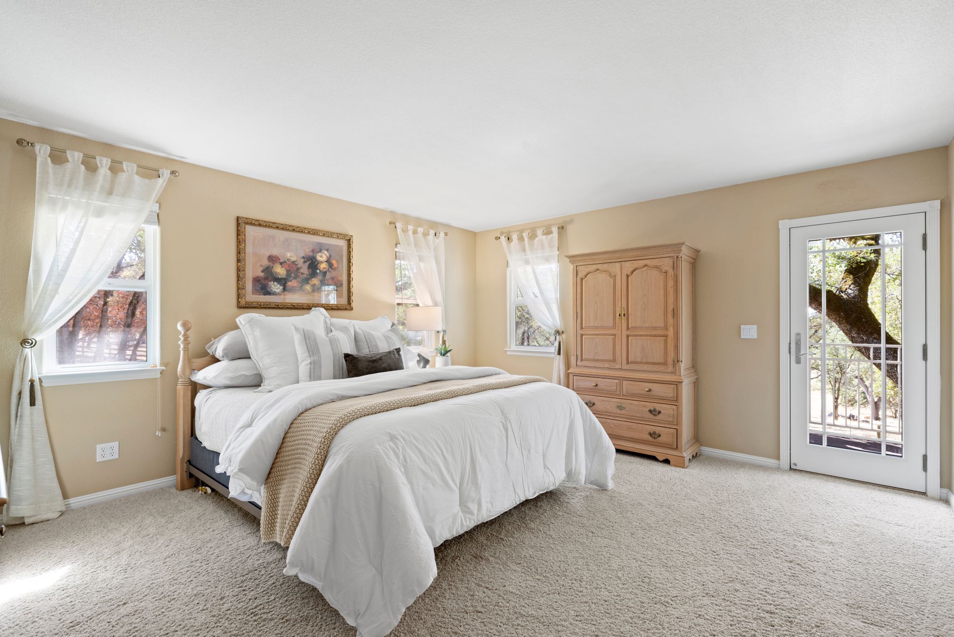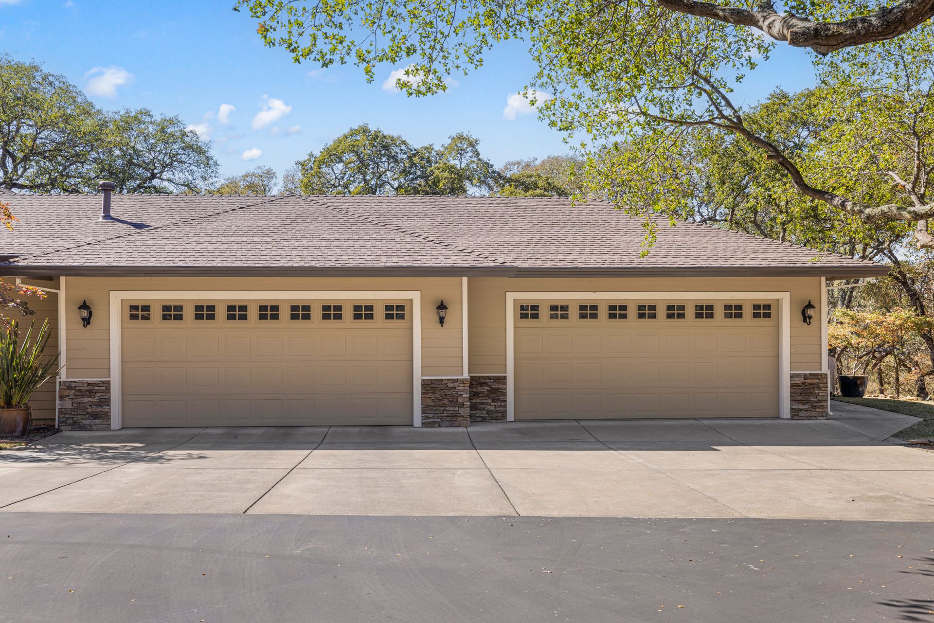 Nestled in highly sought after, Green Springs Ranch, this beautifully updated single-story 4-bedroom, 3-bathroom home offers a perfect blend of luxury and functionality on a flat, fully usable 5-acre parcel. Inside, the home features modern updates with elegant alder wood cabinetry throughout, luxury Thermador appliances, and a water softener system. Outdoors, enjoy the low-maintenance, expansive Trex decking, perfect for relaxing and entertaining. The property includes a massive 1,400 sq. ft. 4 car garage and a paved semi-circular driveway. Equestrian enthusiasts will love the 2-stall barn, complete with tack room, hay storage, and wash rack. The barn is outfitted with electricity, fans, water and can easily be converted to a shop. The pastures are cross-fenced and there is an oversized round pen. This gorgeous property offers plenty of room for adding a pool, gardens, or additional recreational features to make the most of this usable acreage. This serene and private retreat, zoned for Oak Ridge High School, combines luxurious living with practical amenities in an ideal location! A must-see for those seeking the perfect blend of rural charm and modern comforts!