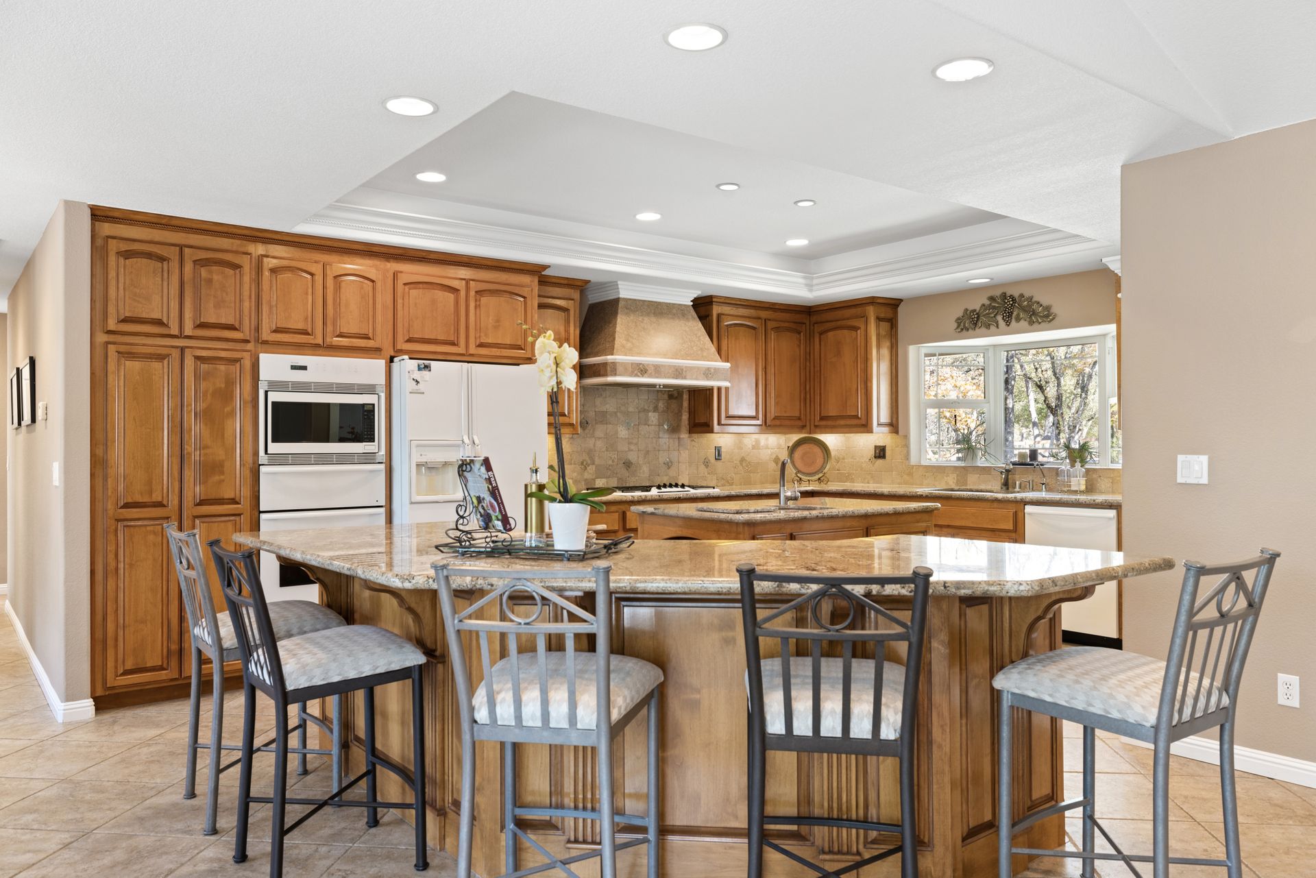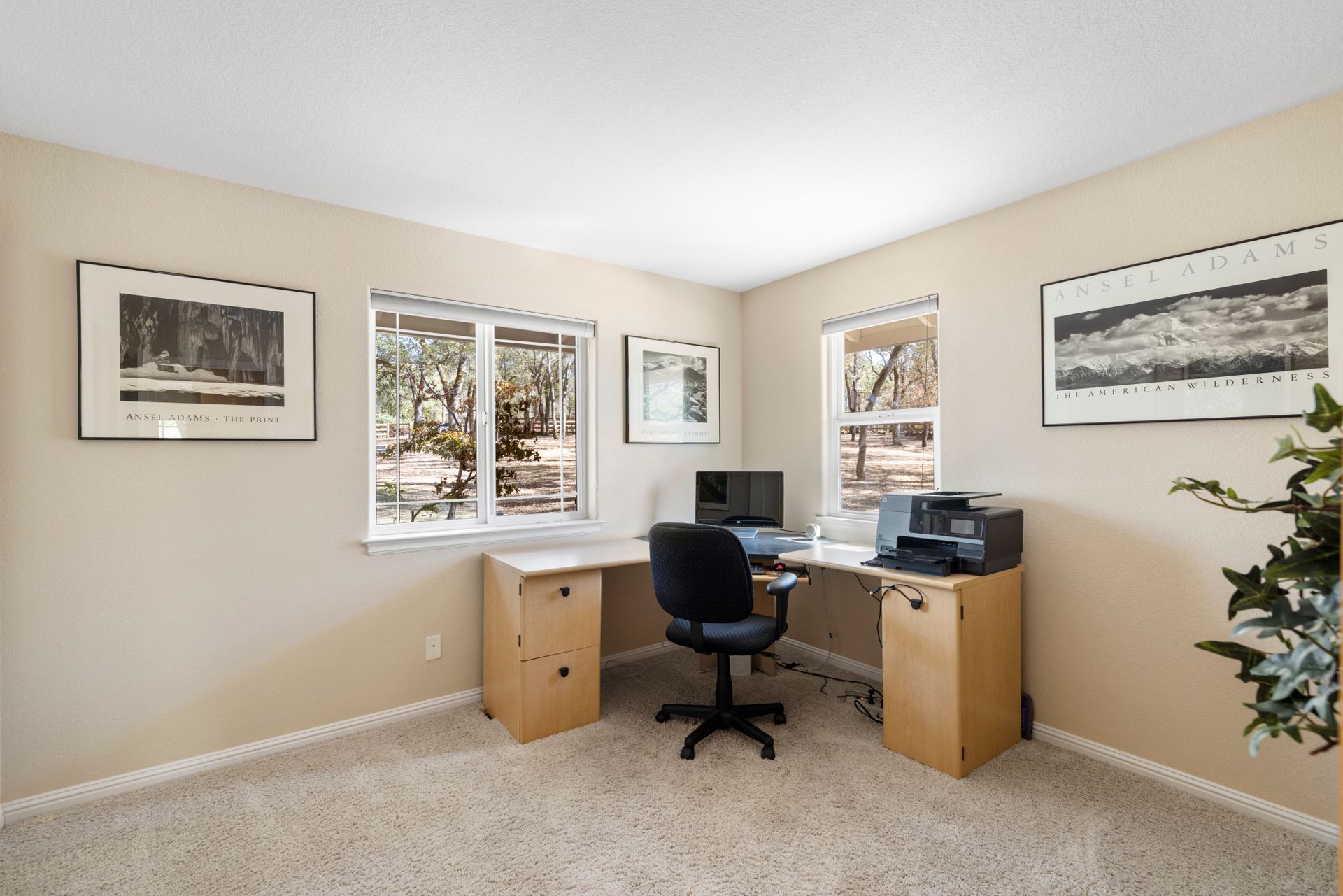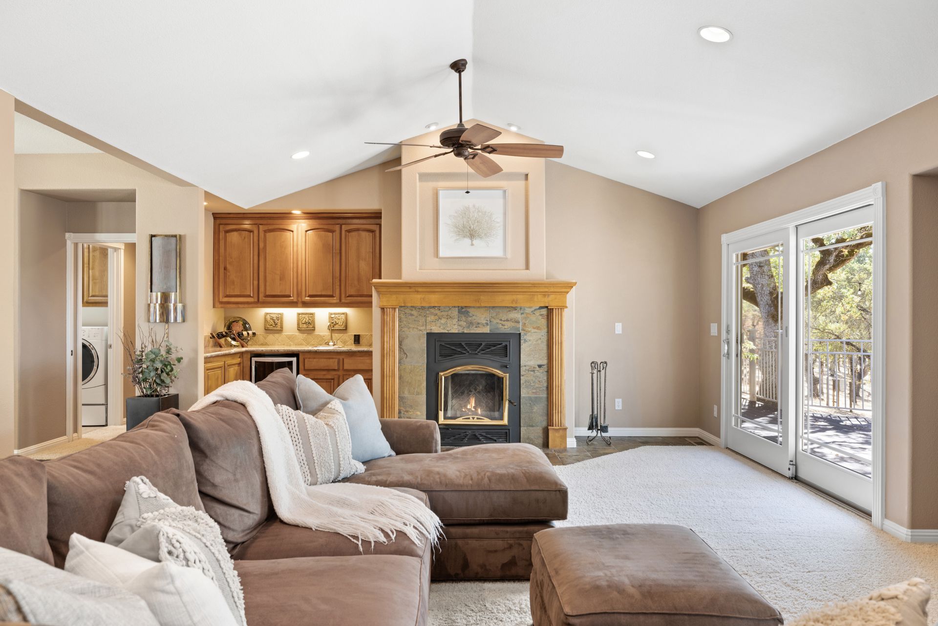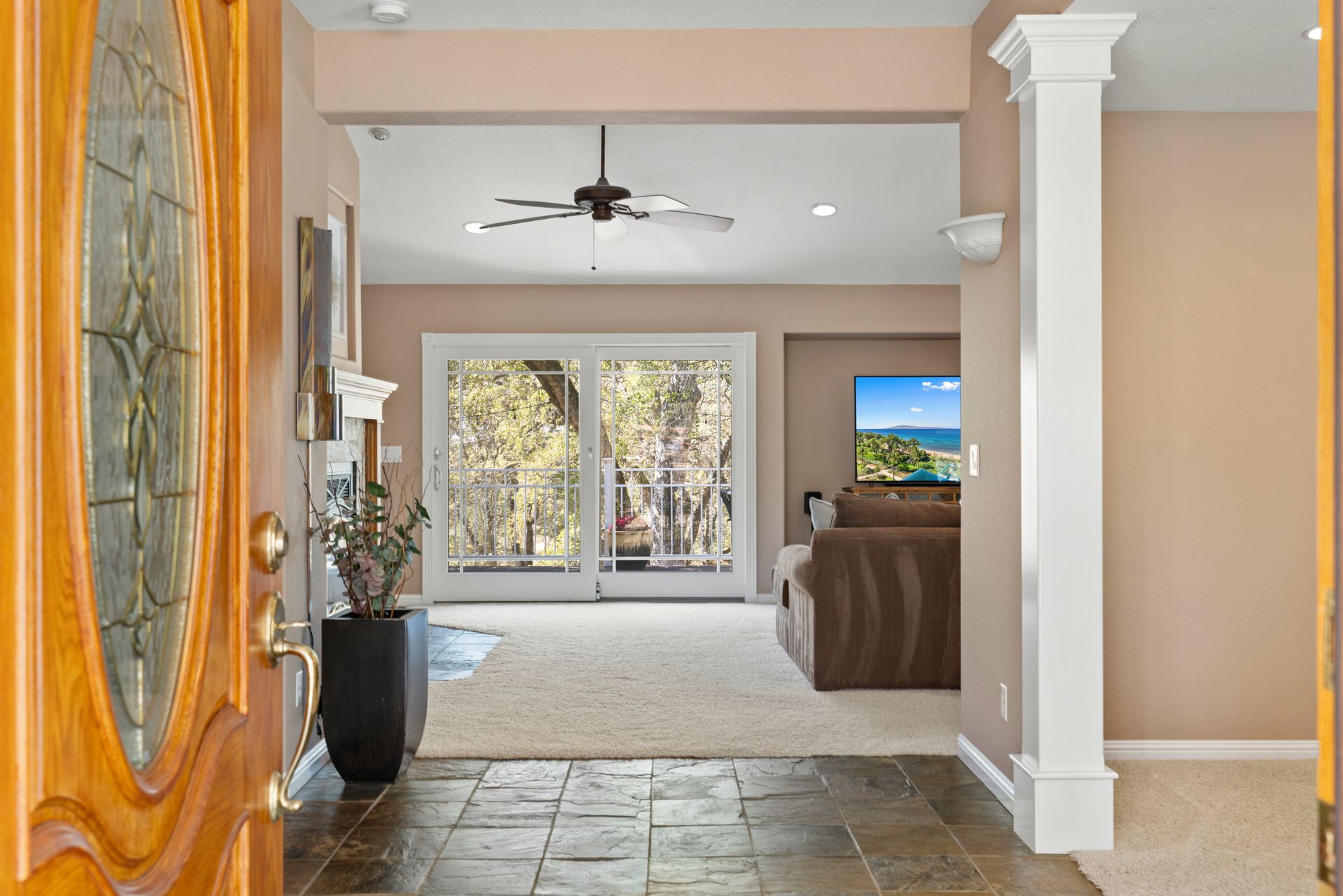 Nestled in highly sought after, Green Springs Ranch, this beautifully updated single-story 4-bedroom, 3-bathroom home offers a perfect blend of luxury and functionality on a flat, fully usable 5-acre parcel. Inside, the home features modern updates with elegant alder wood cabinetry throughout, luxury Thermador appliances, and a water softener system. Outdoors, enjoy the low-maintenance, expansive Trex decking, perfect for relaxing and entertaining. The property includes a massive 1,400 sq. ft. 4 car garage and a paved semi-circular driveway. Equestrian enthusiasts will love the 2-stall barn, complete with tack room, hay storage, and wash rack. The barn is outfitted with electricity, fans, water and can easily be converted to a shop. The pastures are cross-fenced and there is an oversized round pen. This gorgeous property offers plenty of room for adding a pool, gardens, or additional recreational features to make the most of this usable acreage. This serene and private retreat, zoned for Oak Ridge High School, combines luxurious living with practical amenities in an ideal location! A must-see for those seeking the perfect blend of rural charm and modern comforts!