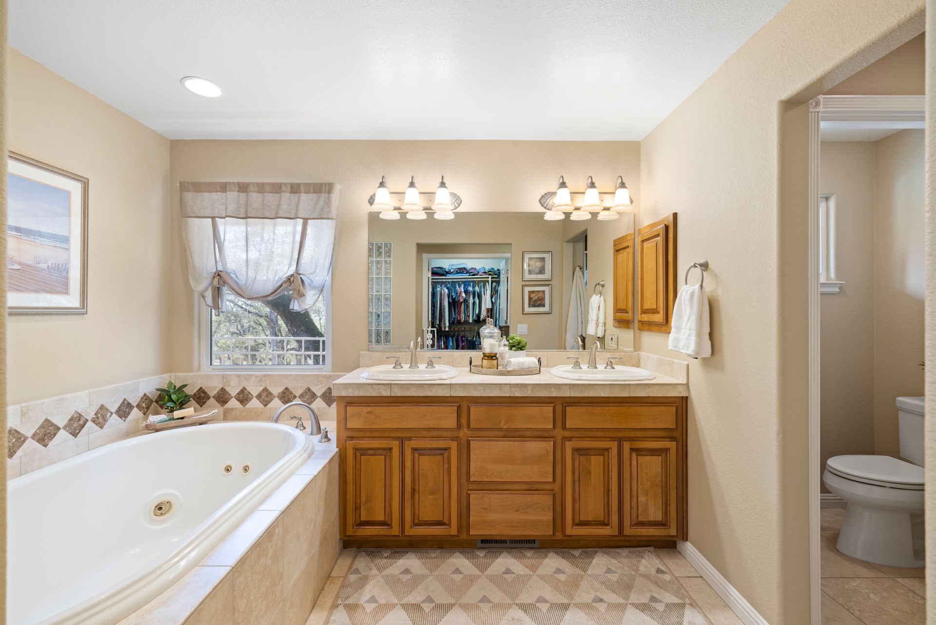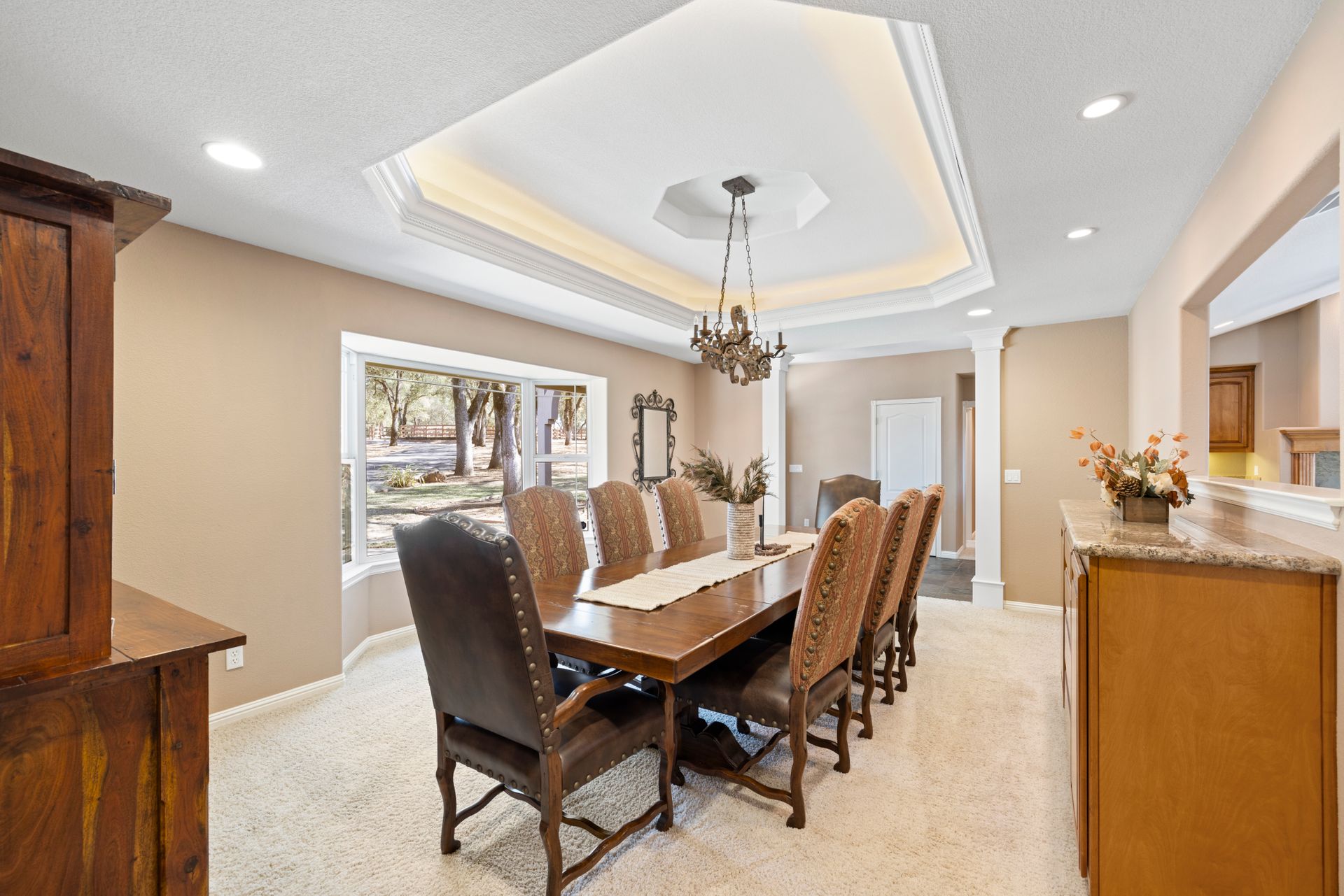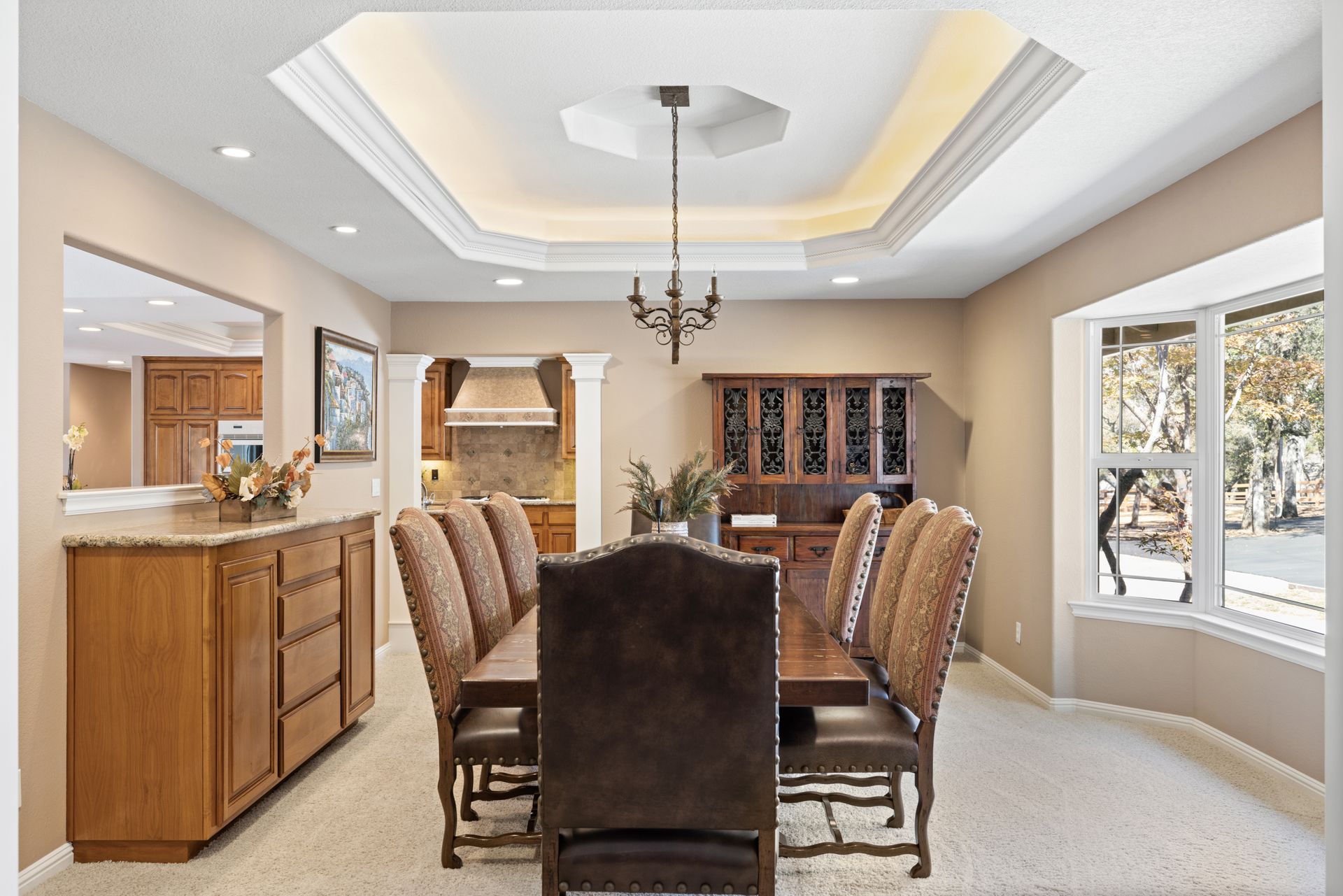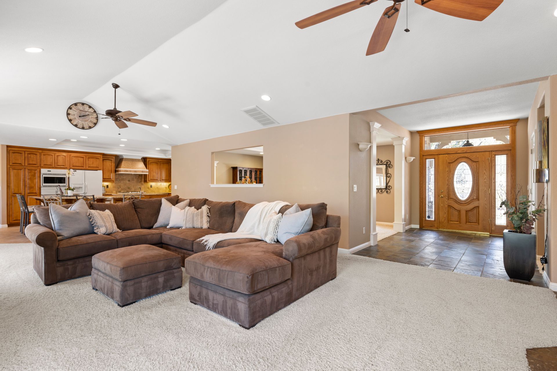 Nestled in highly sought after, Green Springs Ranch, this beautifully updated single-story 4-bedroom, 3-bathroom home offers a perfect blend of luxury and functionality on a flat, fully usable 5-acre parcel. Inside, the home features modern updates with elegant alder wood cabinetry throughout, luxury Thermador appliances, and a water softener system. Outdoors, enjoy the low-maintenance, expansive Trex decking, perfect for relaxing and entertaining. The property includes a massive 1,400 sq. ft. 4 car garage and a paved semi-circular driveway. Equestrian enthusiasts will love the 2-stall barn, complete with tack room, hay storage, and wash rack. The barn is outfitted with electricity, fans, water and can easily be converted to a shop. The pastures are cross-fenced and there is an oversized round pen. This gorgeous property offers plenty of room for adding a pool, gardens, or additional recreational features to make the most of this usable acreage. This serene and private retreat, zoned for Oak Ridge High School, combines luxurious living with practical amenities in an ideal location! A must-see for those seeking the perfect blend of rural charm and modern comforts!