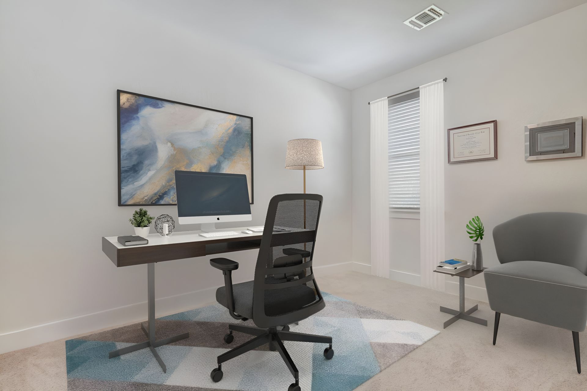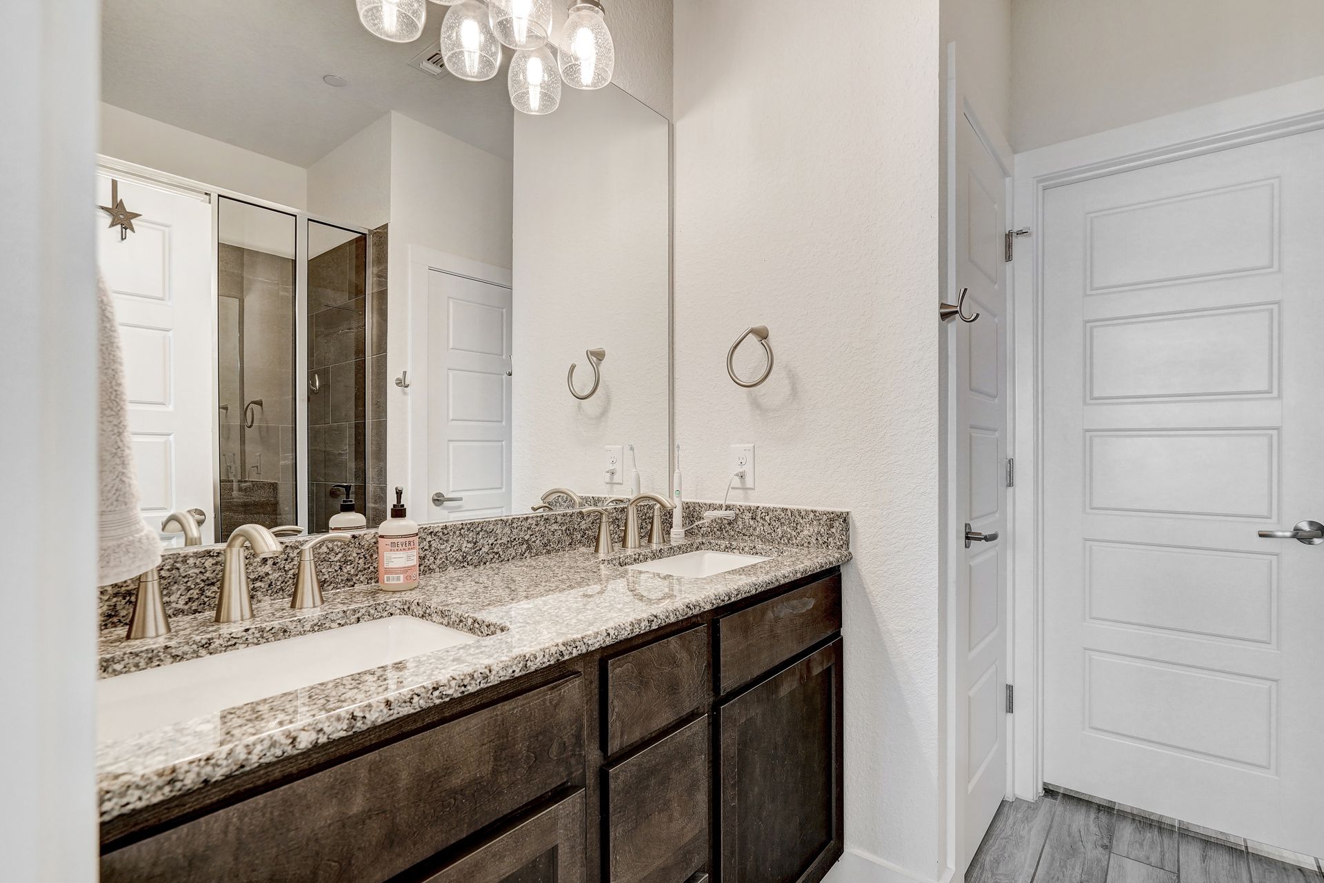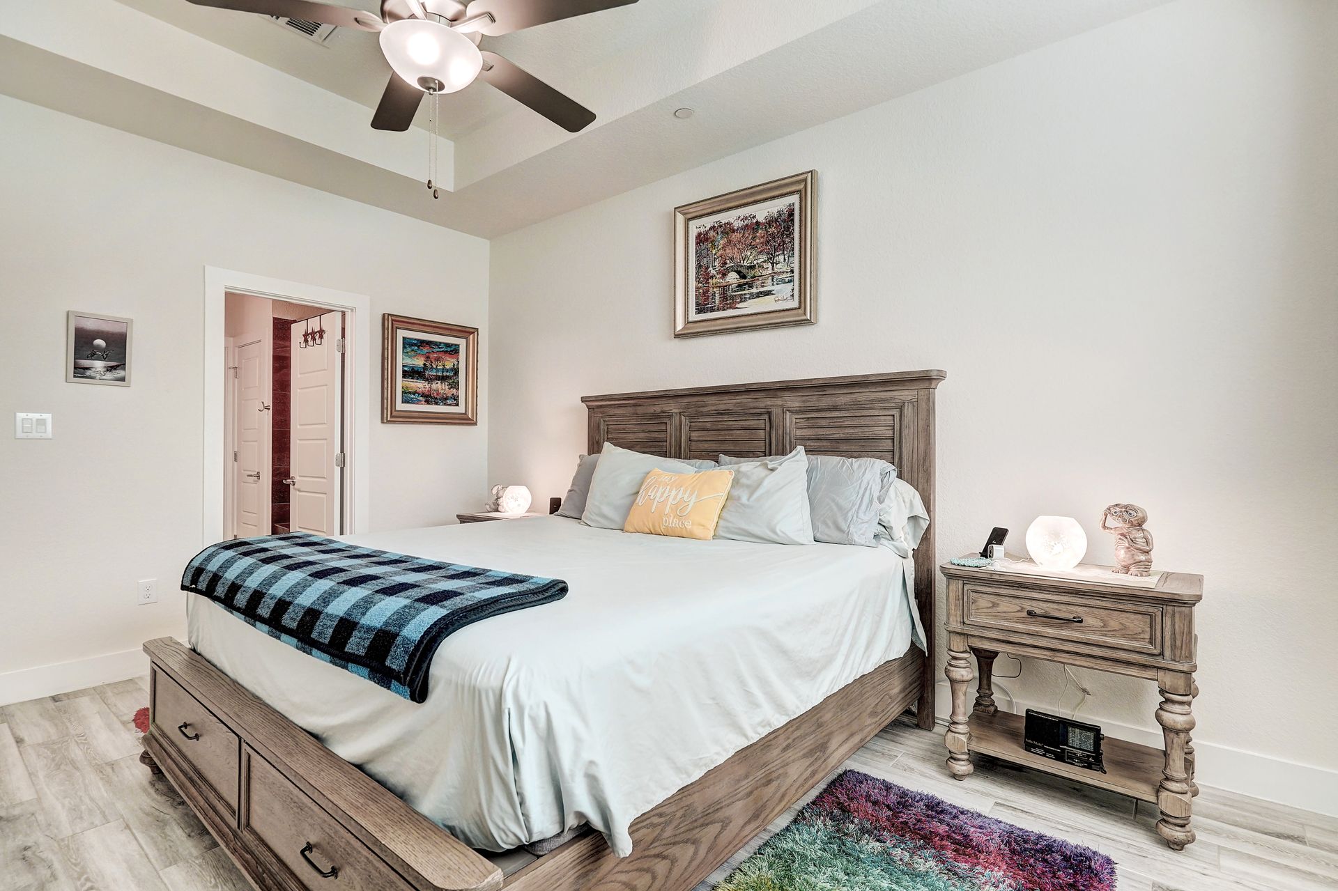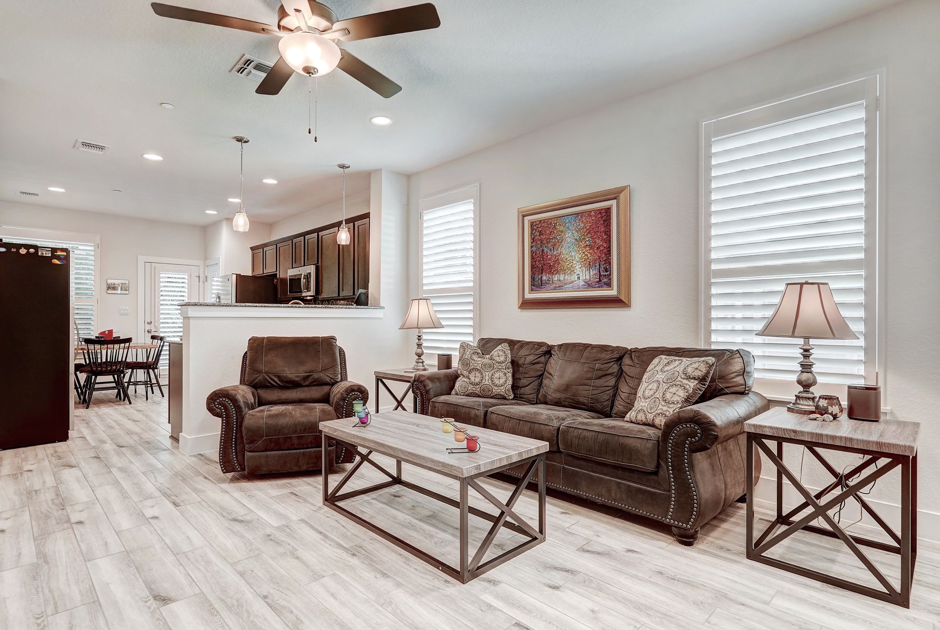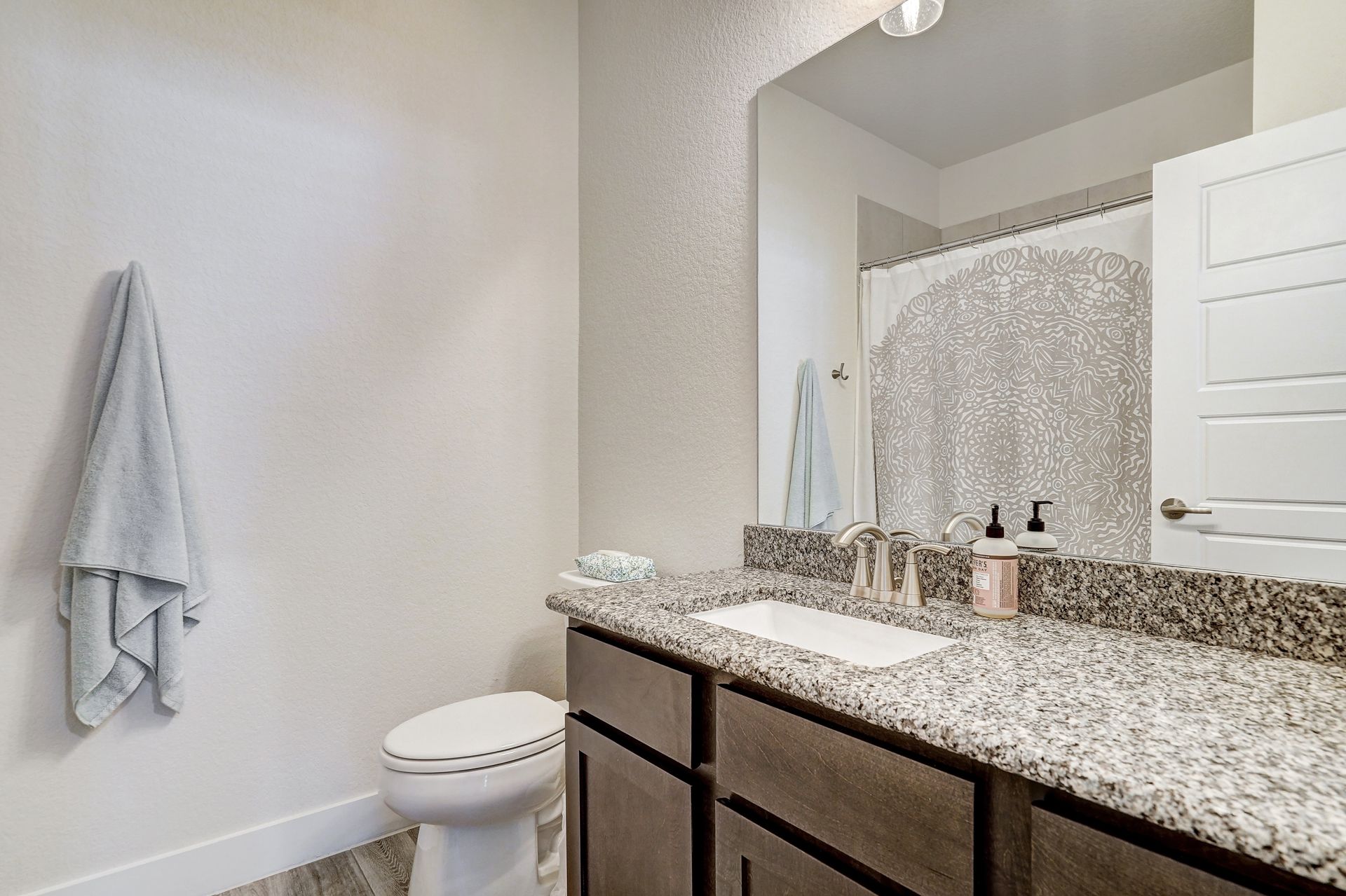 Step into a spacious floor plan with soaring ceilings and abundant natural light that creates a bright and inviting atmosphere, perfect for both relaxation and productivity. The main floor features a luxurious primary bedroom suite with a dual granite vanity, walk-in shower, and expansive closets. Upstairs, a versatile second living area awaits, ideal for a home office, game room, or cozy retreat, complemented by ample storage space.
