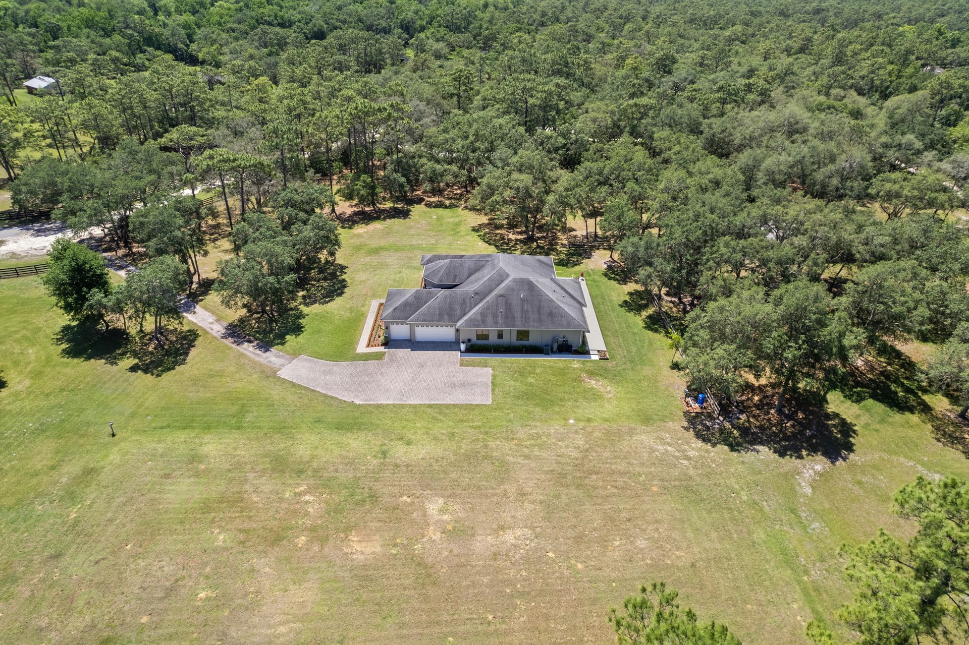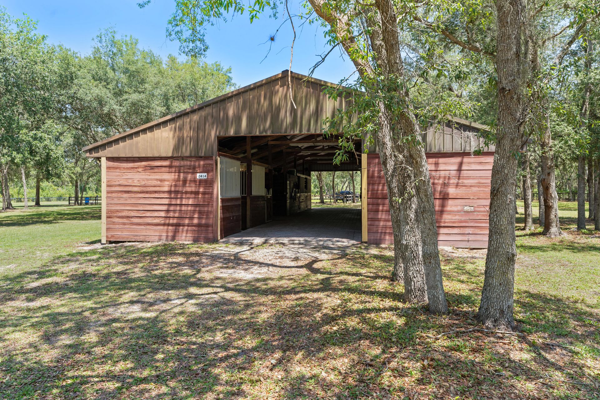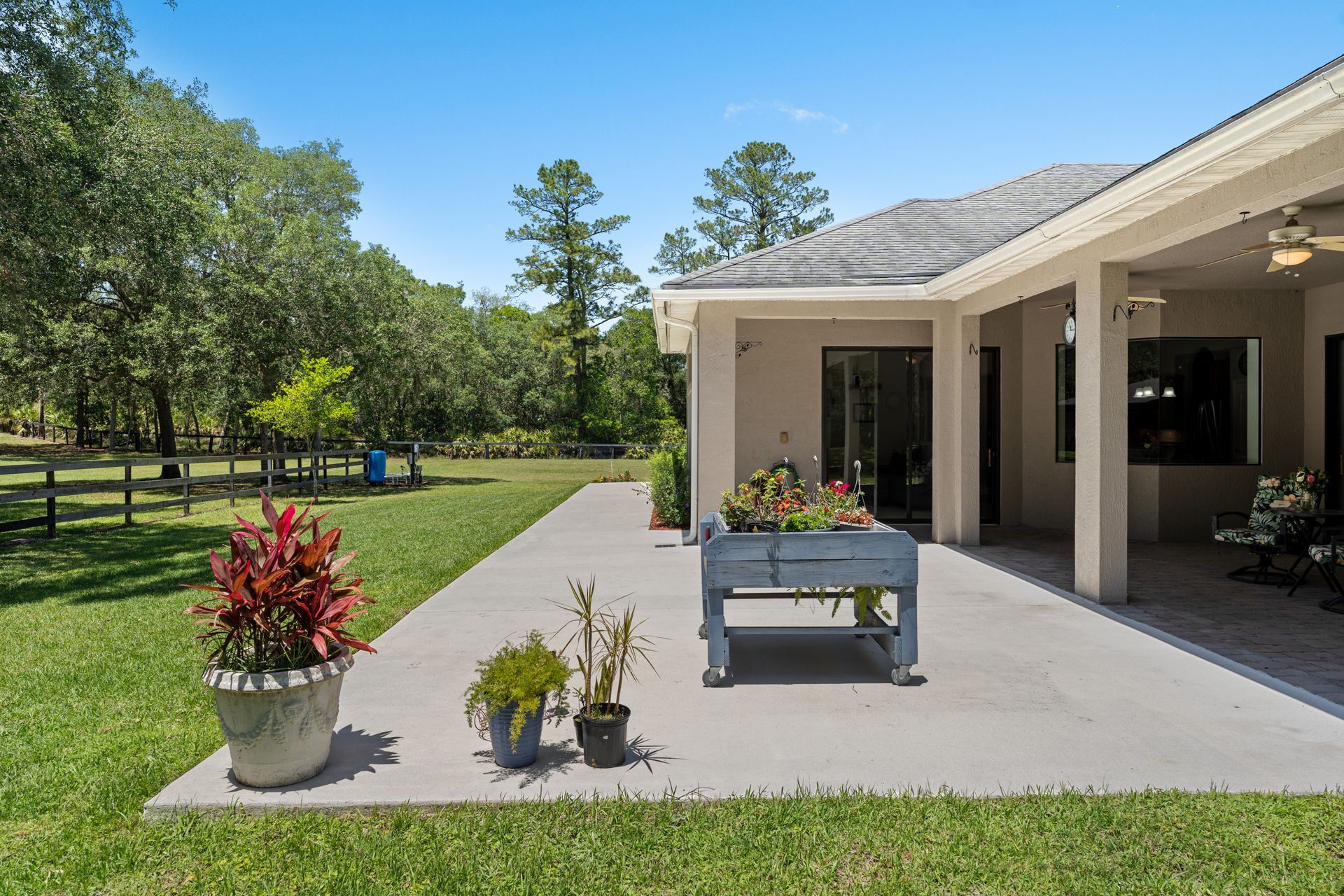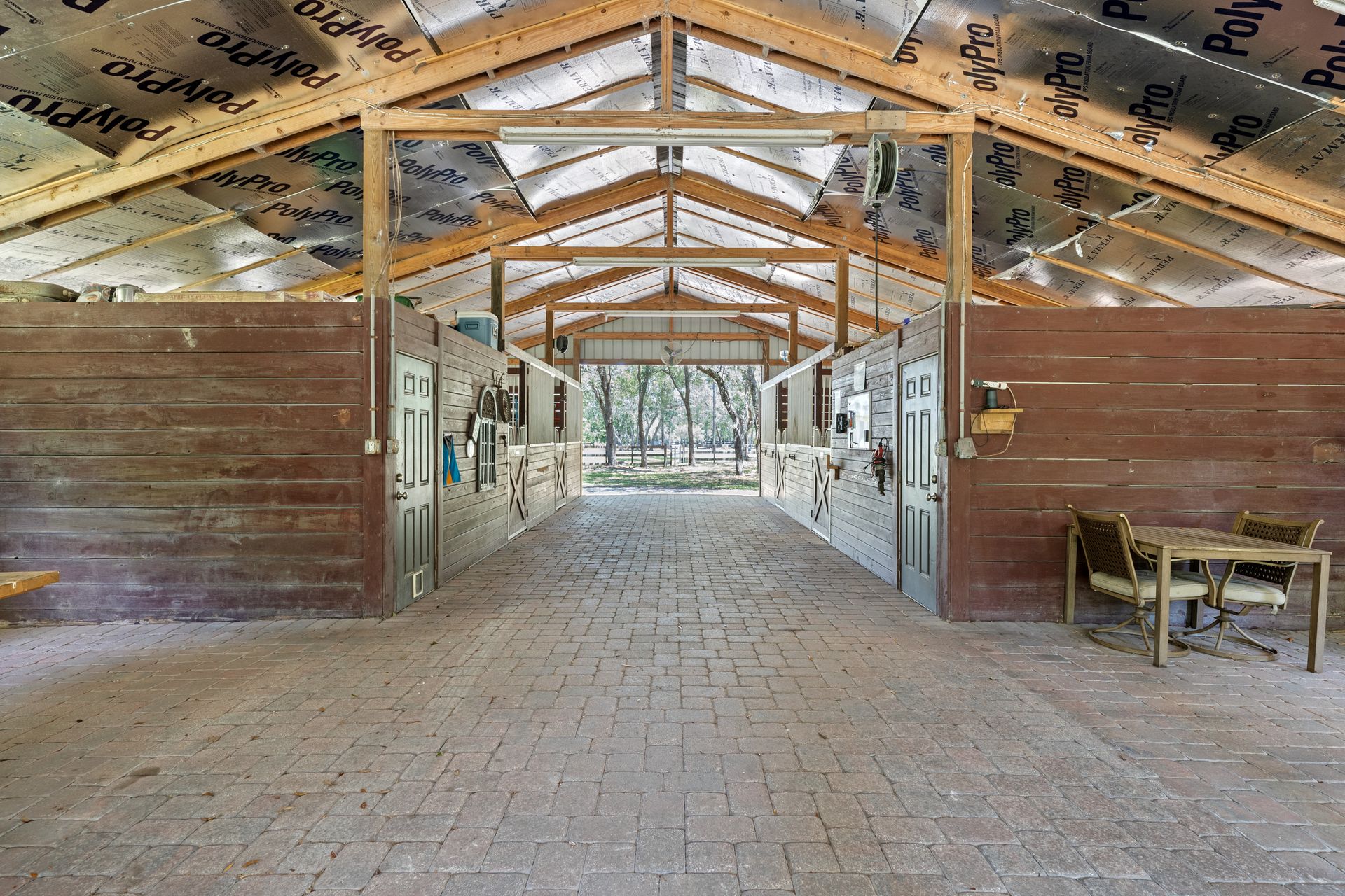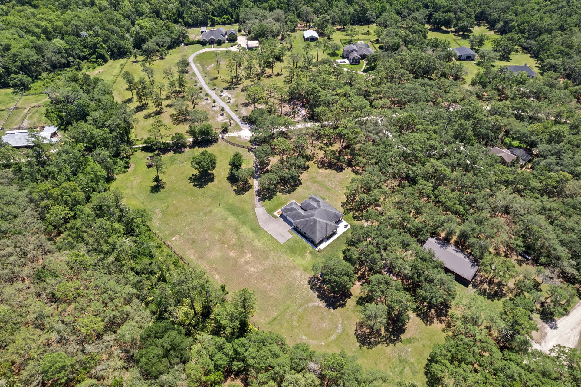 This gorgeous 5.25-acre estate is located at the end of a cul-de-sac and features an 8-stall barn that is well-maintained and ready for your horses. The barn features a tack room with A/C, feed room with refrigerator, two inside wash racks, insulated roof system along with extra wide 14-foot brick paver isle way for traction and easy drainage. The feed room is plumbed to add a water heater. Barn is also equipped with a compressor for car enthusiasts. The property offers a separate entrance to the barn on the backside of the property for tenants or horse trailers, farrier and vet. There is plenty of land to add more pasture areas at the front of property. The barn and the property are a horse-lovers dream, but the interior of the four bedroom, three bath home is a showstopper! Most rooms have been freshly painted and the dark hardwood floors are complemented by the soaring ceilings. A gourmet kitchen offers granite counters, center island, breakfast bar, stainless steel appliances and a wine fridge. The eat-in nook offers a fabulous view of the covered patio and barn through the massive seamless glass window. The primary suite with dual closets has private access to a covered lanai overlooking the peaceful and private back of the property. The patio is pre-plumbed for a future outdoor gas grill/kitchen area. The en-suite bath is a spa-like retreat with centerpiece jetted garden tub, separate oversized, glass-enclosed shower stall and individual vanities with granite counters. The exterior of the home was painted in 2019. Constructed with Icynene foam insulation and double-lined walls means low electric bills. The three-car garage features overhead storage racks and closet organization system. Must-have features in any rural estate home include a 3HP deep water well, concrete gravity septic and water softener system. This peaceful, private and quiet setting and is only minutes to 419 for easy access to major highways for a quick commute and area schools. Welcome Home!