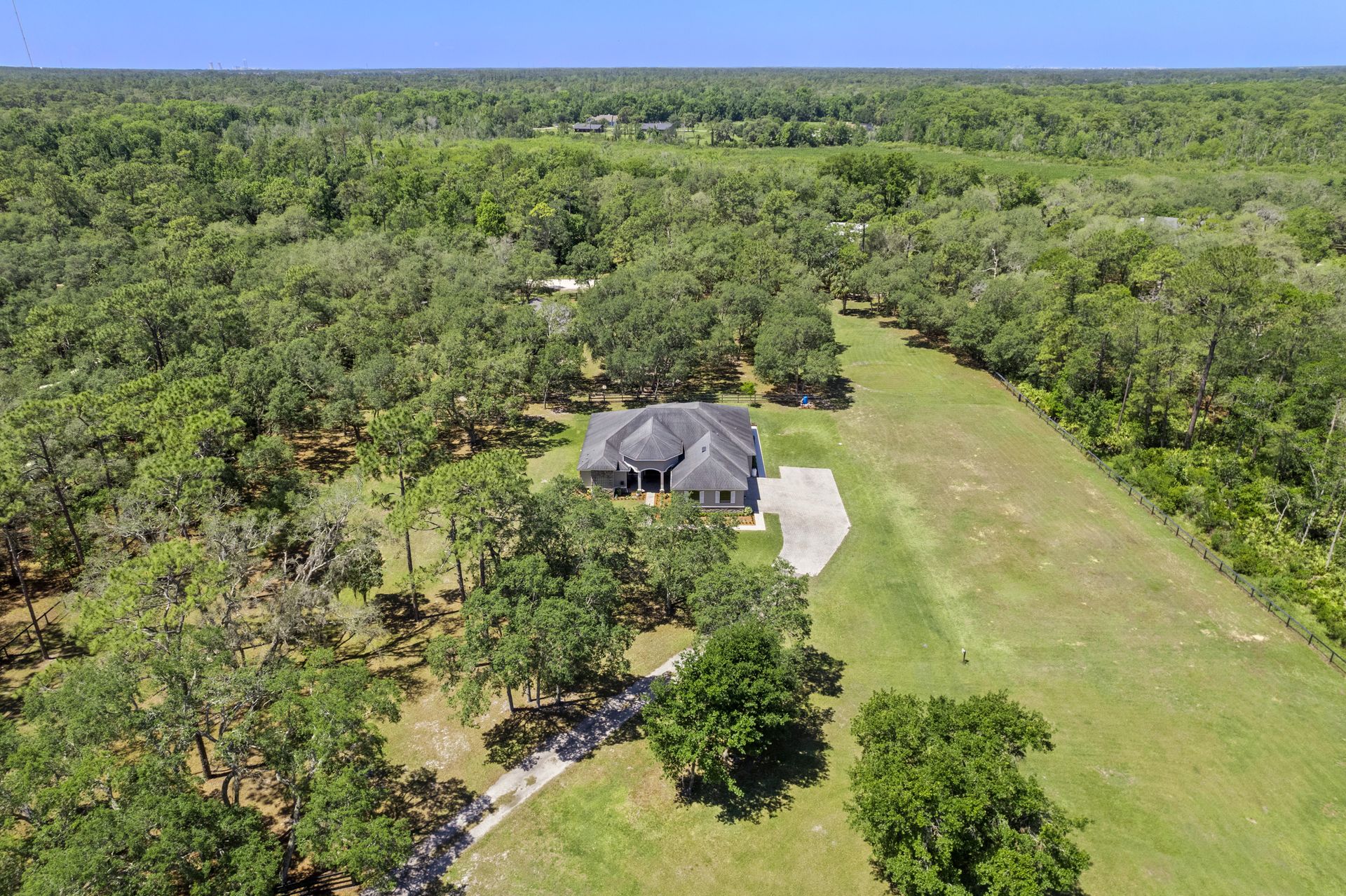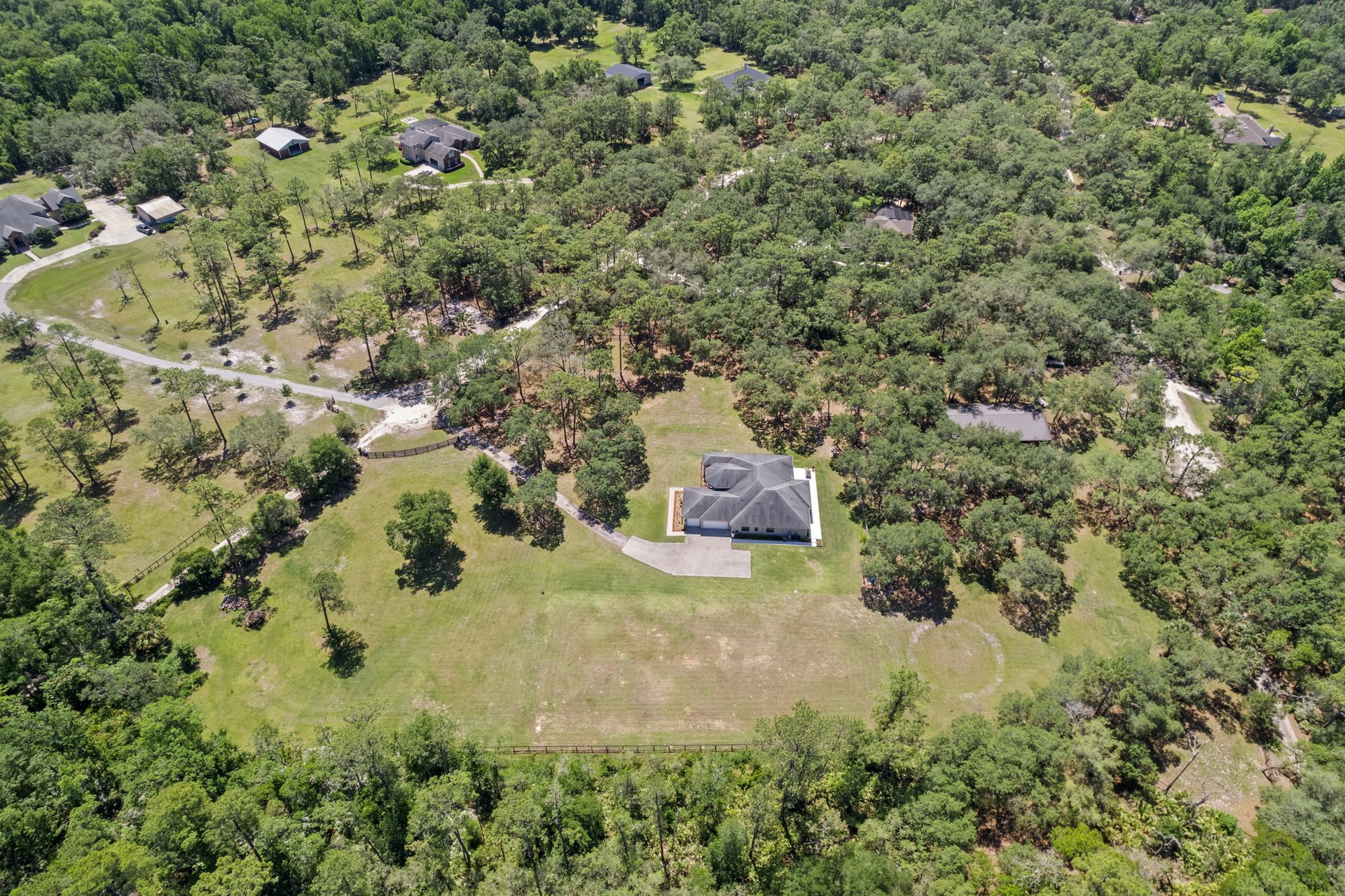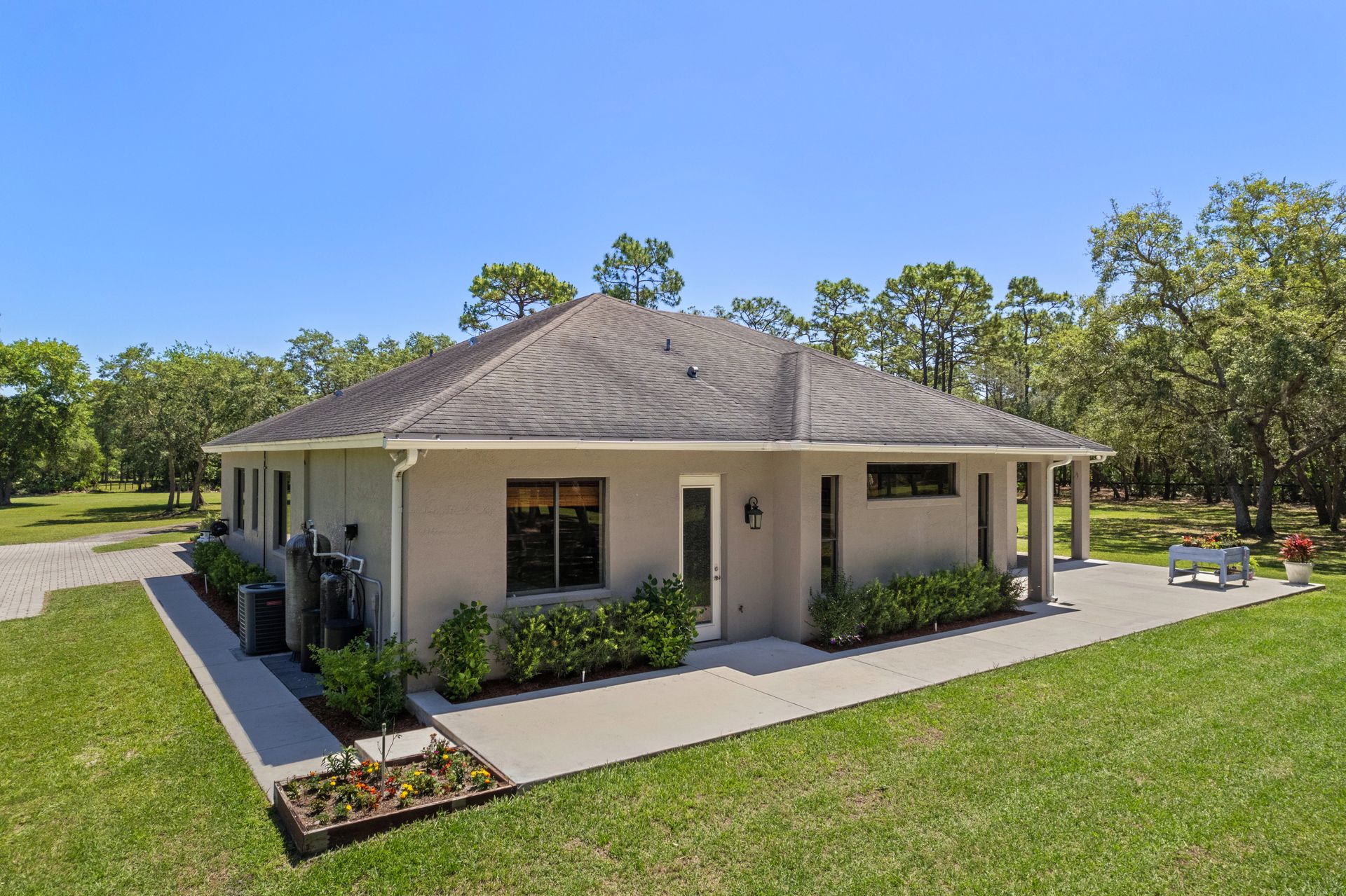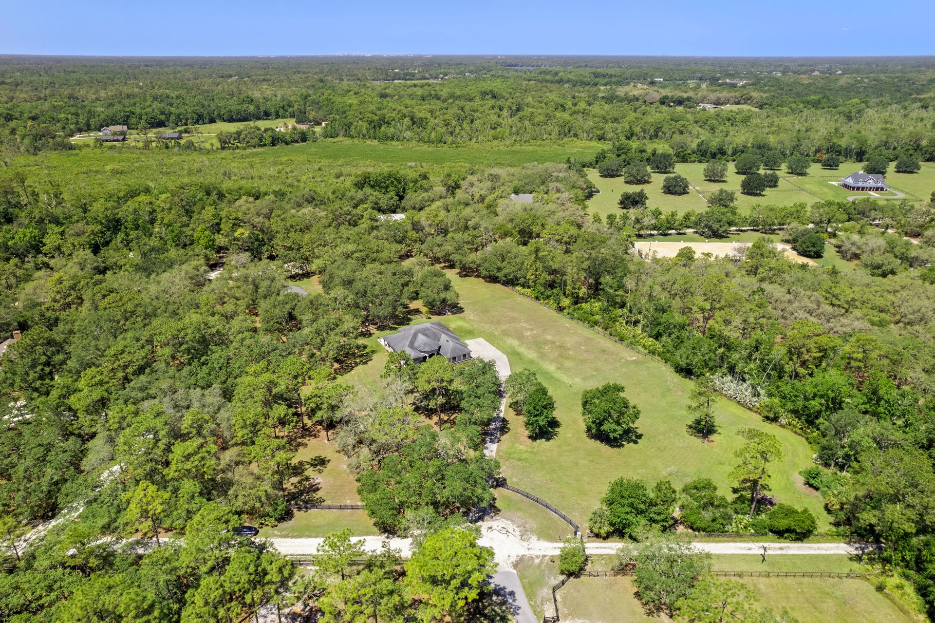 This gorgeous 5.25-acre estate is located at the end of a cul-de-sac and features an 8-stall barn that is well-maintained and ready for your horses. The barn features a tack room with A/C, feed room with refrigerator, two inside wash racks, insulated roof system along with extra wide 14-foot brick paver isle way for traction and easy drainage. The feed room is plumbed to add a water heater. Barn is also equipped with a compressor for car enthusiasts. The property offers a separate entrance to the barn on the backside of the property for tenants or horse trailers, farrier and vet. There is plenty of land to add more pasture areas at the front of property. The barn and the property are a horse-lovers dream, but the interior of the four bedroom, three bath home is a showstopper! Most rooms have been freshly painted and the dark hardwood floors are complemented by the soaring ceilings. A gourmet kitchen offers granite counters, center island, breakfast bar, stainless steel appliances and a wine fridge. The eat-in nook offers a fabulous view of the covered patio and barn through the massive seamless glass window. The primary suite with dual closets has private access to a covered lanai overlooking the peaceful and private back of the property. The patio is pre-plumbed for a future outdoor gas grill/kitchen area. The en-suite bath is a spa-like retreat with centerpiece jetted garden tub, separate oversized, glass-enclosed shower stall and individual vanities with granite counters. The exterior of the home was painted in 2019. Constructed with Icynene foam insulation and double-lined walls means low electric bills. The three-car garage features overhead storage racks and closet organization system. Must-have features in any rural estate home include a 3HP deep water well, concrete gravity septic and water softener system. This peaceful, private and quiet setting and is only minutes to 419 for easy access to major highways for a quick commute and area schools. Welcome Home!