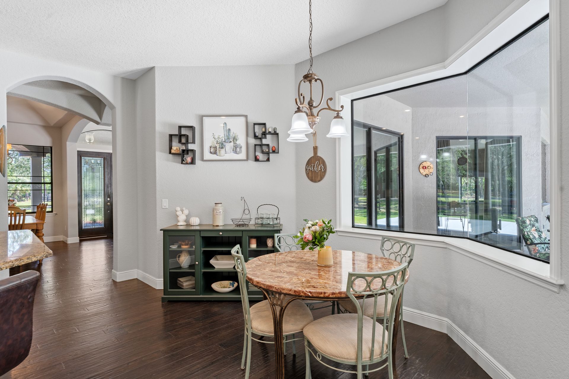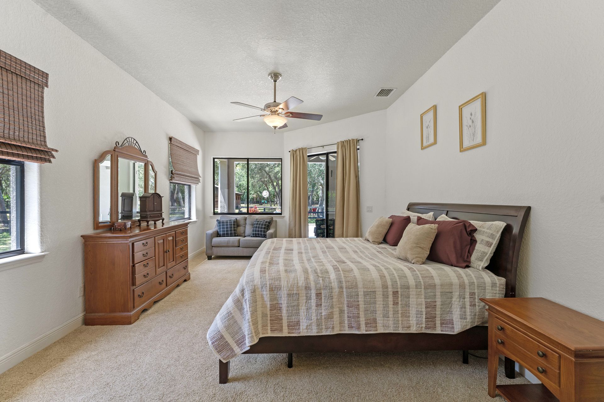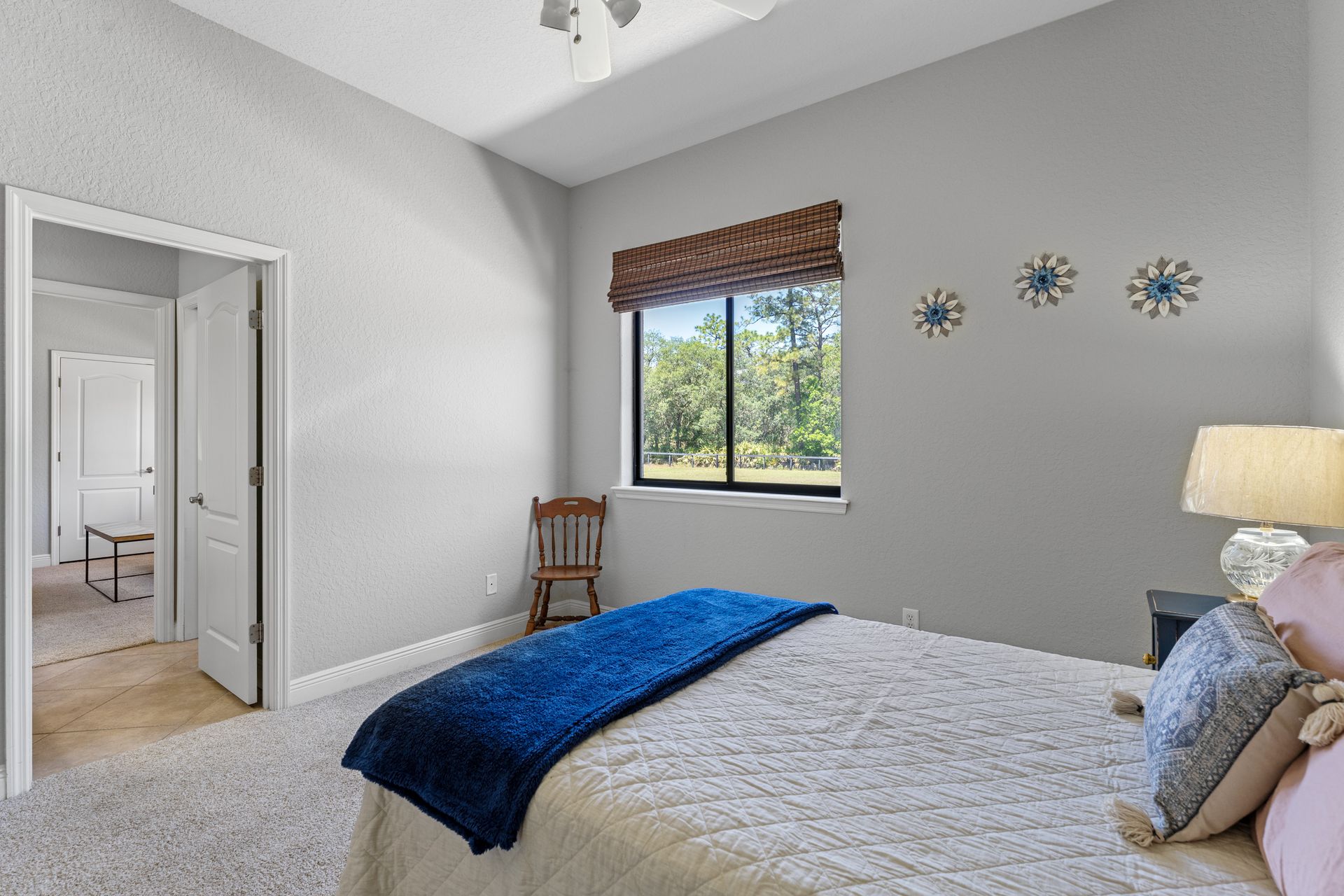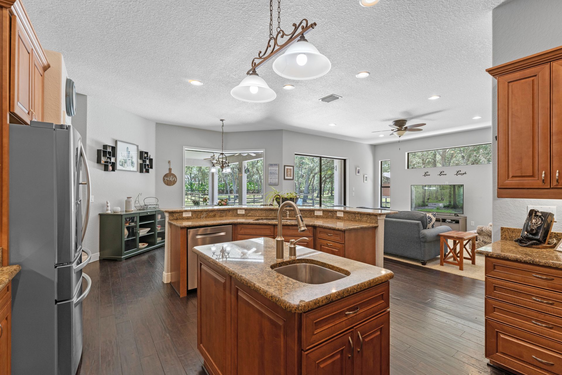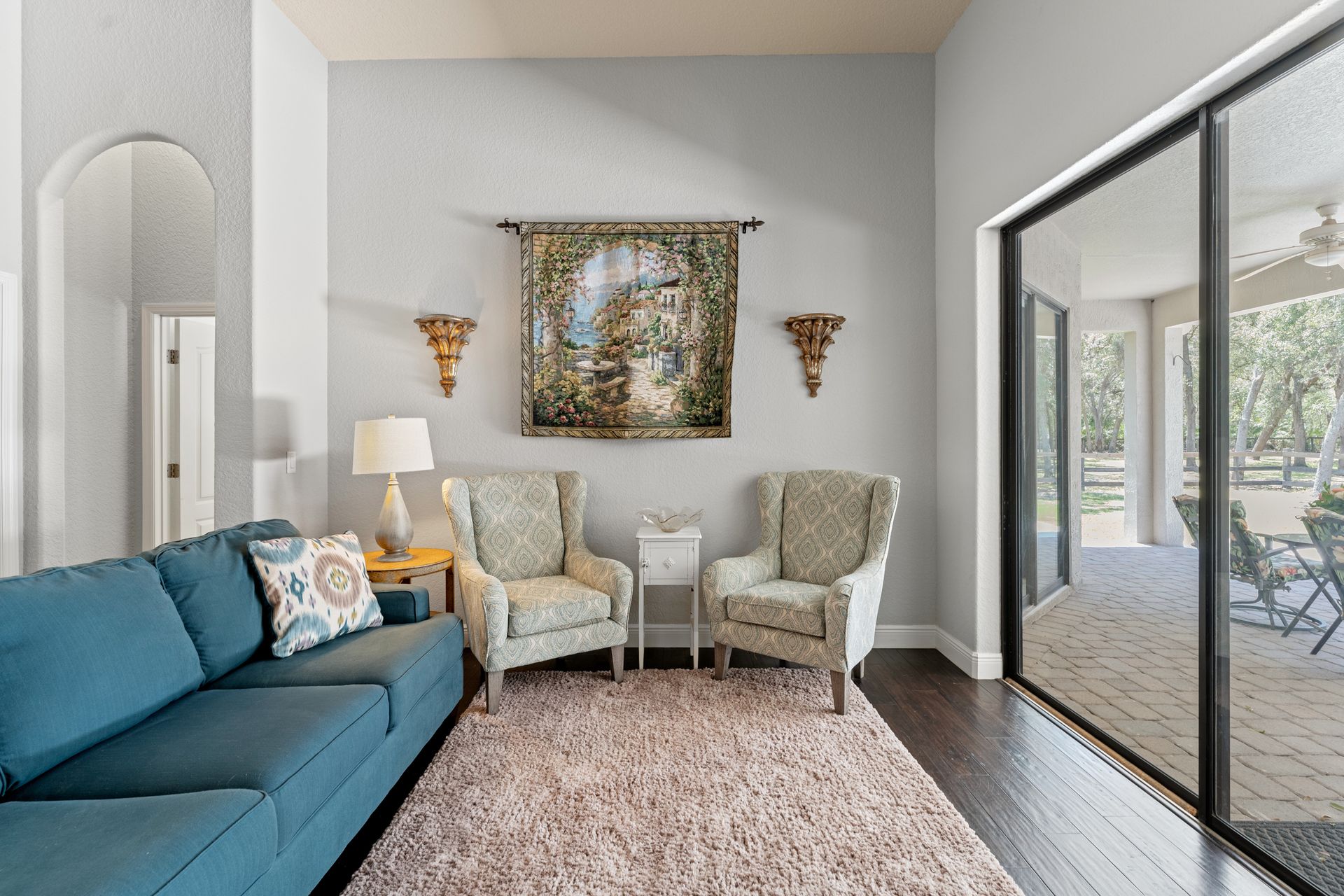 This gorgeous 5.25-acre estate is located at the end of a cul-de-sac and features an 8-stall barn that is well-maintained and ready for your horses. The barn features a tack room with A/C, feed room with refrigerator, two inside wash racks, insulated roof system along with extra wide 14-foot brick paver isle way for traction and easy drainage. The feed room is plumbed to add a water heater. Barn is also equipped with a compressor for car enthusiasts. The property offers a separate entrance to the barn on the backside of the property for tenants or horse trailers, farrier and vet. There is plenty of land to add more pasture areas at the front of property. The barn and the property are a horse-lovers dream, but the interior of the four bedroom, three bath home is a showstopper! Most rooms have been freshly painted and the dark hardwood floors are complemented by the soaring ceilings. A gourmet kitchen offers granite counters, center island, breakfast bar, stainless steel appliances and a wine fridge. The eat-in nook offers a fabulous view of the covered patio and barn through the massive seamless glass window. The primary suite with dual closets has private access to a covered lanai overlooking the peaceful and private back of the property. The patio is pre-plumbed for a future outdoor gas grill/kitchen area. The en-suite bath is a spa-like retreat with centerpiece jetted garden tub, separate oversized, glass-enclosed shower stall and individual vanities with granite counters. The exterior of the home was painted in 2019. Constructed with Icynene foam insulation and double-lined walls means low electric bills. The three-car garage features overhead storage racks and closet organization system. Must-have features in any rural estate home include a 3HP deep water well, concrete gravity septic and water softener system. This peaceful, private and quiet setting and is only minutes to 419 for easy access to major highways for a quick commute and area schools. Welcome Home!