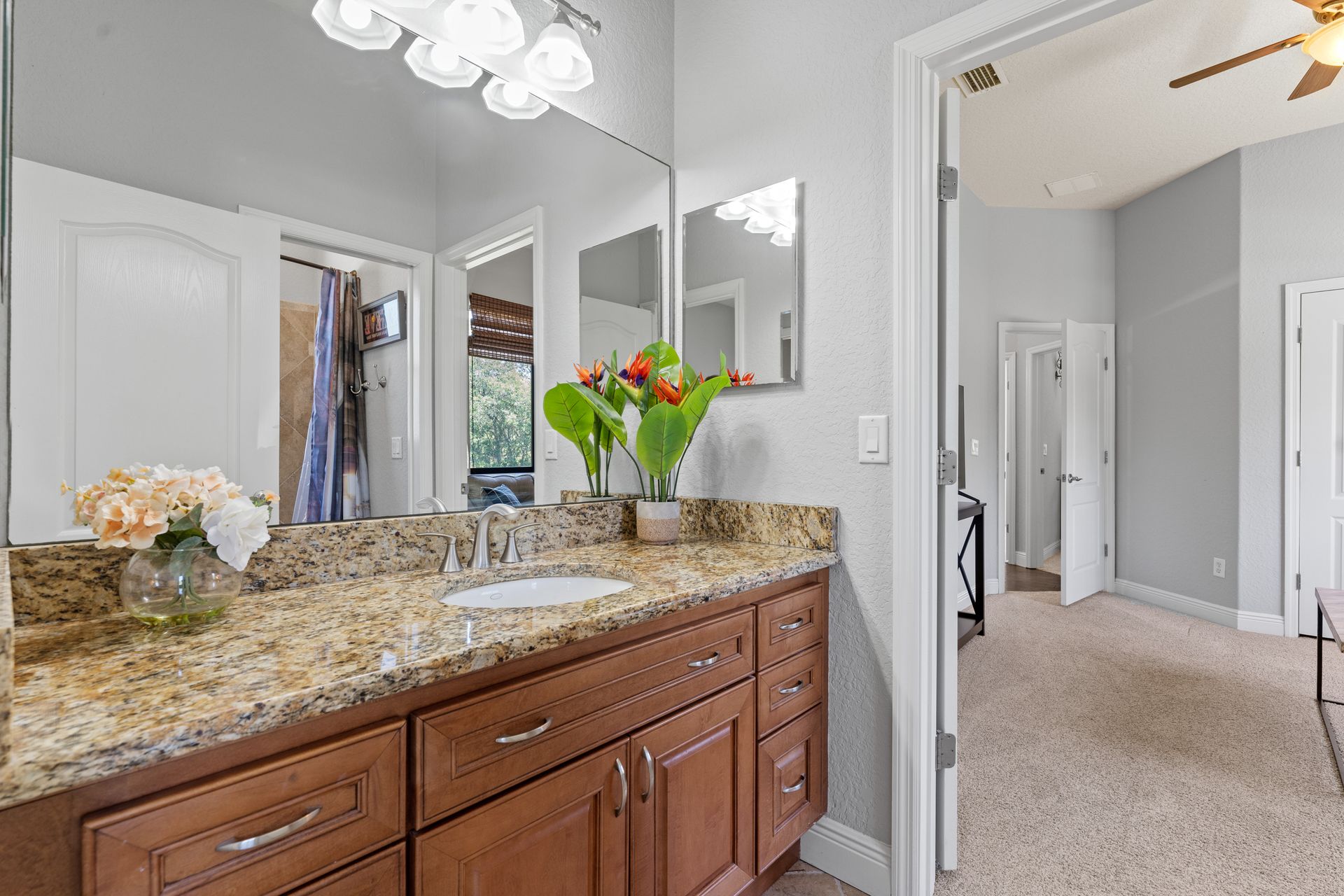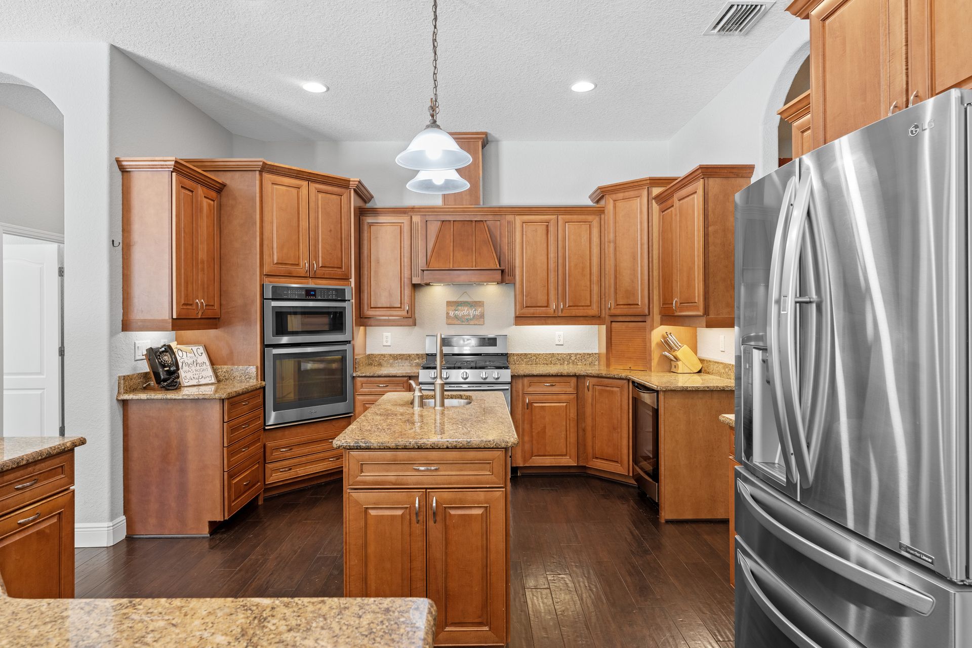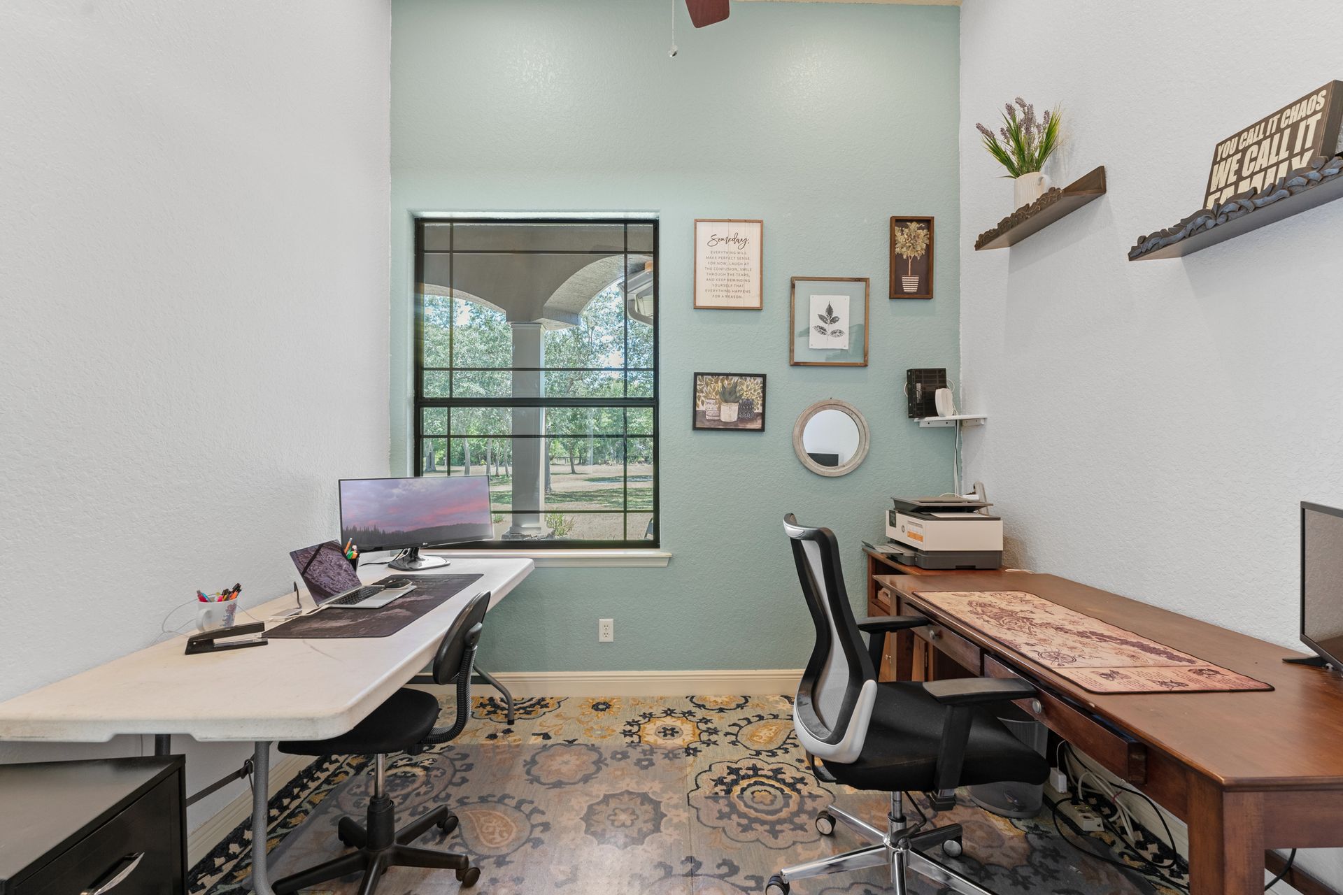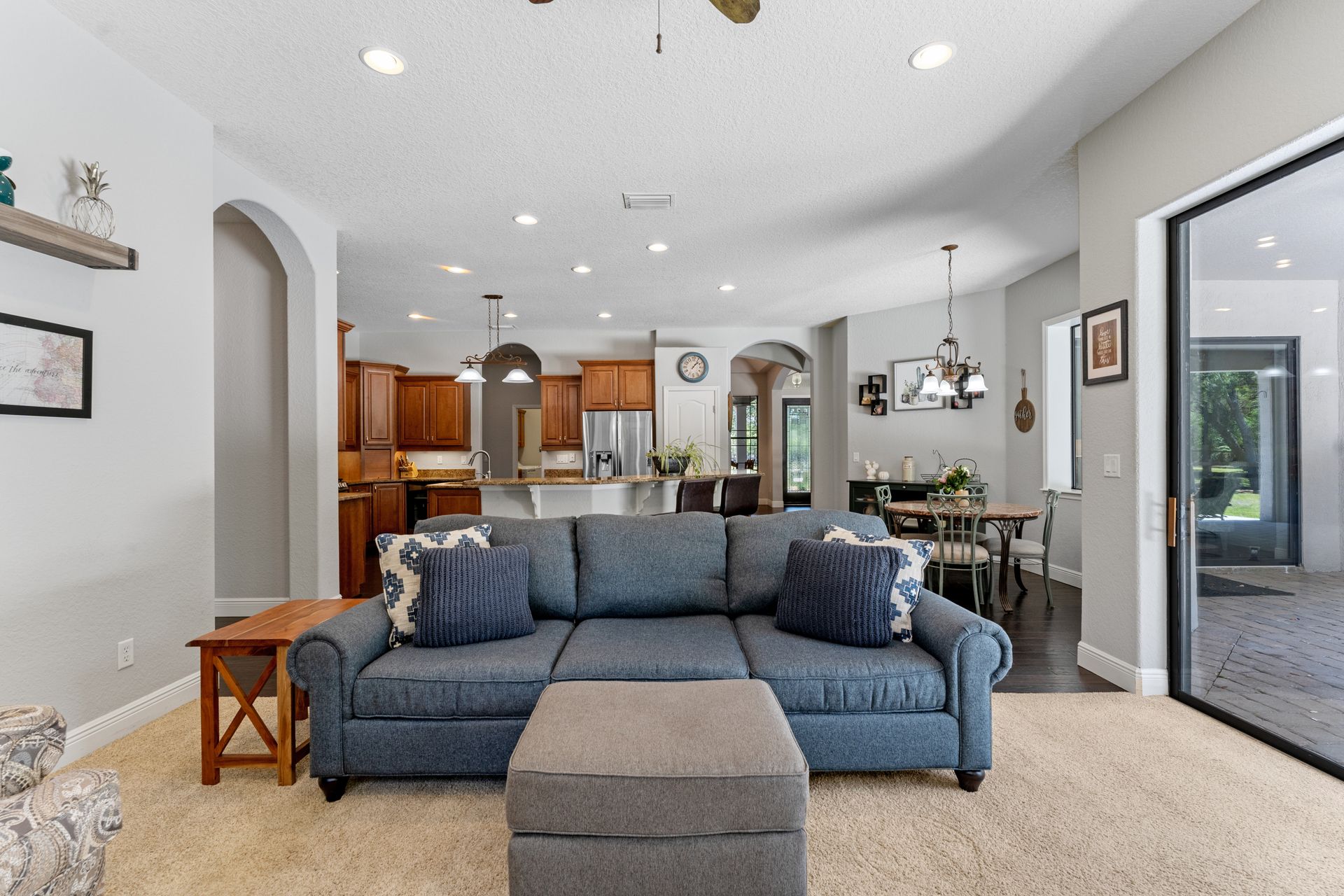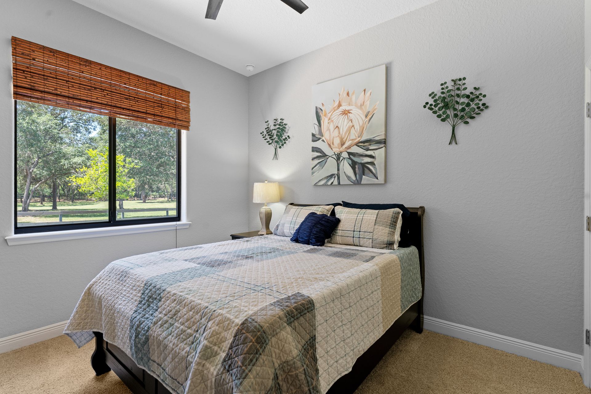 This gorgeous 5.25-acre estate is located at the end of a cul-de-sac and features an 8-stall barn that is well-maintained and ready for your horses. The barn features a tack room with A/C, feed room with refrigerator, two inside wash racks, insulated roof system along with extra wide 14-foot brick paver isle way for traction and easy drainage. The feed room is plumbed to add a water heater. Barn is also equipped with a compressor for car enthusiasts. The property offers a separate entrance to the barn on the backside of the property for tenants or horse trailers, farrier and vet. There is plenty of land to add more pasture areas at the front of property. The barn and the property are a horse-lovers dream, but the interior of the four bedroom, three bath home is a showstopper! Most rooms have been freshly painted and the dark hardwood floors are complemented by the soaring ceilings. A gourmet kitchen offers granite counters, center island, breakfast bar, stainless steel appliances and a wine fridge. The eat-in nook offers a fabulous view of the covered patio and barn through the massive seamless glass window. The primary suite with dual closets has private access to a covered lanai overlooking the peaceful and private back of the property. The patio is pre-plumbed for a future outdoor gas grill/kitchen area. The en-suite bath is a spa-like retreat with centerpiece jetted garden tub, separate oversized, glass-enclosed shower stall and individual vanities with granite counters. The exterior of the home was painted in 2019. Constructed with Icynene foam insulation and double-lined walls means low electric bills. The three-car garage features overhead storage racks and closet organization system. Must-have features in any rural estate home include a 3HP deep water well, concrete gravity septic and water softener system. This peaceful, private and quiet setting and is only minutes to 419 for easy access to major highways for a quick commute and area schools. Welcome Home!