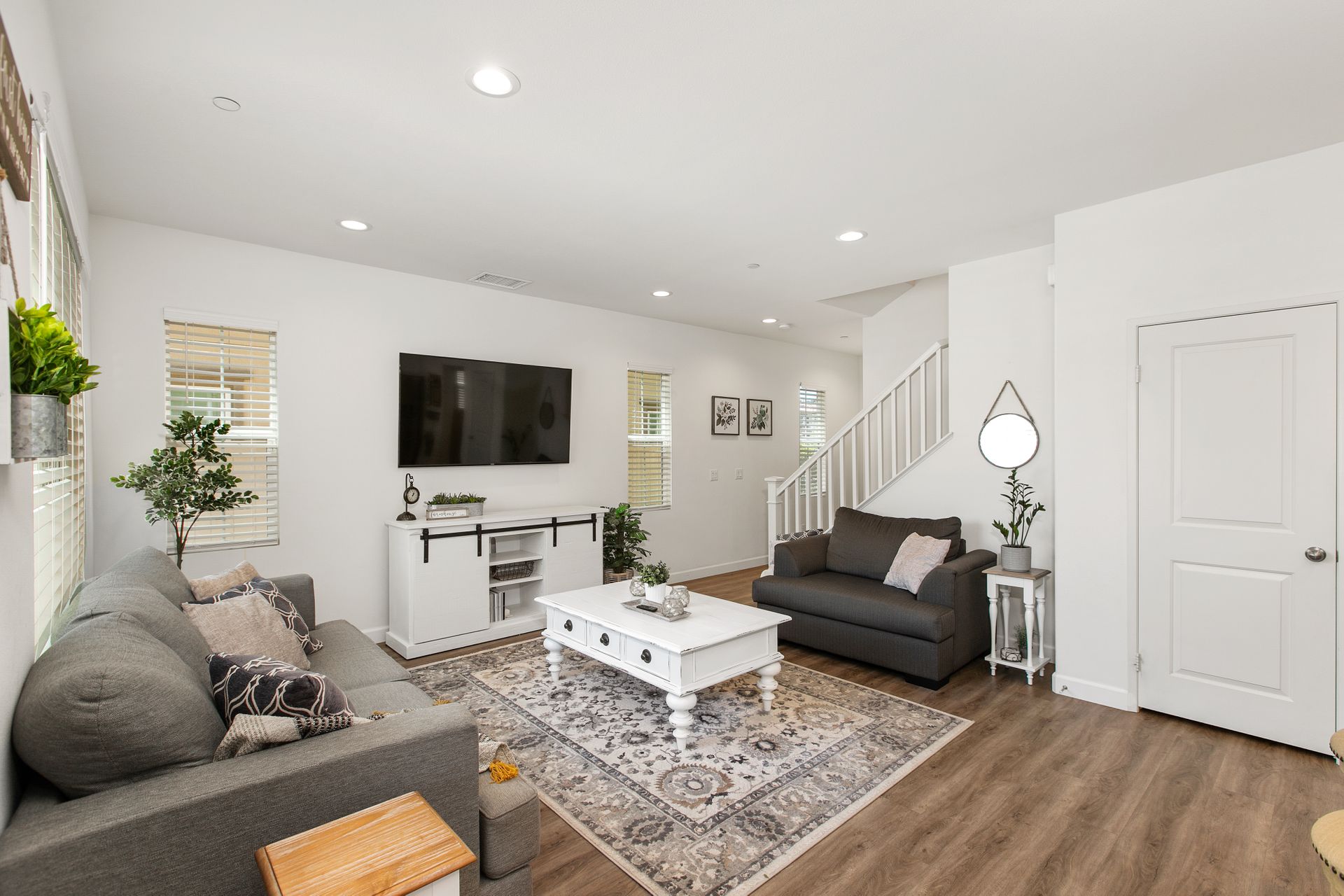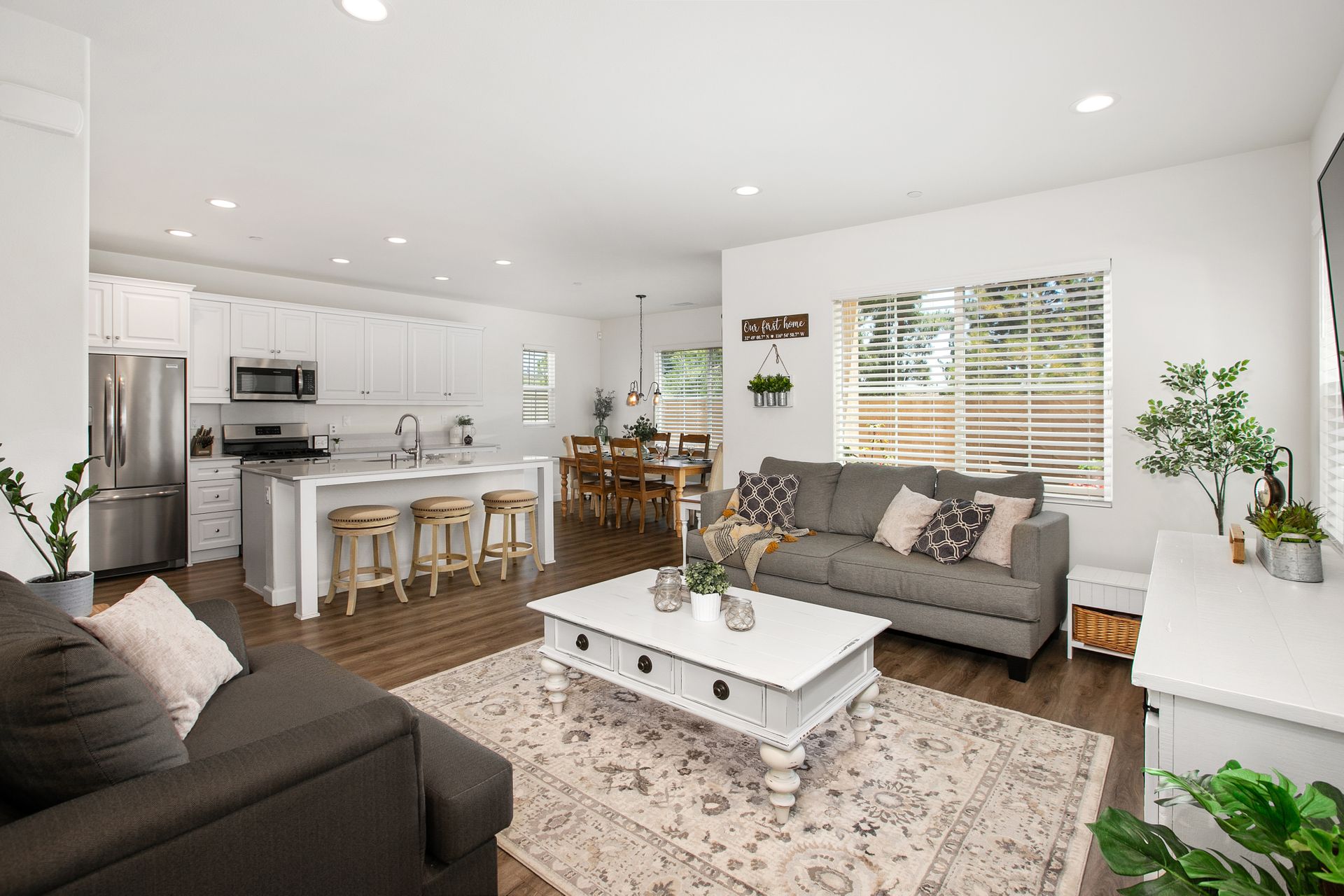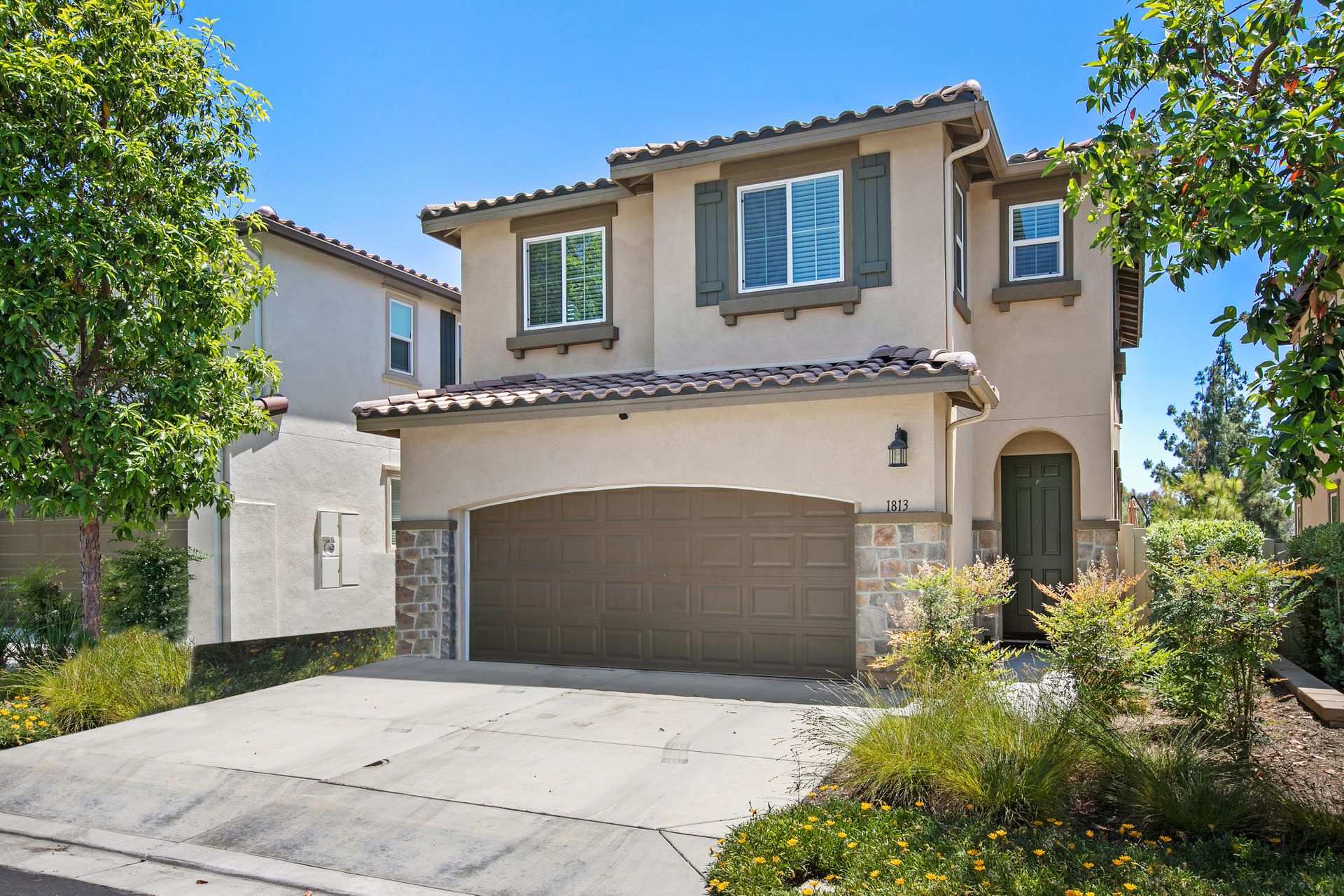 This delightful Main Ranch property is the real deal. Just by entering the neighborhood, you begin to relax and feel at ease. As newer construction, this well maintained four bedroom, two and one-half bath home offers all the desired amenities. The open concept living area offers luxury vinyl plank flooring and open enjoyment of the high-end kitchen with island seating and a pantry. Dining room offers dedicated space for entertaining with patio access for maximum enjoyment of the indoor/outdoor San Diego lifestyle. The two-car garage has storage and provides direct access to home. A half bath completes the main level. The four spacious bedrooms - all with ceiling fans, two full bathrooms and a dedicated laundry room on the upper level ensure comfort and efficiency. Come see this beautiful home for yourself or send your friends! 1813 Olivia Street is optimally sited for guest parking and the community park and playground area. Turn-key, move-in ready and waiting for you.
