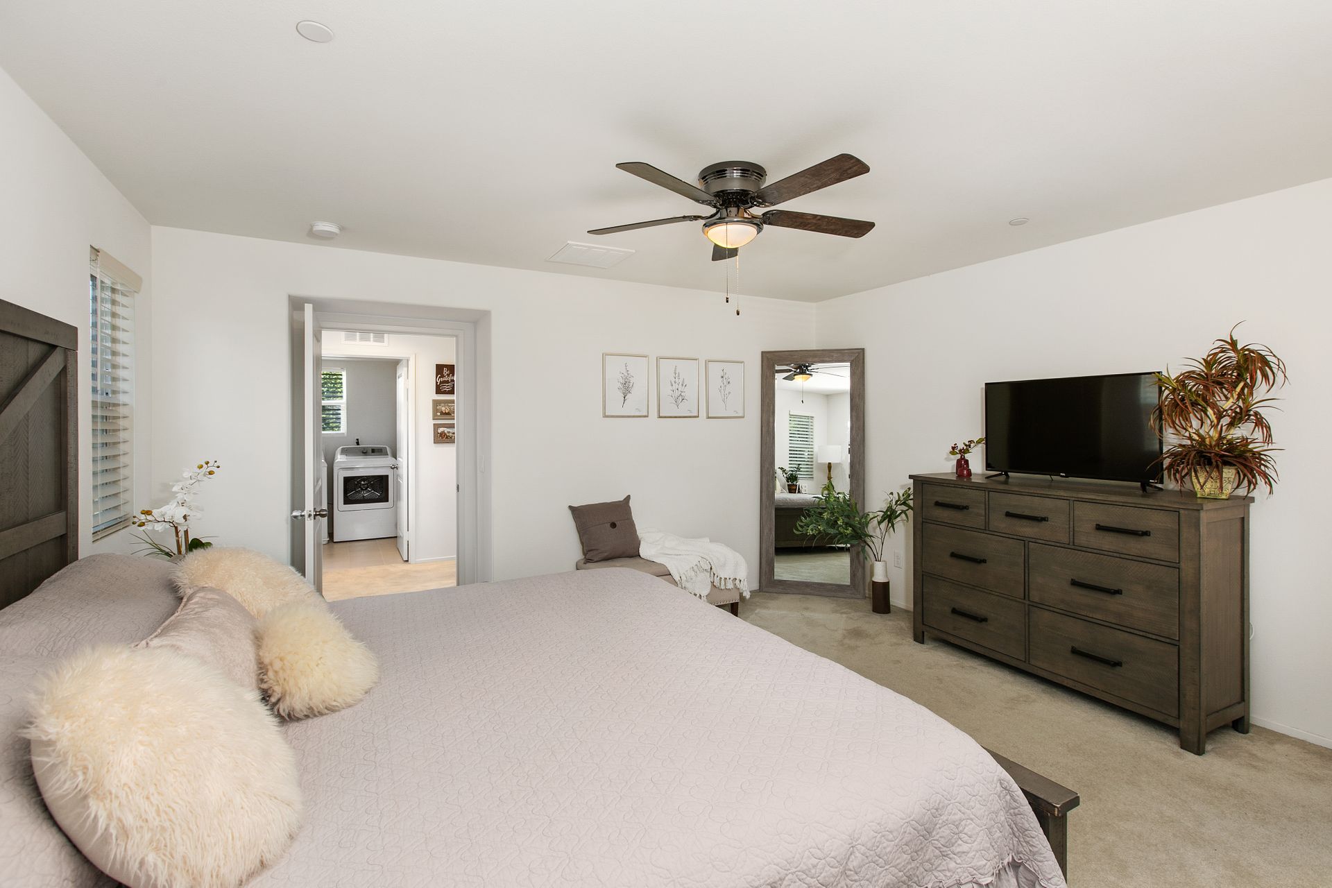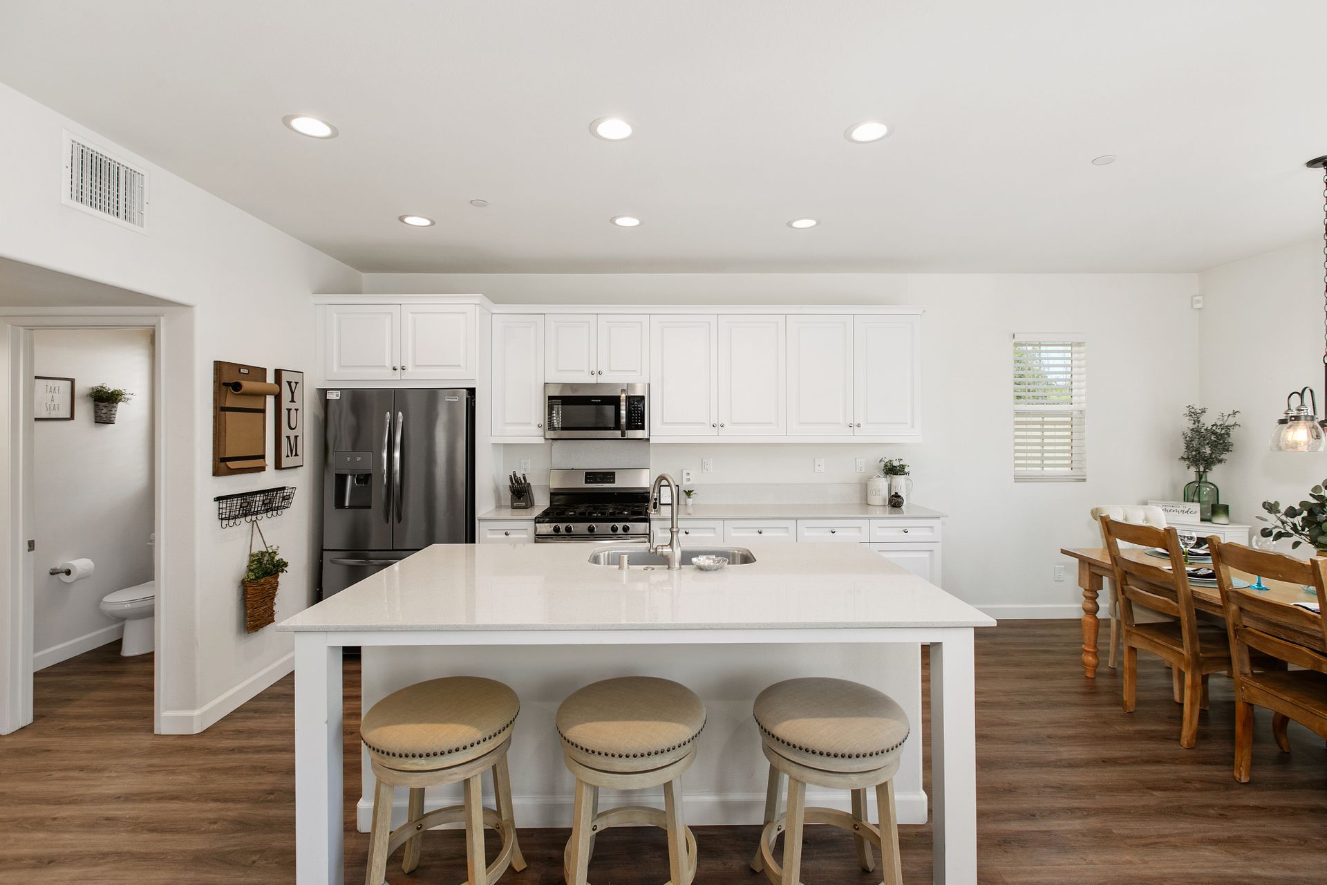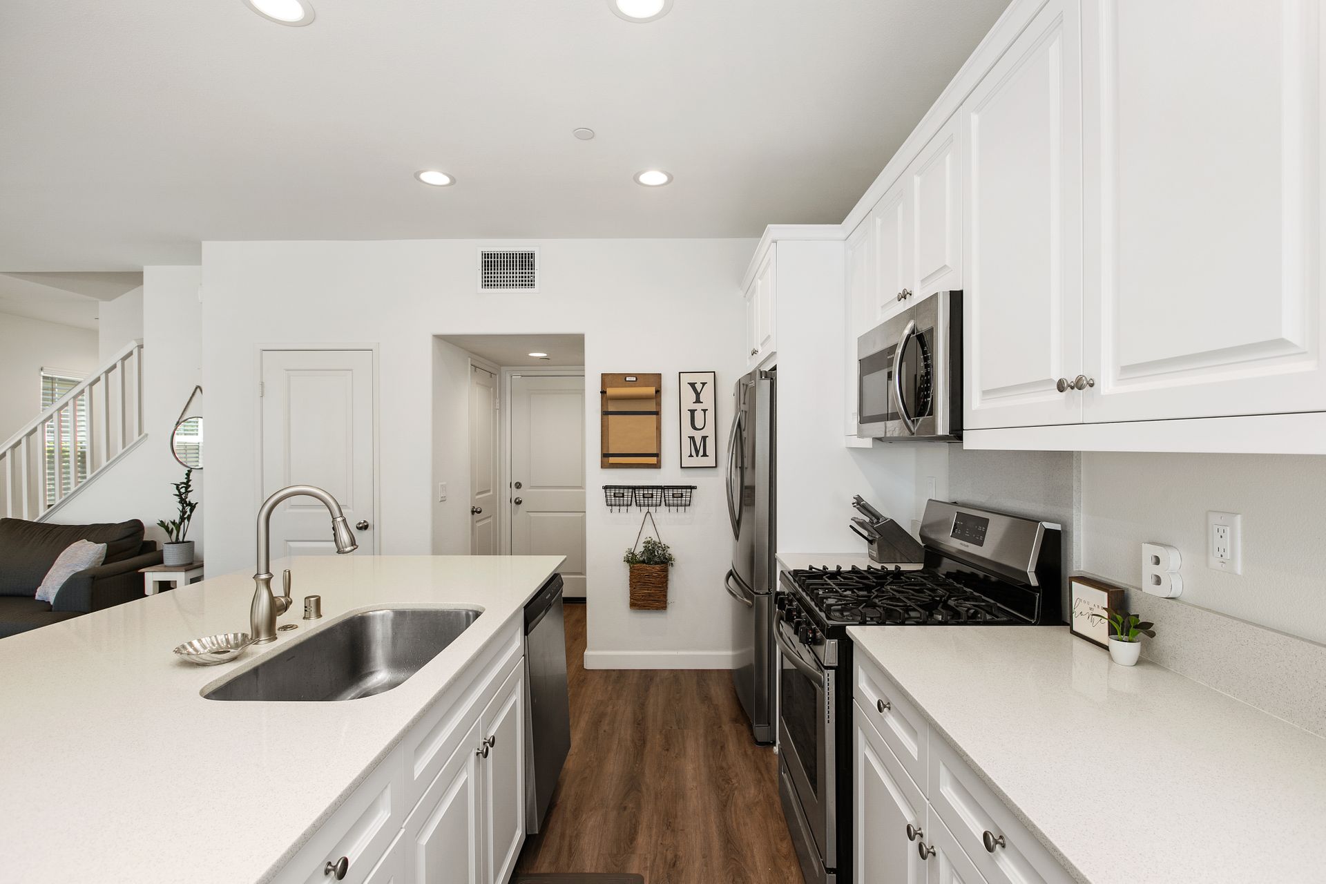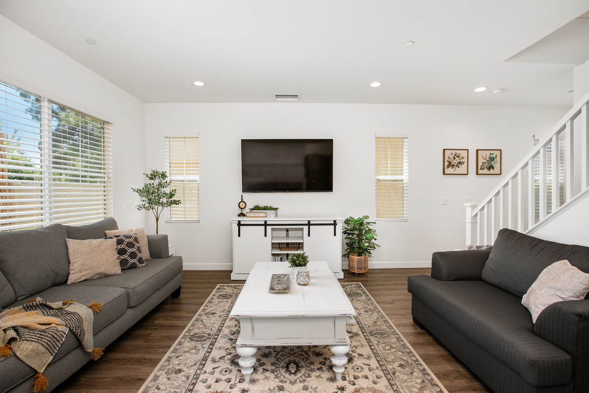 This delightful Main Ranch property is the real deal. Just by entering the neighborhood, you begin to relax and feel at ease. As newer construction, this well maintained four bedroom, two and one-half bath home offers all the desired amenities. The open concept living area offers luxury vinyl plank flooring and open enjoyment of the high-end kitchen with island seating and a pantry. Dining room offers dedicated space for entertaining with patio access for maximum enjoyment of the indoor/outdoor San Diego lifestyle. The two-car garage has storage and provides direct access to home. A half bath completes the main level. The four spacious bedrooms - all with ceiling fans, two full bathrooms and a dedicated laundry room on the upper level ensure comfort and efficiency. Come see this beautiful home for yourself or send your friends! 1813 Olivia Street is optimally sited for guest parking and the community park and playground area. Turn-key, move-in ready and waiting for you.