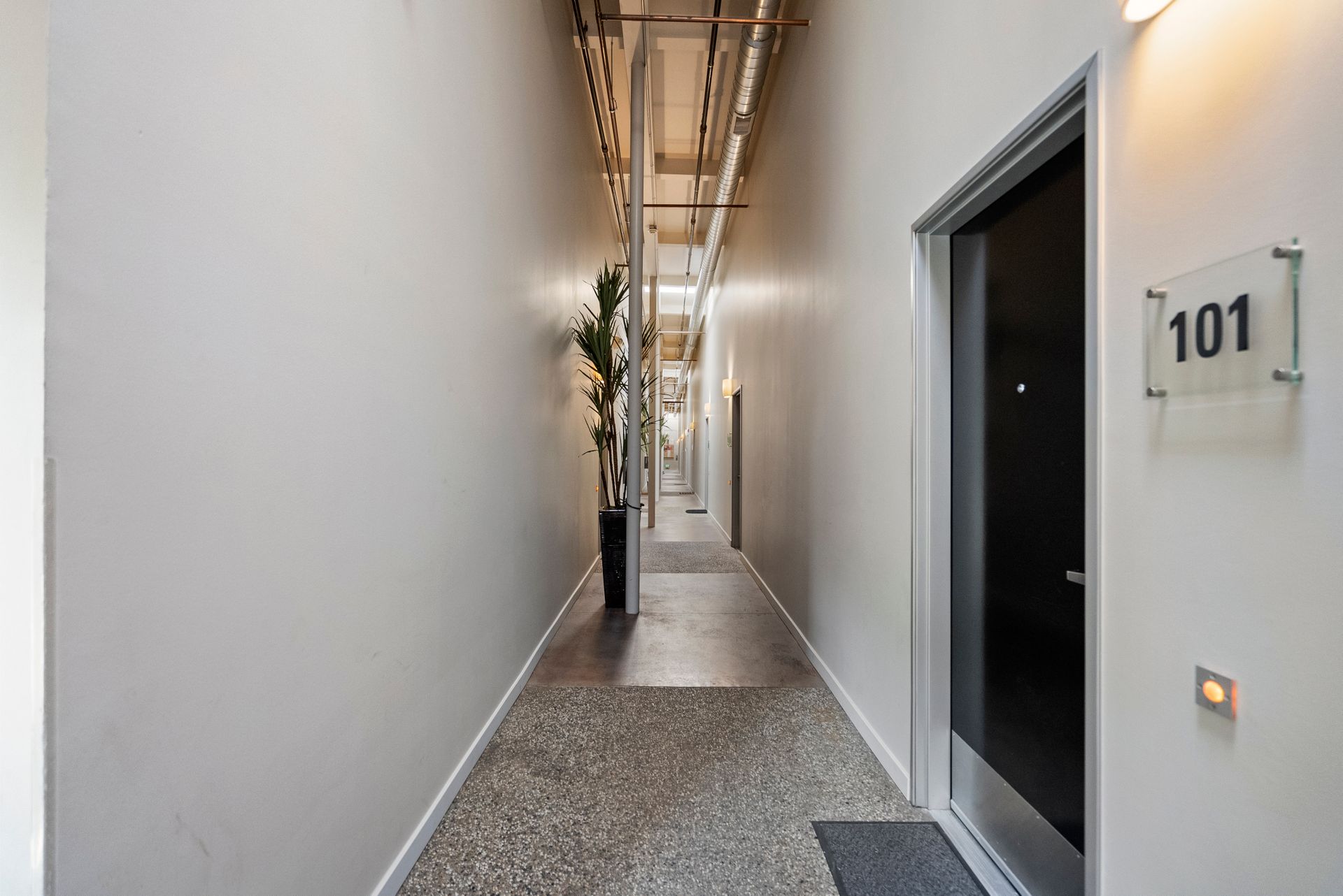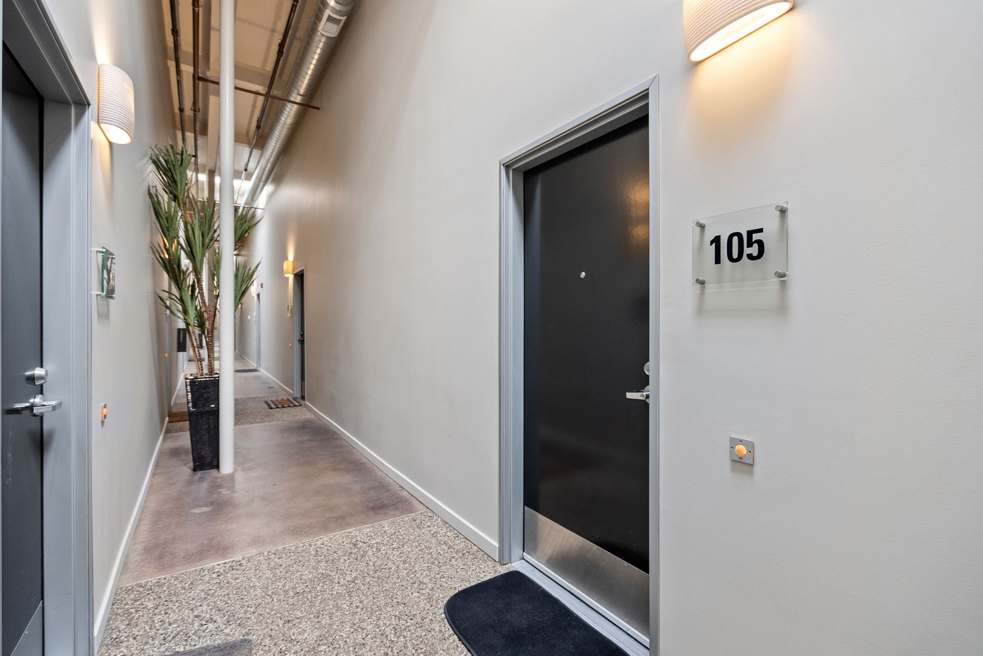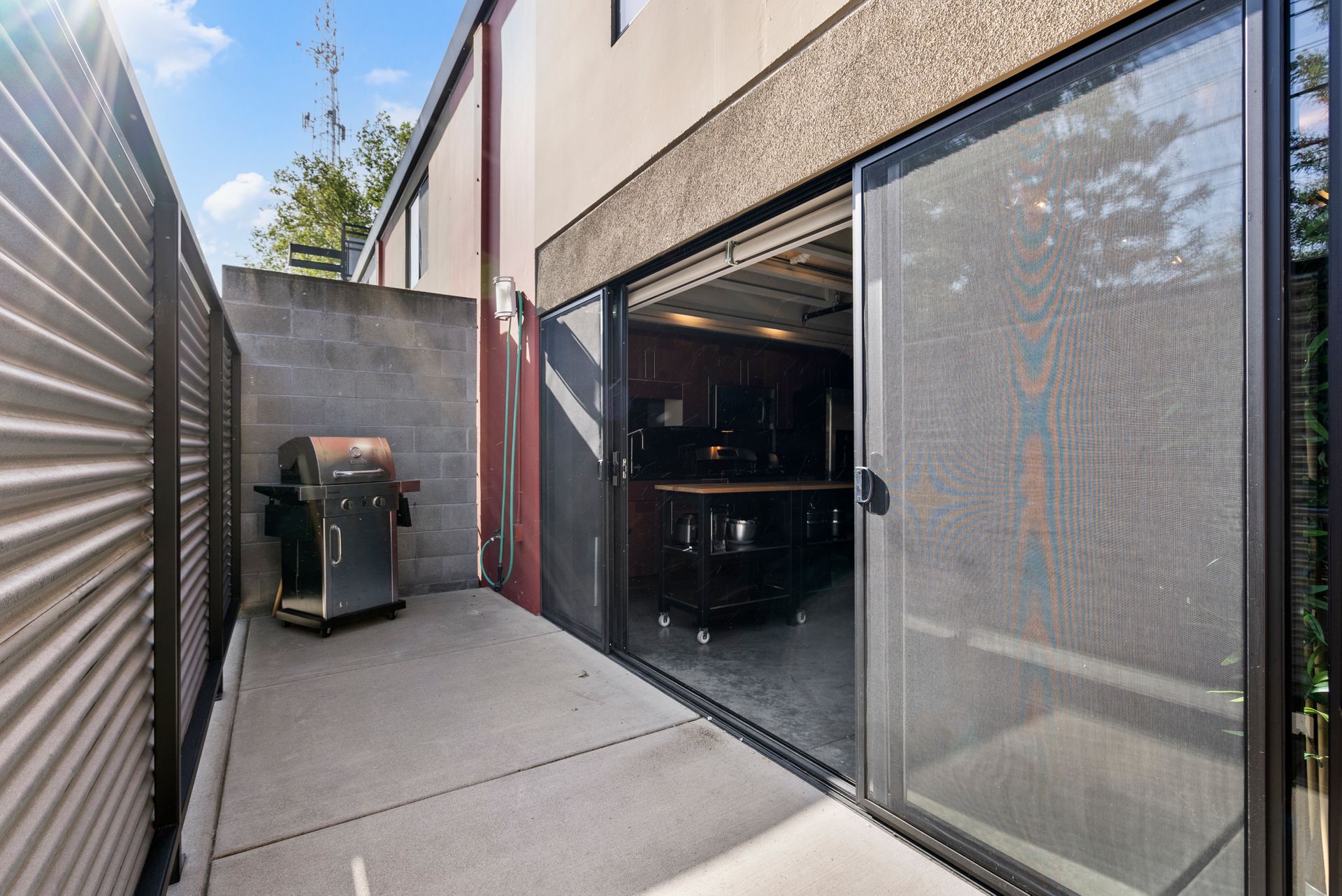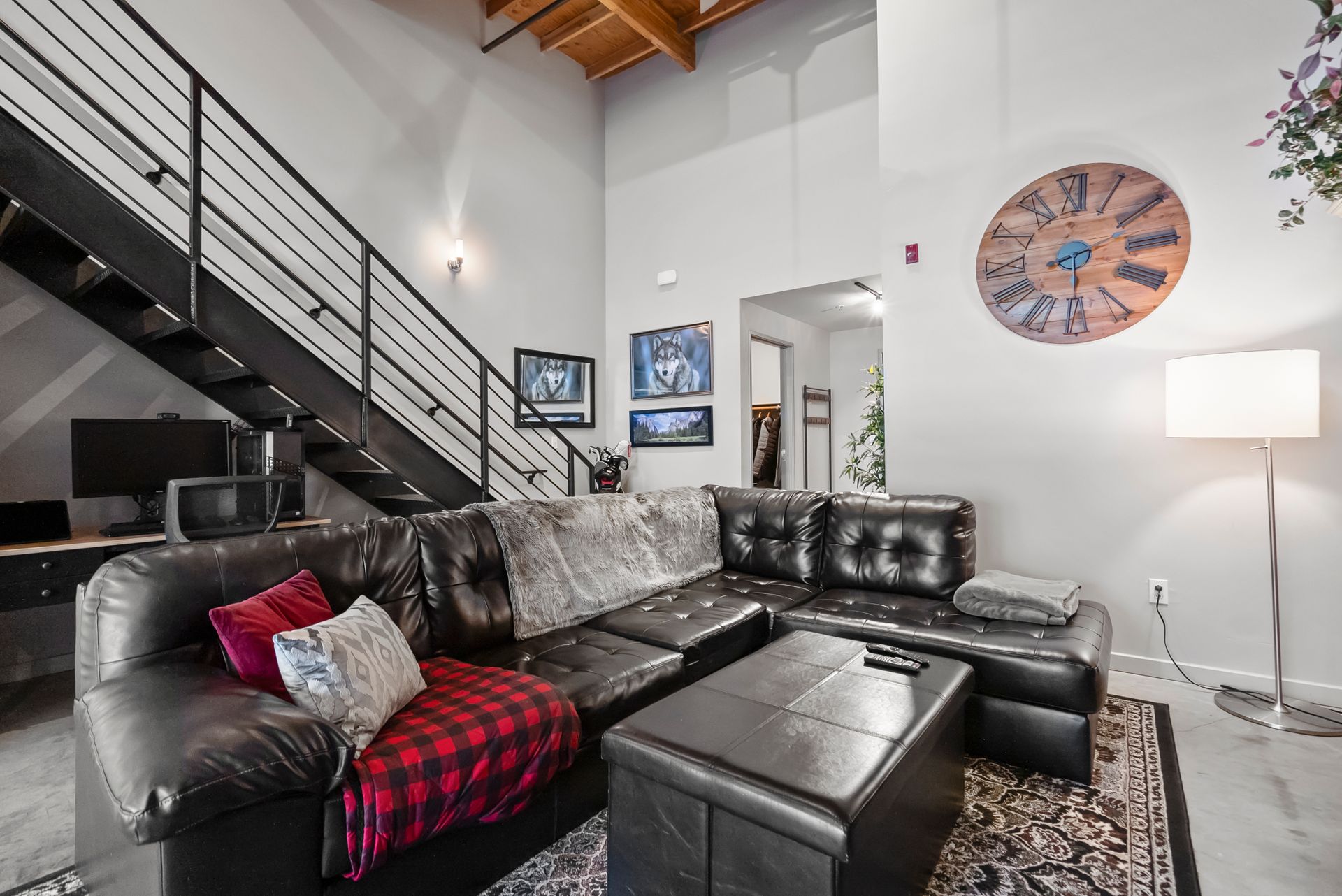 Welcome to Whiskey Hill Lofts, a premier condominium community in Midtown. This spacious one bedroom, one bath loft boasts approximately 974 square feet of livable space flooded with natural light, complemented by extra ceiling lights installed in 2021, creating a warm and inviting ambiance. Enjoy high ceilings with exposed beams and ductwork, stainless steel appliances and granite countertops in the open kitchen. The spacious bedroom on the mezzanine level is a tranquil retreat. The unit features a slider opening to a private patio, ideal for enjoying peaceful mornings or relaxing evenings outdoors. This unit stands out with a rare in-unit water heater and a detached single car garage with a newer opener in 2024. Security is ensured with a code-protected front door. HOA covers sewer, water, trash, the utility bill, landscaping, the roof and exterior maintenance.