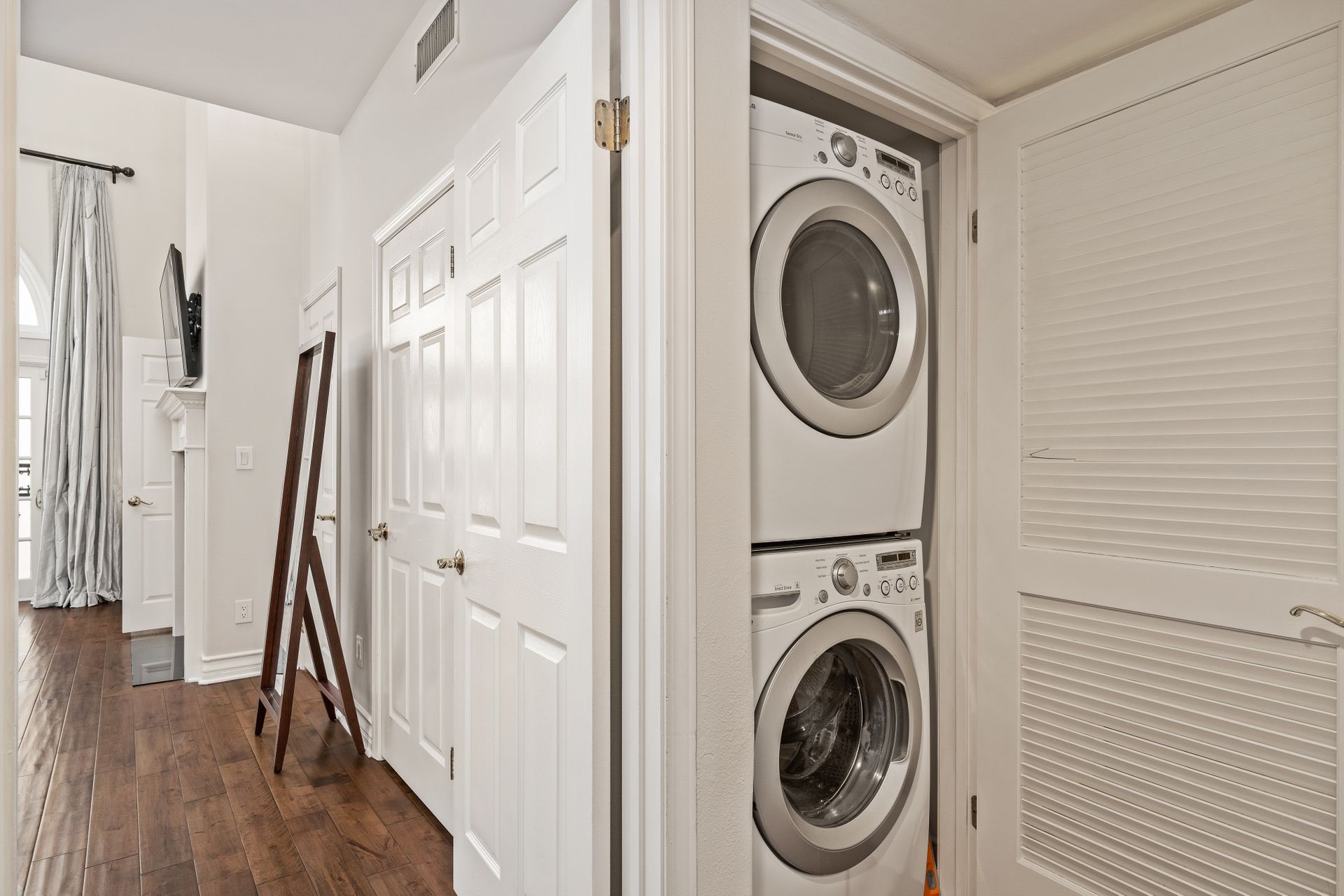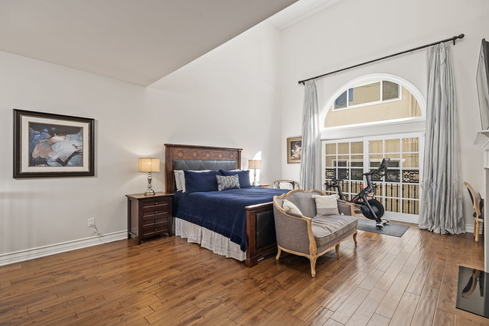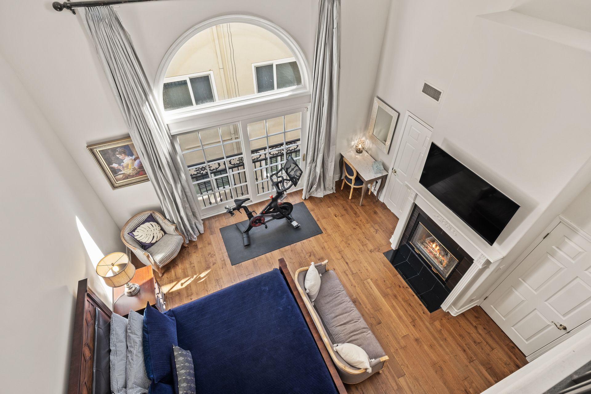 All three bedrooms are on the second level complete with a laundry closet and second bath. Enjoy a huge master suite with amazing volume, soaring ceilings, French doors, a large half-moon window, a fireplace, and two large walk-in closets. Its en-suite bath features dual sinks/vanities, and a separate tub and shower. Stairs lead to a spacious loft and sunny rooftop deck.