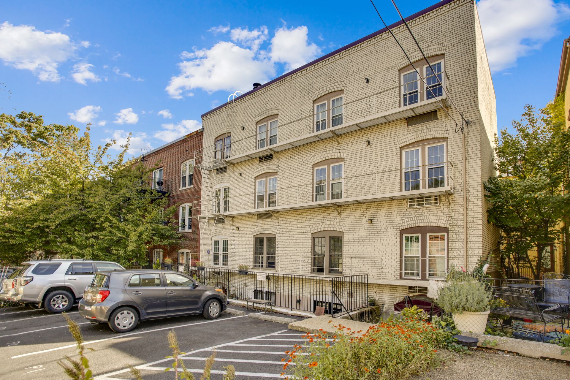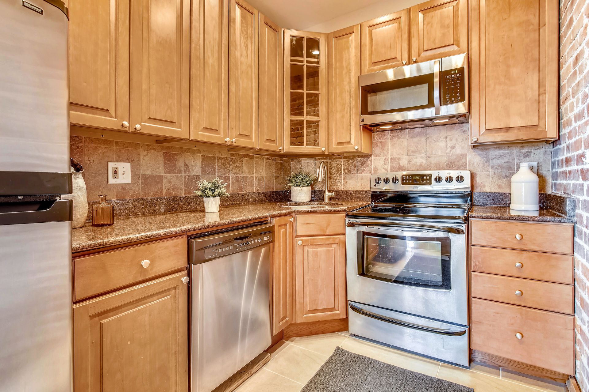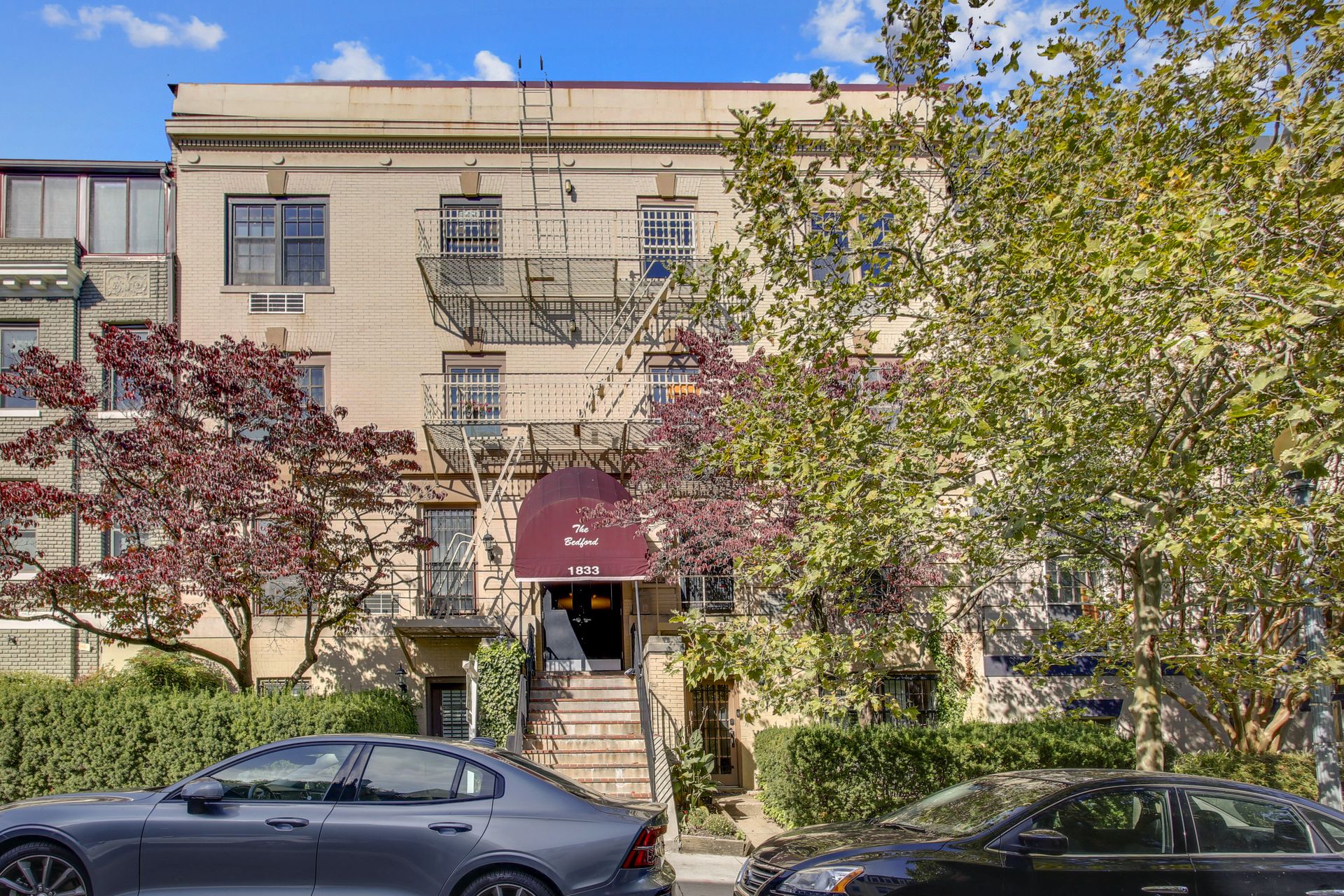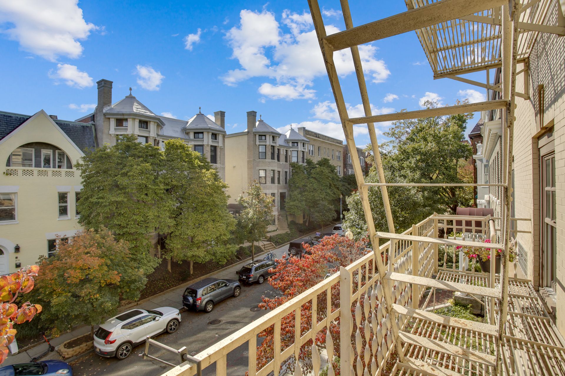 This refined, bright one bedroom residence offers south-facing views of a lovely, treed residential block. A curved foyer opens to an expansive living room with a warming fireplace and a wall of windows. Recessed lights further illuminate the natural light. Hardwood floors throughout gleam! The 761 square-feet of spaciousness is perfect for using areas for work, living, dining and relaxation. The exposed-brick wall in the updated kitchen adds irresistible character. Complete with granite counters and stainless steel appliances, this kitchen will thrill home chefs. The washer and dryer are tucked in the hallway to the impeccable bathroom. For the low $391/month fee, the pet-friendly building provides an extra storage space, bike storage and communal patio. The enviable Kalorama/Adams Morgan location offers countless retail amenities and restaurants on 18th Street NW and Columbia Road NW. Near two Metros, 14th Street NW and Connecticut Avenue NW retail meccas.