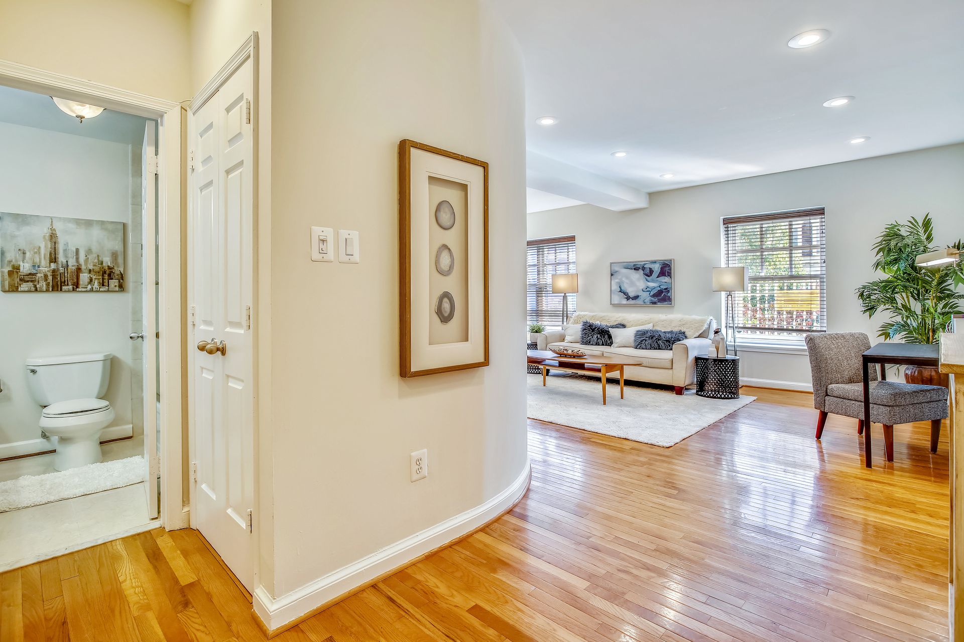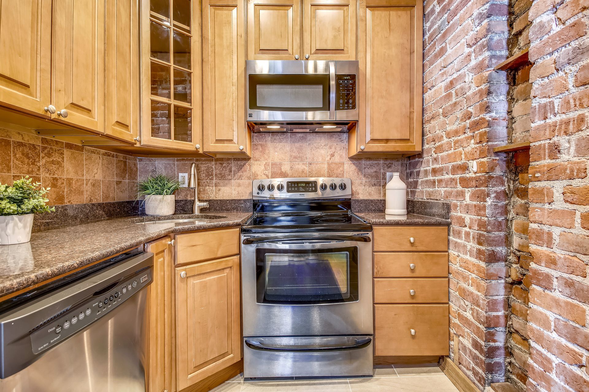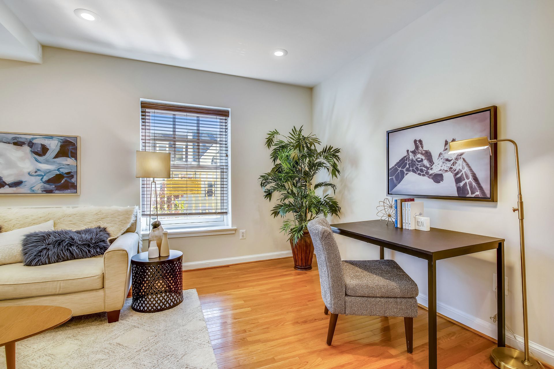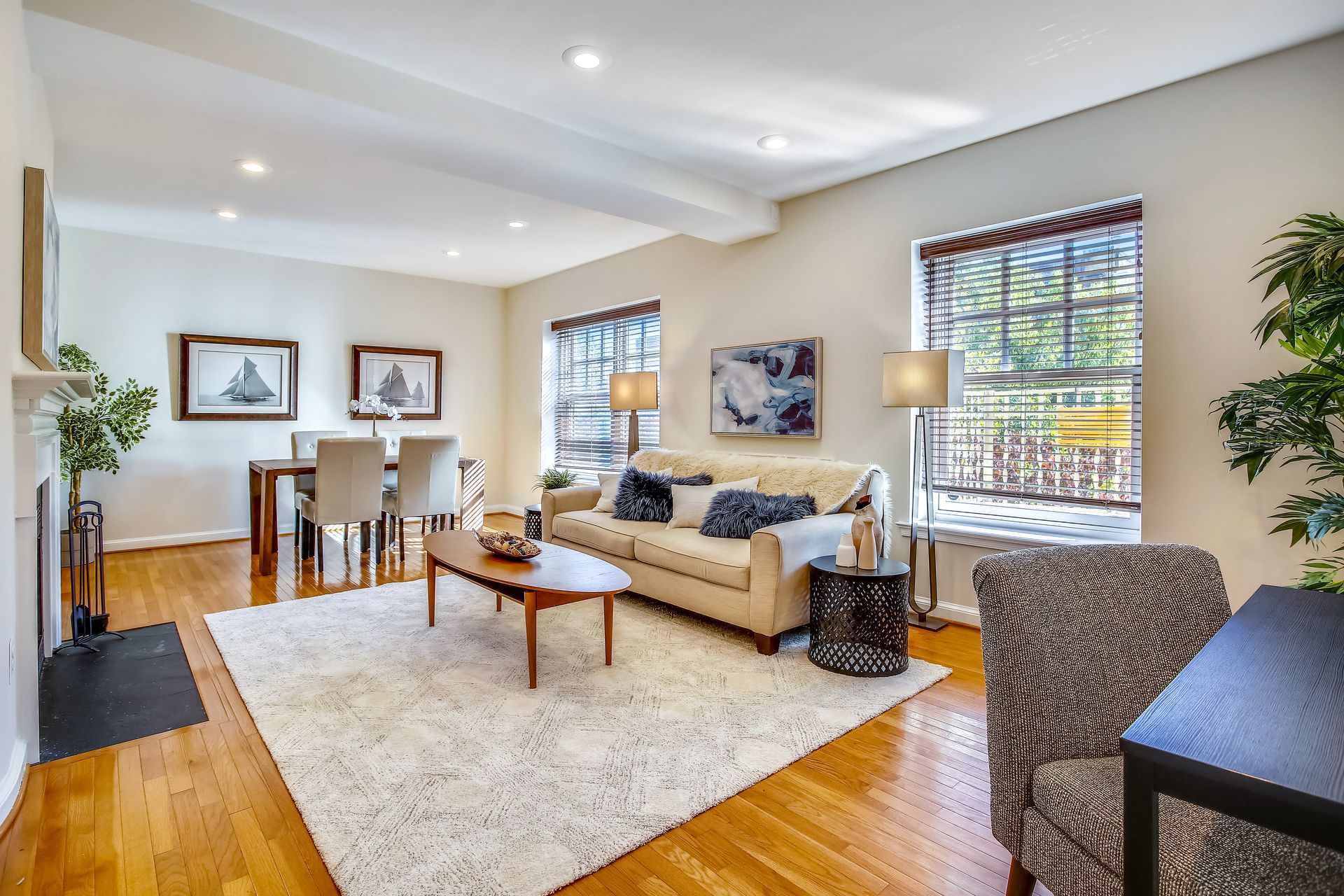 This refined, bright one bedroom residence offers south-facing views of a lovely, treed residential block. A curved foyer opens to an expansive living room with a warming fireplace and a wall of windows. Recessed lights further illuminate the natural light. Hardwood floors throughout gleam! The 761 square-feet of spaciousness is perfect for using areas for work, living, dining and relaxation. The exposed-brick wall in the updated kitchen adds irresistible character. Complete with granite counters and stainless steel appliances, this kitchen will thrill home chefs. The washer and dryer are tucked in the hallway to the impeccable bathroom. For the low $391/month fee, the pet-friendly building provides an extra storage space, bike storage and communal patio. The enviable Kalorama/Adams Morgan location offers countless retail amenities and restaurants on 18th Street NW and Columbia Road NW. Near two Metros, 14th Street NW and Connecticut Avenue NW retail meccas.