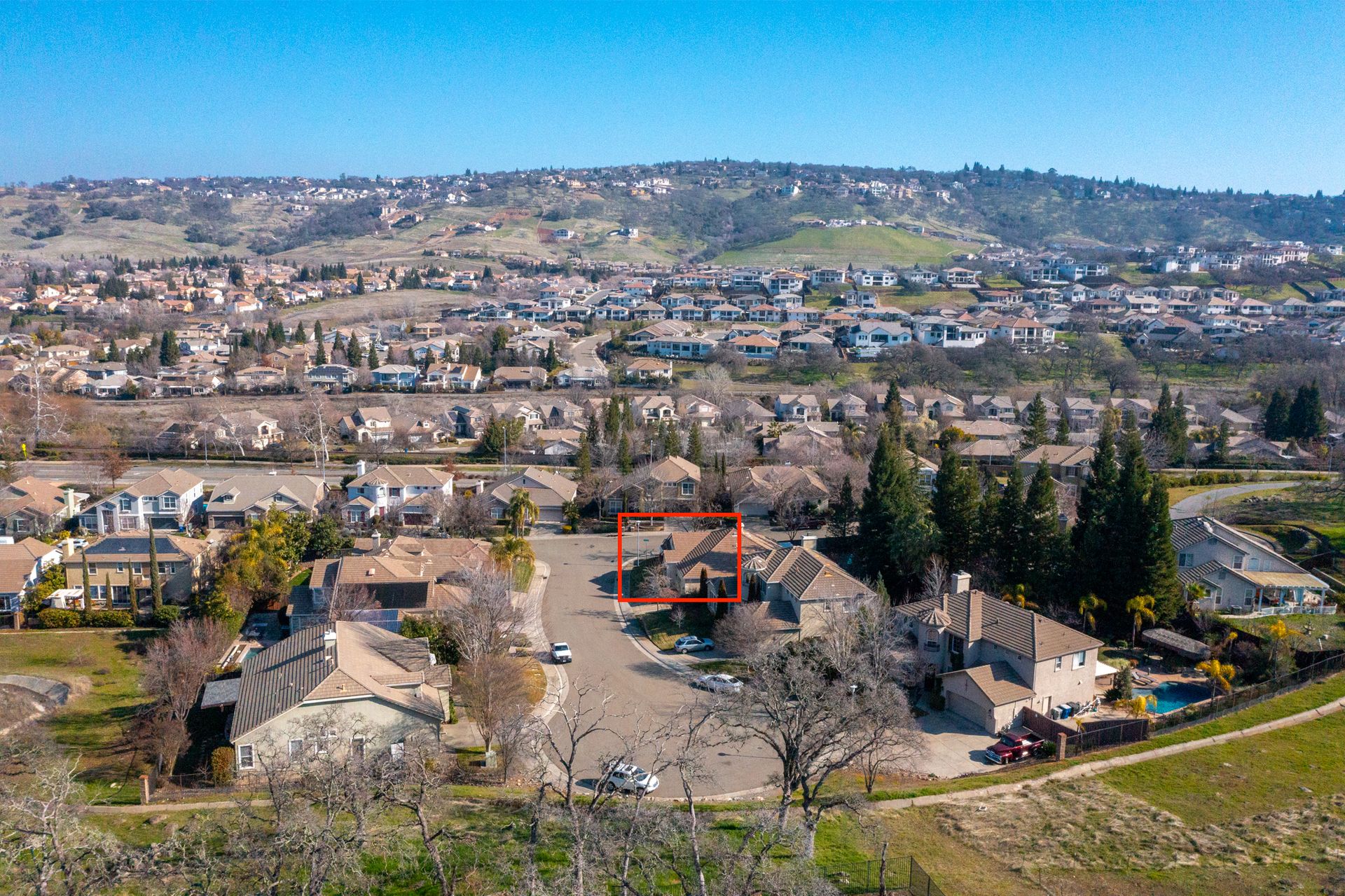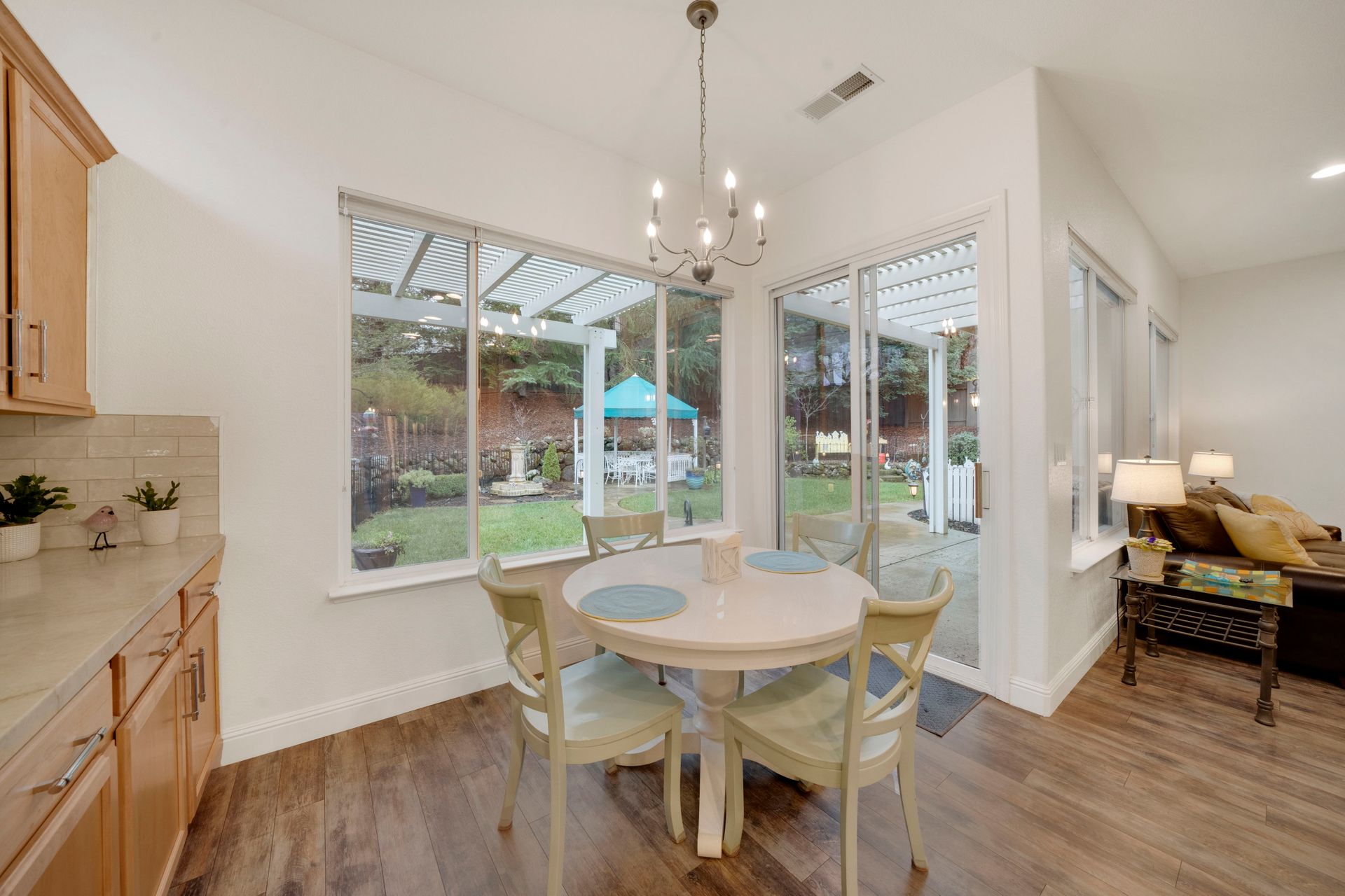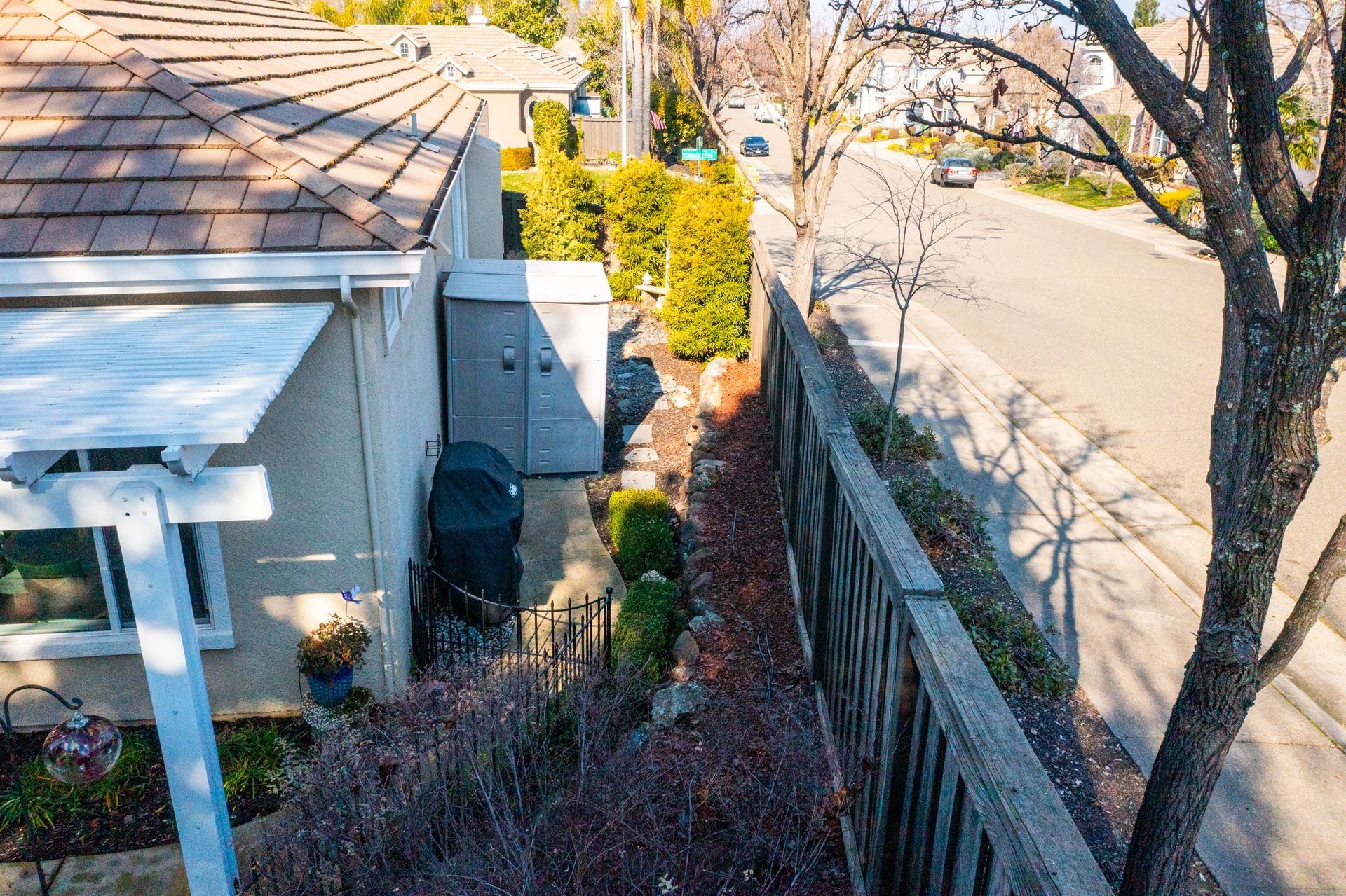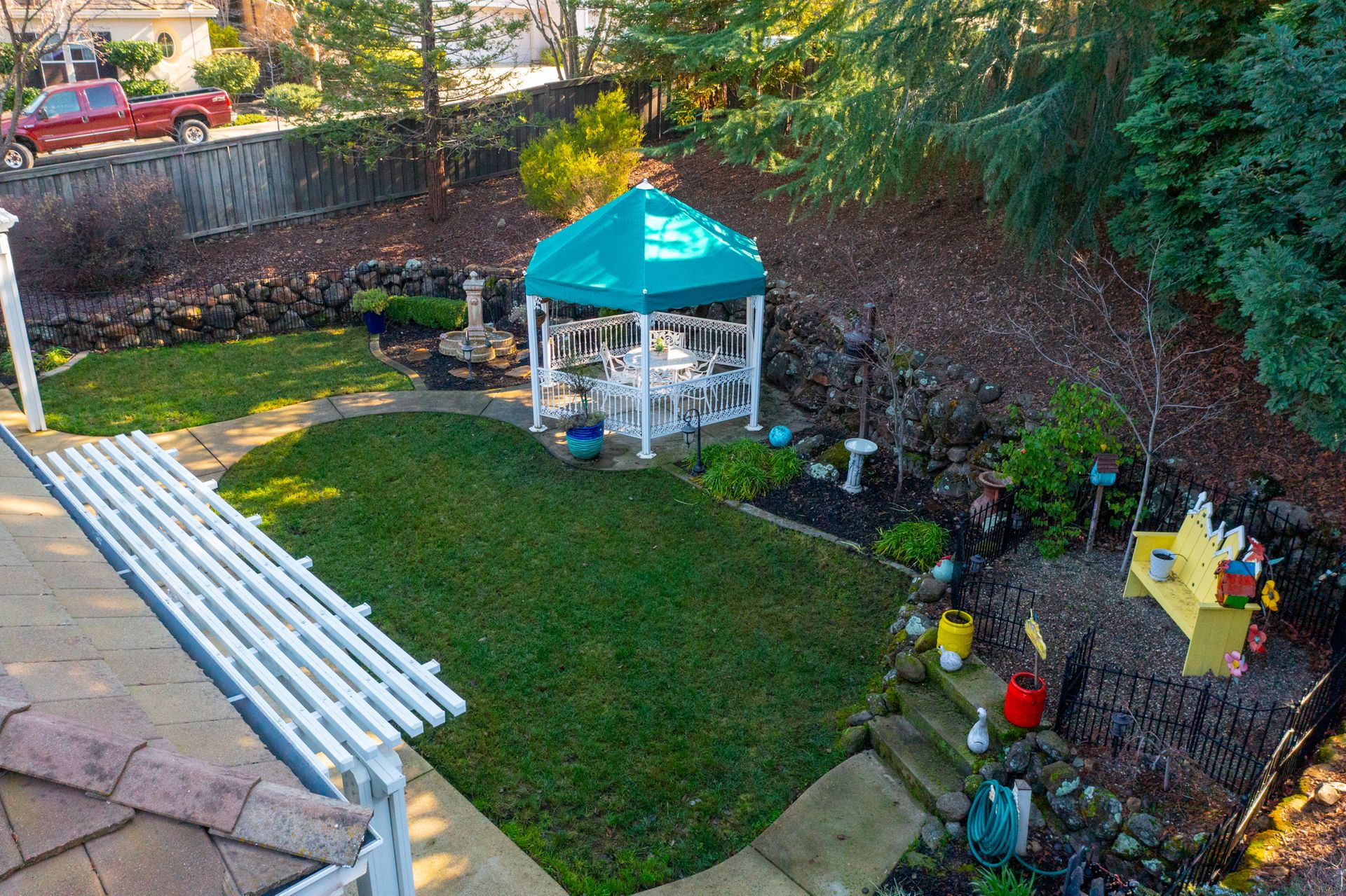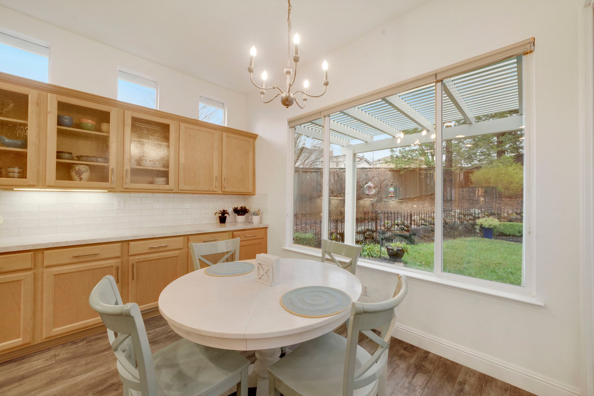 Situated on close to a quarter acre, a coveted corner lot at the end of a double cul-de-sac, this Empire Ranch home blends modern design with timeless comfort. Natural light floods the open floor plan, highlighting the stylish earth-tone flooring and thoughtful details throughout. The kitchen is a showstopper, featuring quartzite counters, stainless steel appliances, a gas range, and a spacious island ideal for meal prep or casual gatherings. The adjoining nook and family room offer a seamless flow, with large windows overlooking the backyard and a cozy fireplace to elevate your downtime. The primary suite is a serene retreat with recessed ceilings, backyard views, a frameless glass shower, and a custom closet organizer. Practicality meets style with a dedicated laundry room, a garage with epoxy floors, built-in cabinets, and abundant storage. Venture outside to a private backyard sanctuary with a pergola, gazebo, lush trees, and plenty of space to unwind or entertain. This home offers the ideal balance of relaxation and sophistication in a Folsom prime location. Low HOA, no Mello Roos and near top performing schools. Enjoy being secluded but near parks, shopping, entertainment and restaurants. Come see!