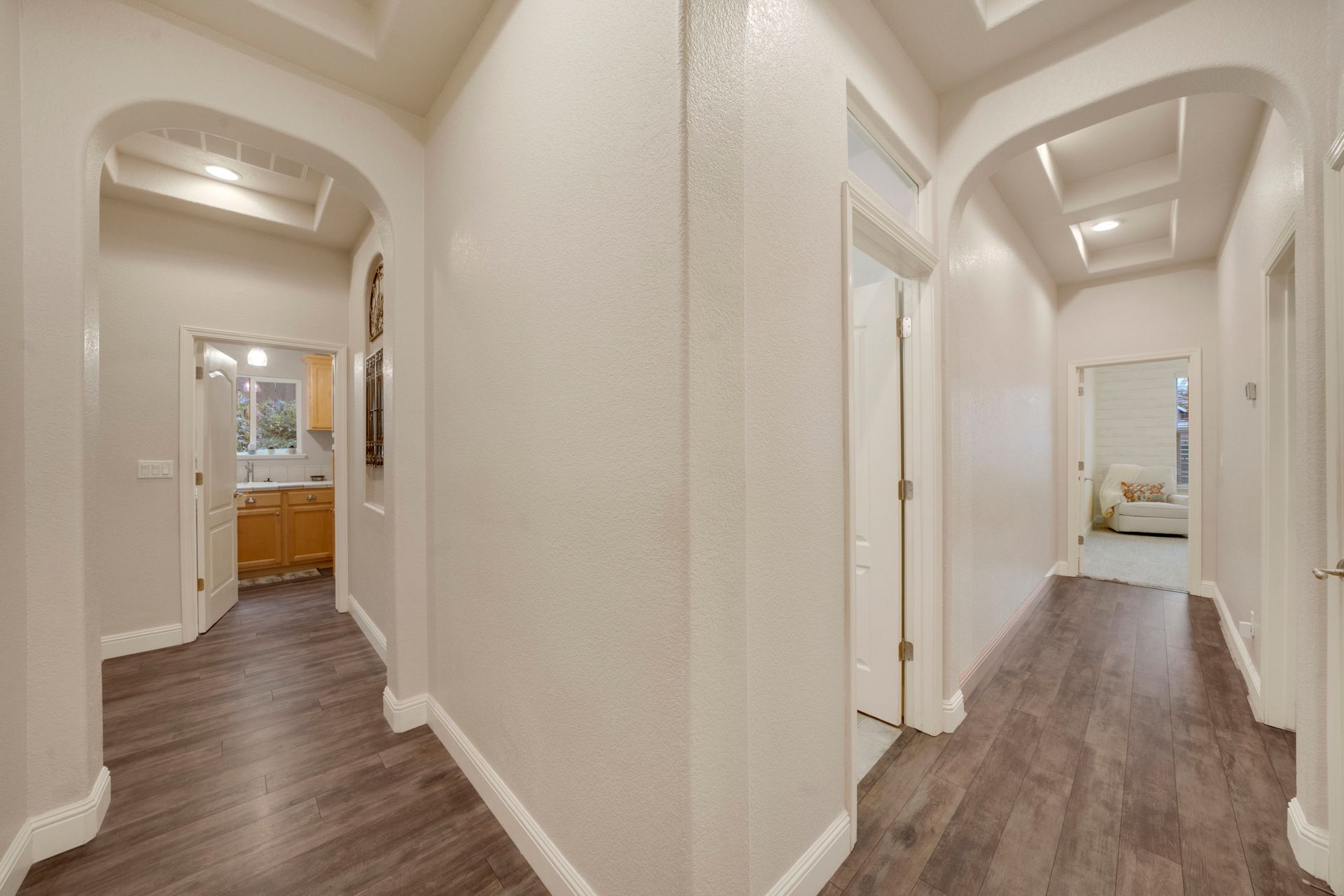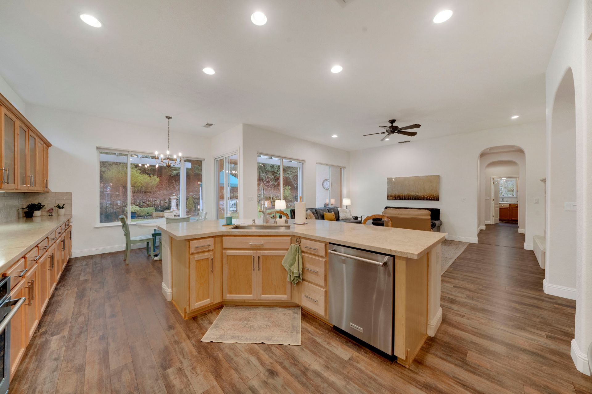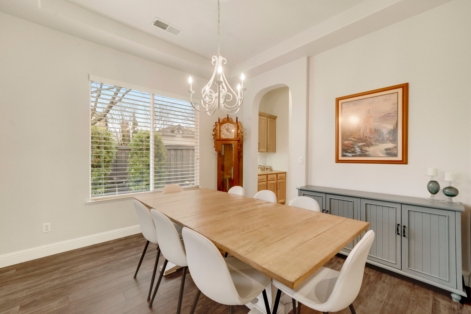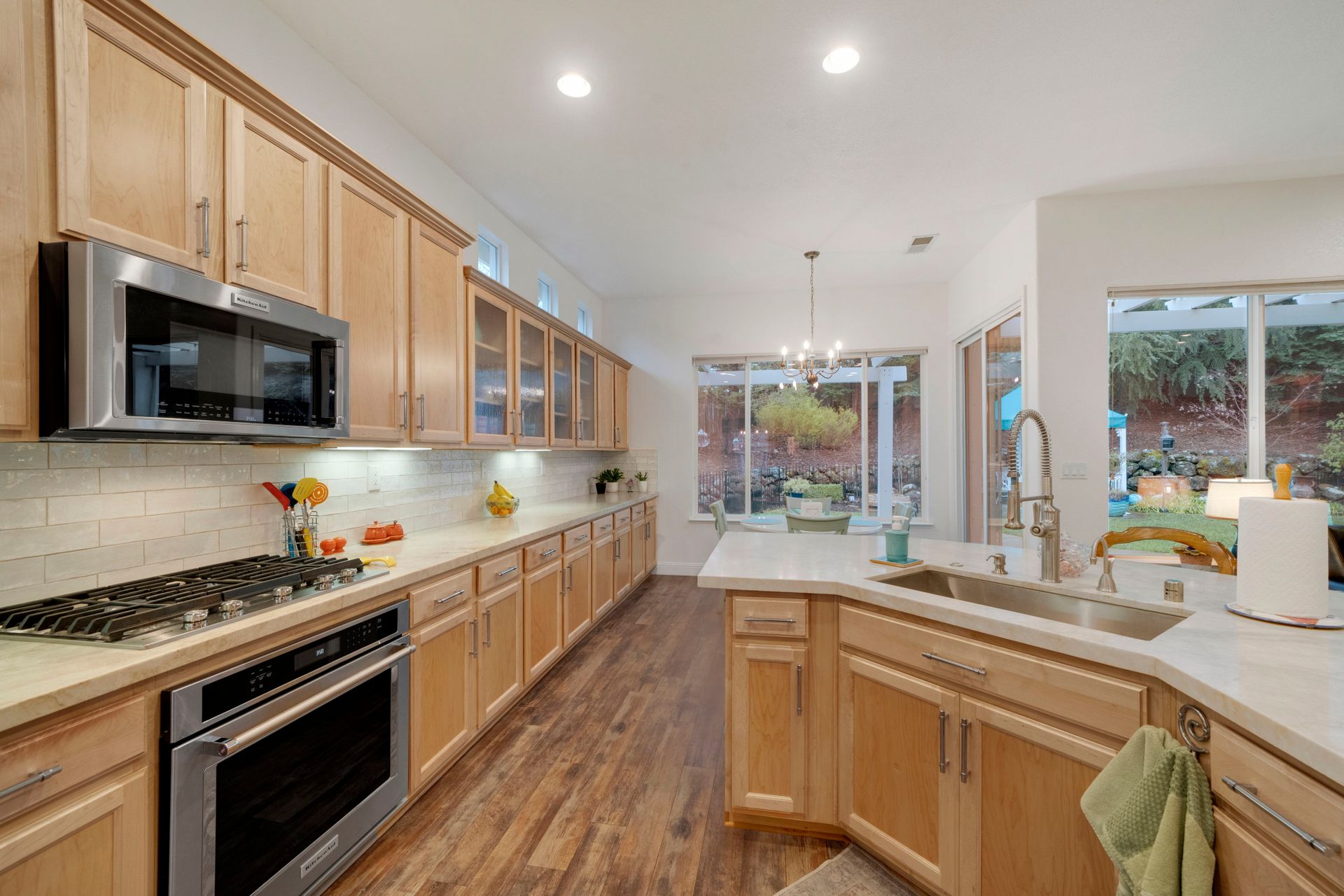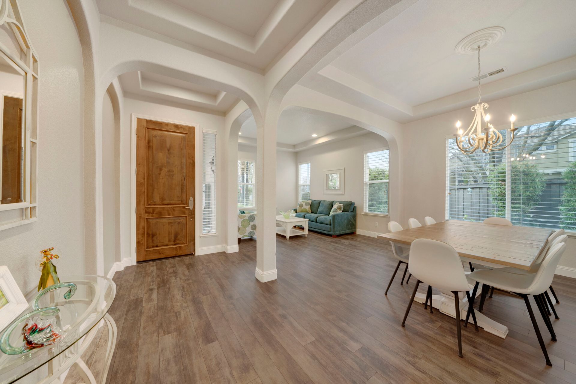 Situated on close to a quarter acre, a coveted corner lot at the end of a double cul-de-sac, this Empire Ranch home blends modern design with timeless comfort. Natural light floods the open floor plan, highlighting the stylish earth-tone flooring and thoughtful details throughout. The kitchen is a showstopper, featuring quartzite counters, stainless steel appliances, a gas range, and a spacious island ideal for meal prep or casual gatherings. The adjoining nook and family room offer a seamless flow, with large windows overlooking the backyard and a cozy fireplace to elevate your downtime. The primary suite is a serene retreat with recessed ceilings, backyard views, a frameless glass shower, and a custom closet organizer. Practicality meets style with a dedicated laundry room, a garage with epoxy floors, built-in cabinets, and abundant storage. Venture outside to a private backyard sanctuary with a pergola, gazebo, lush trees, and plenty of space to unwind or entertain. This home offers the ideal balance of relaxation and sophistication in a Folsom prime location. Low HOA, no Mello Roos and near top performing schools. Enjoy being secluded but near parks, shopping, entertainment and restaurants. Come see!