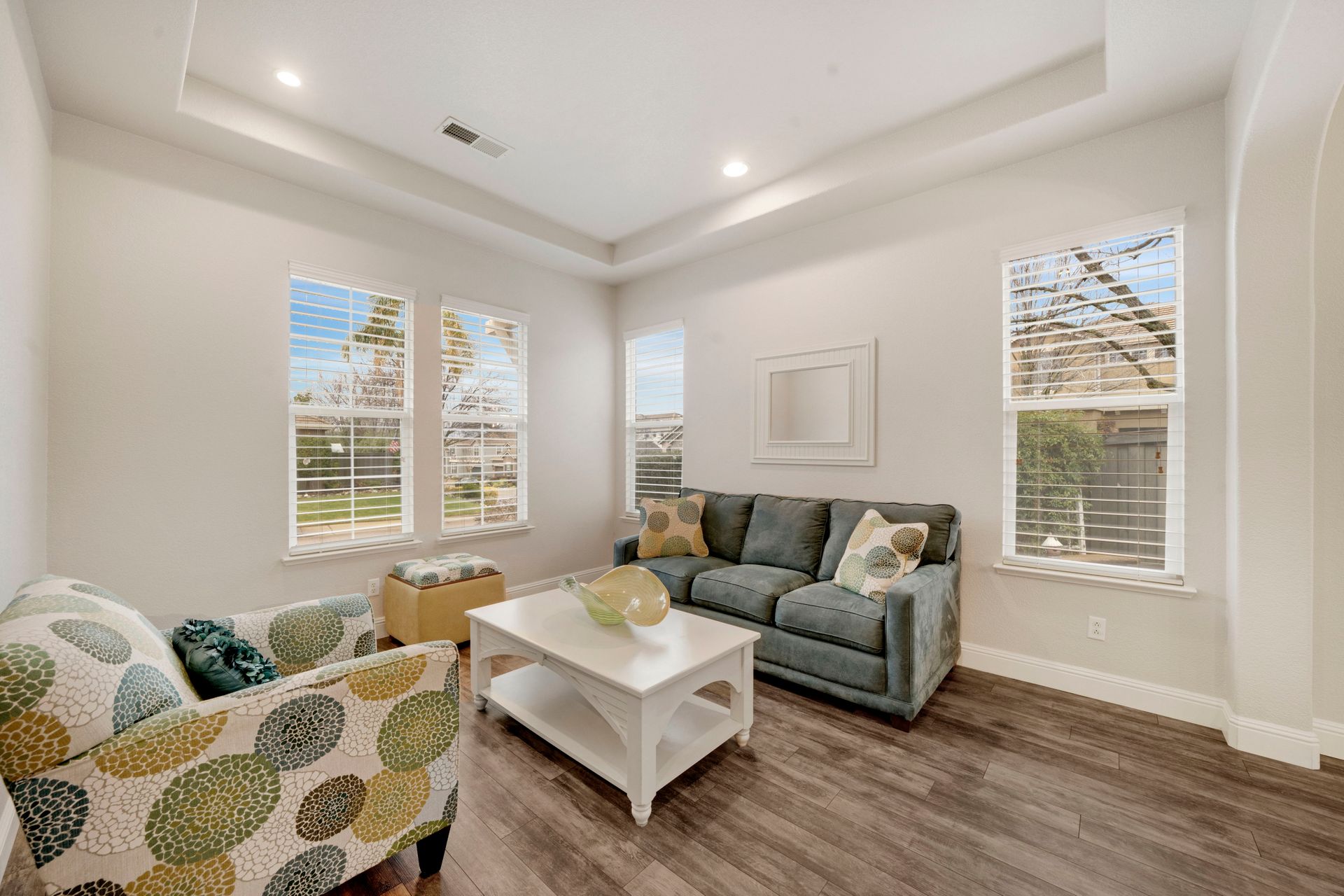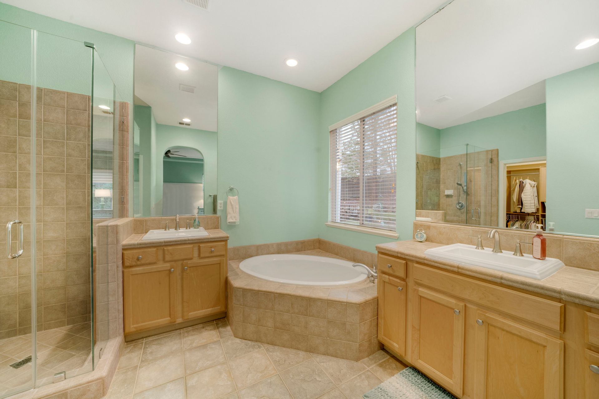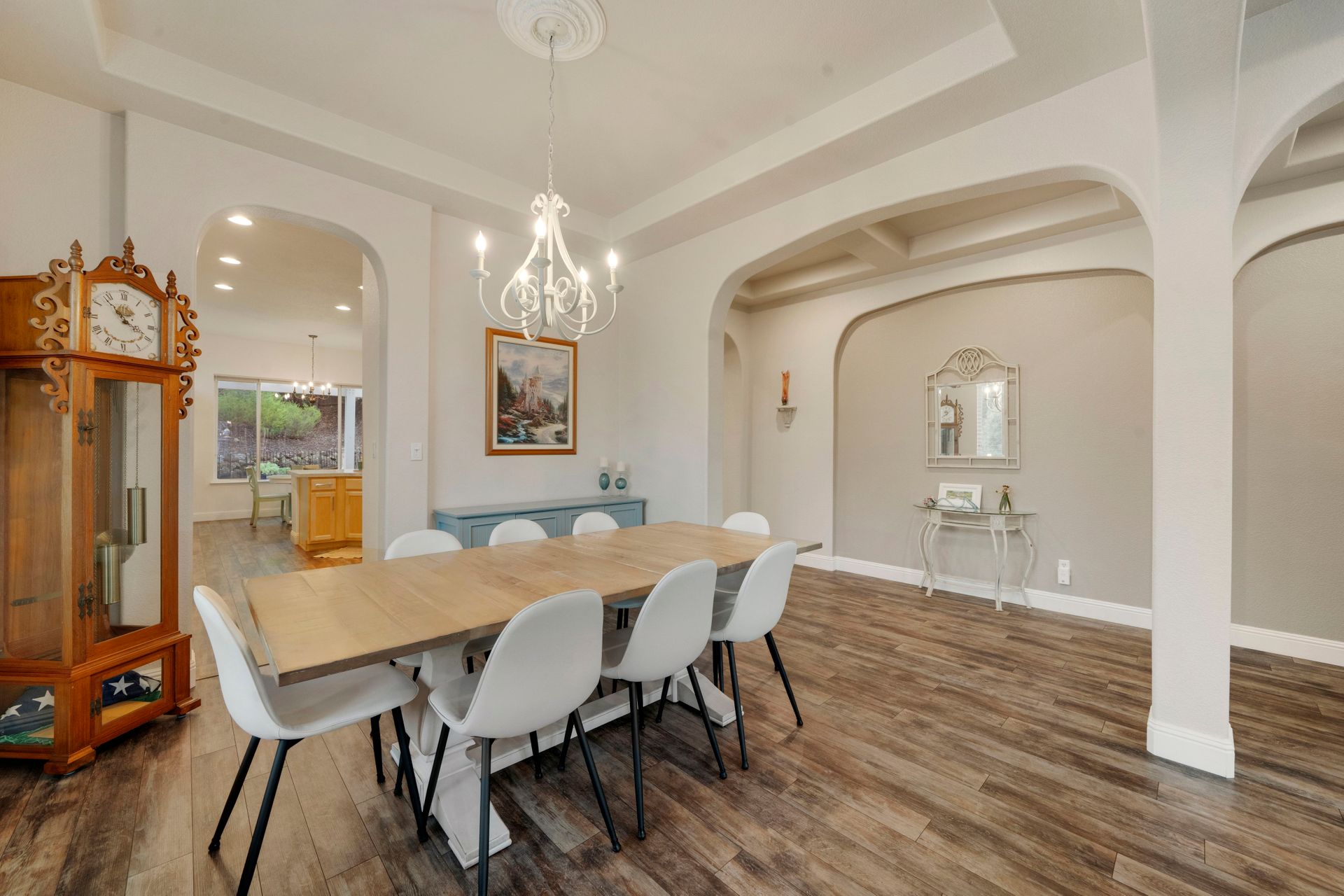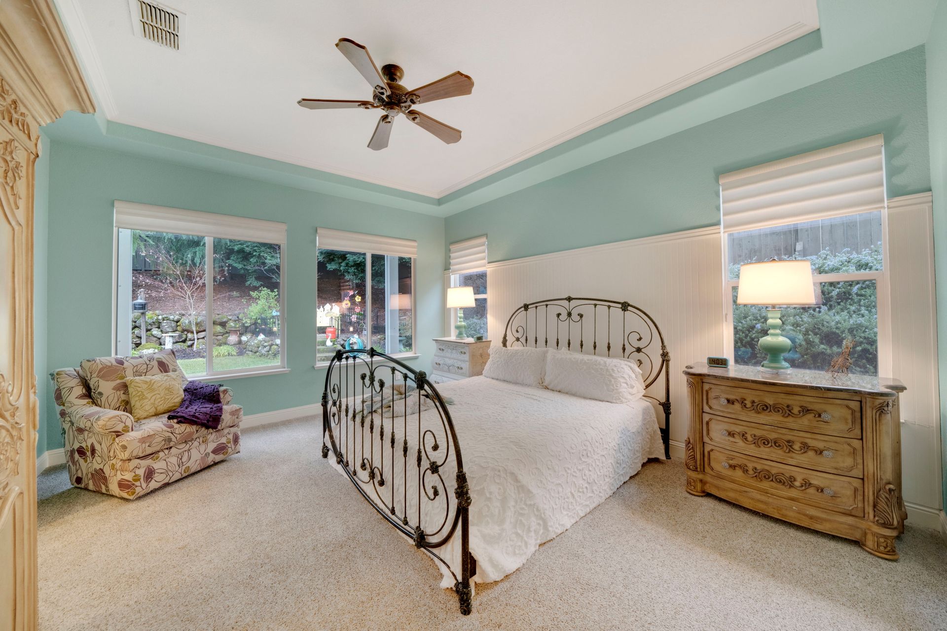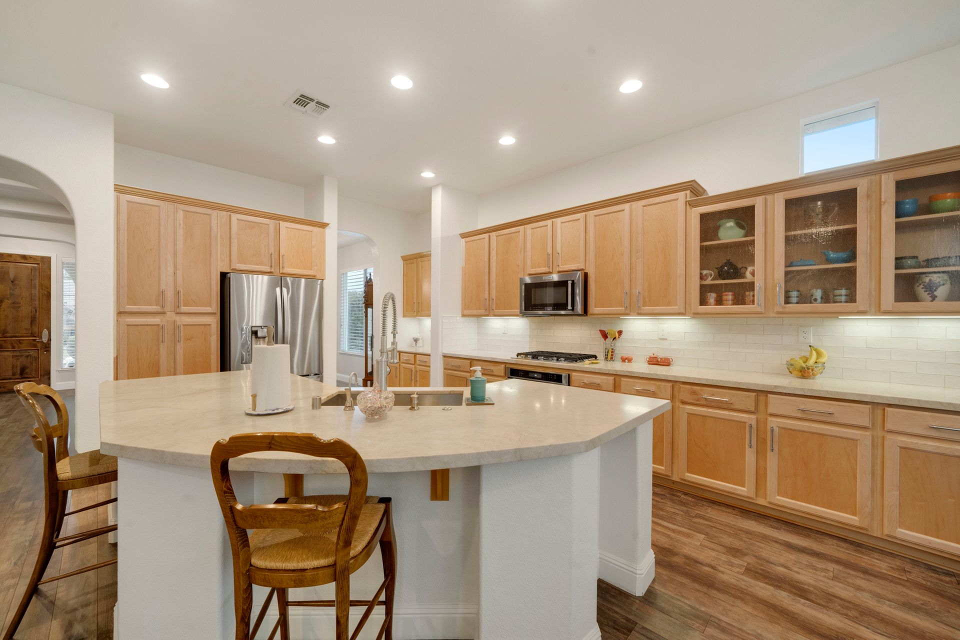 Situated on close to a quarter acre, a coveted corner lot at the end of a double cul-de-sac, this Empire Ranch home blends modern design with timeless comfort. Natural light floods the open floor plan, highlighting the stylish earth-tone flooring and thoughtful details throughout. The kitchen is a showstopper, featuring quartzite counters, stainless steel appliances, a gas range, and a spacious island ideal for meal prep or casual gatherings. The adjoining nook and family room offer a seamless flow, with large windows overlooking the backyard and a cozy fireplace to elevate your downtime. The primary suite is a serene retreat with recessed ceilings, backyard views, a frameless glass shower, and a custom closet organizer. Practicality meets style with a dedicated laundry room, a garage with epoxy floors, built-in cabinets, and abundant storage. Venture outside to a private backyard sanctuary with a pergola, gazebo, lush trees, and plenty of space to unwind or entertain. This home offers the ideal balance of relaxation and sophistication in a Folsom prime location. Low HOA, no Mello Roos and near top performing schools. Enjoy being secluded but near parks, shopping, entertainment and restaurants. Come see!