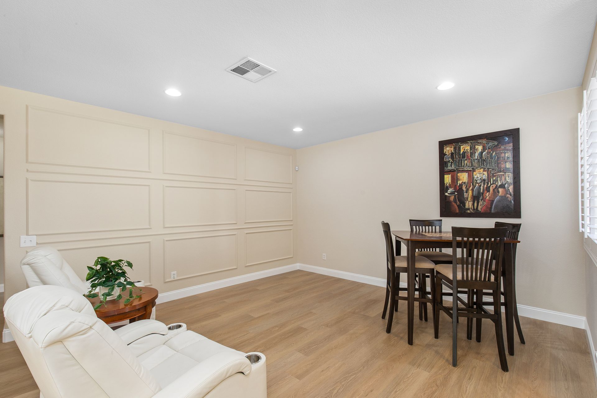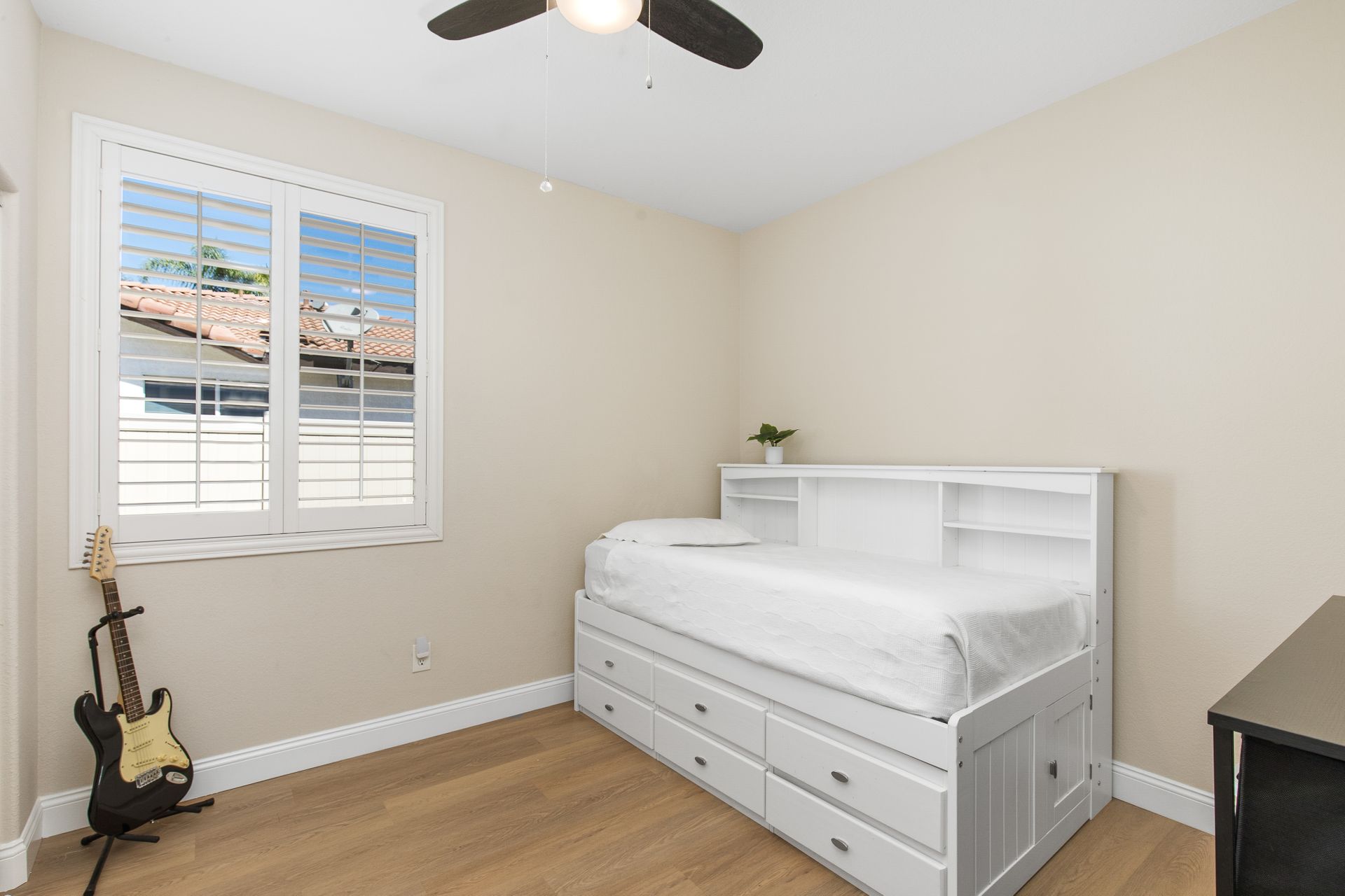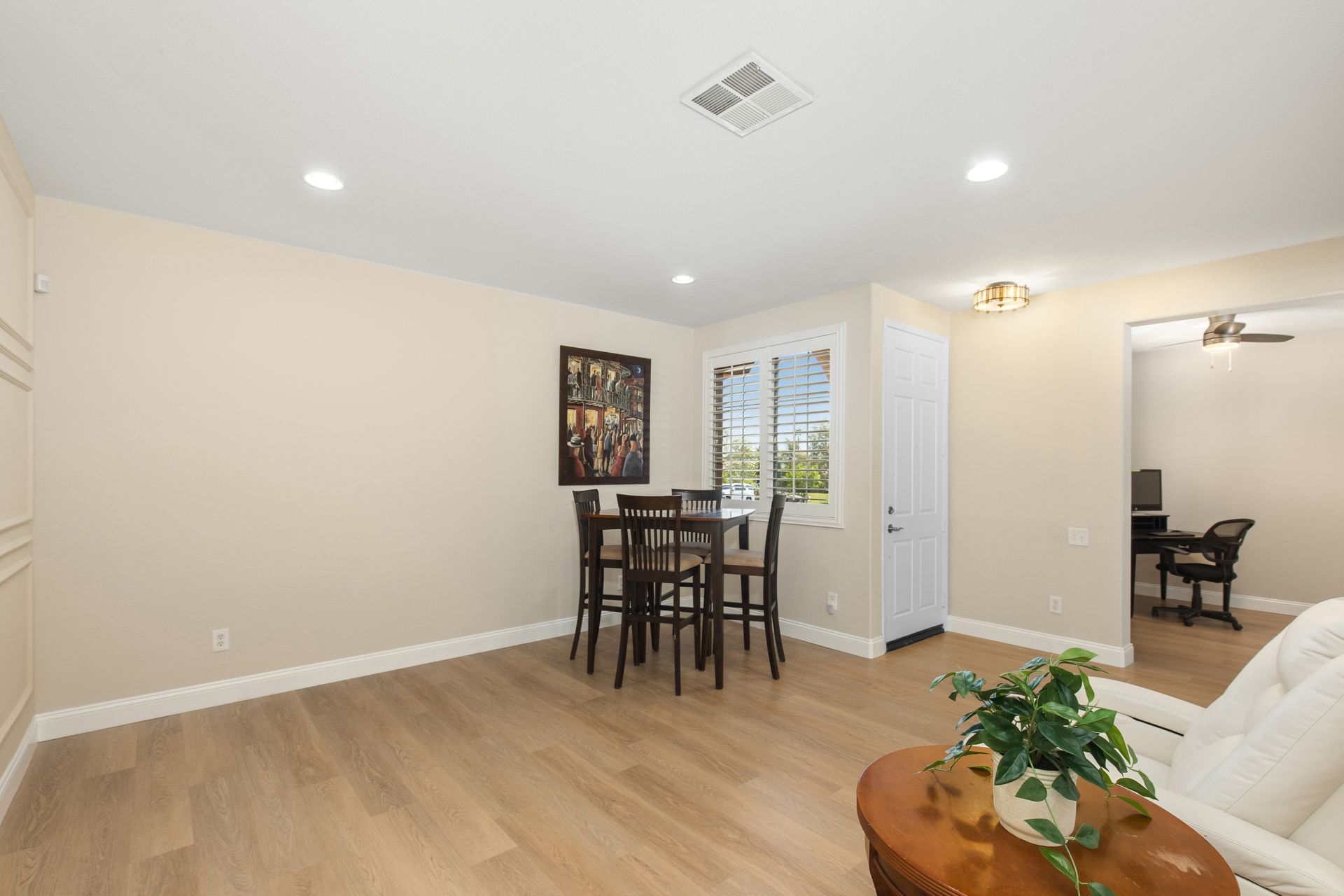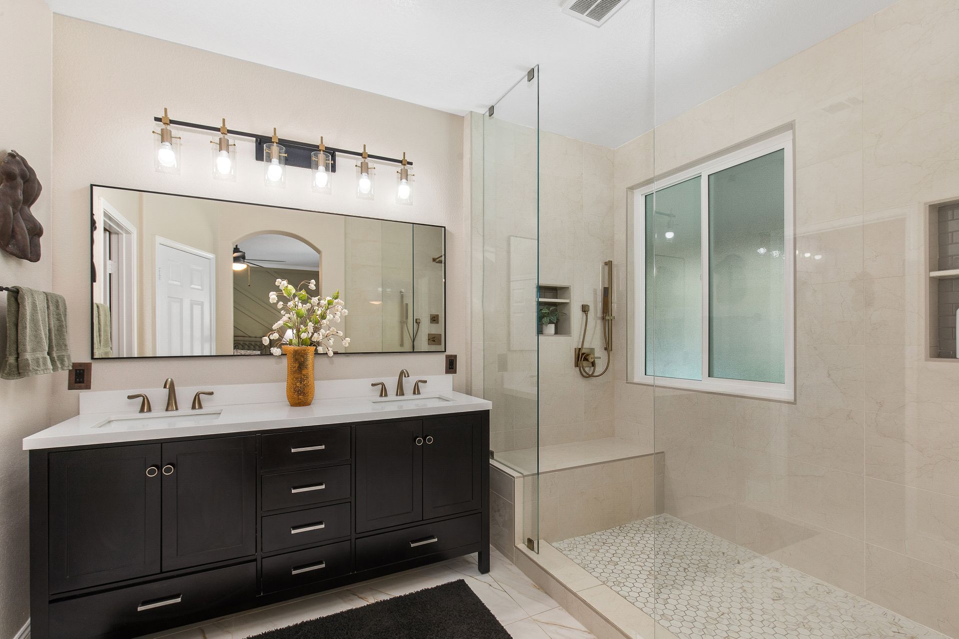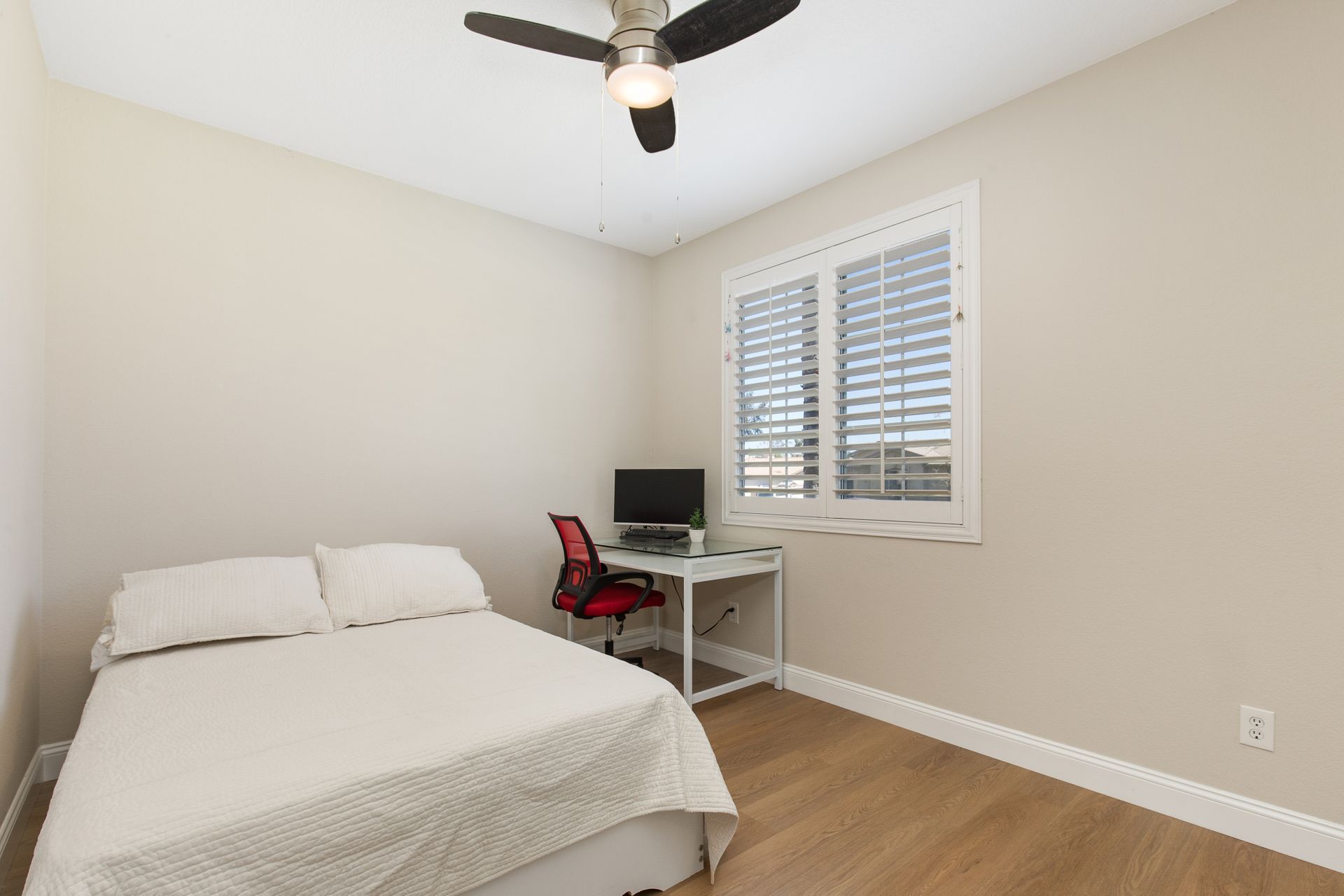 Welcome to this stunning single-story, five-bedroom residence nestled in the prestigious Eagle Glen community. As you enter inside, natural light floods through the windows, illuminating the elegant formal living room adorned with tasteful architectural wall decor. The open floorplan effortlessly connects the formal living and dining areas to the family room, boasting wide doorways for seamless transitions. Currently utilized as an office, the dining room offers versatility and is located alongside the adjacent bedroom and three-quarters bath in the front wing of the home. The family room features a cozy fireplace and expansive picture windows, flowing into the well-appointed kitchen which boasts an island, ample countertop space and abundant cabinetry. A conveniently located laundry room adds to the home's practical layout. Enter through the sliding glass door to discover the backyard oasis with a spacious covered patio featuring ceiling fans, great for alfresco dining. The sparkling pool and spa beckon for gatherings and relaxation, creating an ideal setting for entertaining guests. Off a central hallway, four additional bedrooms await, including the luxurious primary suite. This oversized retreat showcases custom wall decor and offers direct access to the pool and spa through another sliding glass door. The recently remodeled ensuite bathroom is a sanctuary with a walk-in shower featuring dual shower heads and bench seating. Rounding out the layout, three guest bedrooms share a stylishly appointed guest bathroom with a charming barn door for added character and functionality. Make an appointment to view this impressive home today!