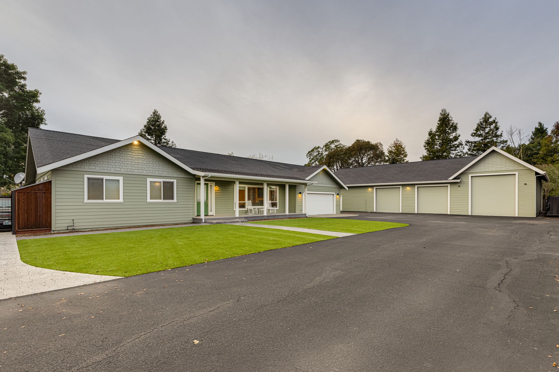 Welcome home to Penngrove’s Canon Manor Estates in the heart of Wine Country! A paved driveway leads to over 1/2 acre flag lot w/gated entrance. Enjoy the large, covered porch while watching the sun rise over the mountains. Custom single-story home features a large great room, vaulted ceilings, custom cabinets, large island, stainless steel appliances, stone slab counters, recessed lighting, hardwood floors, gas fireplace. Large master suite features a fireplace, walk-in closet w/cabinets and Quartz counters, vaulted ceilings and French doors leading to the backyard. Master bathroom w/dual sinks, large shower with glass enclosure and large jetted tub. Home includes 2,460 square feet of living space, 3 bedrooms, 2.5 bathrooms, built in 2008. Four-car garage is 900 square feet and built for potential living space. 3,200 square foot shop (matching wood construction) finished interior w/potential office space. Home is located on the back lot (no easement) with drought tolerant landscaping.