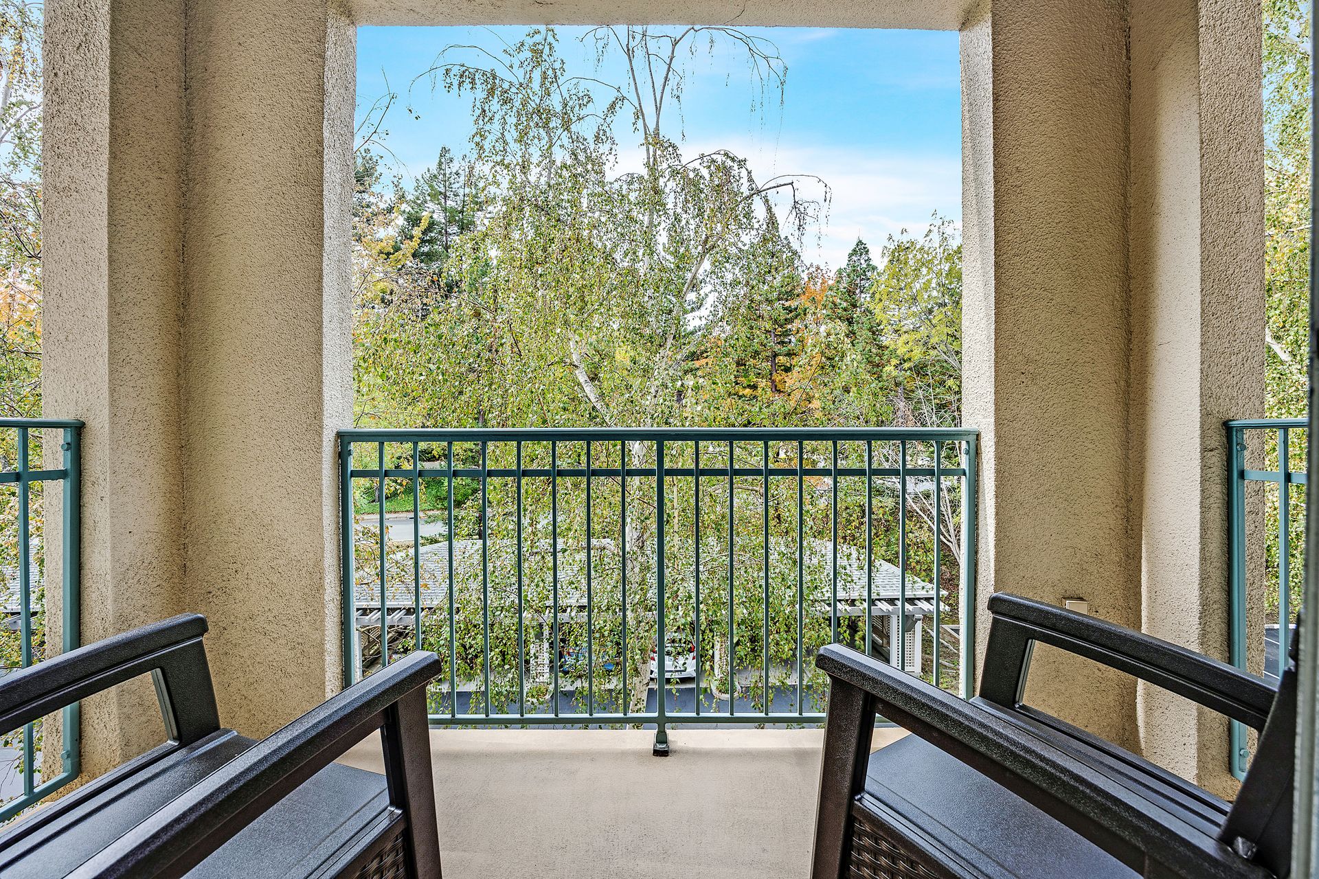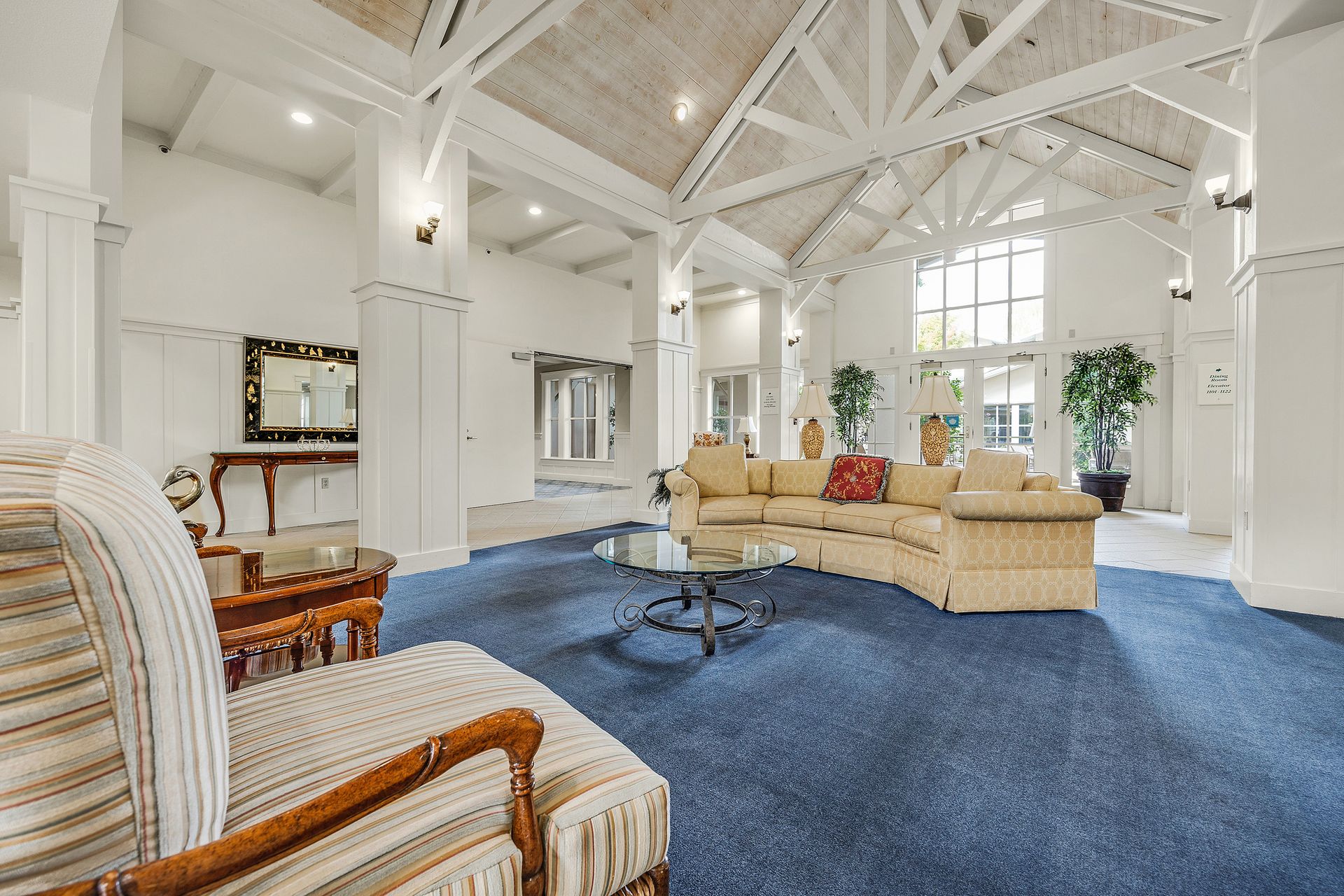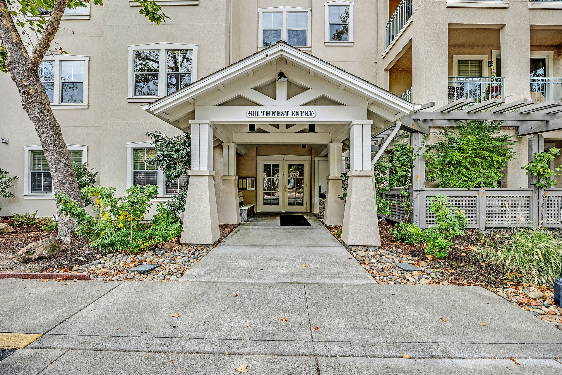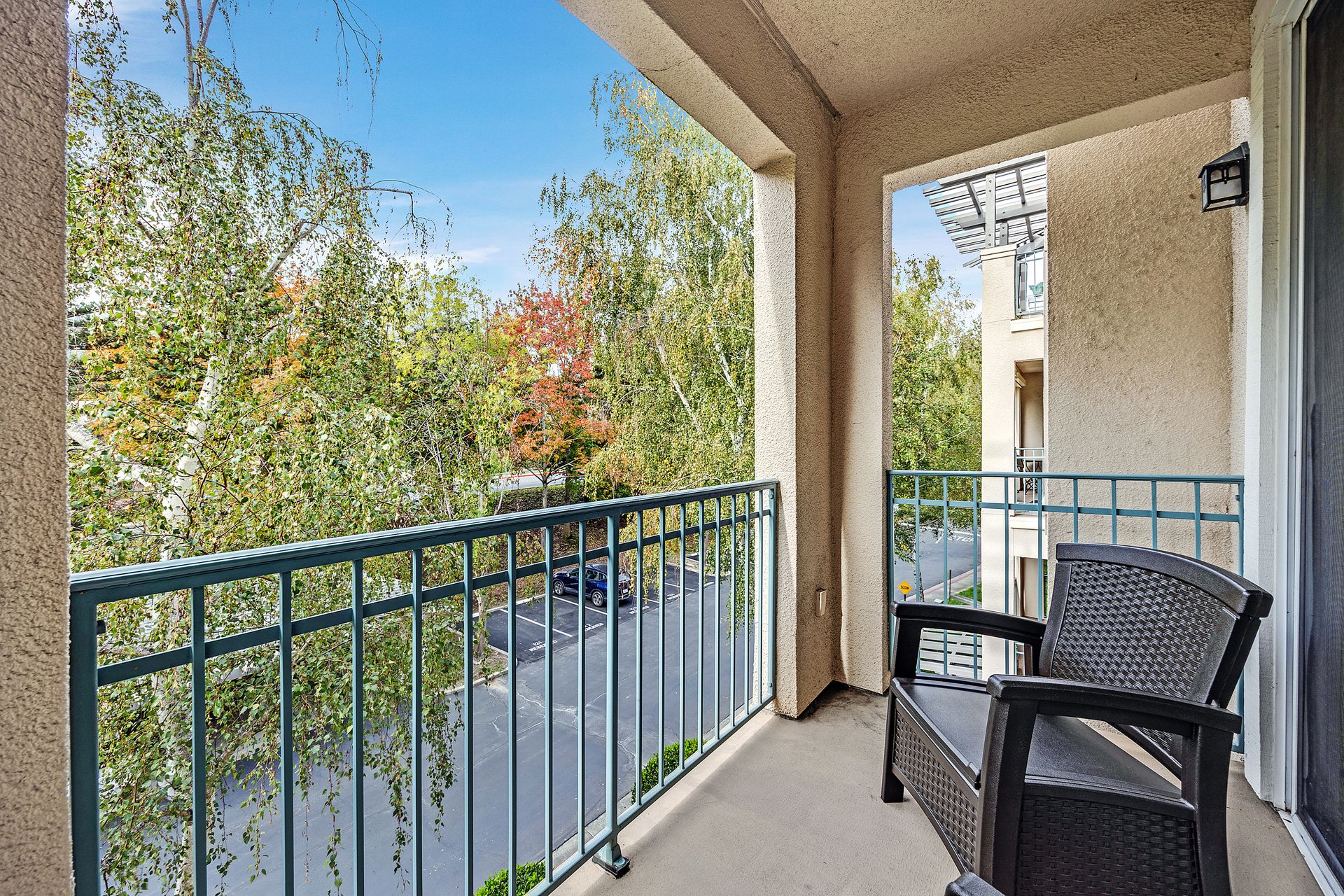 Enjoy the good life at The Waterford Complex in Rossmore, the premier Age 55+ resort in the San Francisco Bay Area. This lovely one bedroom, one bathroom condo on the third floor is located close to the elevator with extra storage nearby. East facing exposure brings lots of beautiful sunlight with views of the treetops. Enjoy your morning coffee or tea on the private balcony. Waterford residents enjoy a daily meal in the beautiful dining room overlooking the ponds and lush greenbelts, weekly light housekeeping and a variety of planned activities for residents as well as access to all the wonderful amenities of the Rossmore community such as 24 hour gated access, pools, a fitness center, golf course, tennis, movie theatre and much more. Beautiful neutral paint, carpeting, high ceilings, a fully equipped galley kitchen overlooking the spacious living/dining area, ample closet space, newly installed custom blinds in the living room, a newer smart TV, a stackable washer and dryer and A/C are just some of the features of this cozy condo. The assigned parking space is located close to the Southwest Entrance. The home is ready for you to move right in and begin living your wonderful life at The Waterford.