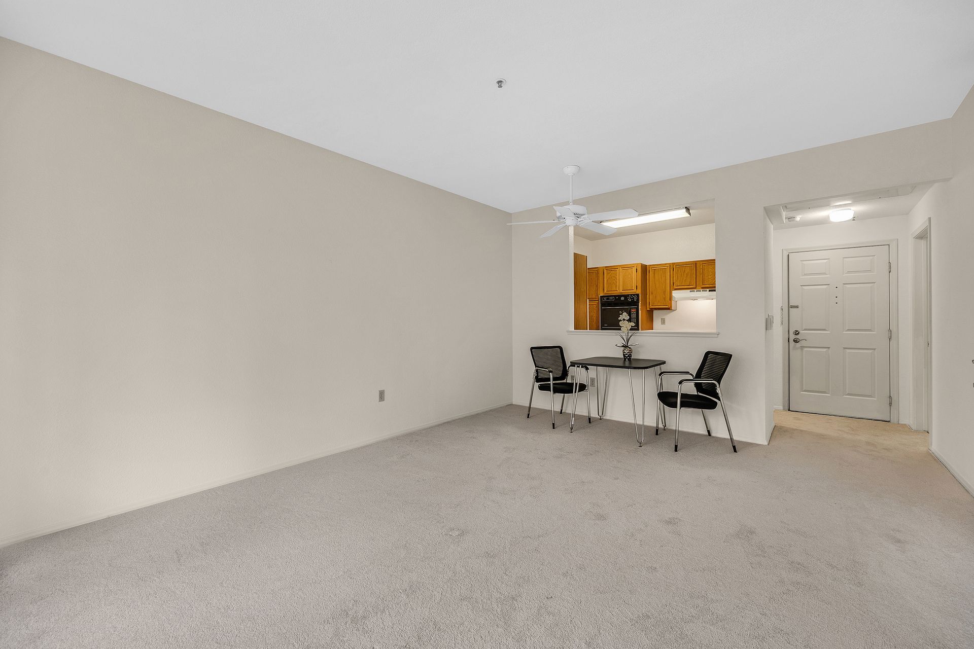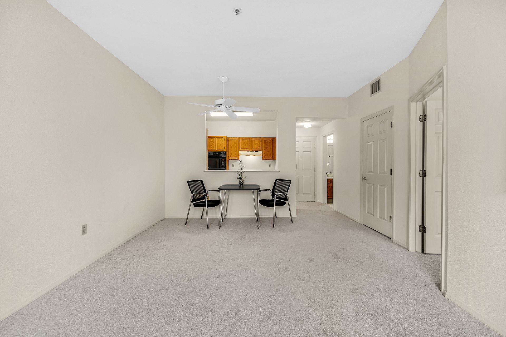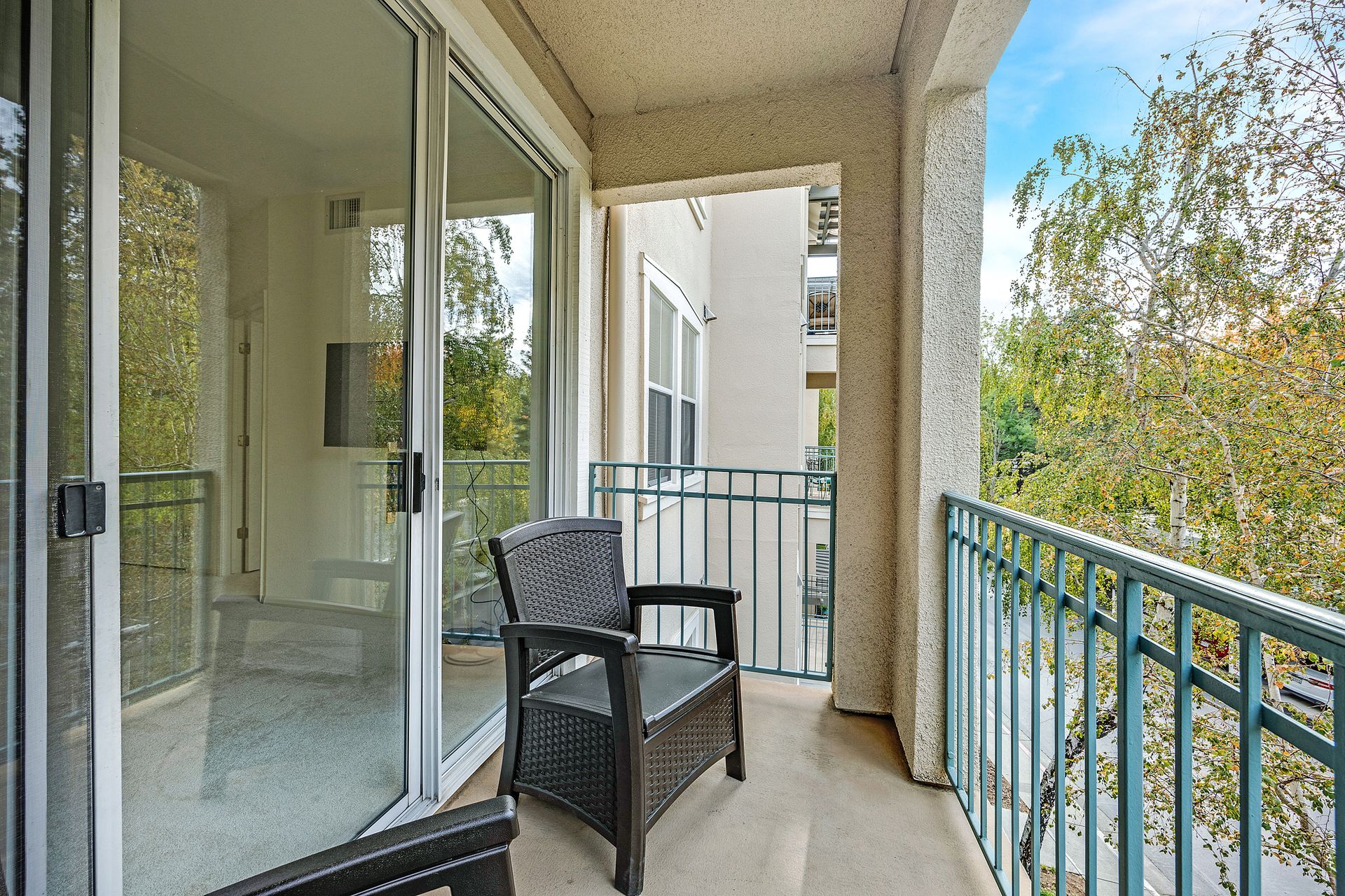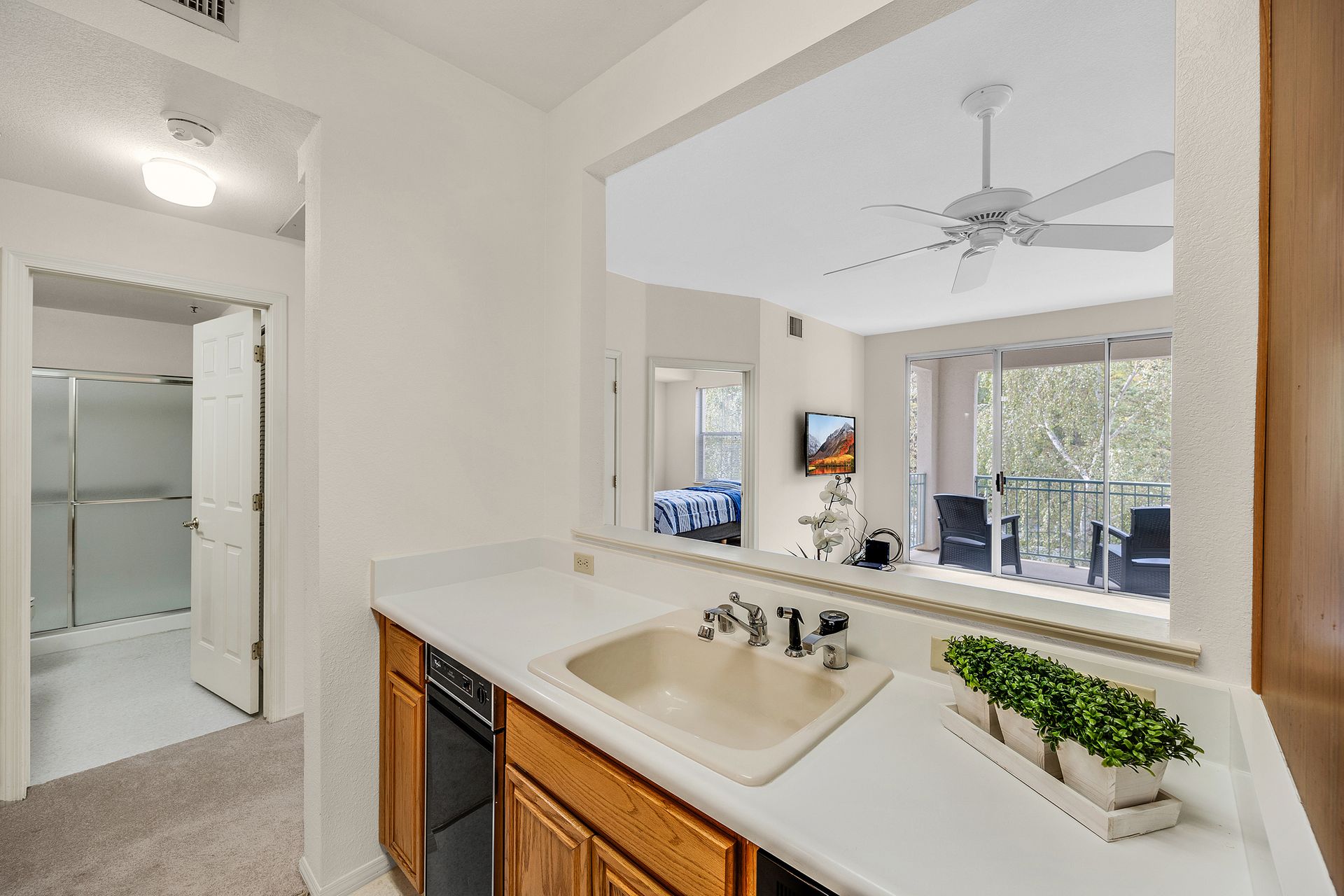 Enjoy the good life at The Waterford Complex in Rossmore, the premier Age 55+ resort in the San Francisco Bay Area. This lovely one bedroom, one bathroom condo on the third floor is located close to the elevator with extra storage nearby. East facing exposure brings lots of beautiful sunlight with views of the treetops. Enjoy your morning coffee or tea on the private balcony. Waterford residents enjoy a daily meal in the beautiful dining room overlooking the ponds and lush greenbelts, weekly light housekeeping and a variety of planned activities for residents as well as access to all the wonderful amenities of the Rossmore community such as 24 hour gated access, pools, a fitness center, golf course, tennis, movie theatre and much more. Beautiful neutral paint, carpeting, high ceilings, a fully equipped galley kitchen overlooking the spacious living/dining area, ample closet space, newly installed custom blinds in the living room, a newer smart TV, a stackable washer and dryer and A/C are just some of the features of this cozy condo. The assigned parking space is located close to the Southwest Entrance. The home is ready for you to move right in and begin living your wonderful life at The Waterford.
