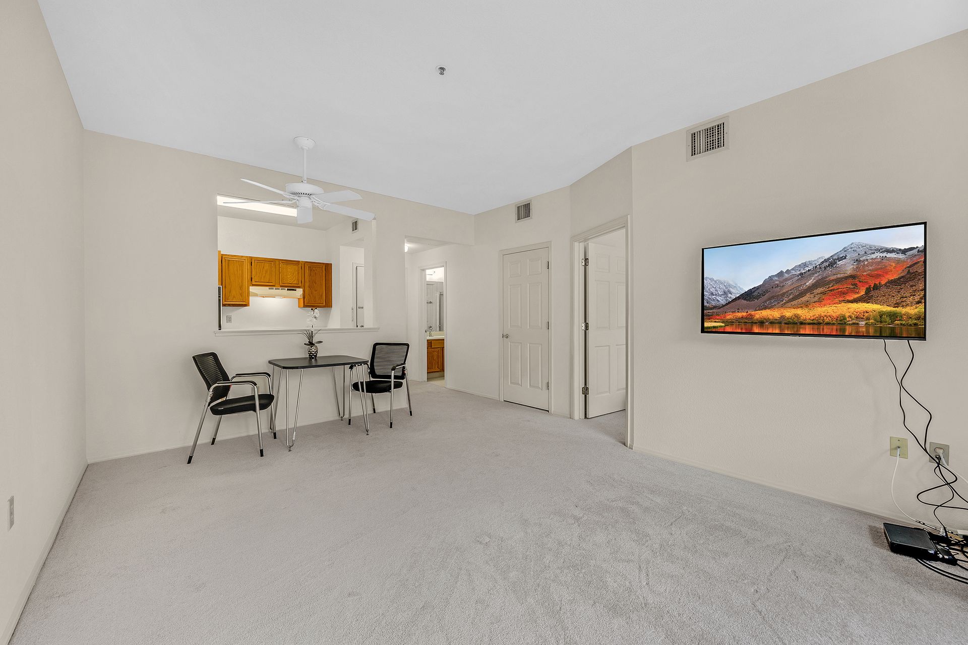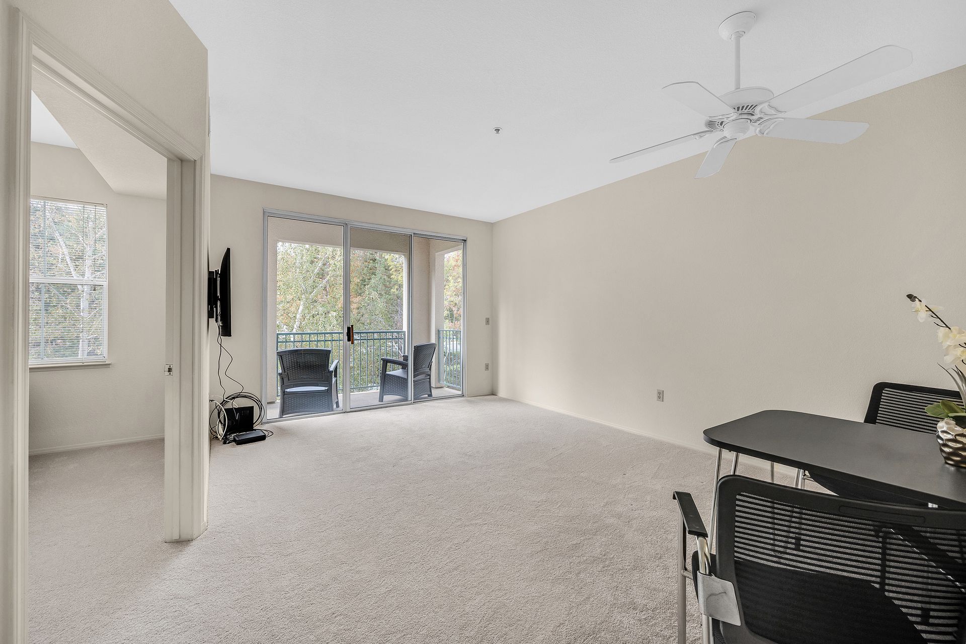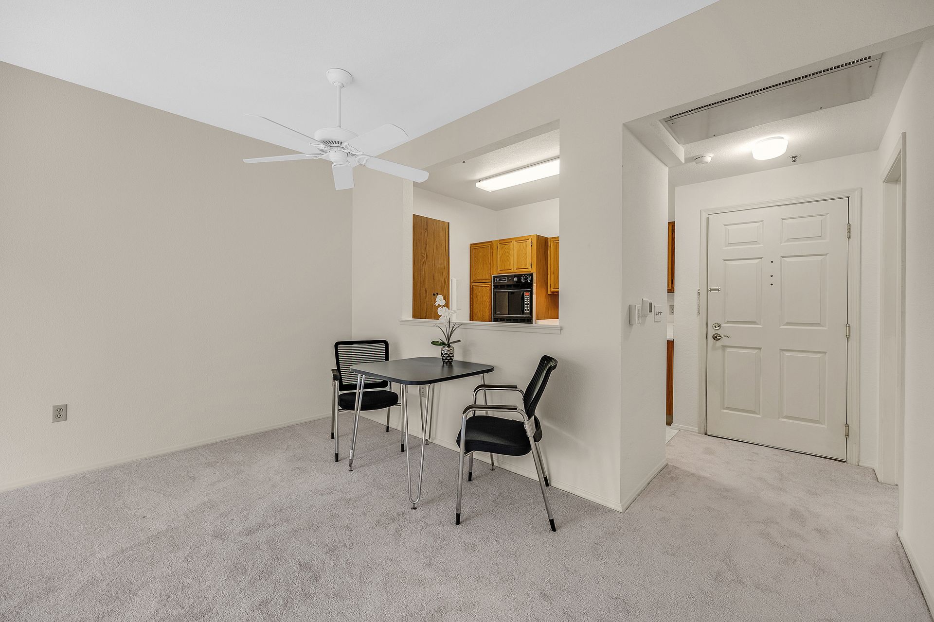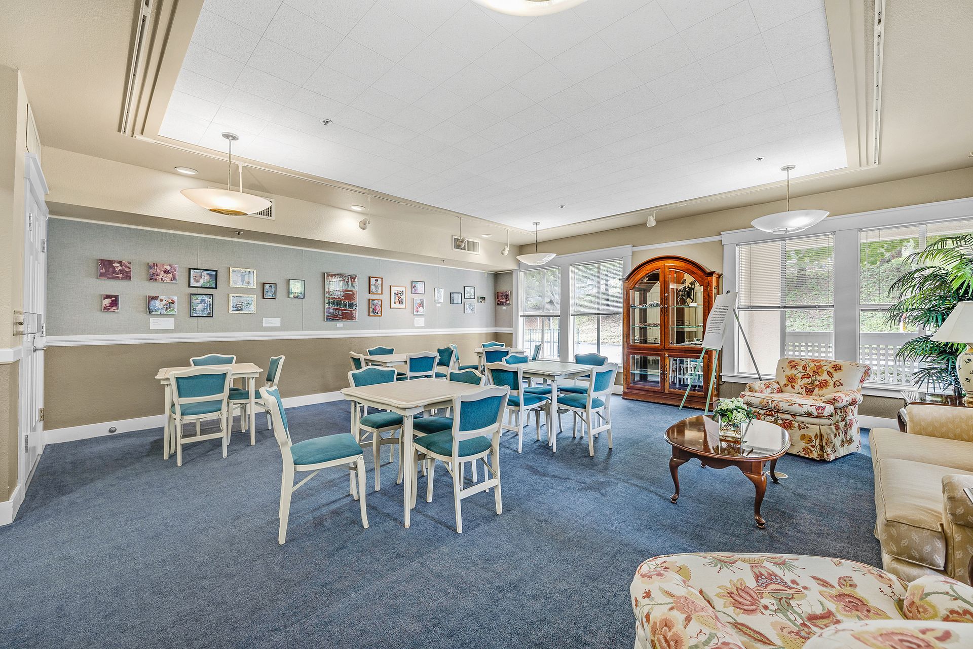 Enjoy the good life at The Waterford Complex in Rossmore, the premier Age 55+ resort in the San Francisco Bay Area. This lovely one bedroom, one bathroom condo on the third floor is located close to the elevator with extra storage nearby. East facing exposure brings lots of beautiful sunlight with views of the treetops. Enjoy your morning coffee or tea on the private balcony. Waterford residents enjoy a daily meal in the beautiful dining room overlooking the ponds and lush greenbelts, weekly light housekeeping and a variety of planned activities for residents as well as access to all the wonderful amenities of the Rossmore community such as 24 hour gated access, pools, a fitness center, golf course, tennis, movie theatre and much more. Beautiful neutral paint, carpeting, high ceilings, a fully equipped galley kitchen overlooking the spacious living/dining area, ample closet space, newly installed custom blinds in the living room, a newer smart TV, a stackable washer and dryer and A/C are just some of the features of this cozy condo. The assigned parking space is located close to the Southwest Entrance. The home is ready for you to move right in and begin living your wonderful life at The Waterford.