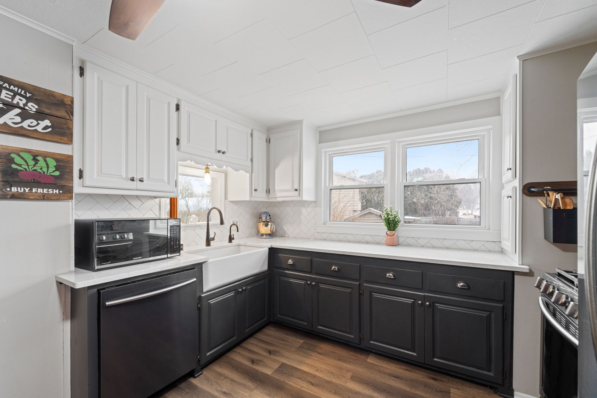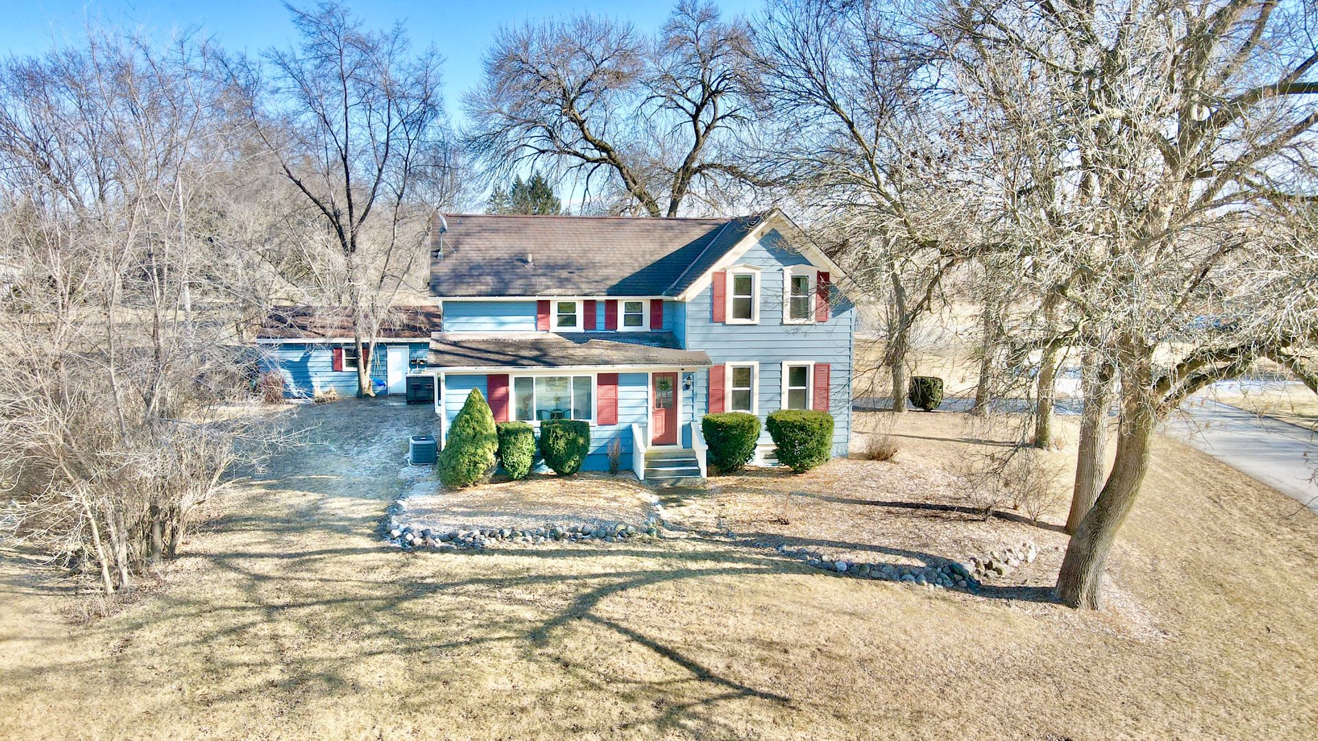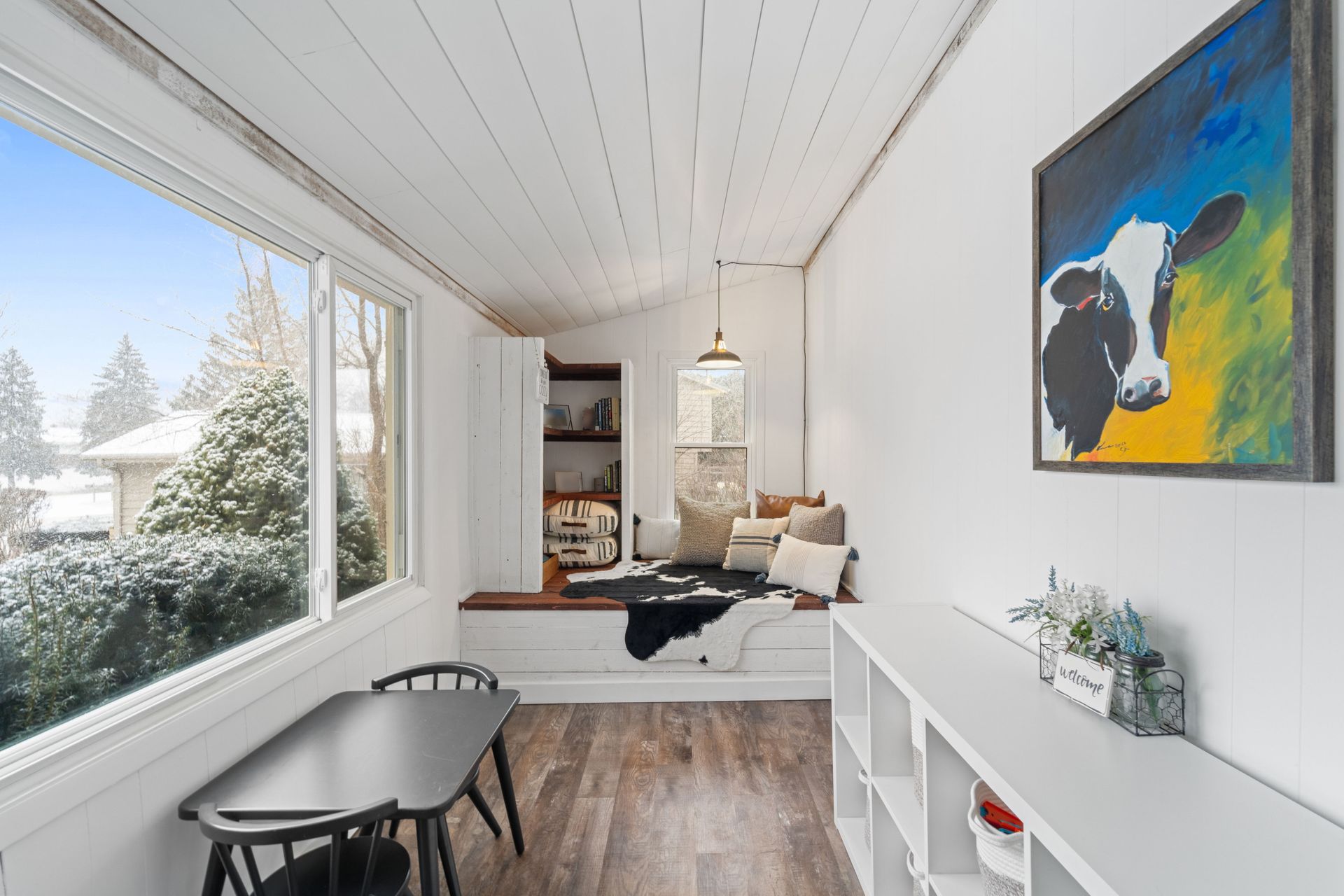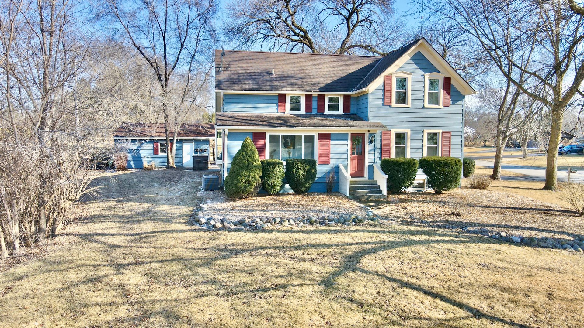 Charm and Character abounds in this updated, spacious, meticulously maintained 4 bedrooms, 2 full baths gorgeous farmhouse! Located in the sought after Elmbrook School District and desirable Subdivision, set on an expansive lot, this home offers ample space for outdoor activities. Old world charm meets modern comforts! Step right into the welcoming front porch offering a custom reading nook, new front door, large picture window, updated flooring and shiplap ceiling! The main floor bedroom is currently being used as an office/family room. Enjoy the convenience of a spacious main floor full bath and laundry room with a new washer and dryer. The gorgeous white kitchen offers stainless steel appliances, quartz counters, wide plank flooring and more. Enjoy the stunning beams in the great room with newer carpeting which opens to the dining room with a big bay window and built-in cabinet. The primary suite includes dual closets and an updated full ensuite bath. Convenient lower level walkout and patio with a bar. Great Location. Move right in and enjoy!