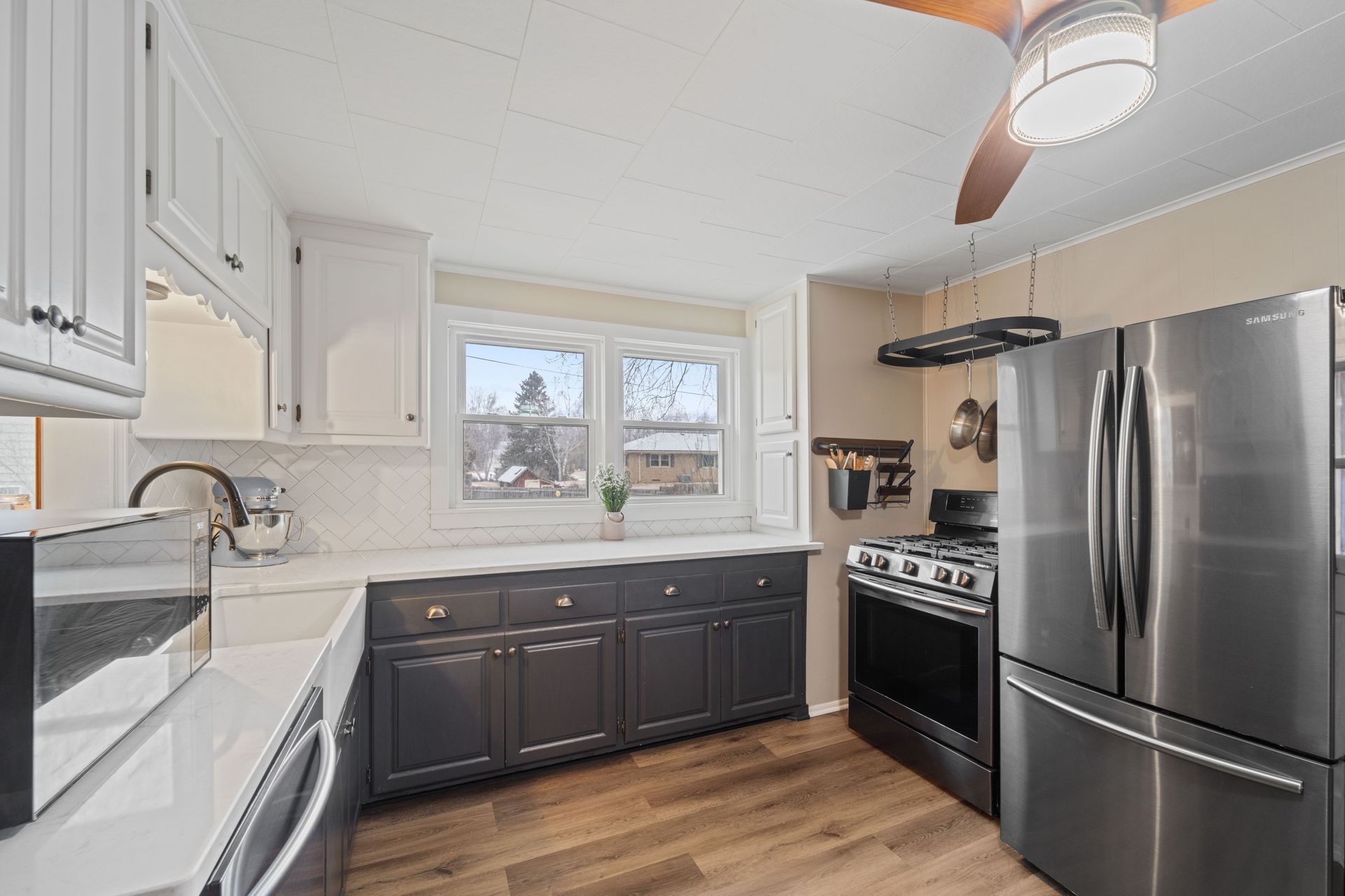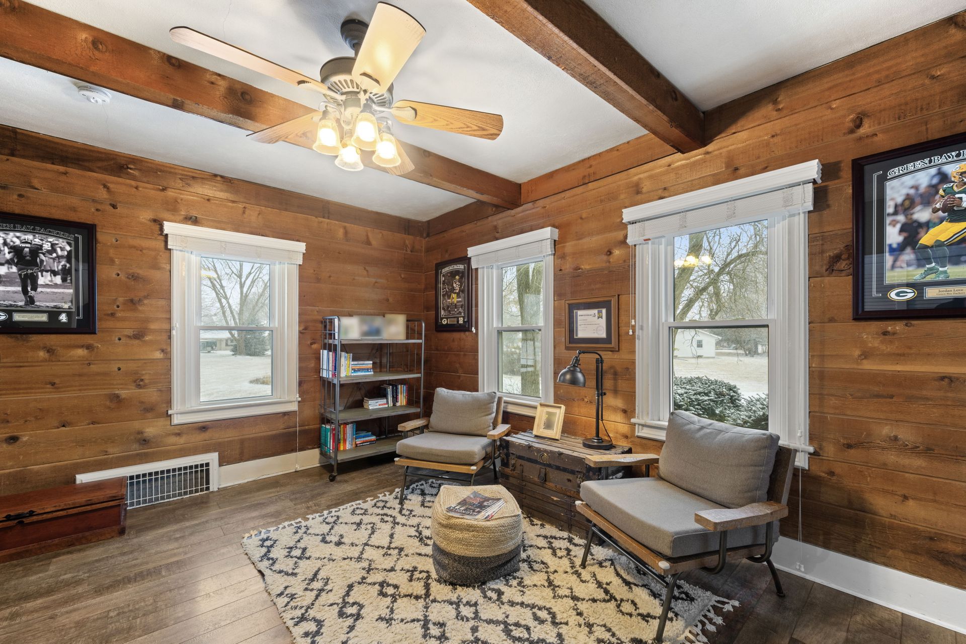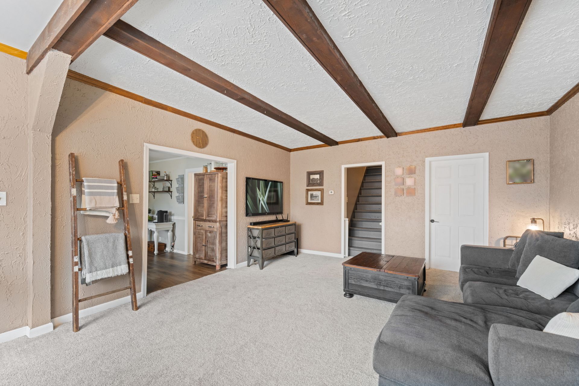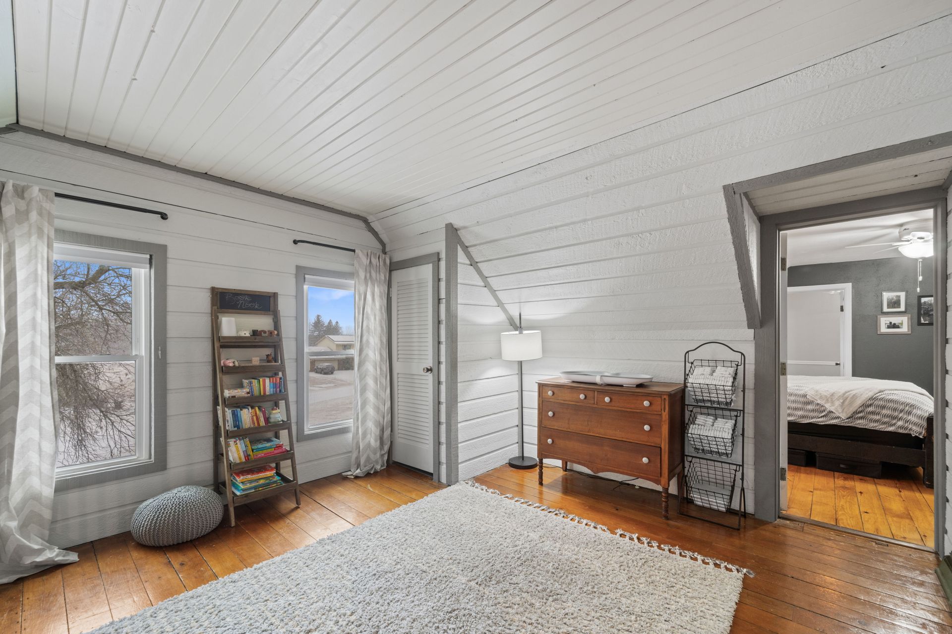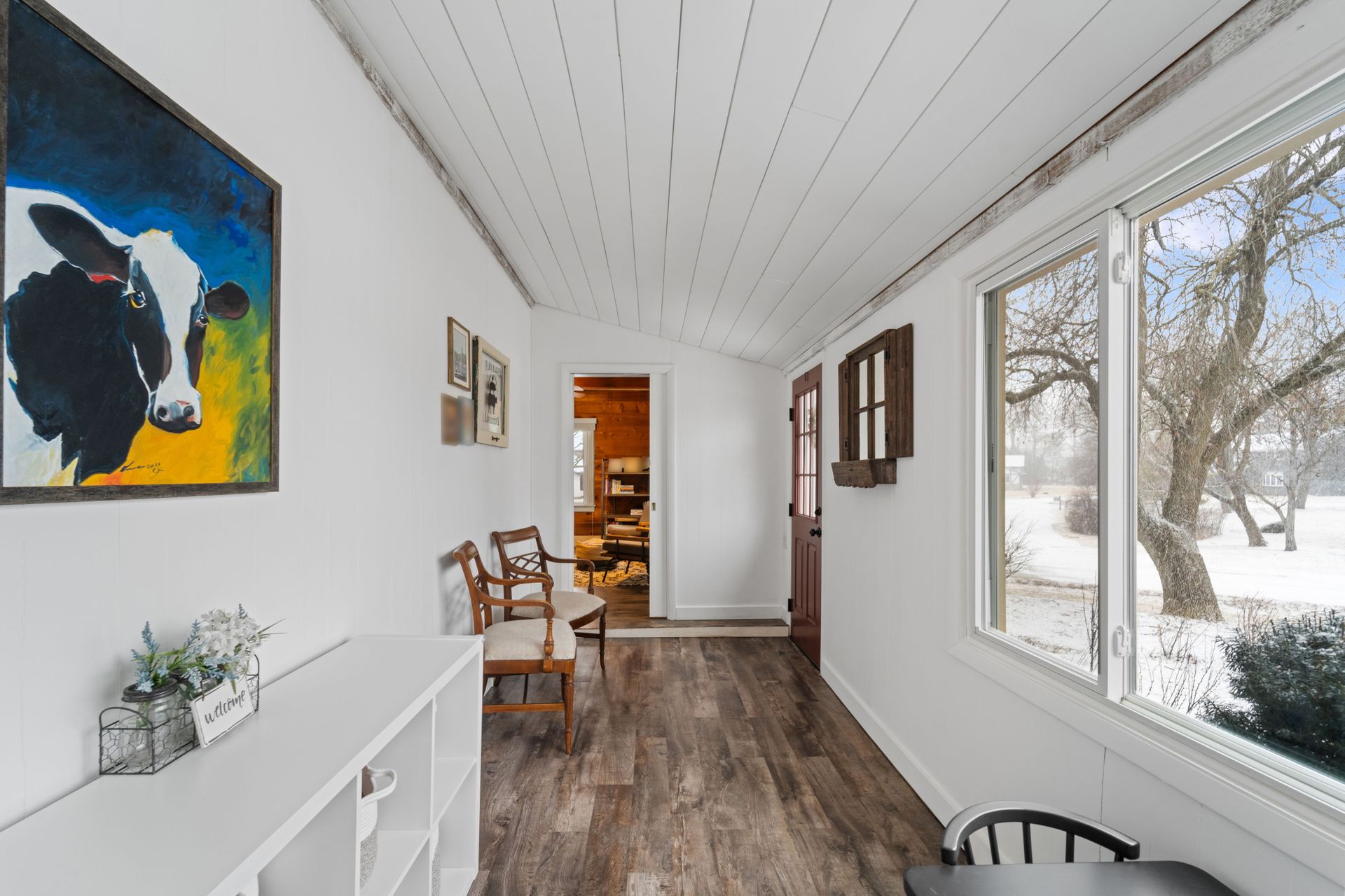 Charm and Character abounds in this updated, spacious, meticulously maintained 4 bedrooms, 2 full baths gorgeous farmhouse! Located in the sought after Elmbrook School District and desirable Subdivision, set on an expansive lot, this home offers ample space for outdoor activities. Old world charm meets modern comforts! Step right into the welcoming front porch offering a custom reading nook, new front door, large picture window, updated flooring and shiplap ceiling! The main floor bedroom is currently being used as an office/family room. Enjoy the convenience of a spacious main floor full bath and laundry room with a new washer and dryer. The gorgeous white kitchen offers stainless steel appliances, quartz counters, wide plank flooring and more. Enjoy the stunning beams in the great room with newer carpeting which opens to the dining room with a big bay window and built-in cabinet. The primary suite includes dual closets and an updated full ensuite bath. Convenient lower level walkout and patio with a bar. Great Location. Move right in and enjoy!