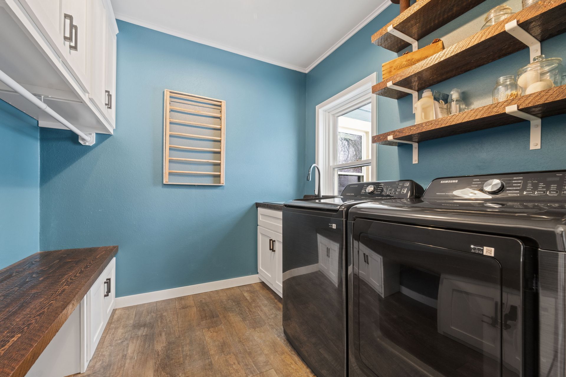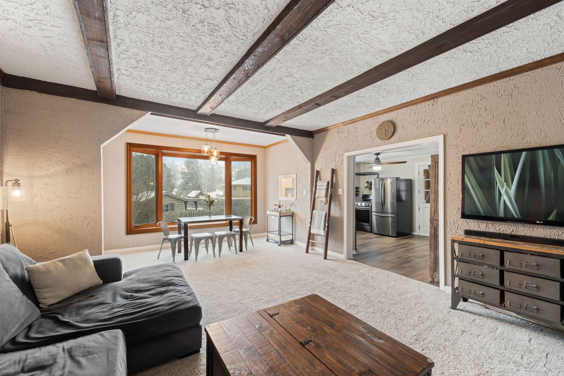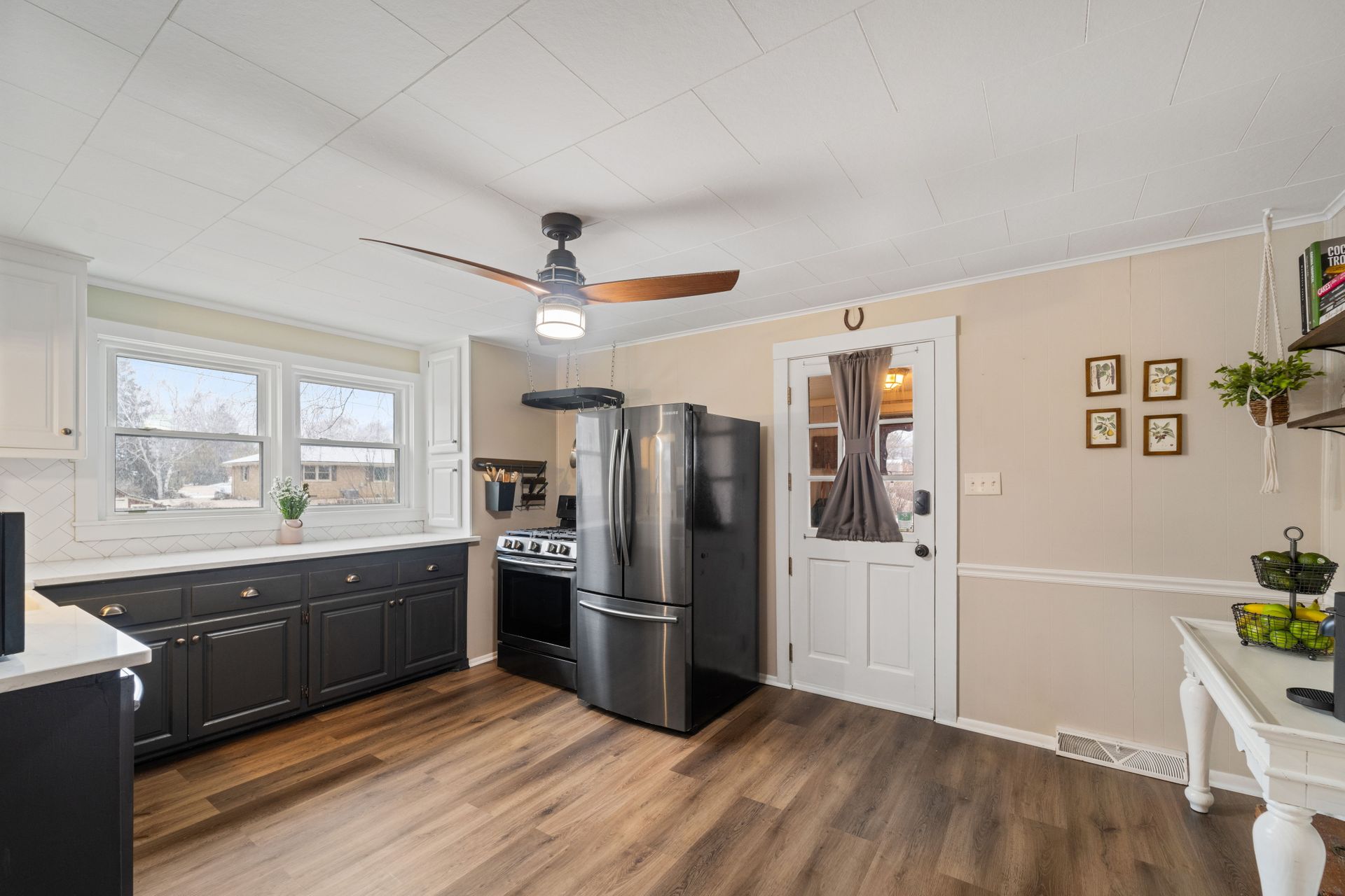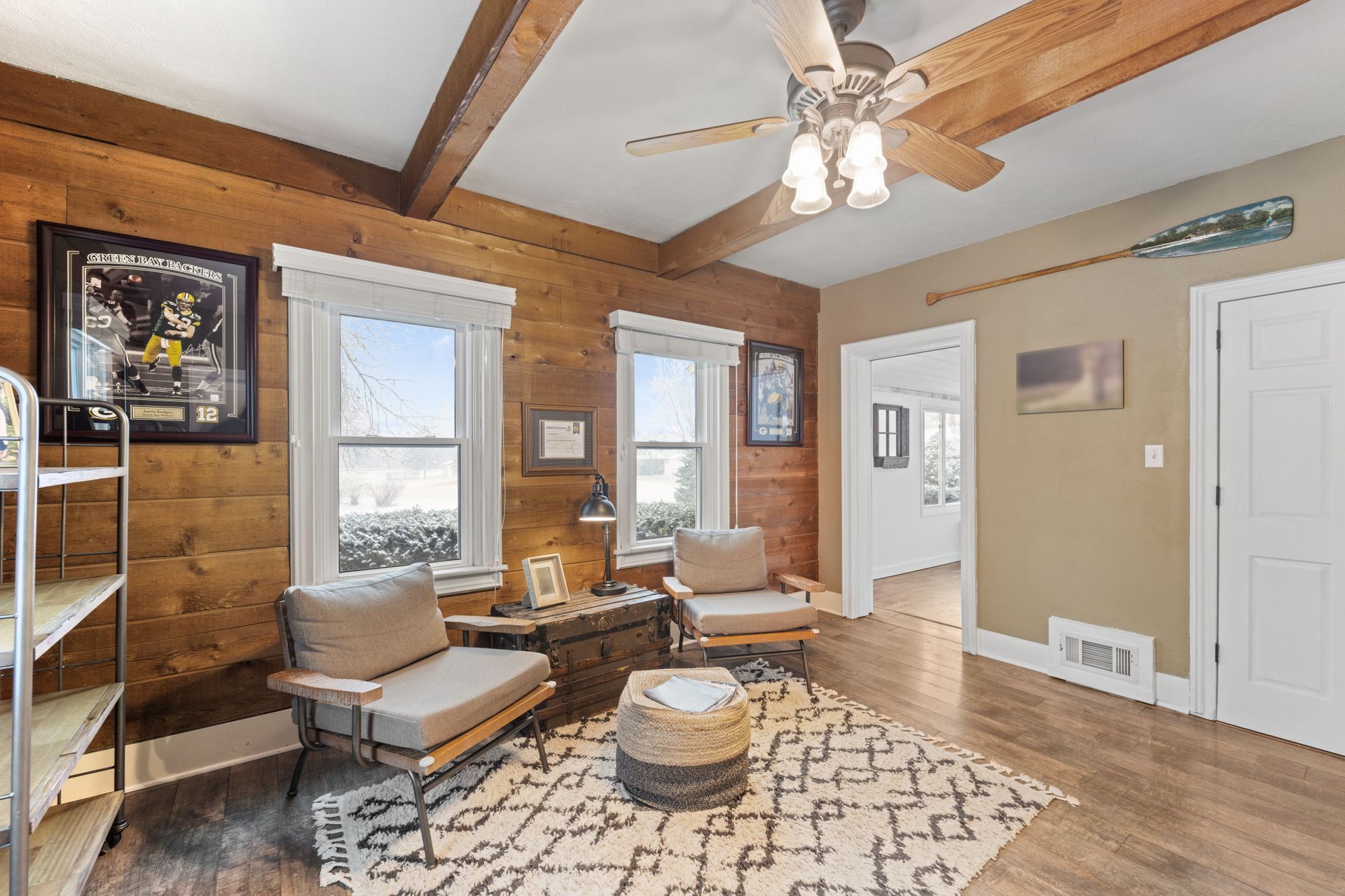 Charm and Character abounds in this updated, spacious, meticulously maintained 4 bedrooms, 2 full baths gorgeous farmhouse! Located in the sought after Elmbrook School District and desirable Subdivision, set on an expansive lot, this home offers ample space for outdoor activities. Old world charm meets modern comforts! Step right into the welcoming front porch offering a custom reading nook, new front door, large picture window, updated flooring and shiplap ceiling! The main floor bedroom is currently being used as an office/family room. Enjoy the convenience of a spacious main floor full bath and laundry room with a new washer and dryer. The gorgeous white kitchen offers stainless steel appliances, quartz counters, wide plank flooring and more. Enjoy the stunning beams in the great room with newer carpeting which opens to the dining room with a big bay window and built-in cabinet. The primary suite includes dual closets and an updated full ensuite bath. Convenient lower level walkout and patio with a bar. Great Location. Move right in and enjoy!