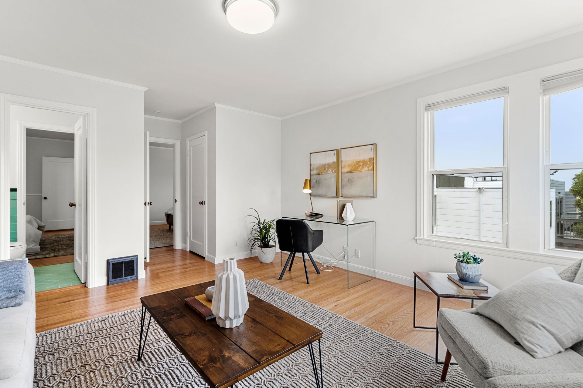Welcome to this beautiful and spacious home located in the highly sought-after Central Sunset neighborhood. The main level includes a living room, dining room, kitchen, three bedrooms, and one and one-half bathrooms. One of the highlights of this home is the versatile third bedroom, which features a connecting half bath. This room can be easily transformed into a cozy family room or a large bedroom with a dedicated workspace, making it ideal for those who work from home. Also included are many desirable features throughout the home, such as beautiful hardwood floors, custom shutters, original moldings, and dual pane windows.