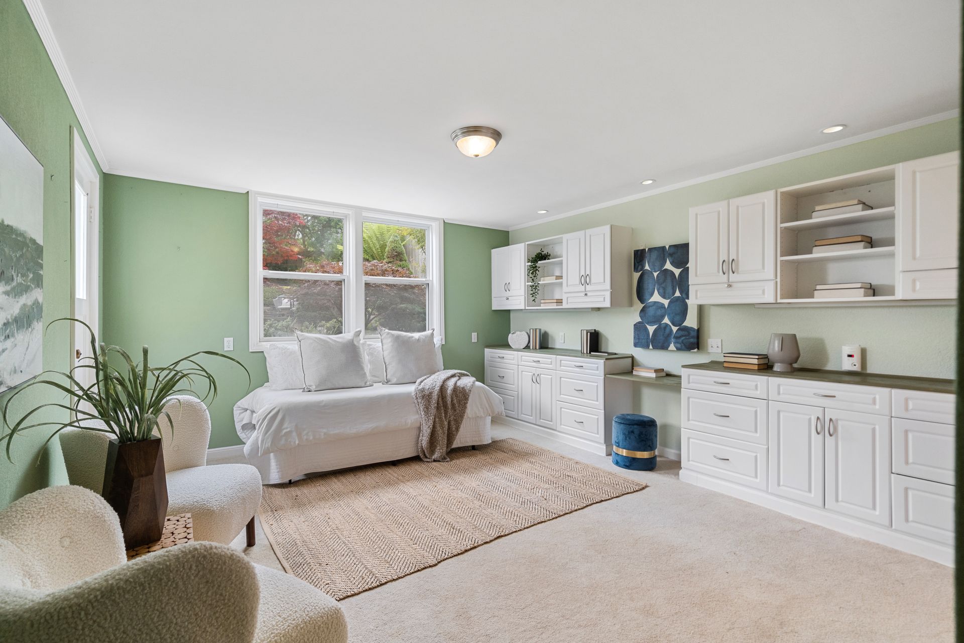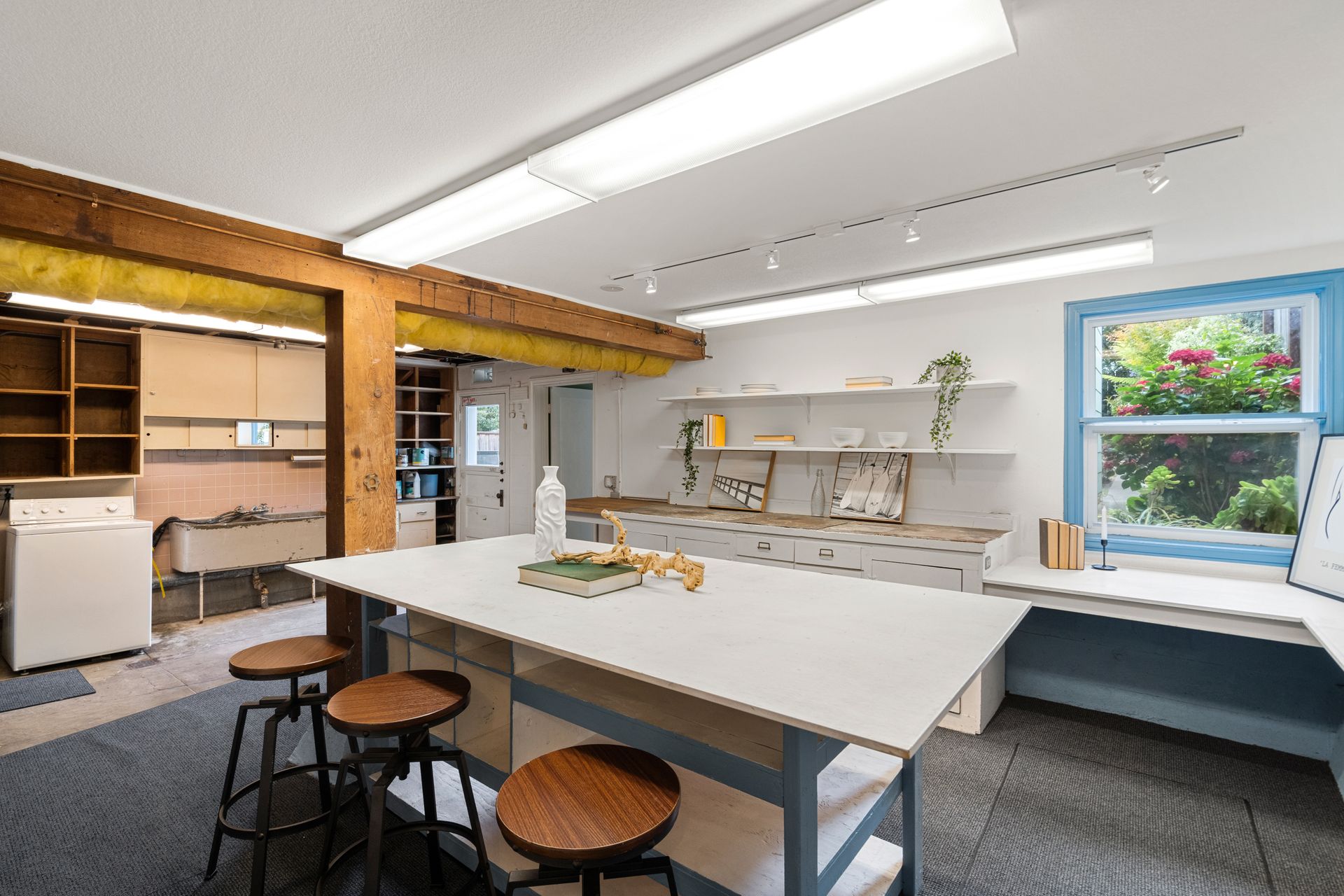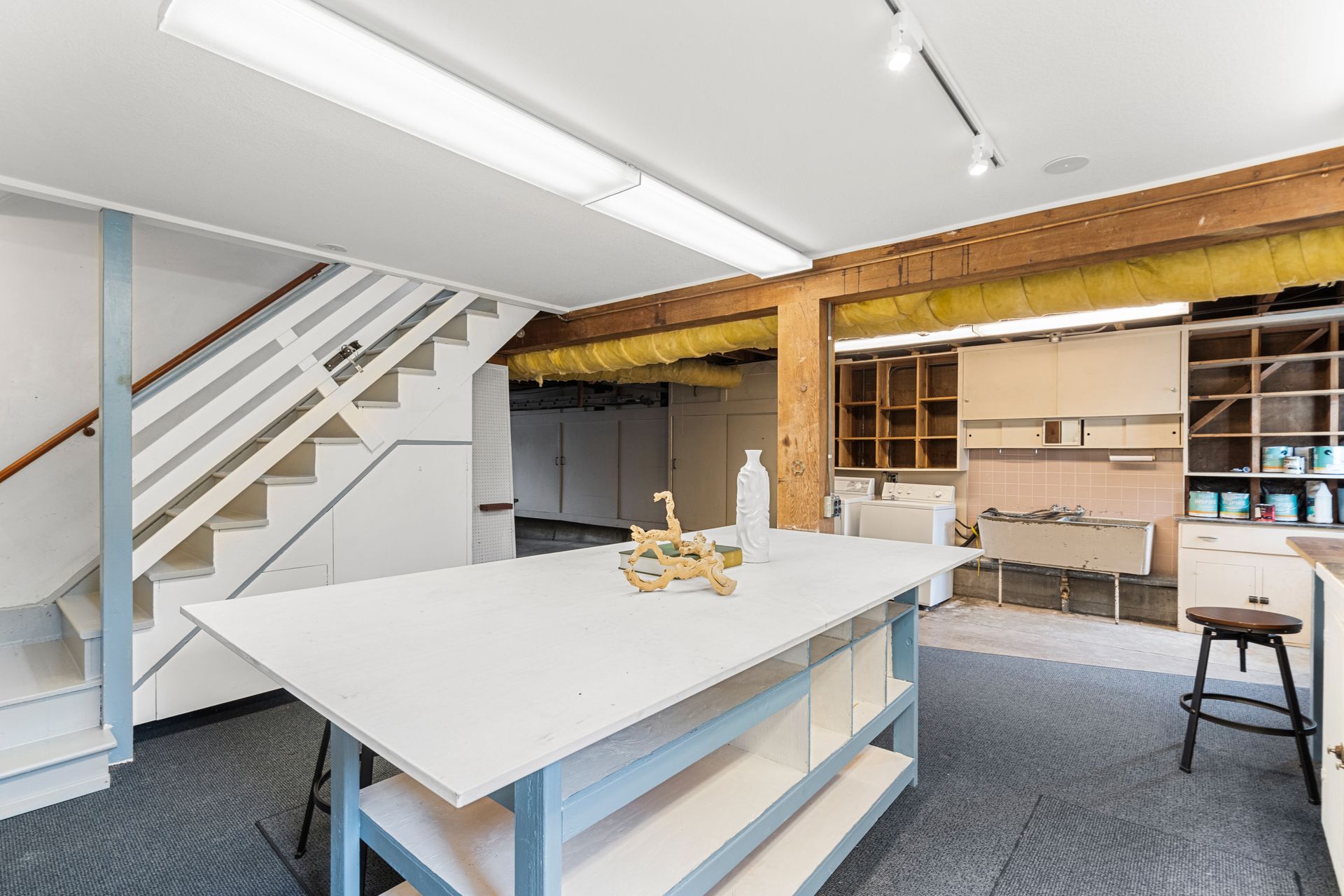 Downstairs includes a social room with a full bathroom, offering endless opportunities. The space can be utilized as an additional large bedroom for guests, extended family, or an entertainment room. Additionally, there is an artist’s workspace that makes a great workshop, craft area or hobby area, along with a number of other options.