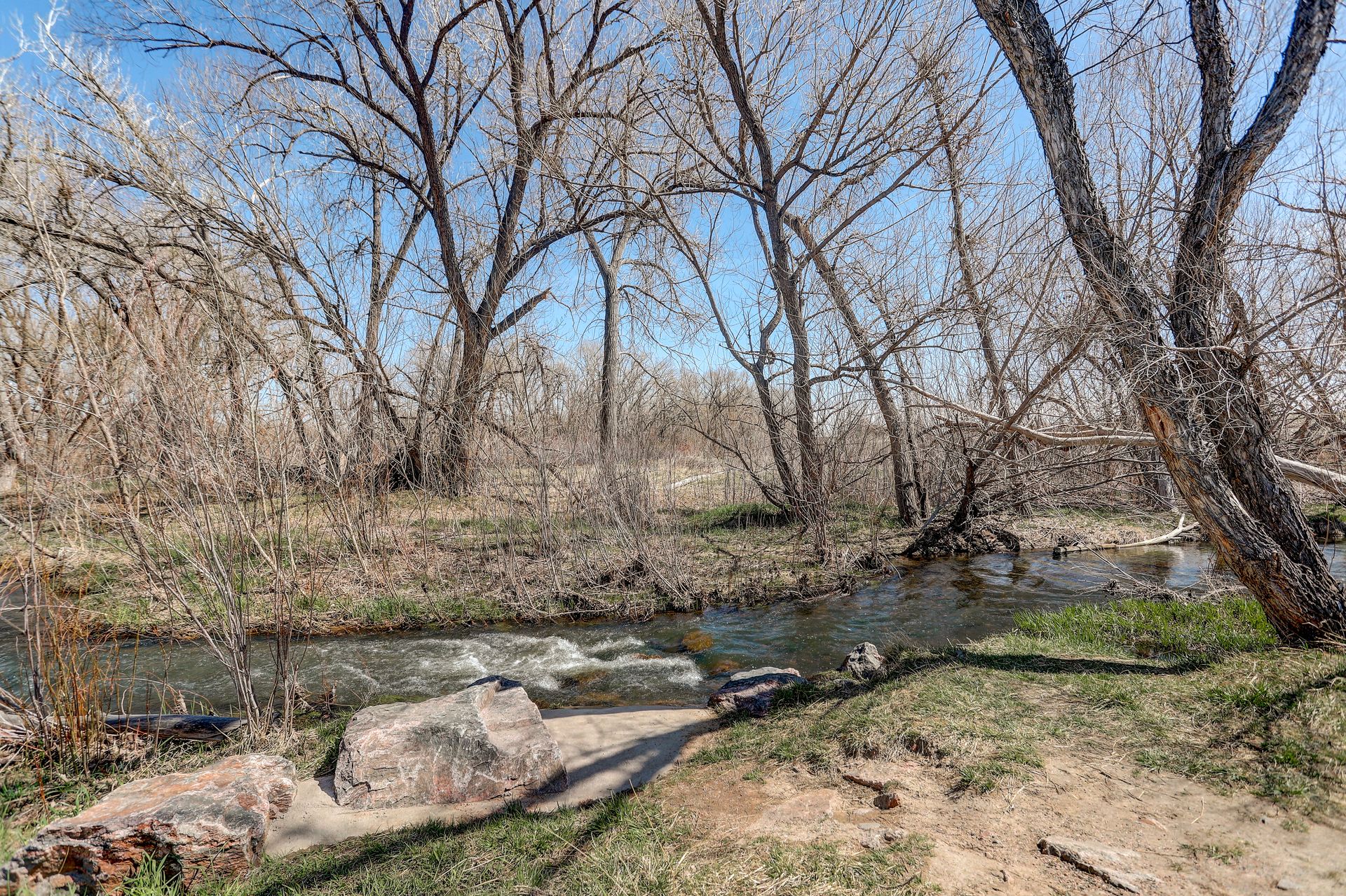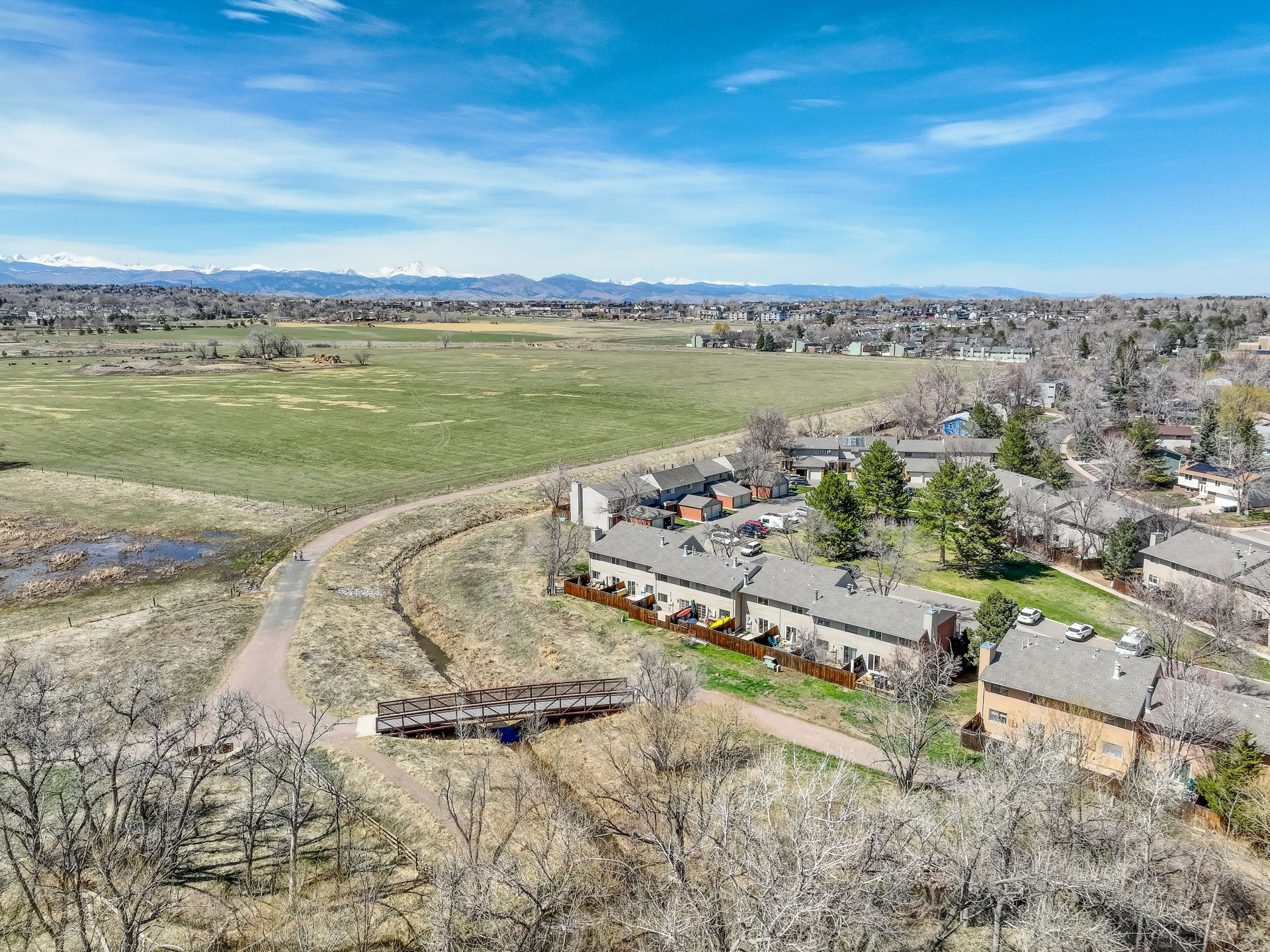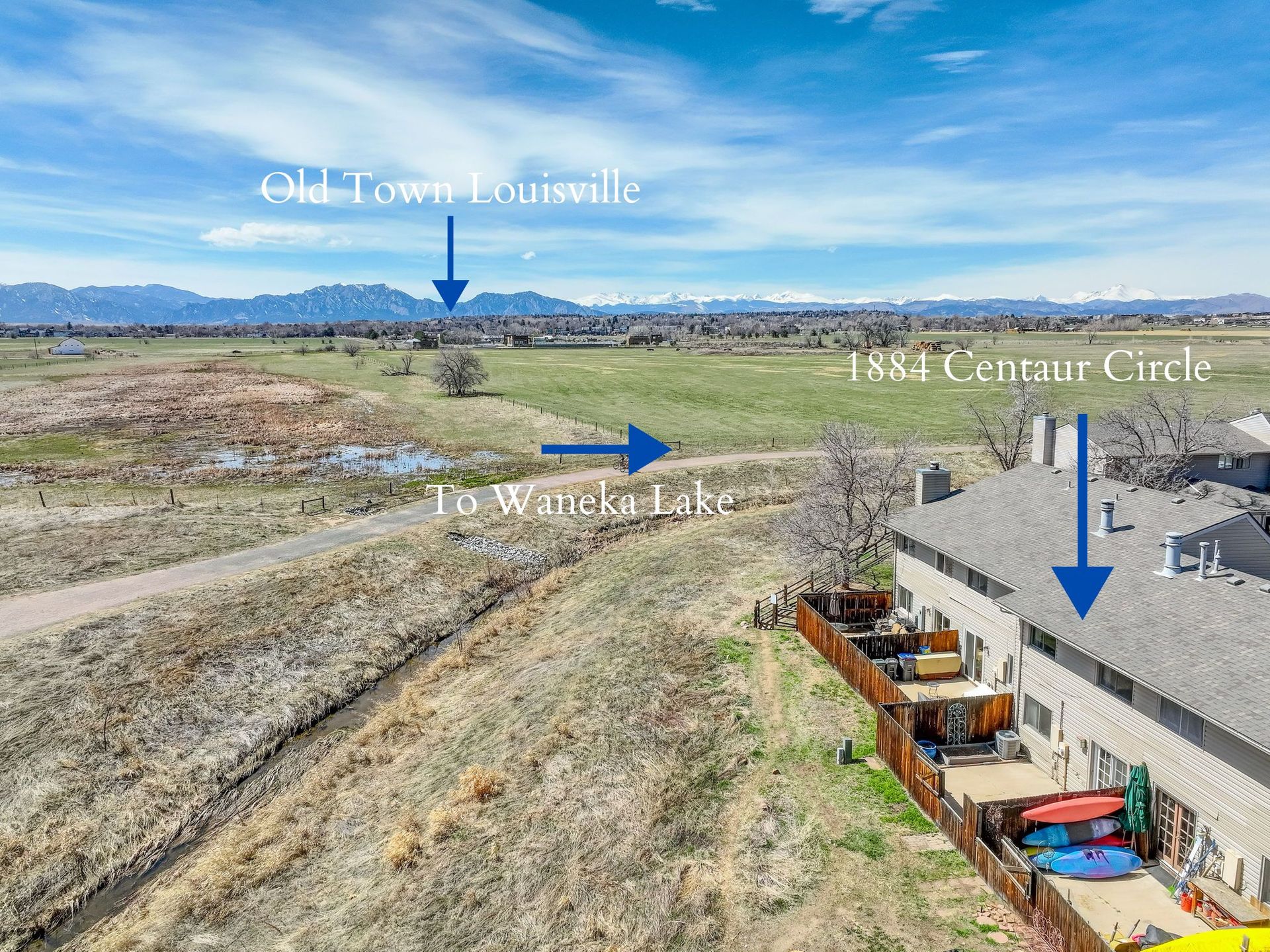 A nature lover's dream! This 3 bedroom, 2 bathroom townhome has a fantastic location backing to open space and the Coal Creek Trail. Enjoy wildlife, peaceful creek sounds and miles of trails right out your back door. Indoors, the kitchen features alder wood cabinets and a complete stainless steel appliance package. There are solid hardwood floors throughout the main level and the living room has a wood burning fireplace. The main level also features a powder room, full size washer and dryer, plus a convenient entry closet, storage shelves and under stair storage. Upstairs there are 3 bedrooms, including the spacious primary bedroom with 2 closets and nook with shelving. Views abound from the 2 additional upper level bedrooms. Enjoy the private fenced patio space with easy trail access to Old Town Louisville and more of Lafayette. Stay cool in the coming hot summer days with central AC. 1-car attached garage and 1-year home warranty included.