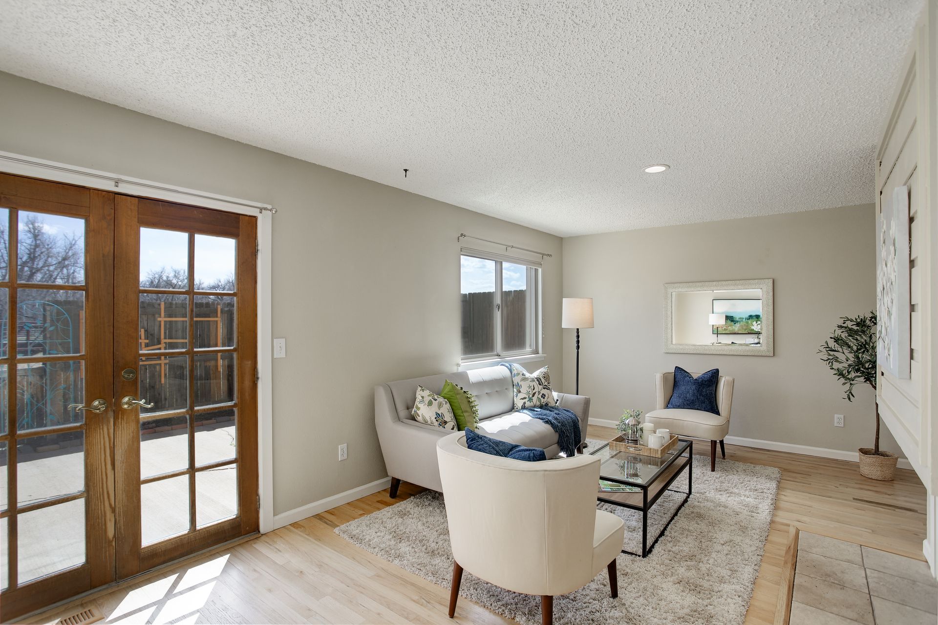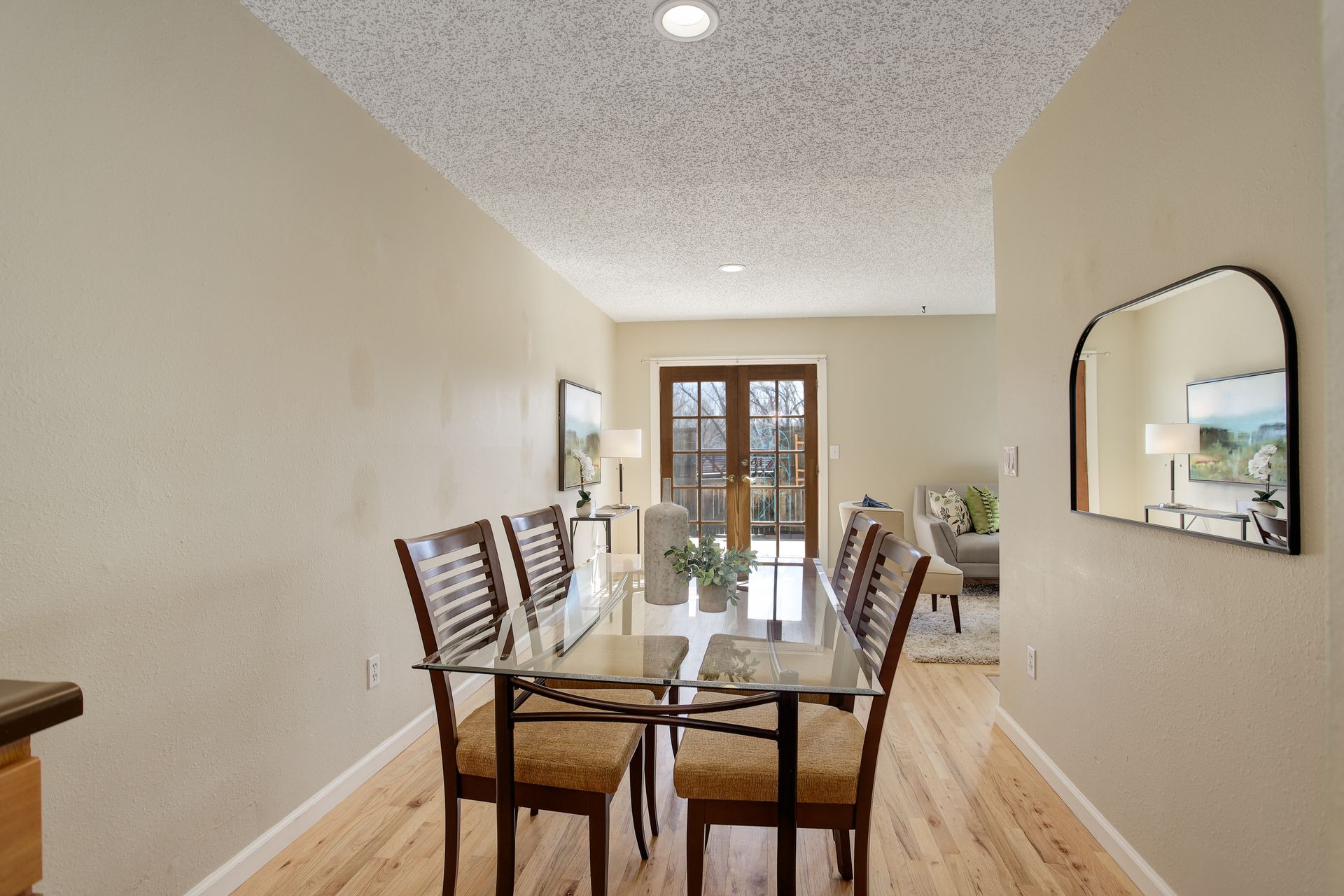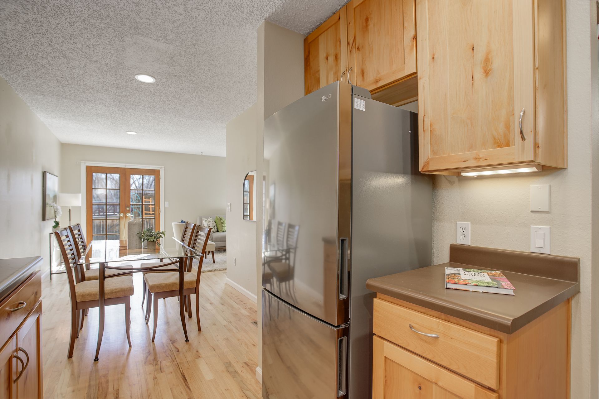 A nature lover's dream! This 3 bedroom, 2 bathroom townhome has a fantastic location backing to open space and the Coal Creek Trail. Enjoy wildlife, peaceful creek sounds and miles of trails right out your back door. Indoors, the kitchen features alder wood cabinets and a complete stainless steel appliance package. There are solid hardwood floors throughout the main level and the living room has a wood burning fireplace. The main level also features a powder room, full size washer and dryer, plus a convenient entry closet, storage shelves and under stair storage. Upstairs there are 3 bedrooms, including the spacious primary bedroom with 2 closets and nook with shelving. Views abound from the 2 additional upper level bedrooms. Enjoy the private fenced patio space with easy trail access to Old Town Louisville and more of Lafayette. Stay cool in the coming hot summer days with central AC. 1-car attached garage and 1-year home warranty included.