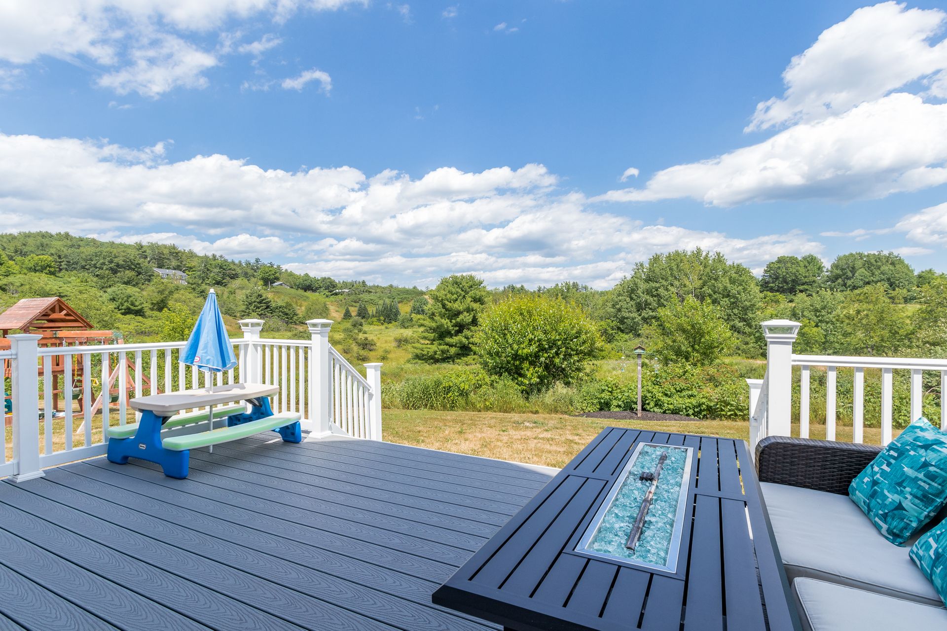Down the hall, you will find the side entryway mudroom with a large closet, full walk-in shower bathroom, and 2nd primary bedroom with lots of windows bringing in natural light and phenomenal views. Proceed through the glass door and unwind after a long day to the outside lit deck, great for entertaining while taking in those stunning scenic views.
