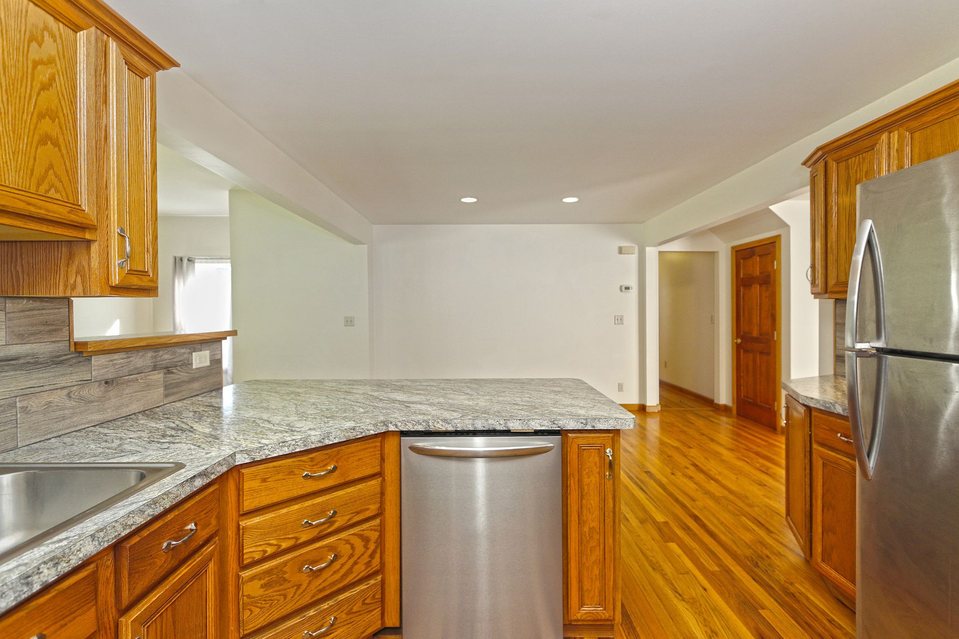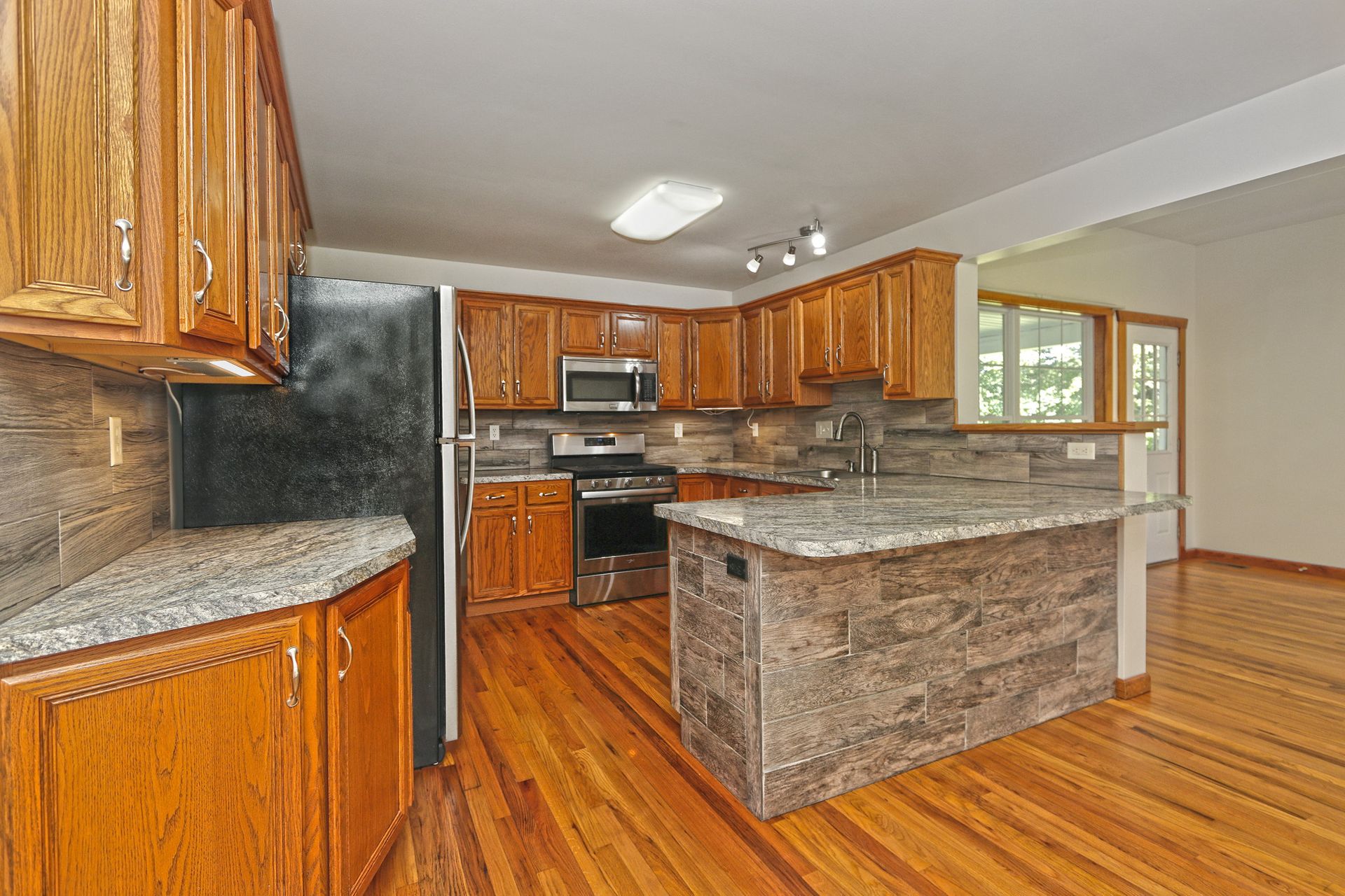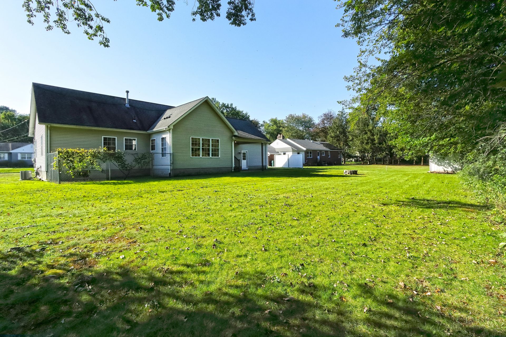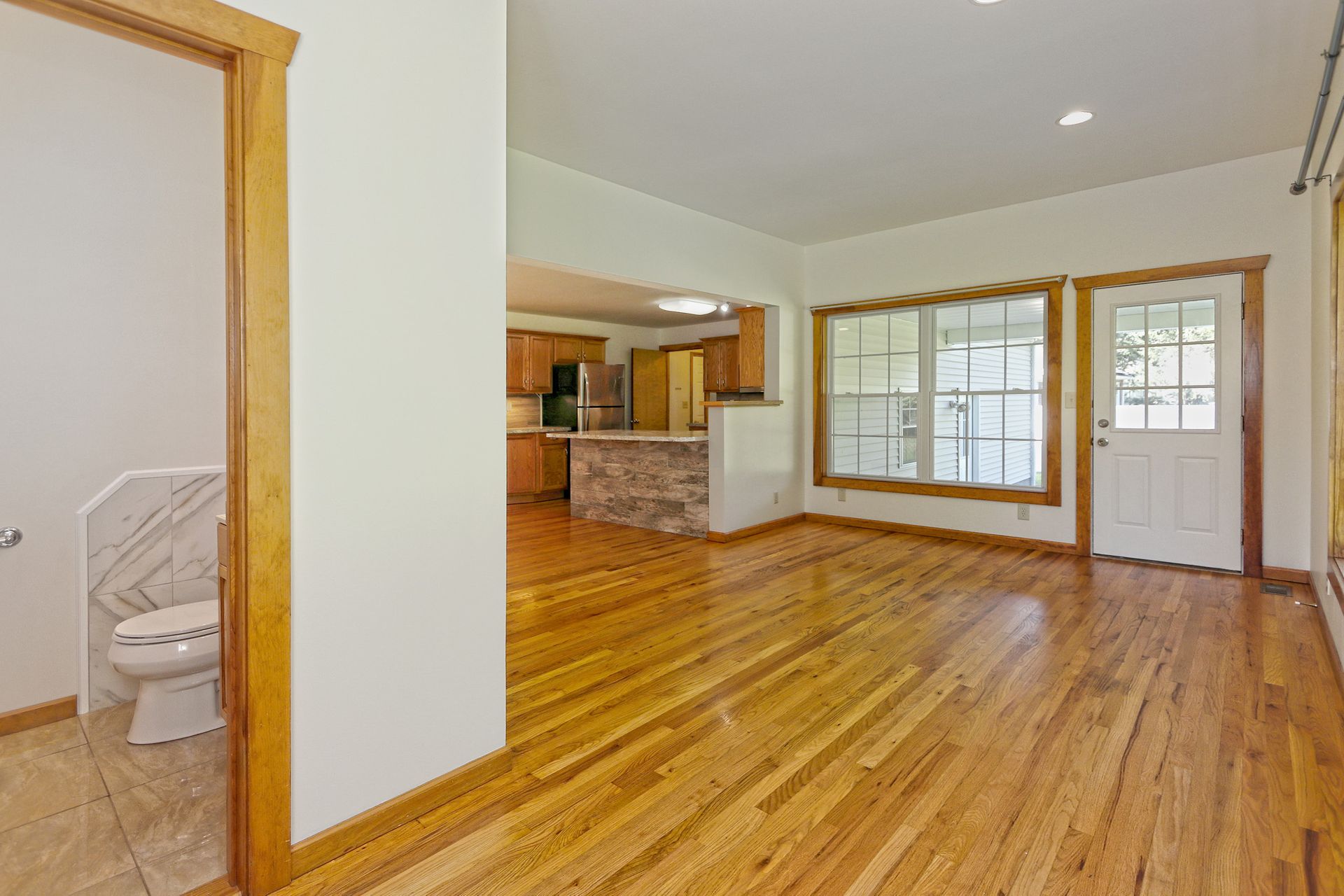 Simply beautiful cape style home featuring 3 bedrooms, 2 full baths as well as 2 1/2 baths beautifully updated bathrooms. Gleaming hardwood floors throughout the main living area and big city sized windows welcome in tons of natural light. As you come into the living room you are welcomed by a picture-perfect raised hearth brick fireplace and a staircase to the hidden gem of this home, an expansive 2nd floor screaming to be finished into additional living space. (Rough plumbing for an extra bathroom). The beautifully remodeled kitchen features oak cabinets, ceramic tile backsplash and a spacious breakfast bar. Open from the kitchen is the large dining/family room area which overlooks your private backyard. Off the kitchen is access to a convenient laundry area and direct access from the large two car garage. Stairway from garage provides you access to the large unfinished basement with a half bath. To complete the main living floor, a spacious primary bedroom with its own private updated bathroom featuring porcelain tile shower and floors. Two nicely sized bedrooms with access to a full bathroom featuring a fiberglass tub and shower with porcelain tile floors. Other notable features of this must-see home include a new 2023 Furnace, new 2023 water heater, a newer central air system, newer 6 panel wood doors. Don't wait to see this beautiful and meticulously maintained home in a quiet picturesque neighborhood.