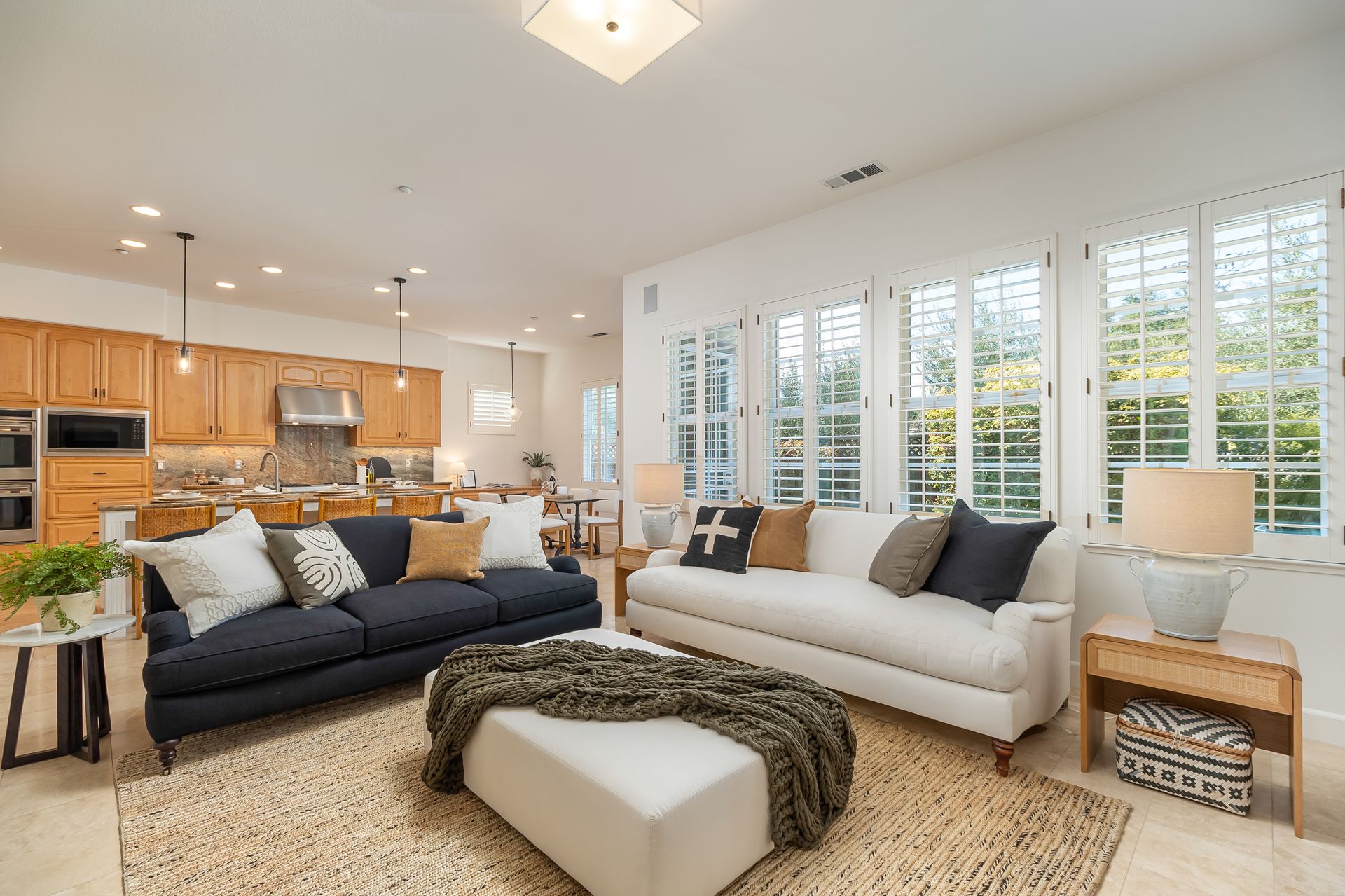 With the Primary Suite in a separate wing, it will feel like private retreat, perfect to unwind in a spa-like get-a-way! Laundry Room, Powder Room, Office and finished Garage add to this easy breezy abode.