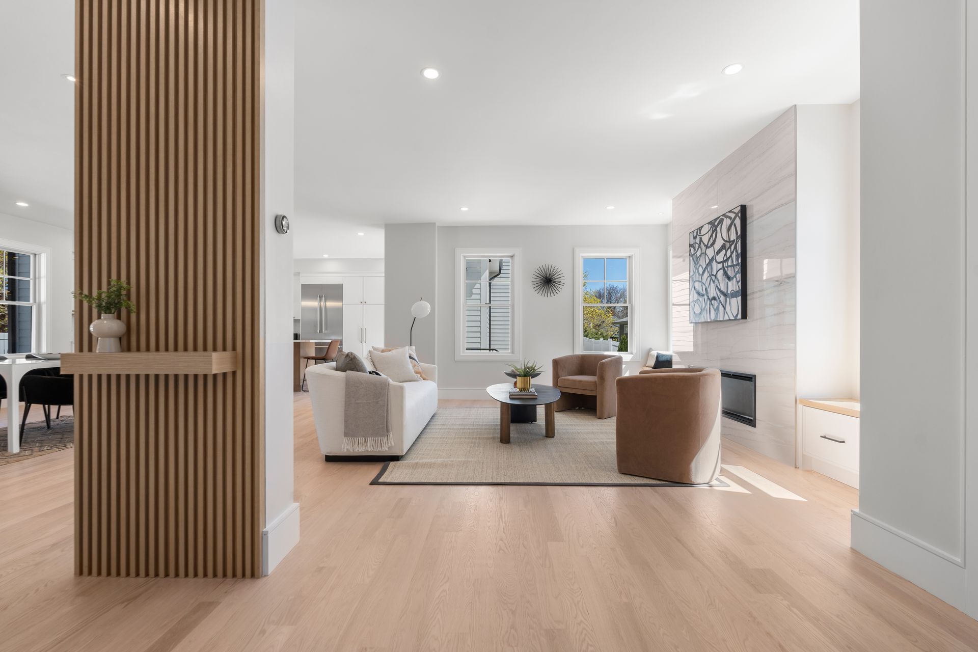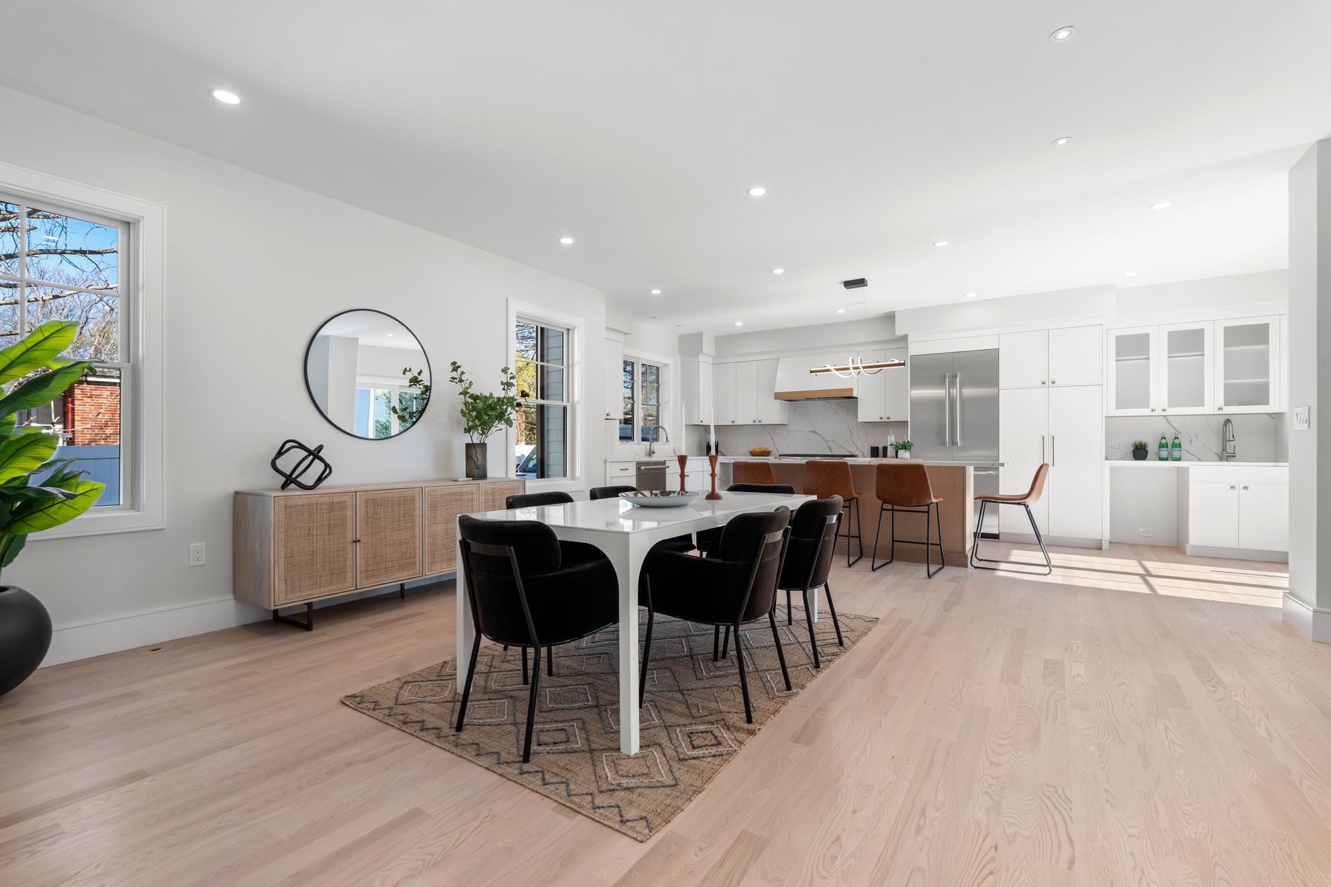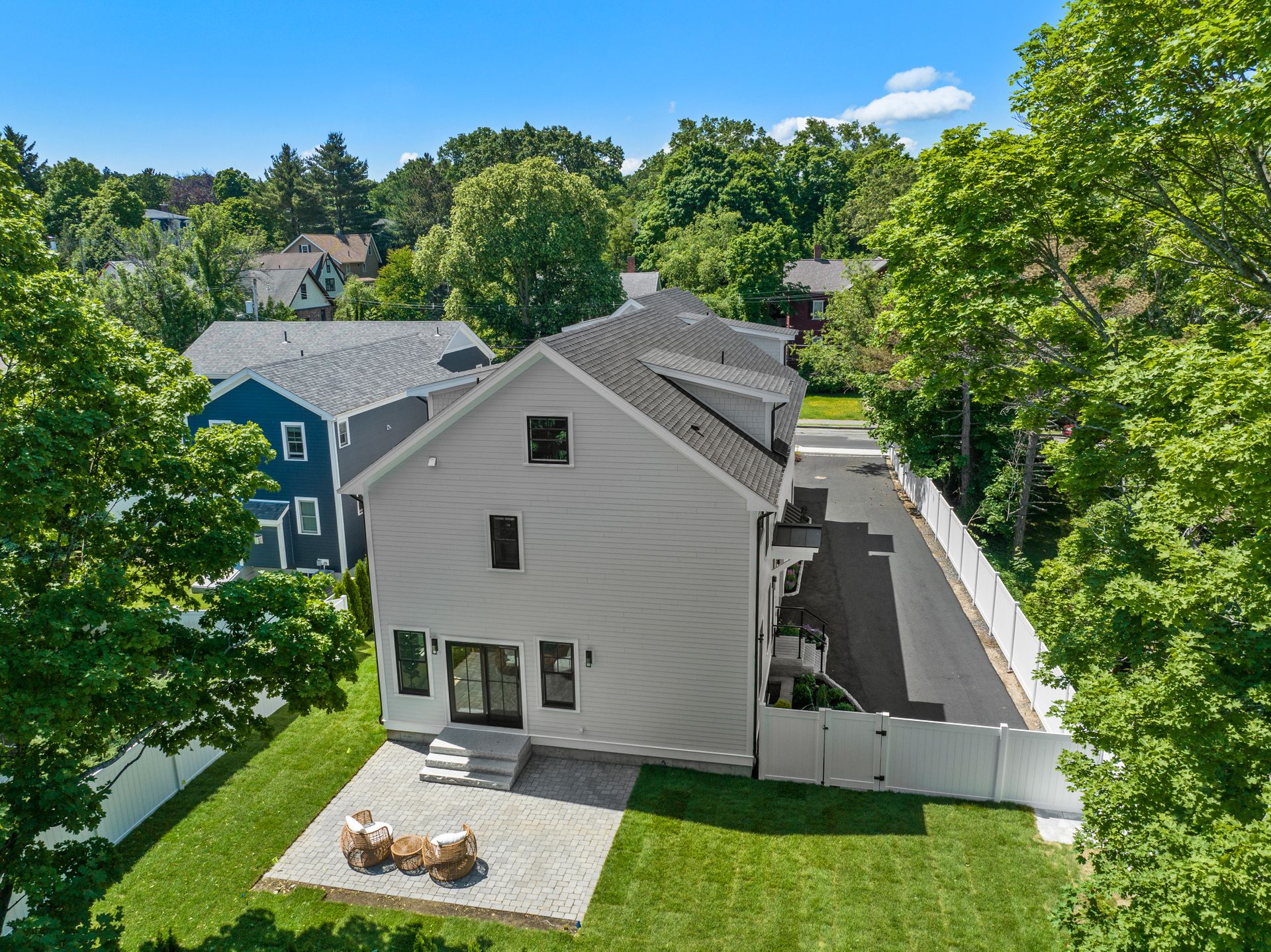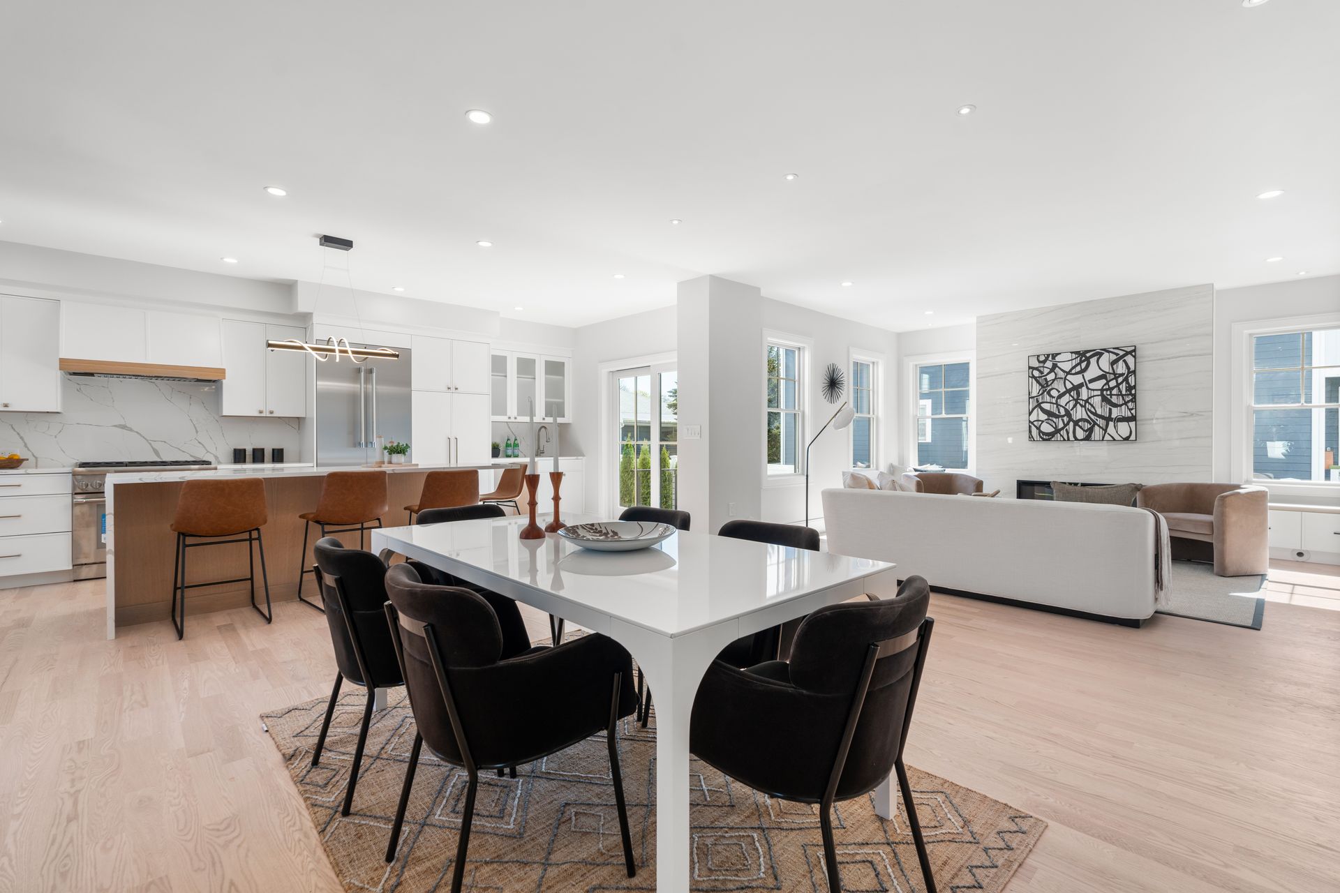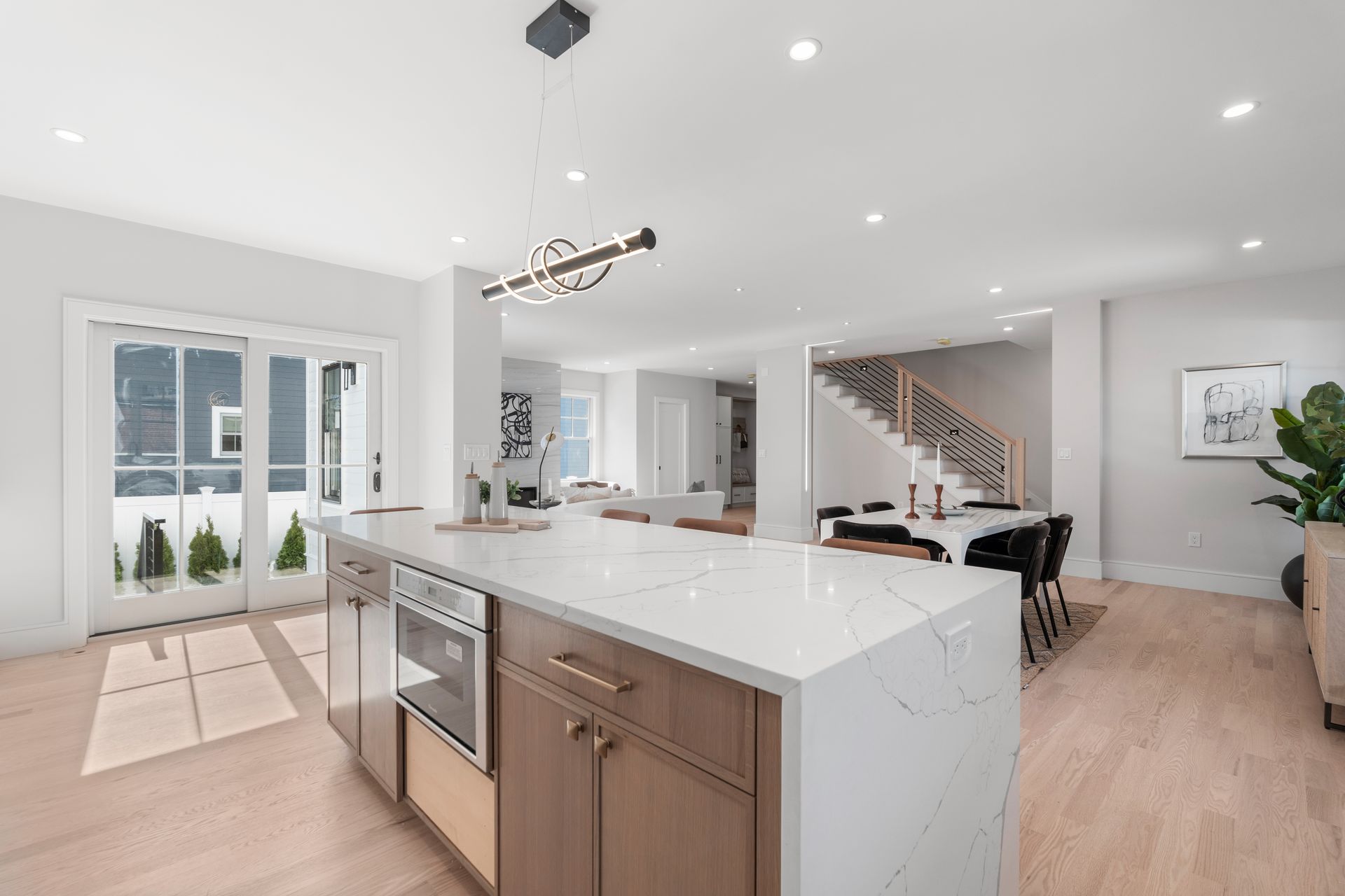 Introducing an extraordinary offering in the realm of townhouse living, where modern sleekness intertwines effortlessly with traditional charm. This exceptional new construction is a testament to superior craftsmanship and deliberate creation, promising a lifestyle of unparalleled luxury and comfort. Upon entry, your eyes will be drawn to the captivating porcelain accent wall that beautifully mimics the luxurious elegance of marble adorned with a fireplace, serving as the focal point of the home's entrance. The dining area seamlessly transitions into the gourmet kitchen, where a striking waterfall island awaits, perfect for culinary gatherings and delights. Through the sliding glass doors adjacent to the kitchen, discover a patio and private yard, inviting you to extend your living space outdoors for moments of relaxation and entertainment. Second floor includes a serene primary suite complete with a walk-in closet and full bath, two en-suite bedrooms and a dedicated laundry room. On the third floor, you'll find a generous staircase leading to two additional rooms, ideal for a home office or creating extra hangout space.