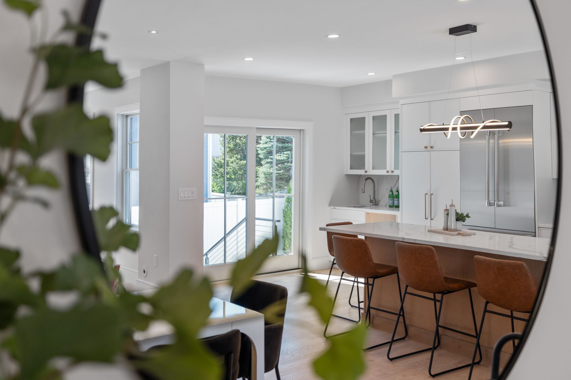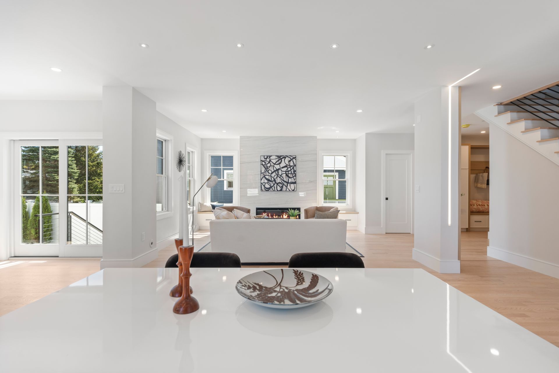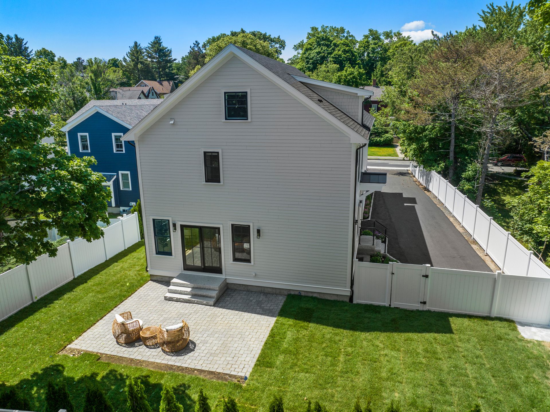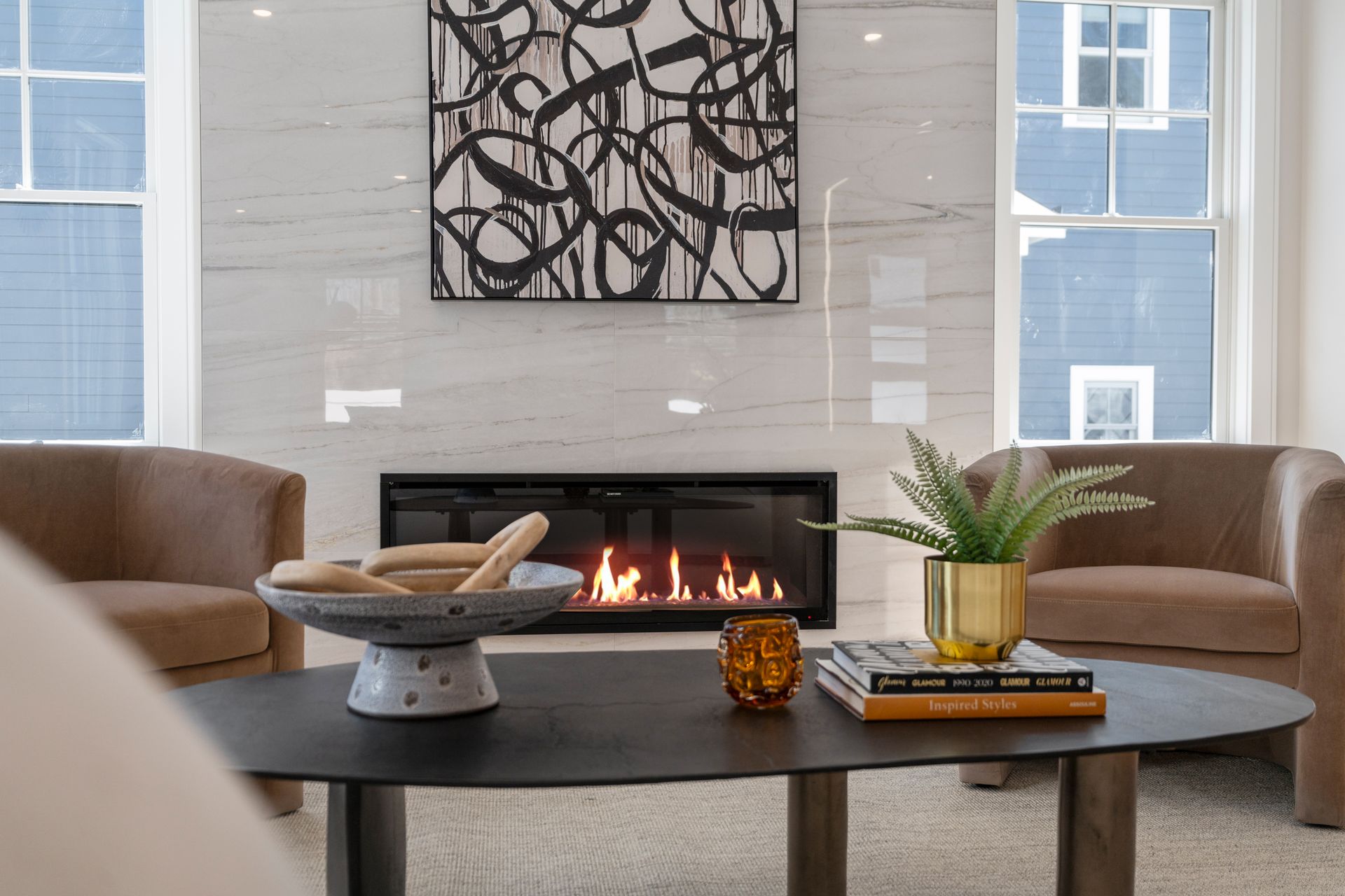 Introducing an extraordinary offering in the realm of townhouse living, where modern sleekness intertwines effortlessly with traditional charm. This exceptional new construction is a testament to superior craftsmanship and deliberate creation, promising a lifestyle of unparalleled luxury and comfort. Upon entry, your eyes will be drawn to the captivating porcelain accent wall that beautifully mimics the luxurious elegance of marble adorned with a fireplace, serving as the focal point of the home's entrance. The dining area seamlessly transitions into the gourmet kitchen, where a striking waterfall island awaits, perfect for culinary gatherings and delights. Through the sliding glass doors adjacent to the kitchen, discover a patio and private yard, inviting you to extend your living space outdoors for moments of relaxation and entertainment. Second floor includes a serene primary suite complete with a walk-in closet and full bath, two en-suite bedrooms and a dedicated laundry room. On the third floor, you'll find a generous staircase leading to two additional rooms, ideal for a home office or creating extra hangout space.
