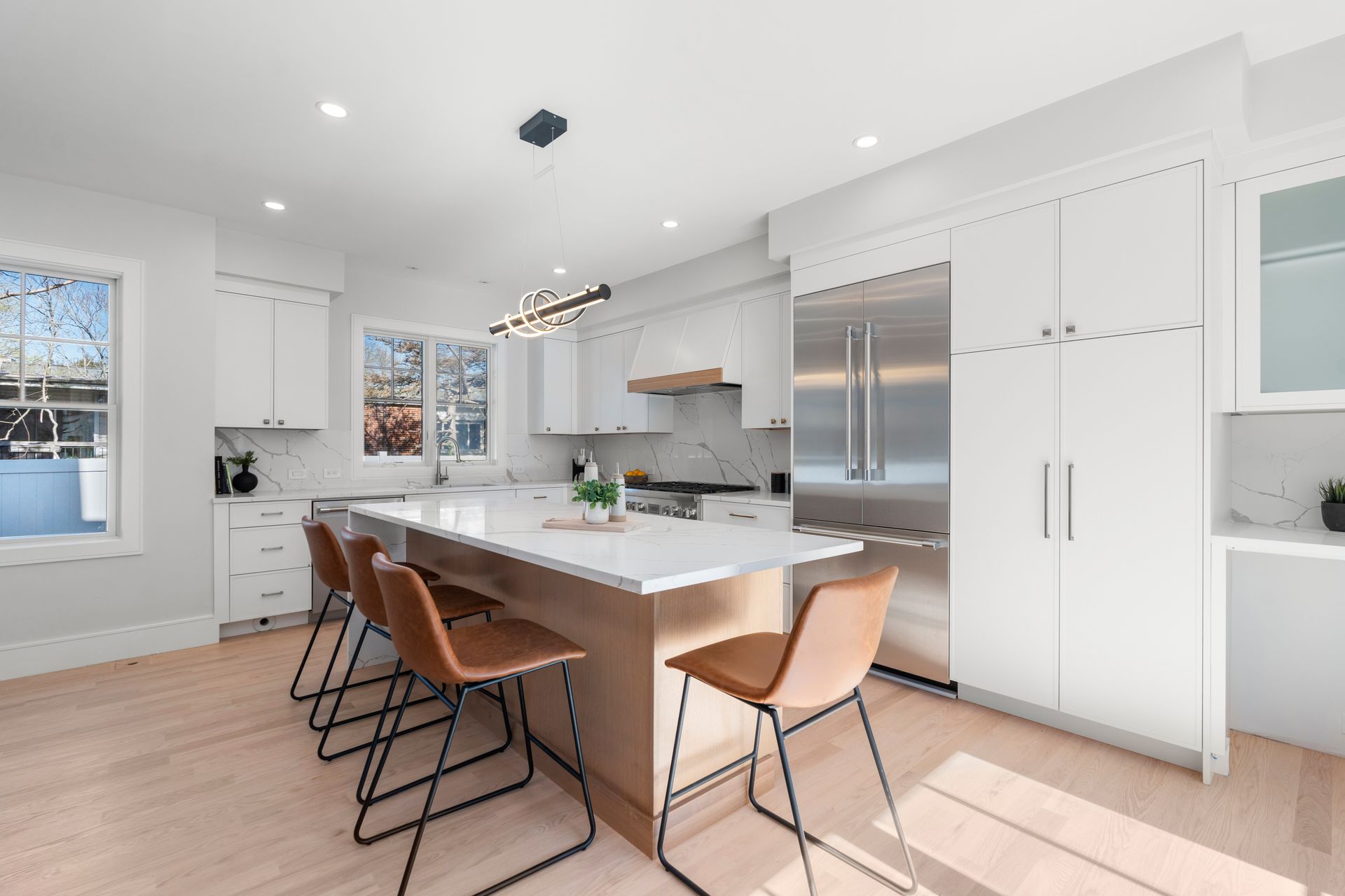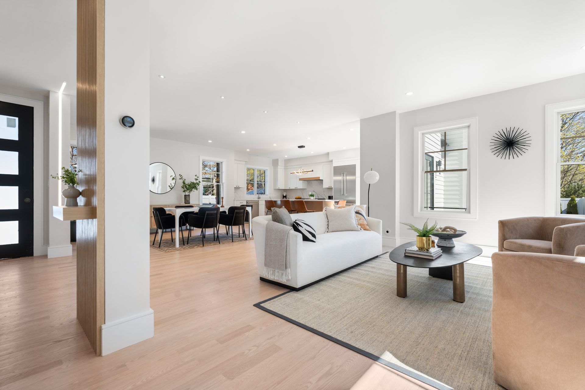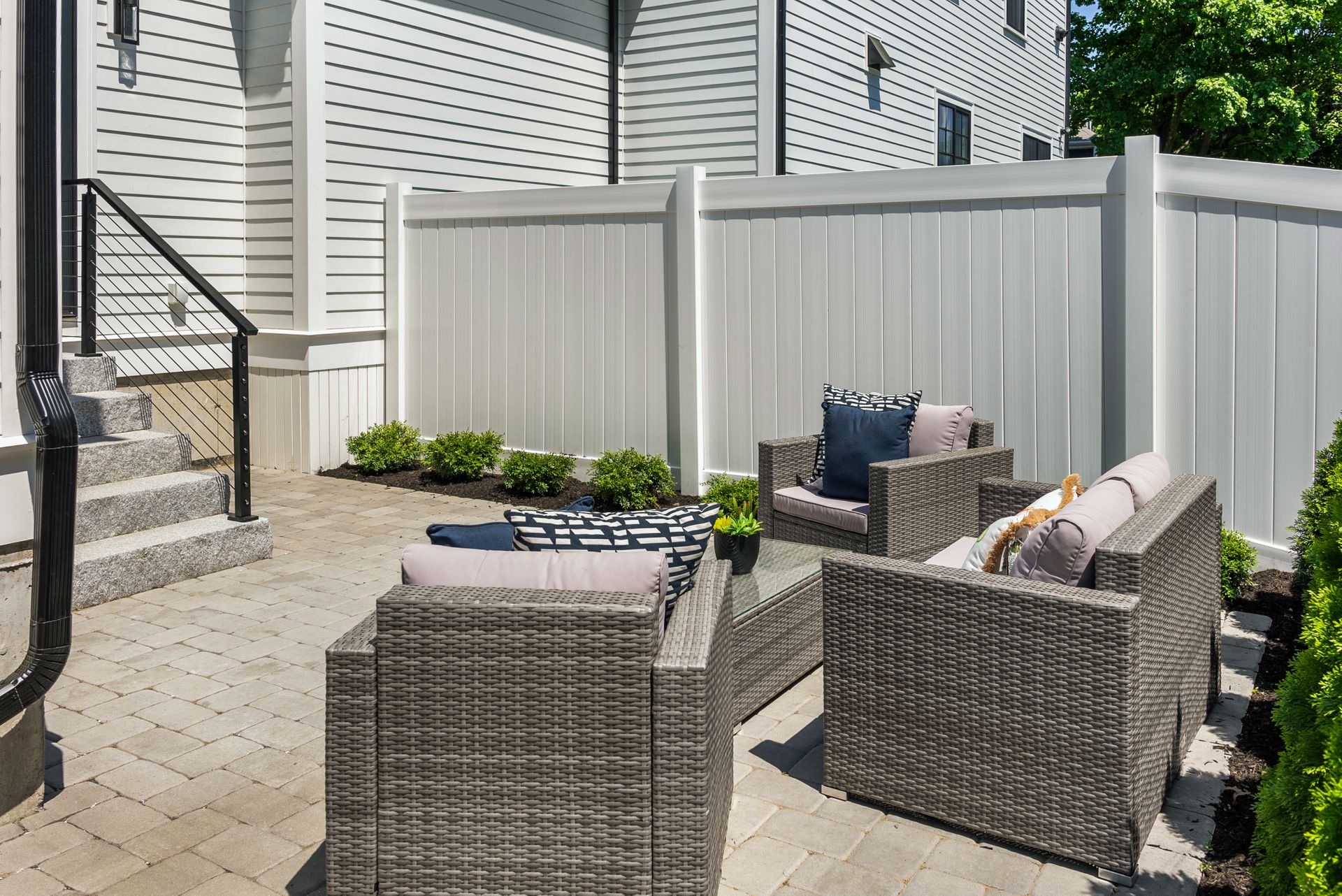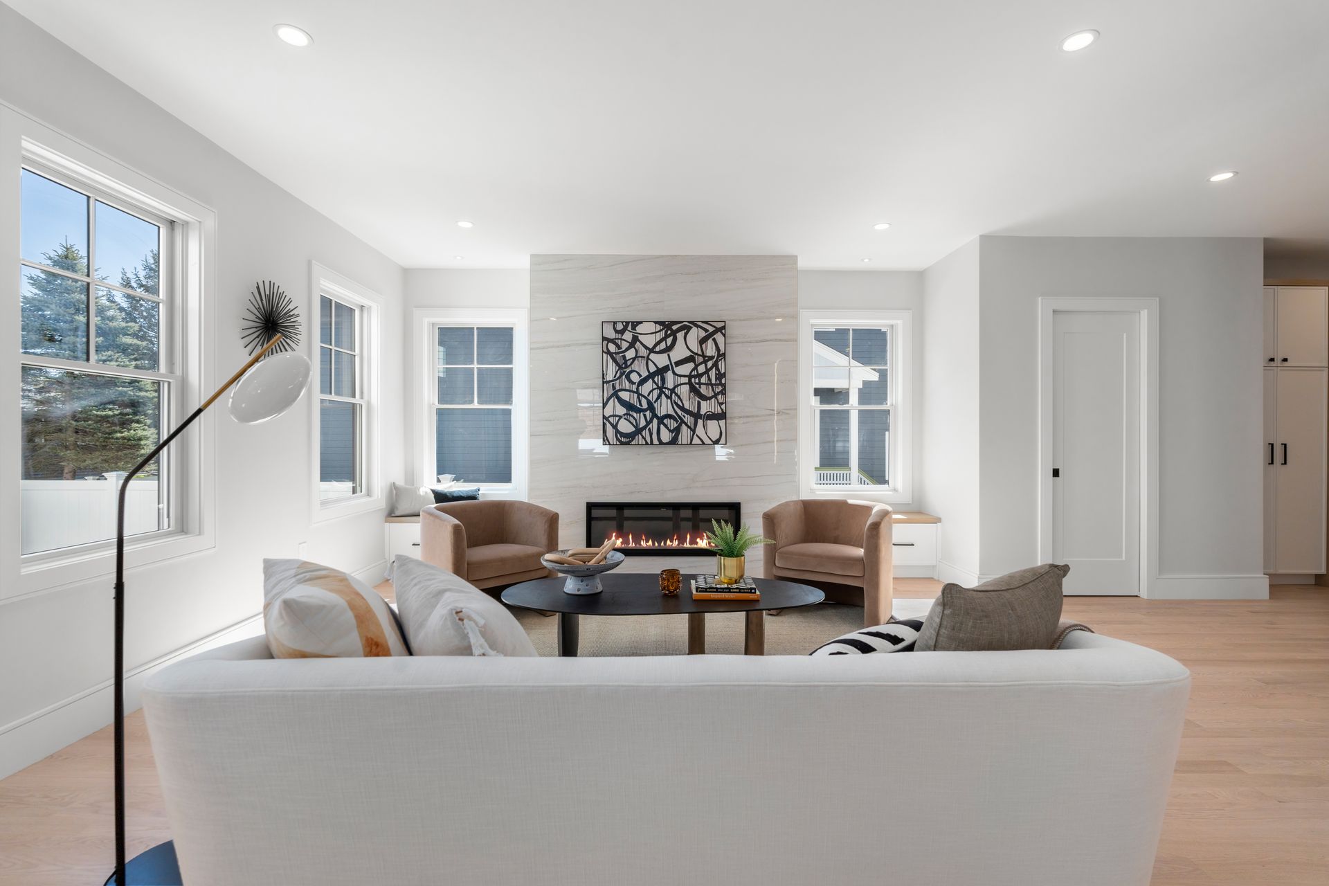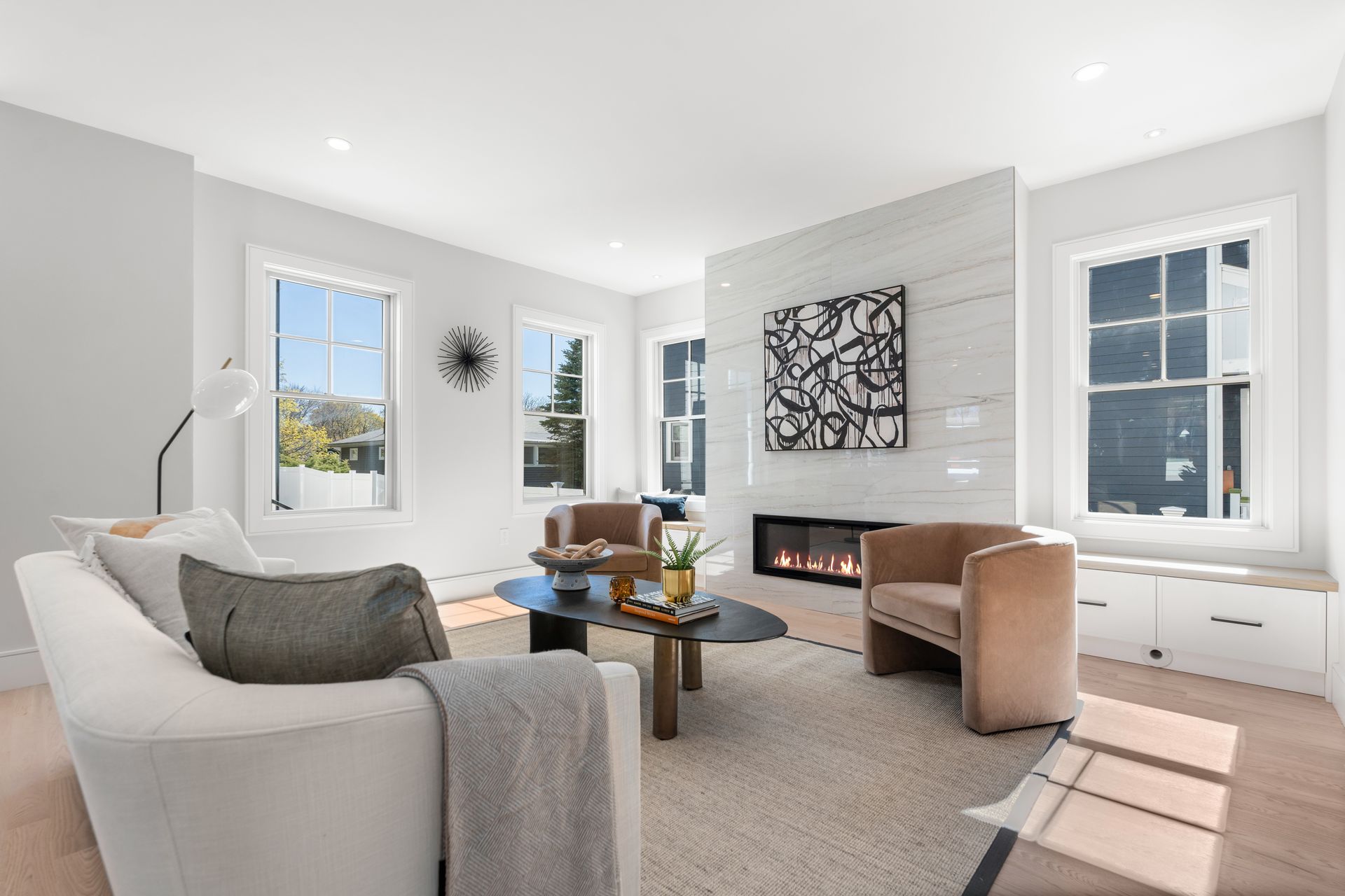 Introducing an extraordinary offering in the realm of townhouse living, where modern sleekness intertwines effortlessly with traditional charm. This exceptional new construction is a testament to superior craftsmanship and deliberate creation, promising a lifestyle of unparalleled luxury and comfort. Upon entry, your eyes will be drawn to the captivating porcelain accent wall that beautifully mimics the luxurious elegance of marble adorned with a fireplace, serving as the focal point of the home's entrance. The dining area seamlessly transitions into the gourmet kitchen, where a striking waterfall island awaits, perfect for culinary gatherings and delights. Through the sliding glass doors adjacent to the kitchen, discover a patio and private yard, inviting you to extend your living space outdoors for moments of relaxation and entertainment. Second floor includes a serene primary suite complete with a walk-in closet and full bath, two en-suite bedrooms and a dedicated laundry room. On the third floor, you'll find a generous staircase leading to two additional rooms, ideal for a home office or creating extra hangout space.