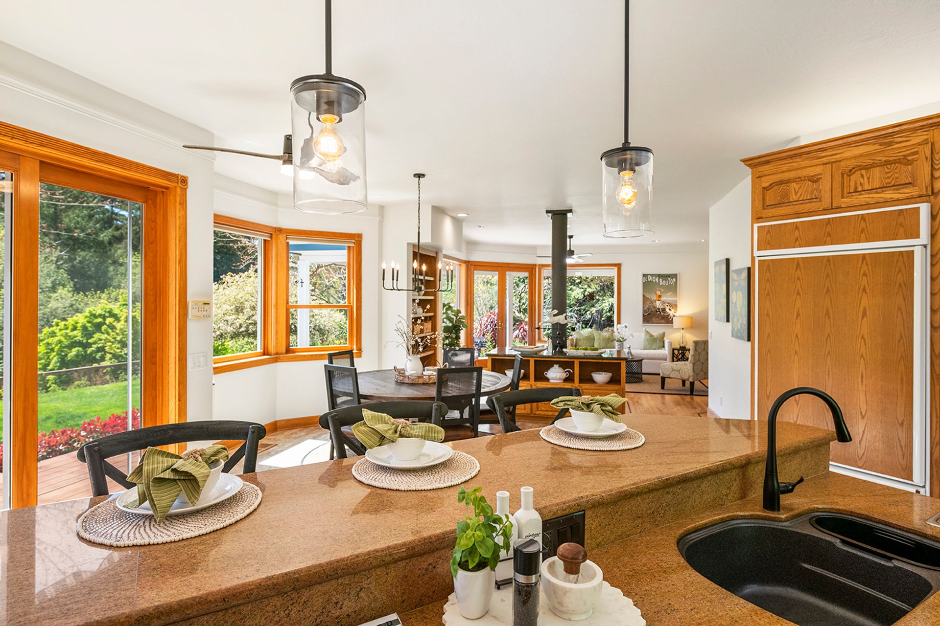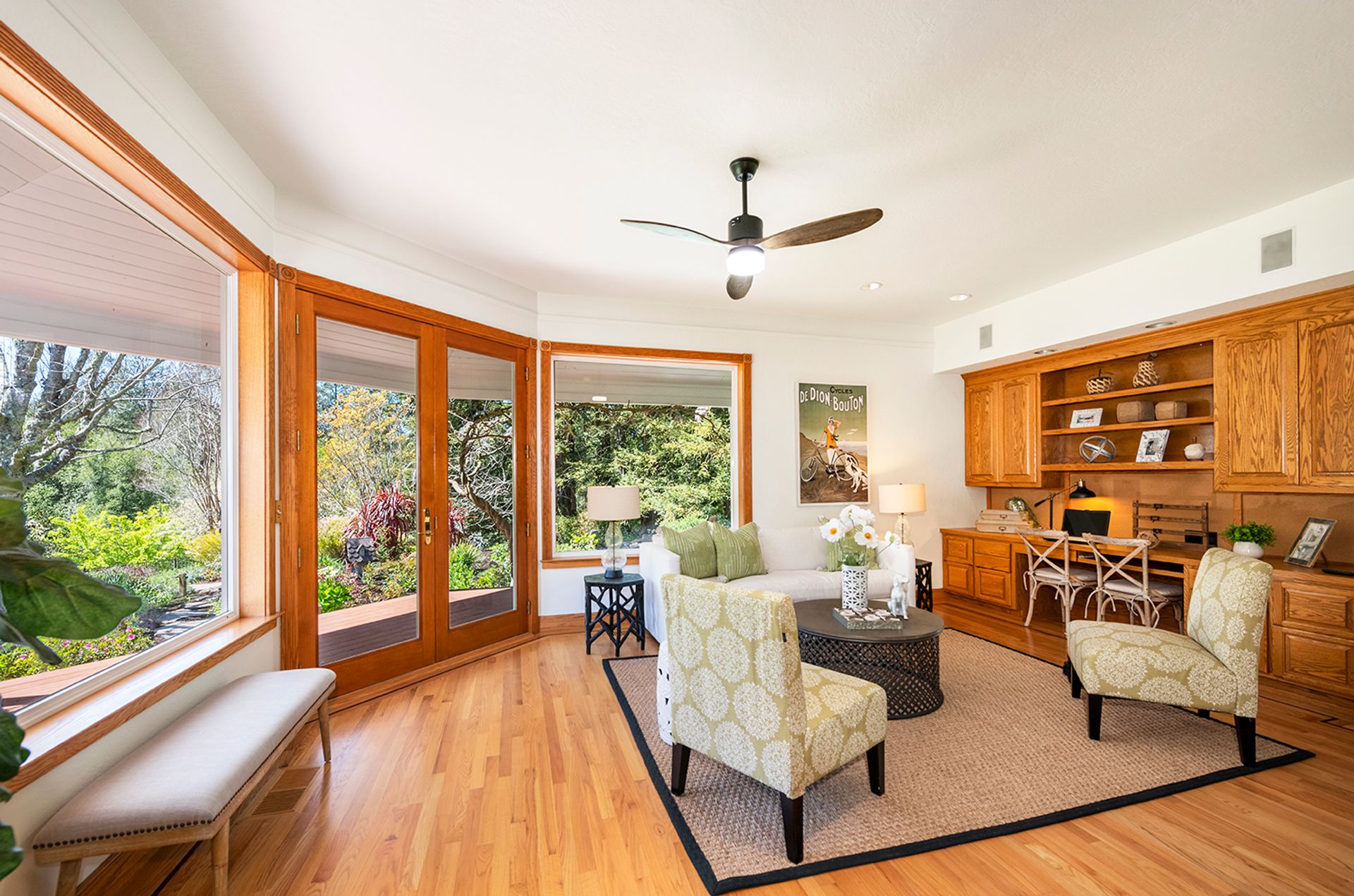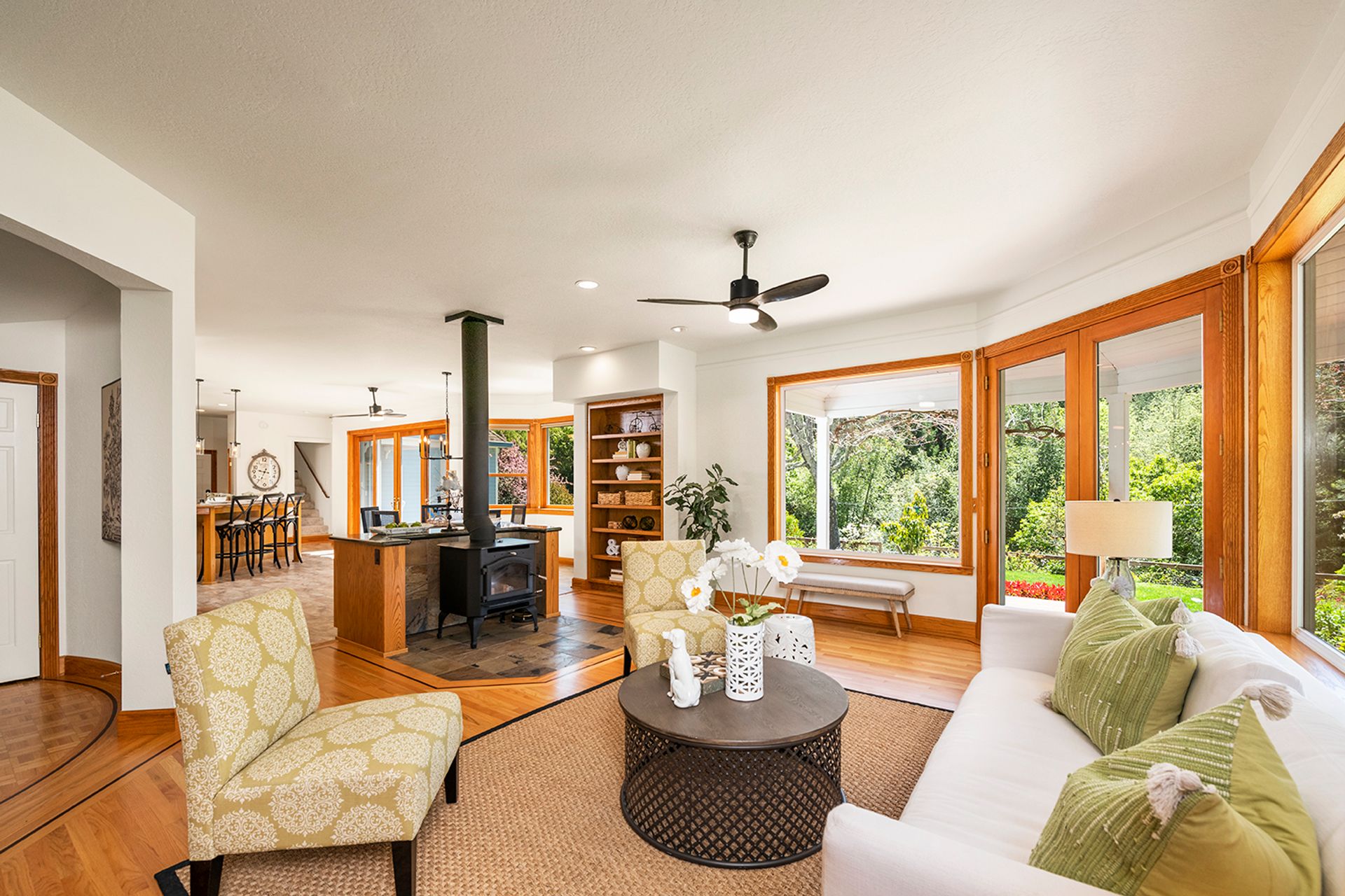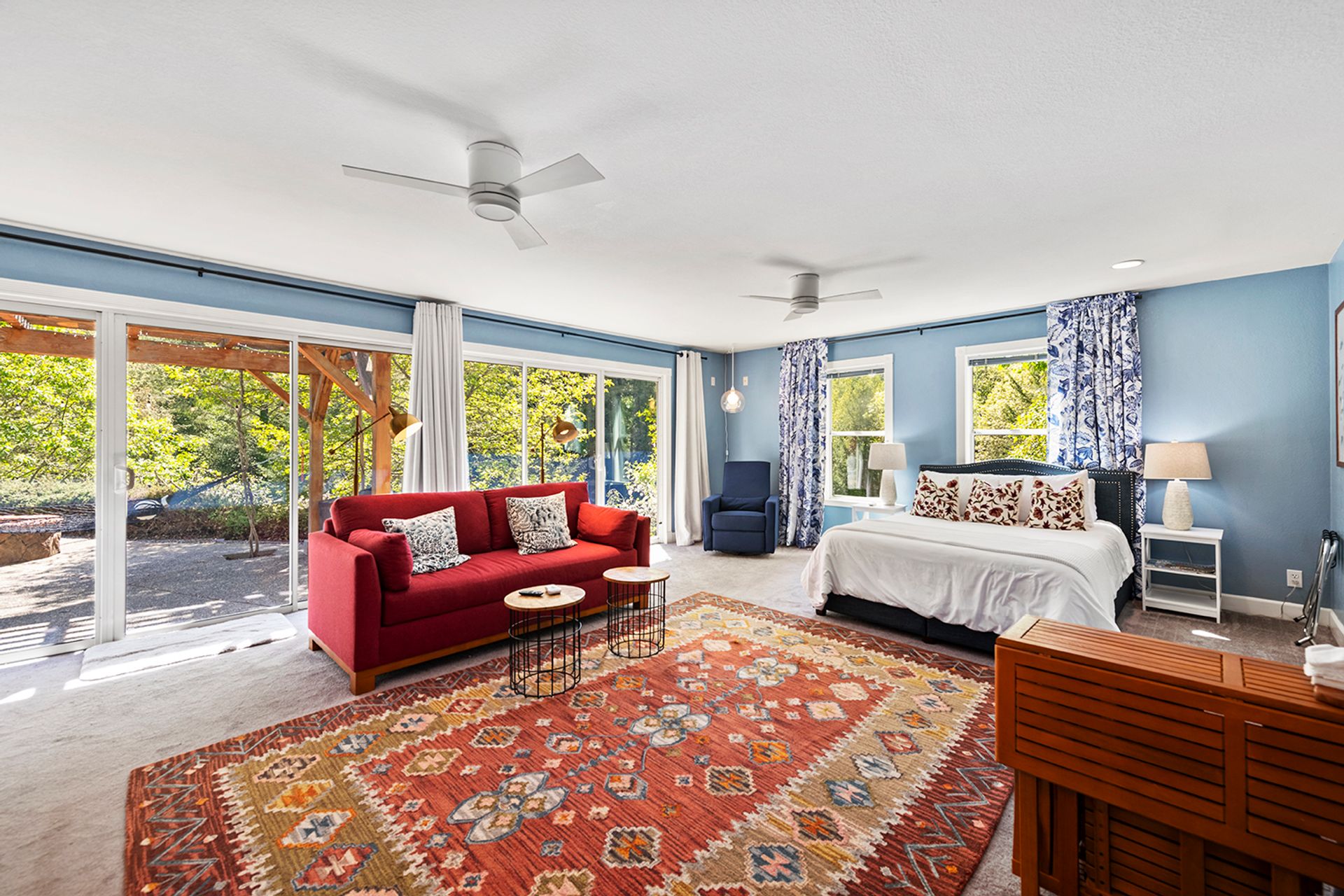Here is that amazing opportunity to live in your own 6+/- acre piece of paradise in the rolling green hills of West Sebastopol. Meander up the paved driveway through majestic age-old redwoods to a sunlit hilltop that showcases this stunning pride of ownership farmhouse-style home set amidst lush & magical cottage-style gardens. Walls of glass, French doors, oversized picture windows, and multiple skylights allow beautiful natural light throughout. An abundance of rich hardwood flooring, four warm and cozy fireplaces, high ceilings, lots of beautiful tile and natural stone, and a large wrap-around deck are perfect for warm summer nights and will delight the soul. Addl rooms include an amply sized home office, an enclosed balcony with a spa off of the primary suite, a game room, and a 3rd story finished room ideal as a second office, kids play area, or exercise room. Set private and away from the house is a spacious pool house/studio, overlooking a sparkling inground pool with a waterfall & a spa where the owners have had a successful permitted vacation rental. Don't miss the 30+/- panels of solar which keep energy bills low Numerous producing fruit trees and raised vegetable beds complete this offering. Live off the land just minutes from colorful downtown Sebastopol.