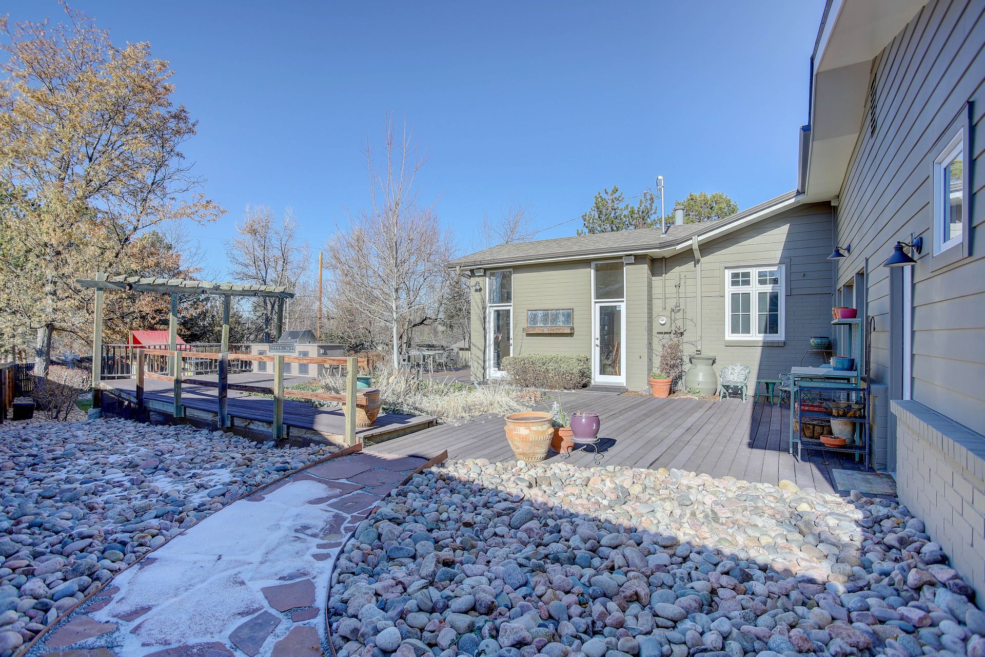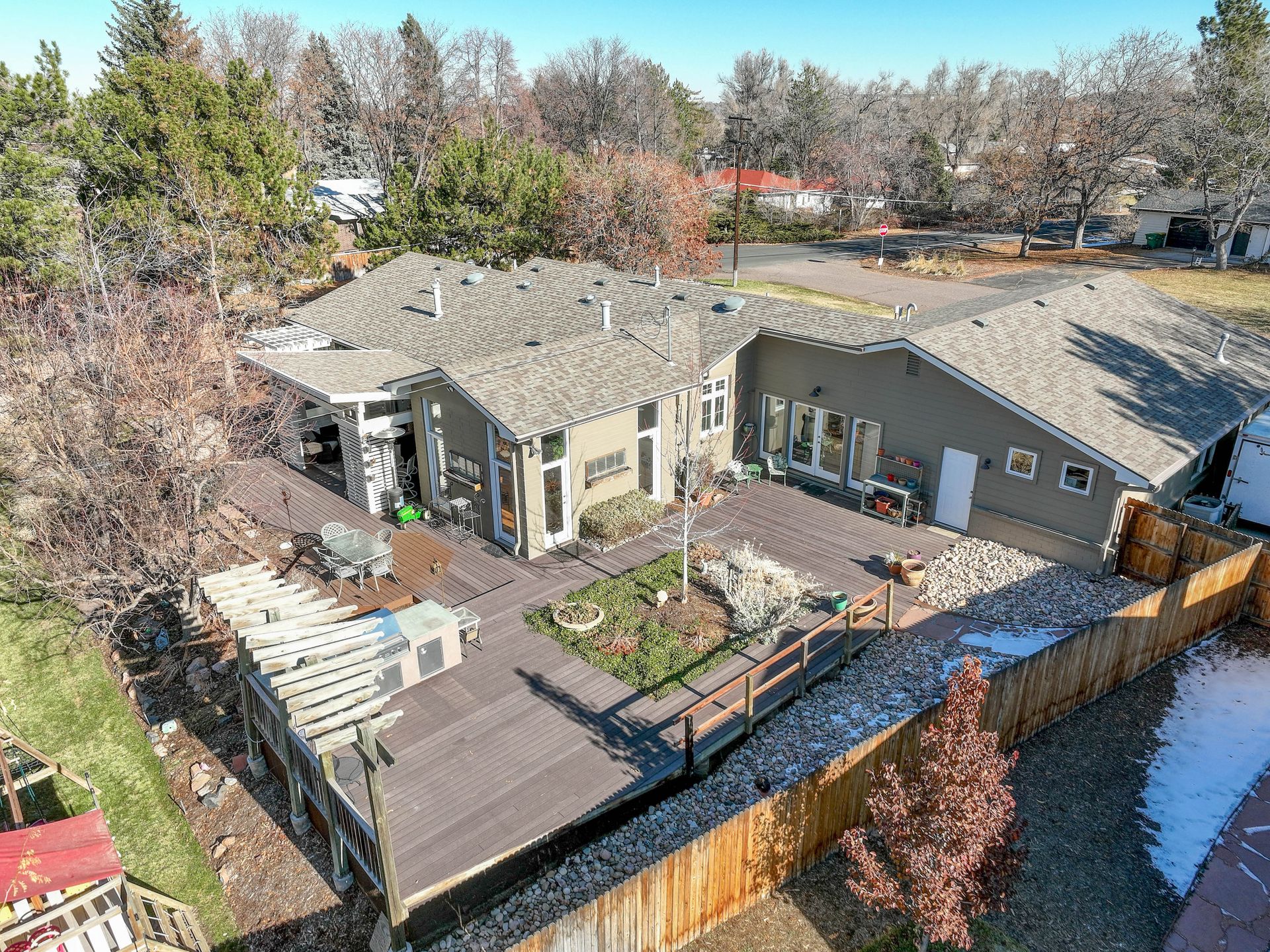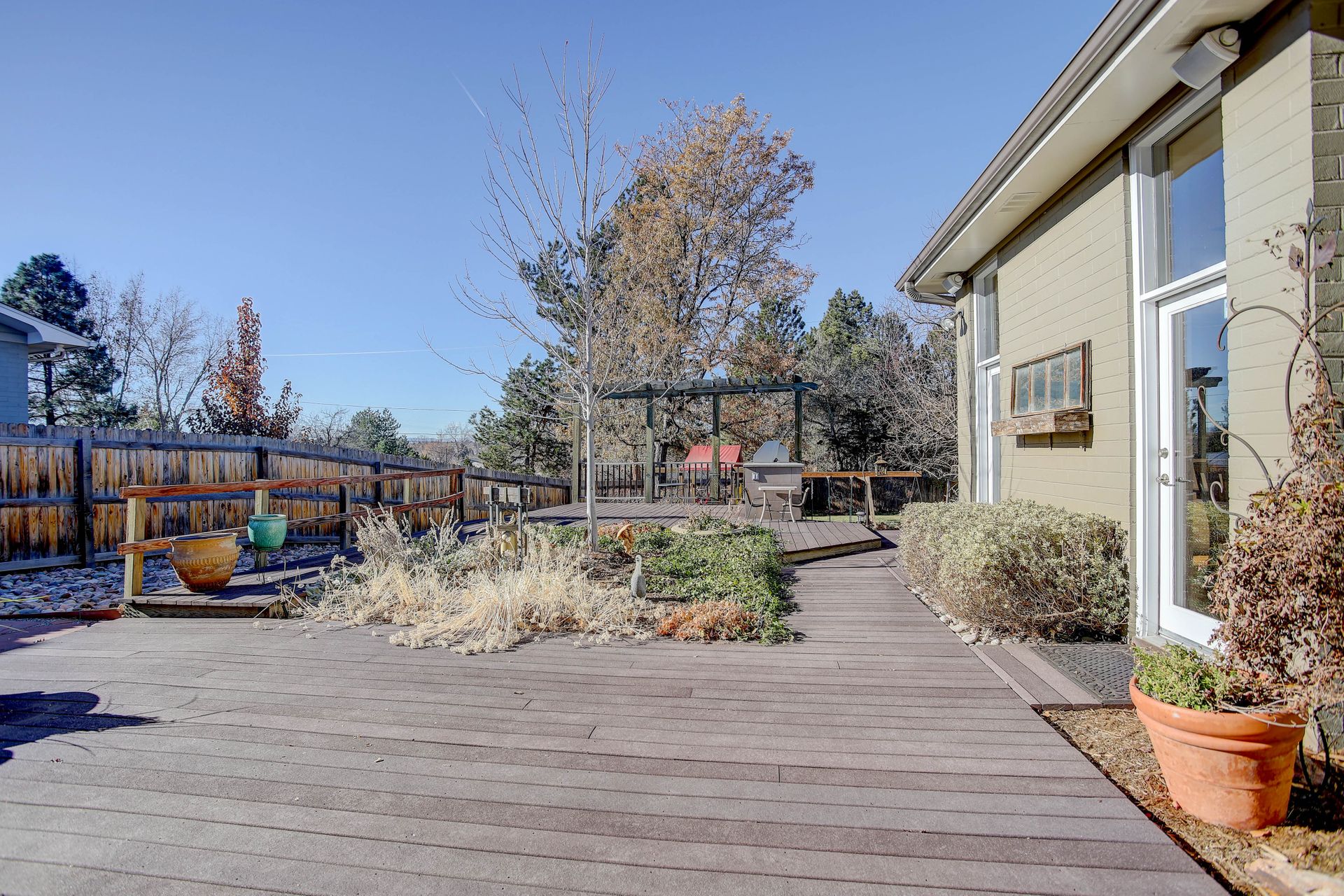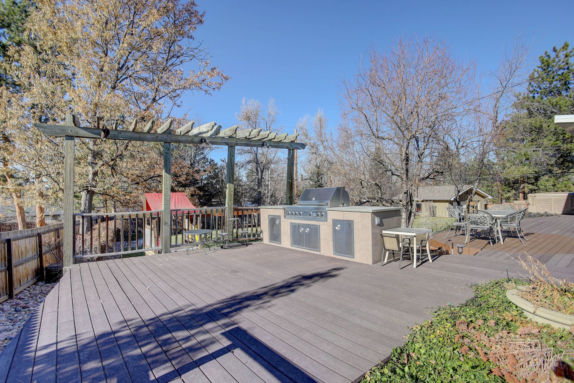 The exterior is a professionally designed oasis, with landscaping by a Denver Botanic Gardens expert and a master gardener. The 2,000 square foot Trex decking features: